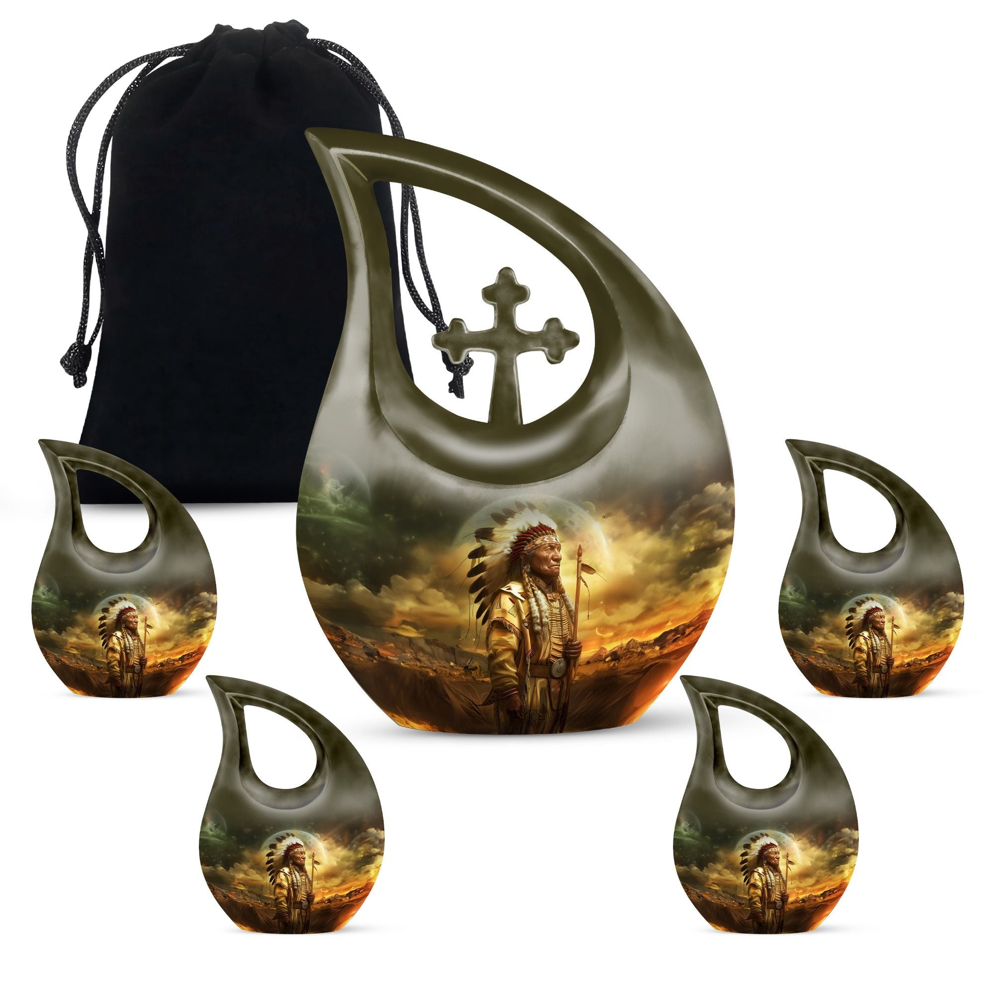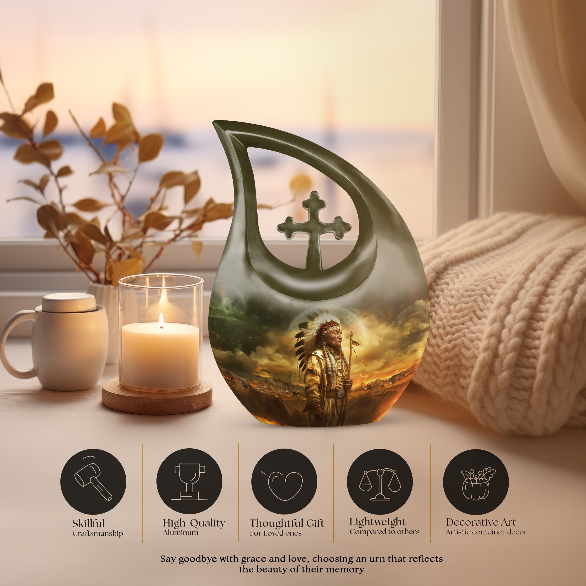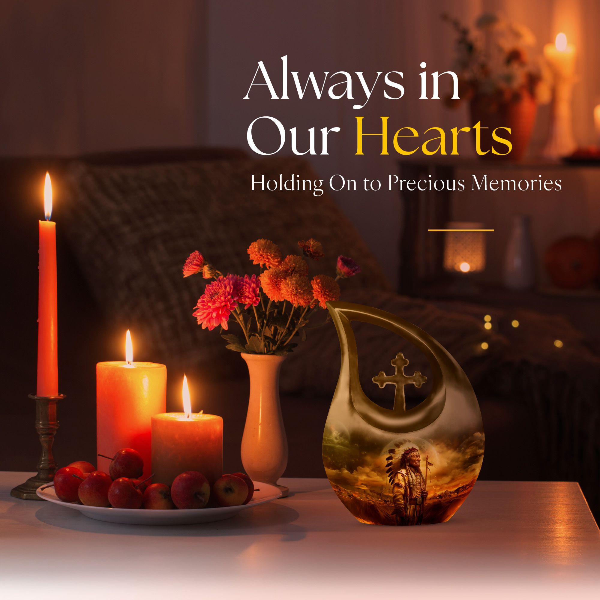 This Native American cremation urn is a heartfelt way to honor cherished memories, offering a meaningful final resting place for those who shaped your life. Designed as an urn for men & women, it provides comfort and dignity while reflecting deep heritage and remembrance. Many choose it as funeral urns for women or as a timeless urn for human ashes adult women.