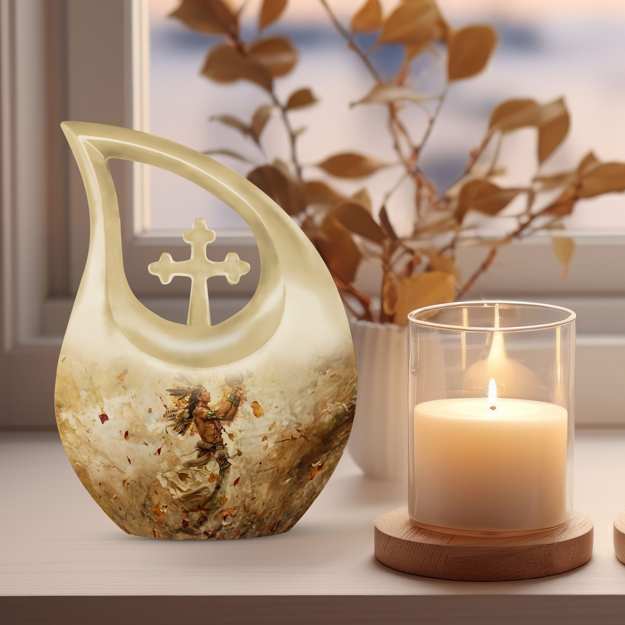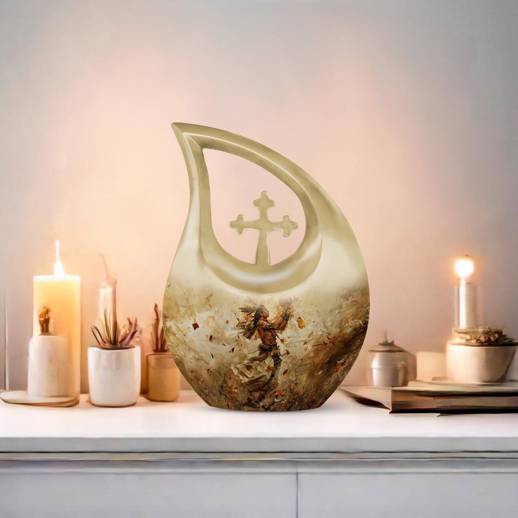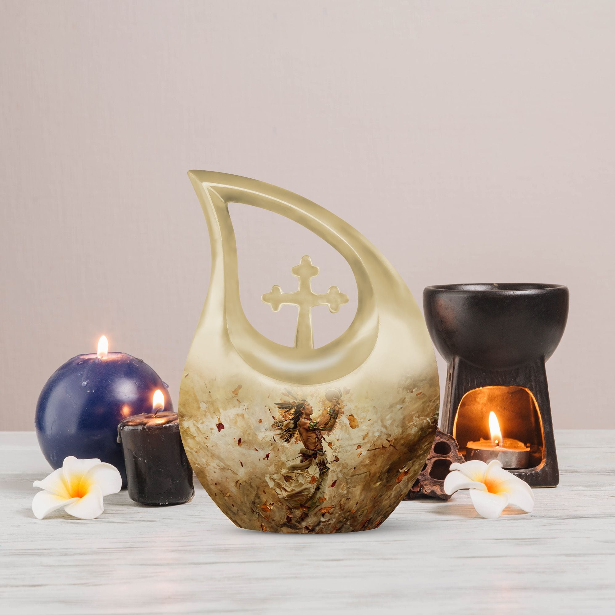 A touching tribute that blends cultural meaning with timeless beauty, this urn offers a peaceful way to honor a life rooted in love, heritage, and memory.