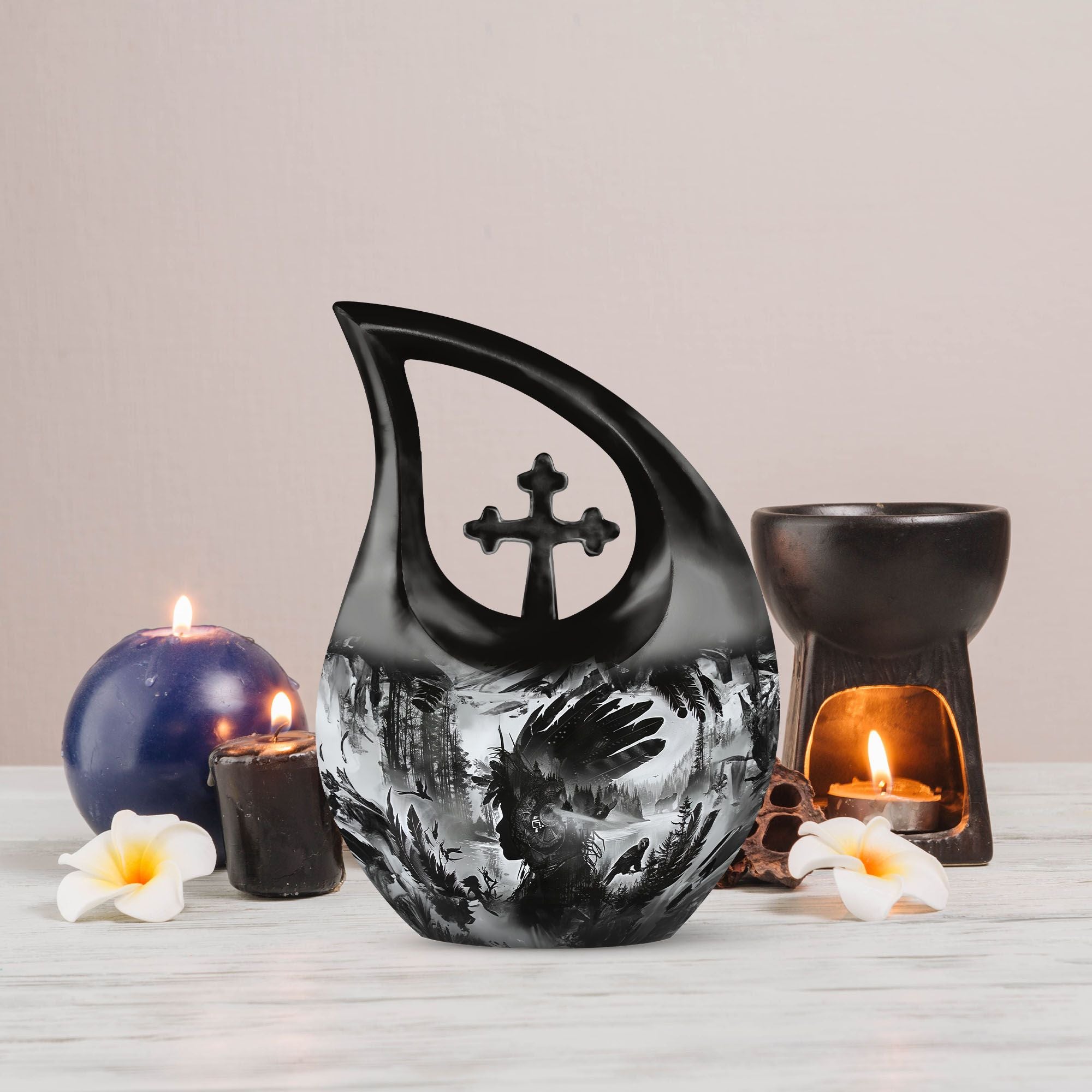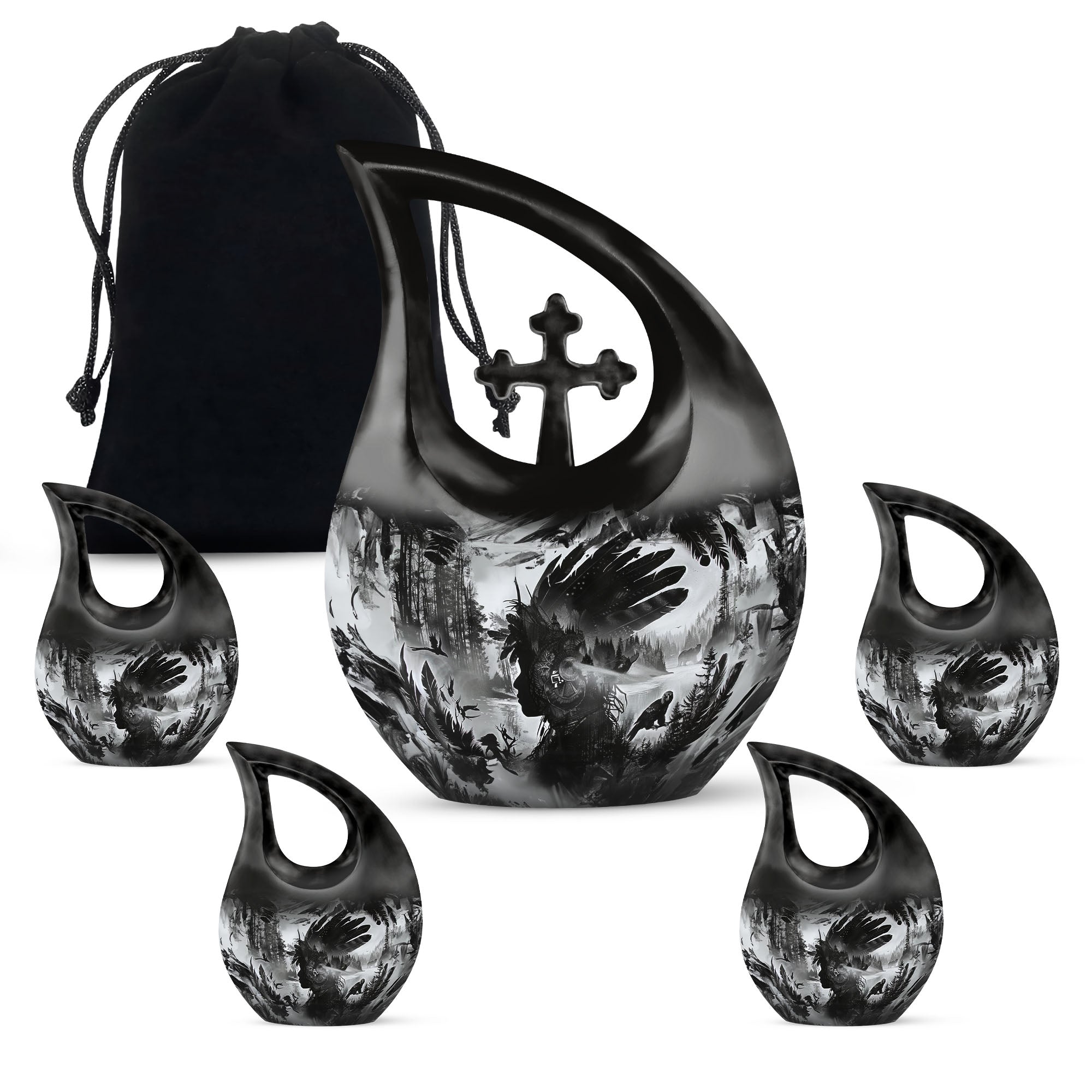 The Tribe Man Funeral Urn offers a powerful and symbolic way to honor a cherished life. Handcrafted with a tribal-inspired design that reflects legacy, strength, and unity, it provides a meaningful tribute for families who want a full-size memorial paired with coordinating mini keepsake urns for human ashes for sharing and remembrance.