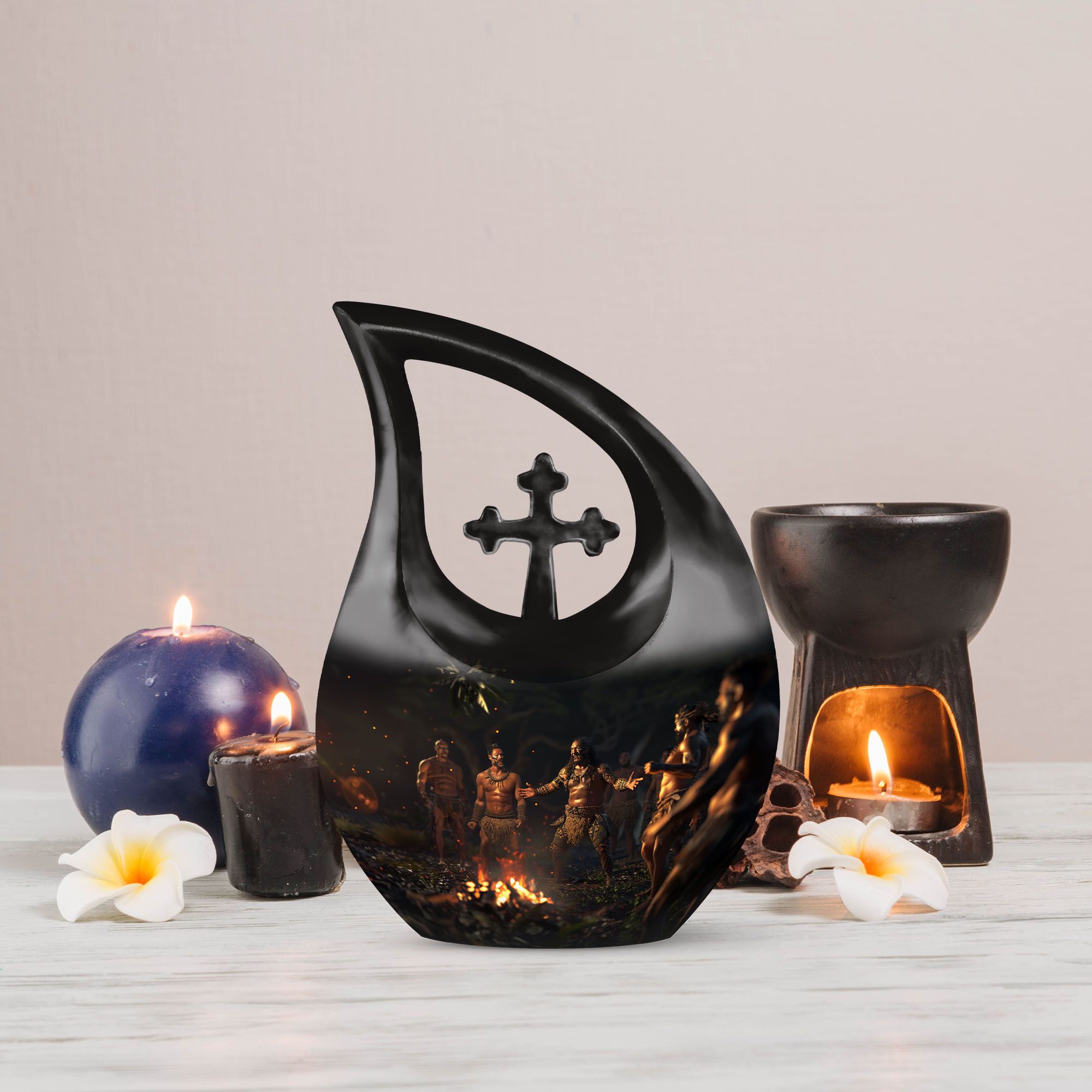 The Tribe Man Memorial Urn offers a powerful and symbolic tribute for honoring the memory of a beloved mother, father, or family member. Designed with a meaningful tribal motif representing heritage, unity, and eternal strength, it brings comfort to families seeking burial urns for adult human ashes or a heartfelt ashes memorial keepsake to honor their loved one’s legacy.