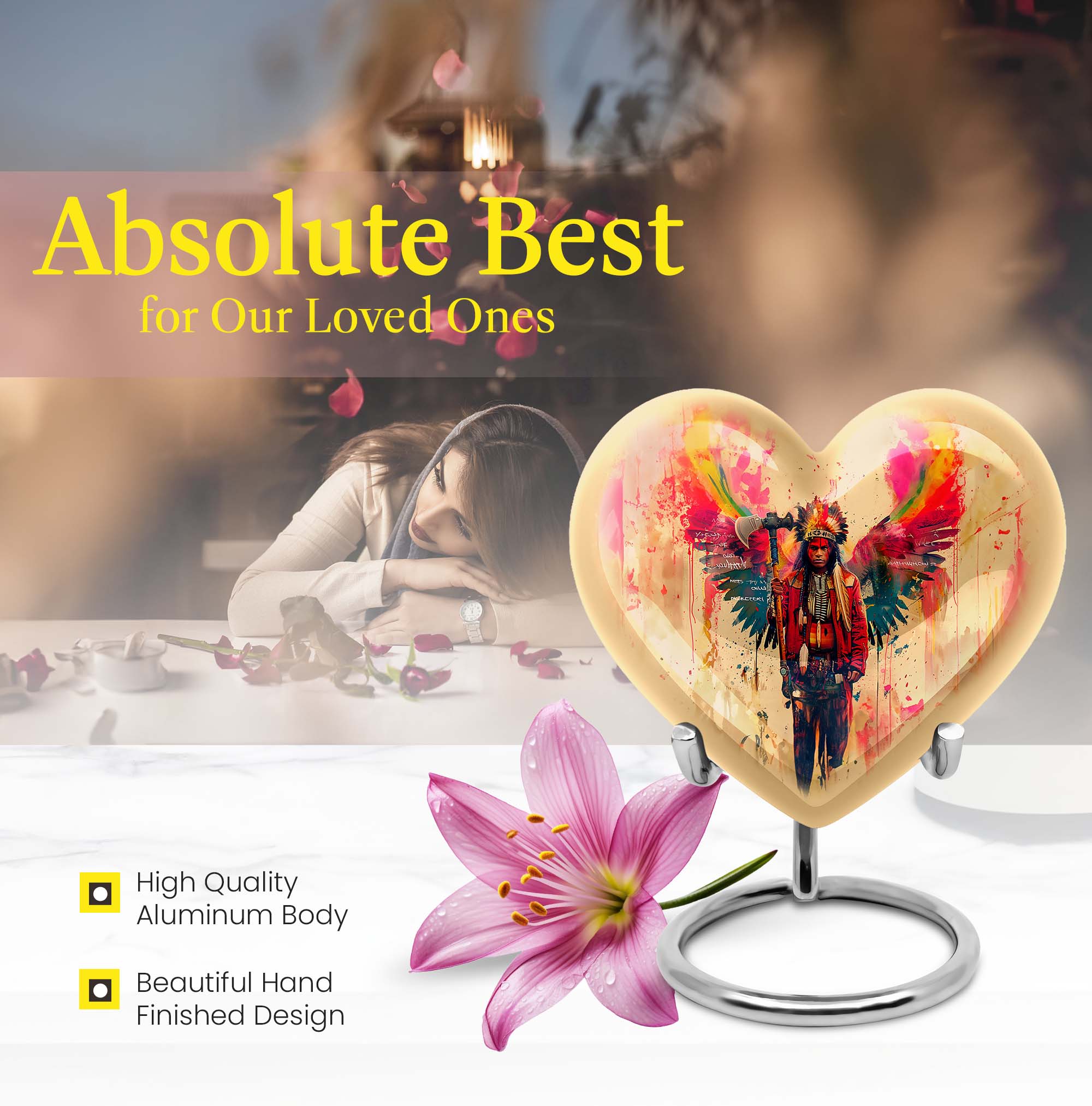 Each life is unique, and it deserves an equally unique and captivating remembrance. Honour your loved one's memory with our Tribe Man Urn, a grand 10-inch memorial urn intricately crafted from durable aluminium, capturing the poignant theme of a Wolf Howling. This large urn is prepared to safe-keep 200 cubic inches of ash, epitomizing the magnitude of the love and memories you shared. It weighs a substantial 3.3 pounds, underscoring its quality and durability. Contributing to the urn's distinct appeal is the opportunity for personal customization. Honor the departed by engraving their name and creating a singular piece of memorial object. The urn's extraordinary heart design is discreetly harbored in a velvet pouch, ensuring the containment of ashes in a dignified and respectful manner. The Tribe Man Urn, a fusion of elegance and sentiment, is an auspicious choice for memorial urns or funeral urns for men's ashes. Its unmatched sophistication will bring comfort to adults and seniors striving to preserve the memory of their beloved departed.
