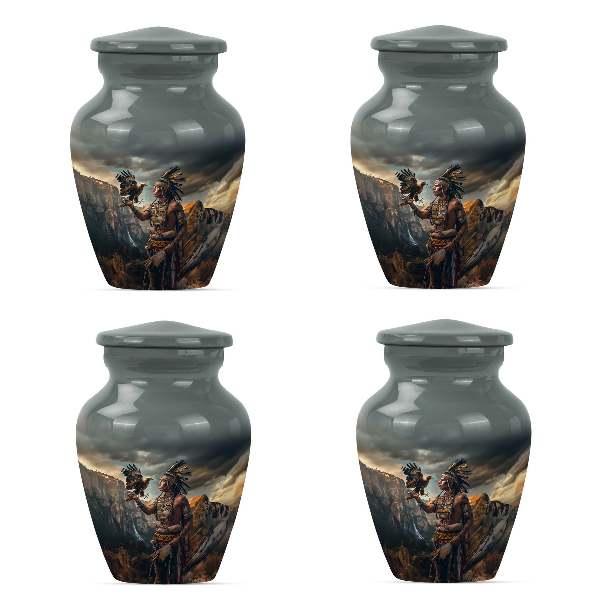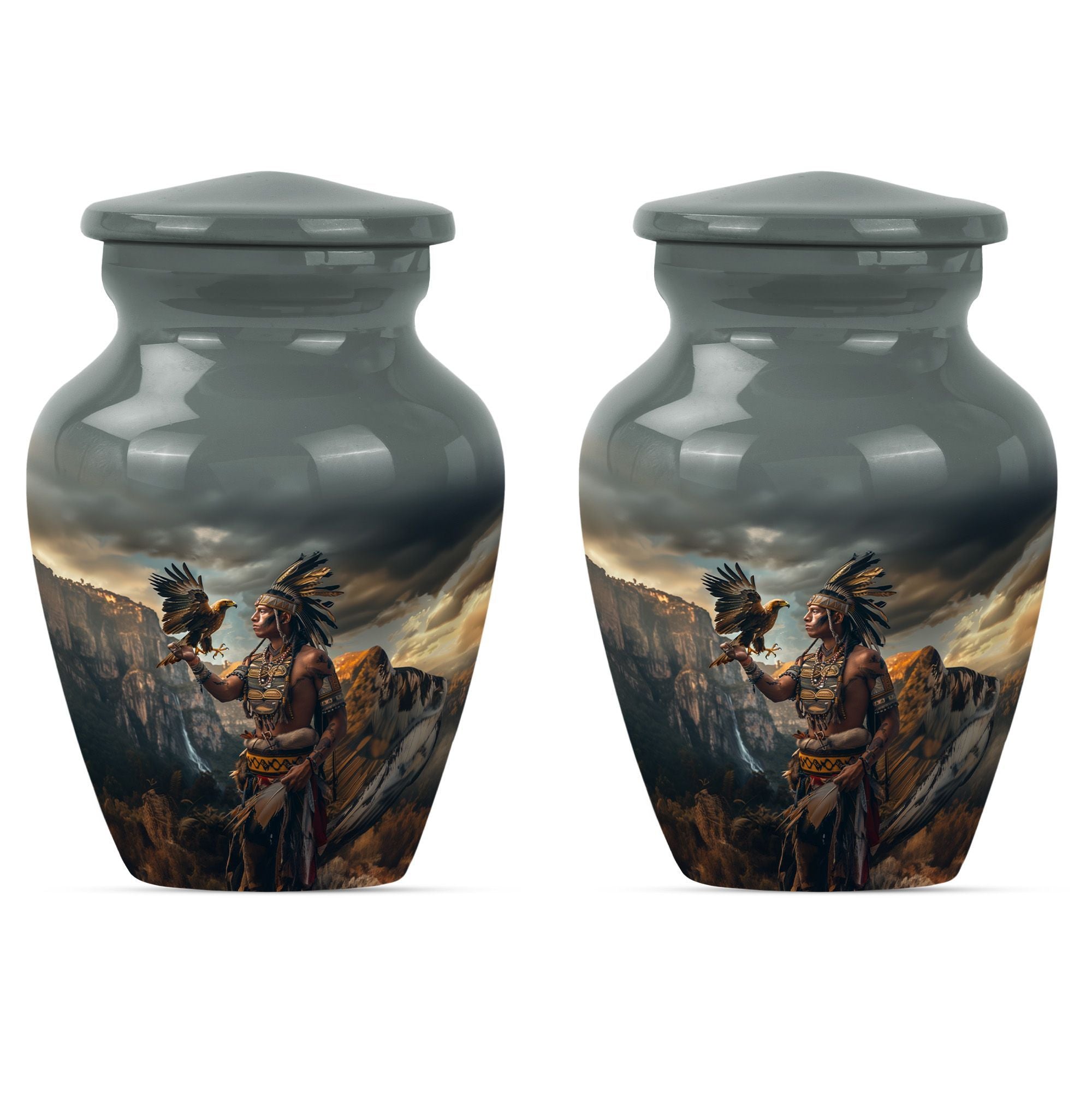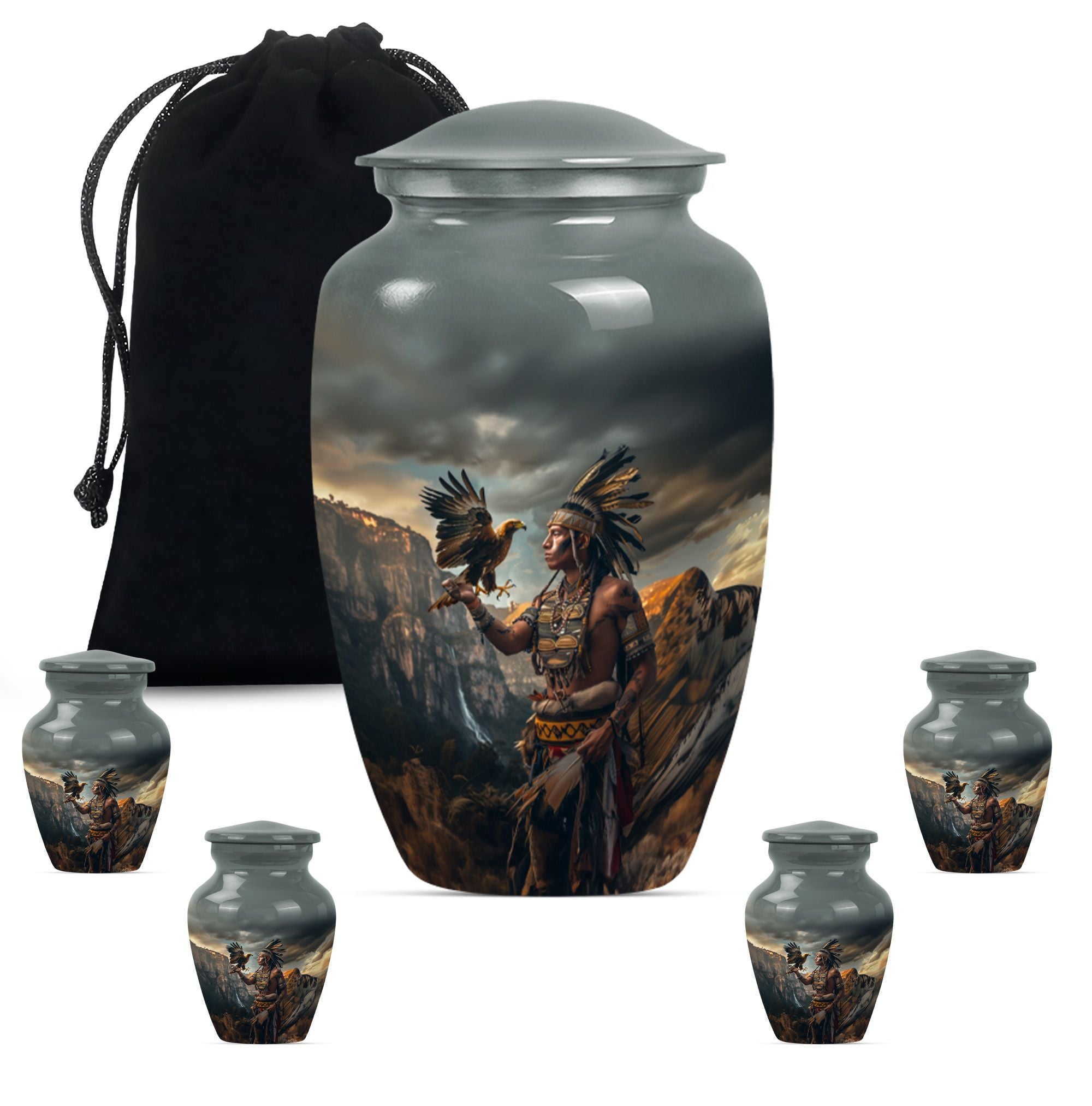 Your search for an elegant and lasting tribute to your loved one ends here with our premium tribe Man Urn. This large urn which stands at a height of 10 inches exudes an aura of class with its theme of 'Wolf Howling'; a symbol revered in many cultures symbolizing strength, unity, and respect for family. Handcrafted from durable aluminium, this cremation urn for dad is weighty yet well-balanced at 3.3 pounds, boasting a capacity of 200 cubic inches. Each urn is also afforded a personal touch with the option to engrave names, ensuring that each piece is truly unique. The urn comes nestled inside a plush velvet pouch, safeguarding the ashes during transit or when showcased. Offering not only a vessel but a memorial, the high-quality tribe Man Urn redefines affordability and pays an honorable homage. Looking beyond traditional burial urns for adult men ashes, choose this unparalleled piece resonating strength and unity, and treasuring the powerful spirit of your loved one.