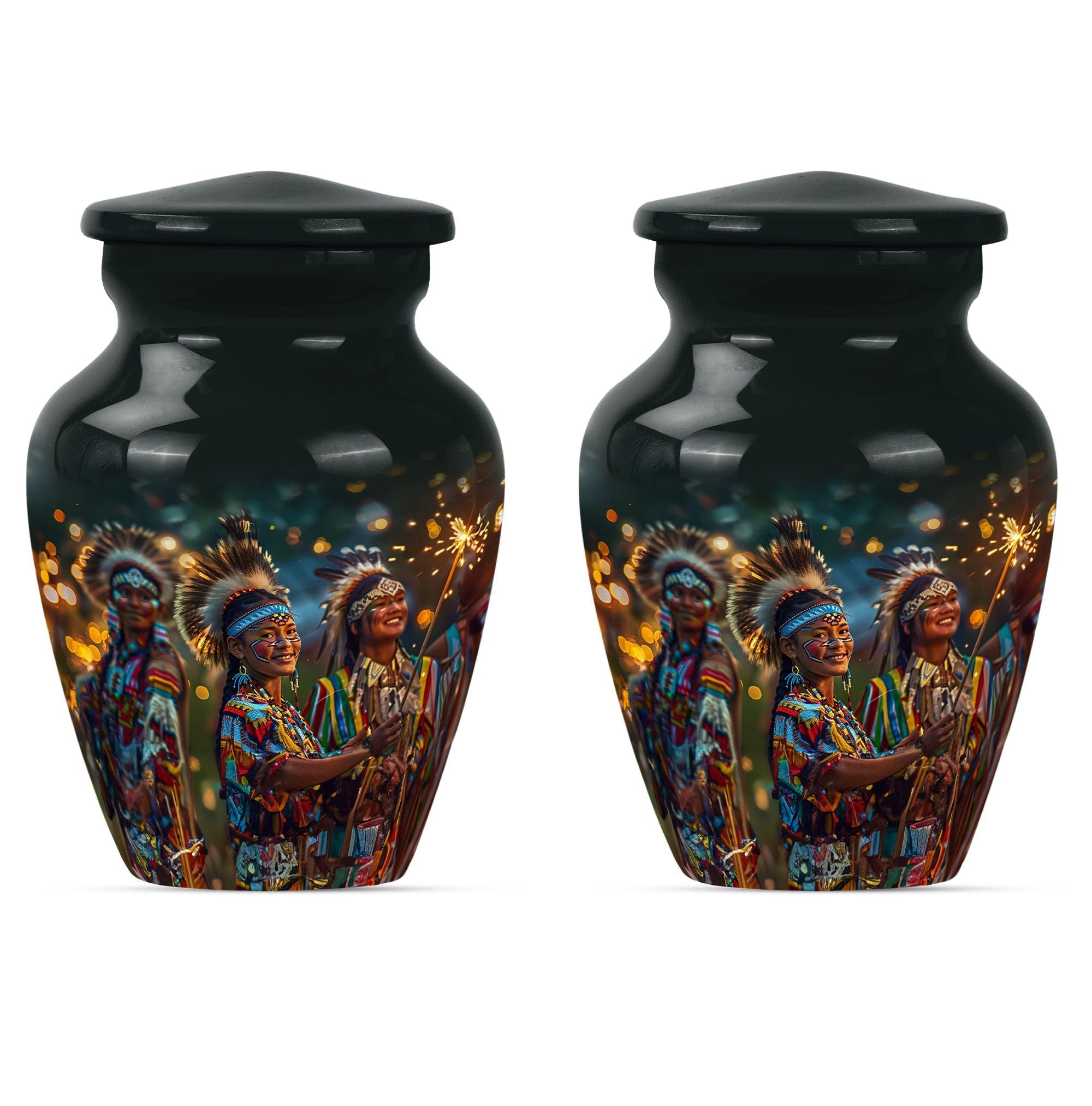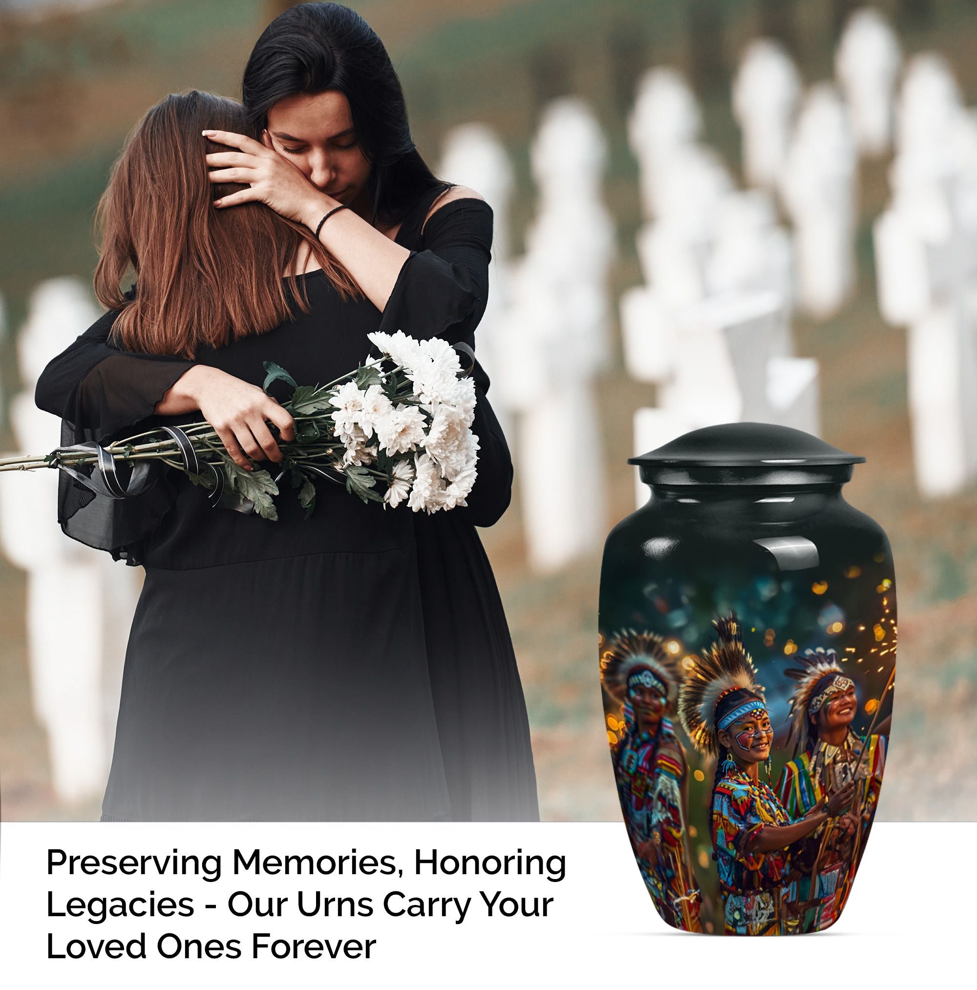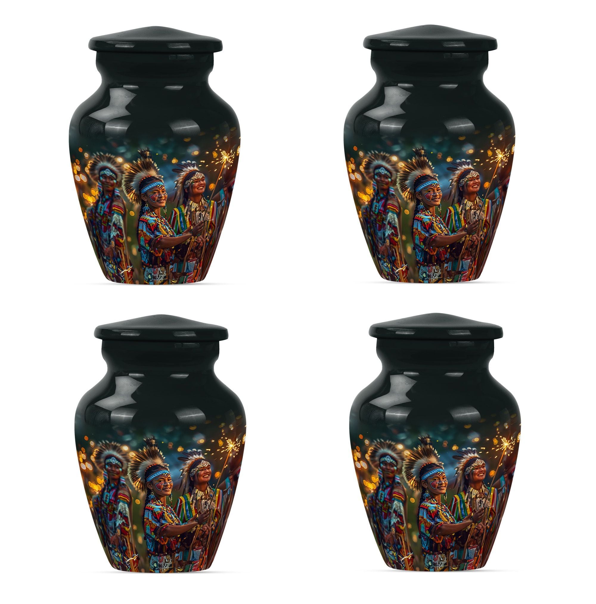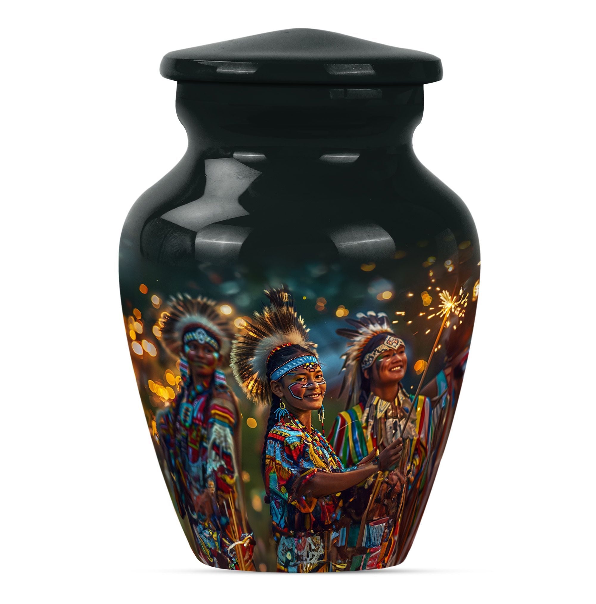 Immerse yourself in the wistful beauty of our Wolf Howling Large Urn, a remarkable tribute to your loved one's eternal spirit. This tribe Man Urn stands 10 inches tall, showcasing the strength and courage embodied by the poignant theme of a howling wolf. Handcrafted from high-quality Aluminum, the urn displays both durability and exceptional artistry. With a capacity of 200 cubic inches, it is perfectly suited as a cremation urn or a memorial burial urn, serving as a unique vessel to store your loved one's ashes. At a weight of 3.3 pounds, it is stately without being cumbersome. This urn offers customization options, allowing for personalized engraved names, creating an extra special touch. The package also includes a velvet pouch, perfect for respectfully containing the ashes. Our urn is more than just a funeral urn; it is a unique commemoration of your loved one, with a design that speaks volumes of their undying spirit. Whether you're after funeral urns for adult ashes or cremation urns for humans, our Wolf Howling Large Urn offers a distinct choice.