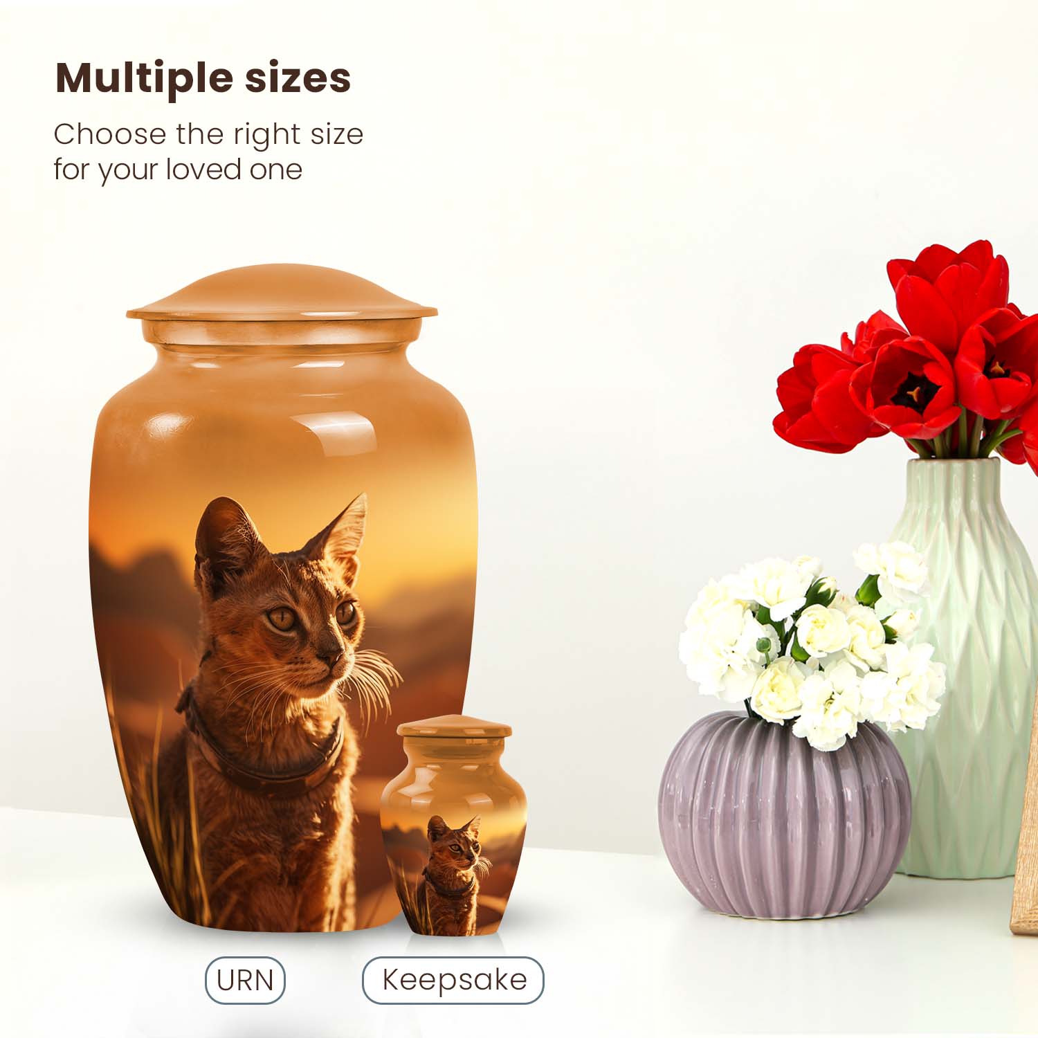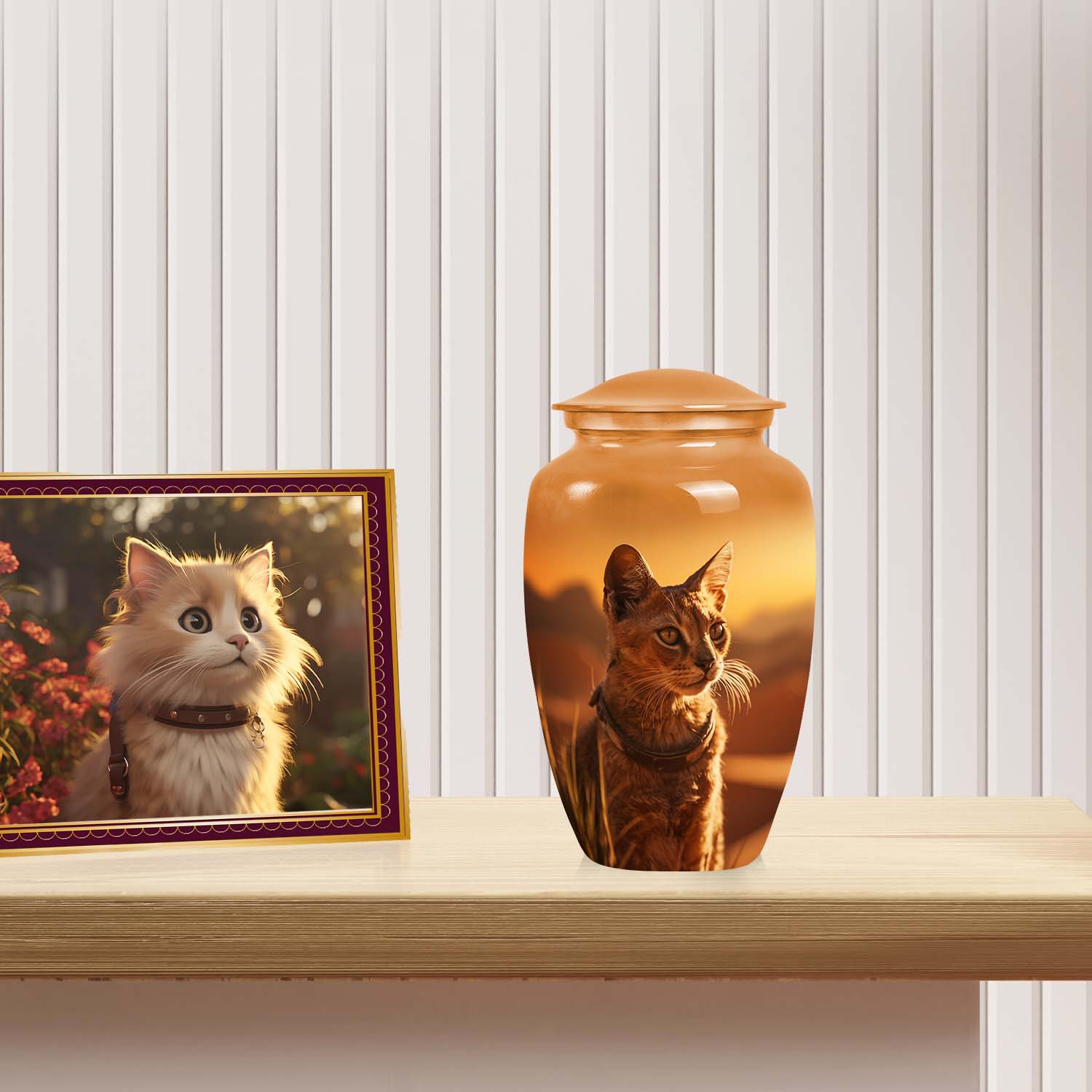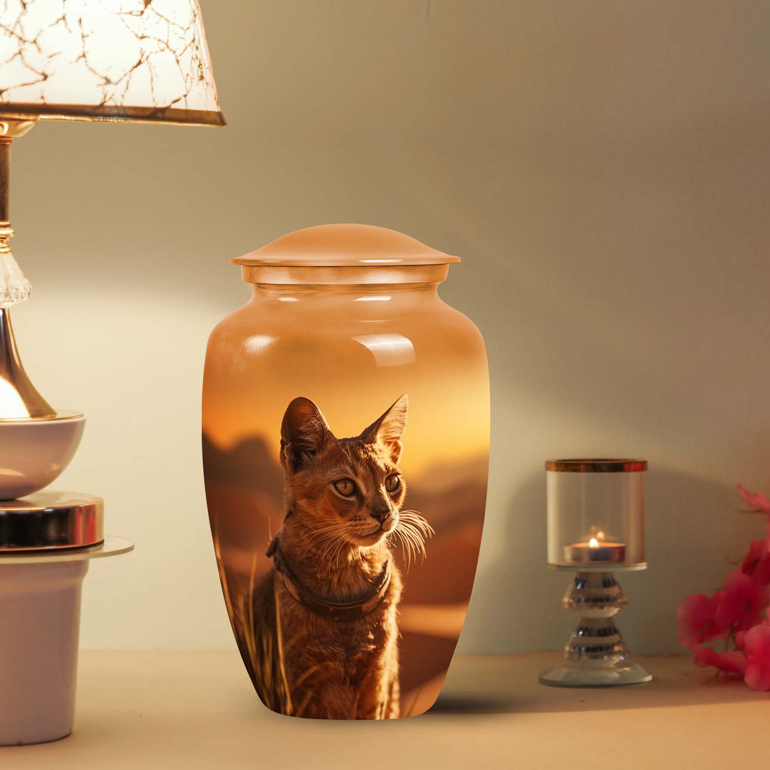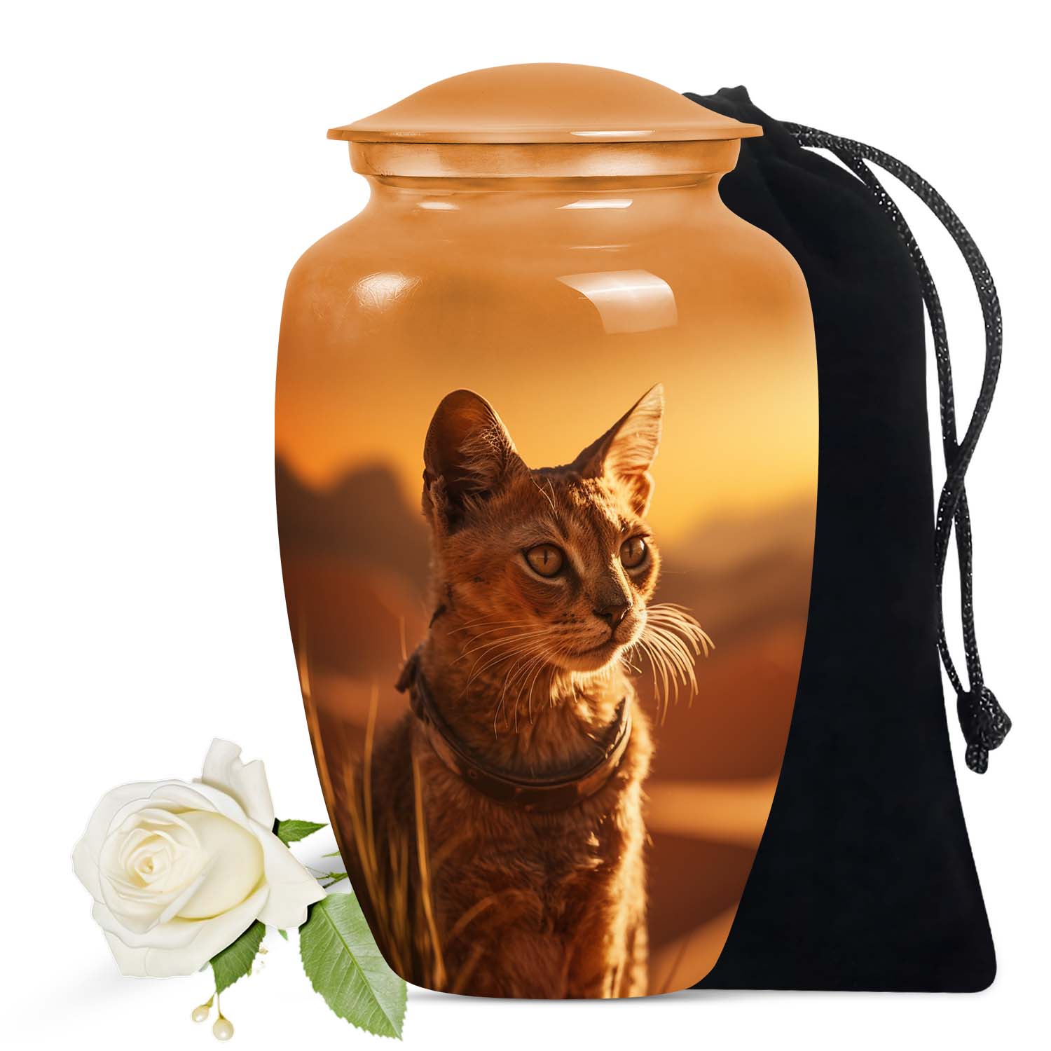 Each urn radiates light and compassion, turning farewell into a beautiful remembrance. The Sunset Cat Cremation Urn — a timeless cat memorial keepsake that brings warmth, peace, and everlasting connection to your home and heart.