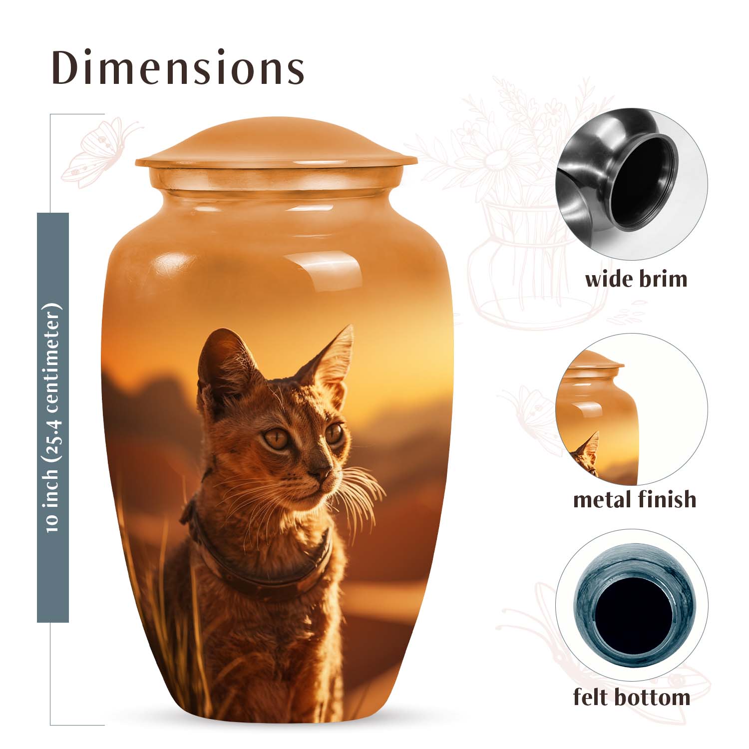The Sunset Cat Cremation Urn for Pet Ashes embodies warmth, serenity, and love — a heartfelt tribute to your cherished feline friend. Inspired by the calming hues of sunset, this urn serves as both a work of art and a lasting cat memorial and keepsake, symbolizing the peaceful transition of your beloved pet’s spirit into eternal rest.