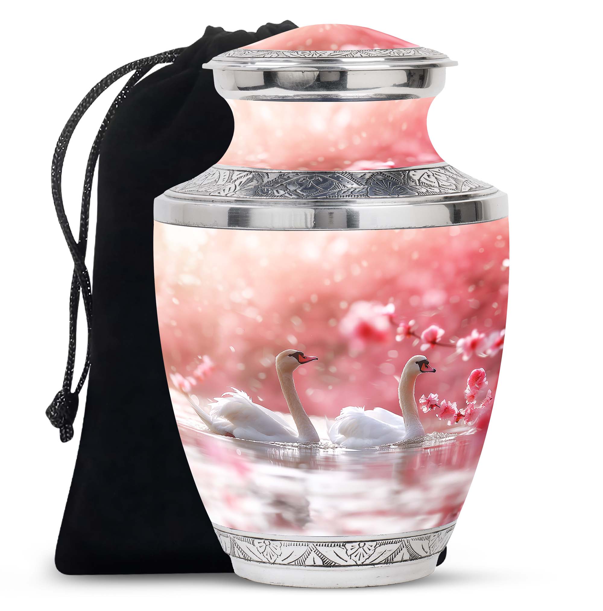 Expertly handcrafted, the urn features a graceful swan design—representing purity and transformation—making it a fitting choice for celebrating a life well lived. Constructed from durable aluminum, this large cremation urn ensures lasting beauty and security. Its polished finish and elegant floral details add sophistication, making it a meaningful choice among large urns for human ashes adult female and urns for ashes adult male large memorials.