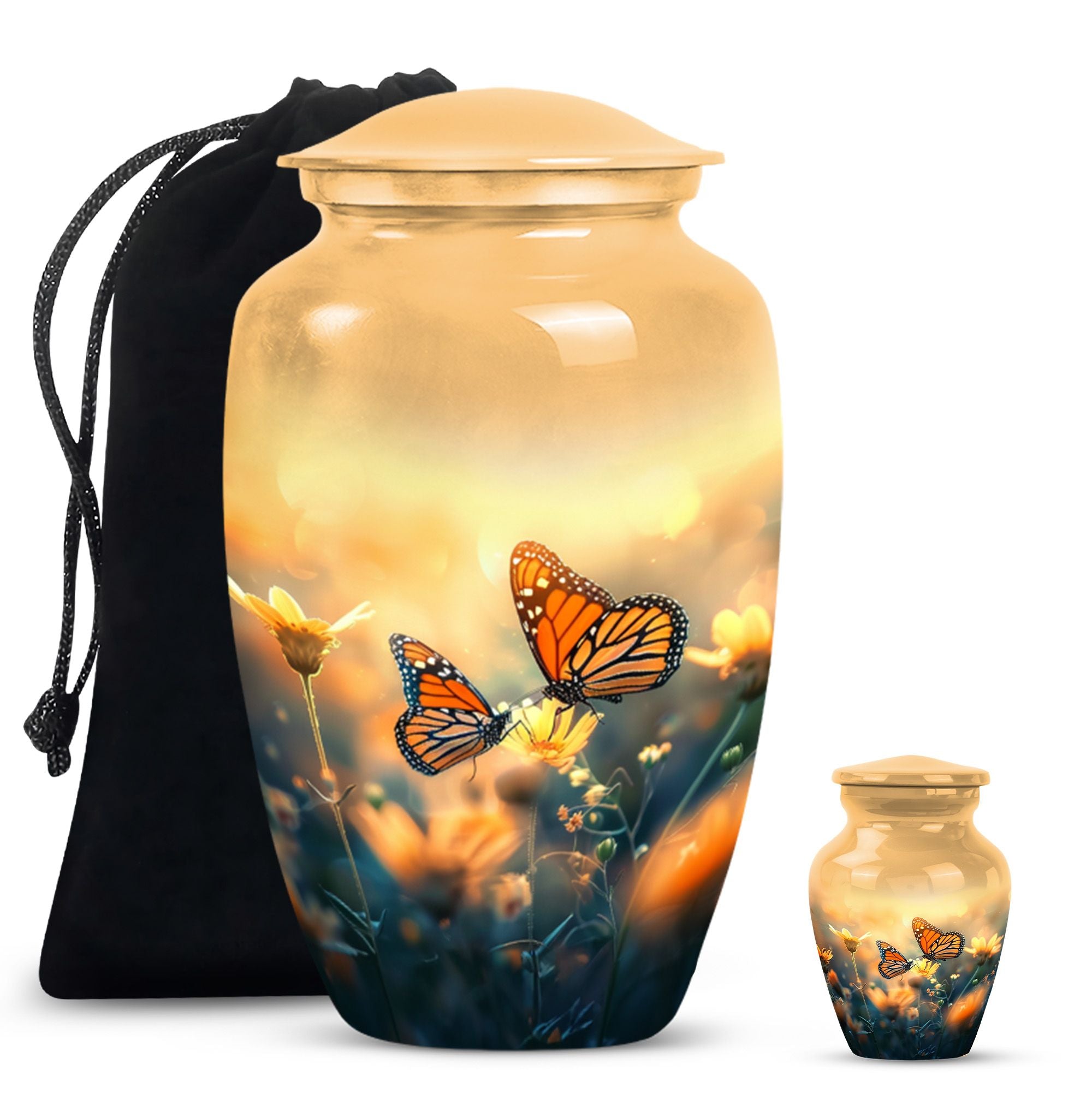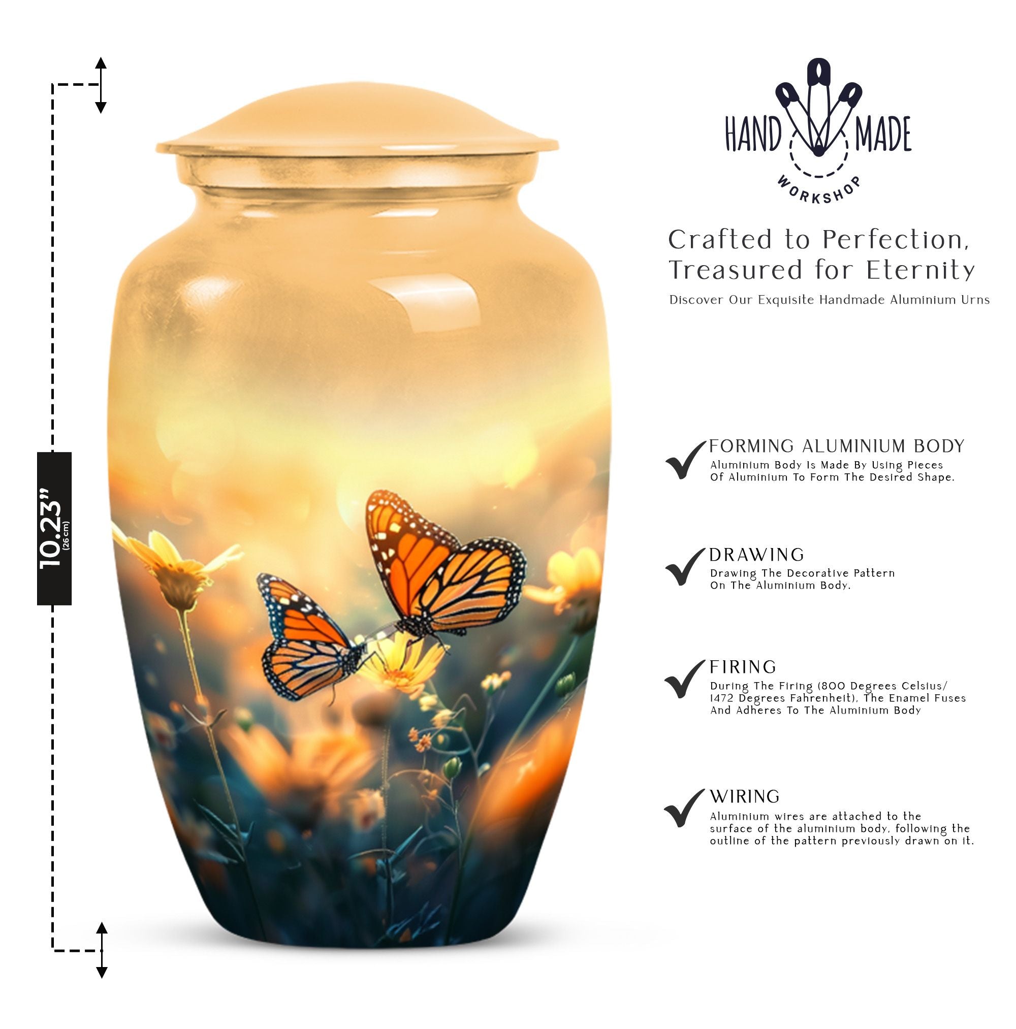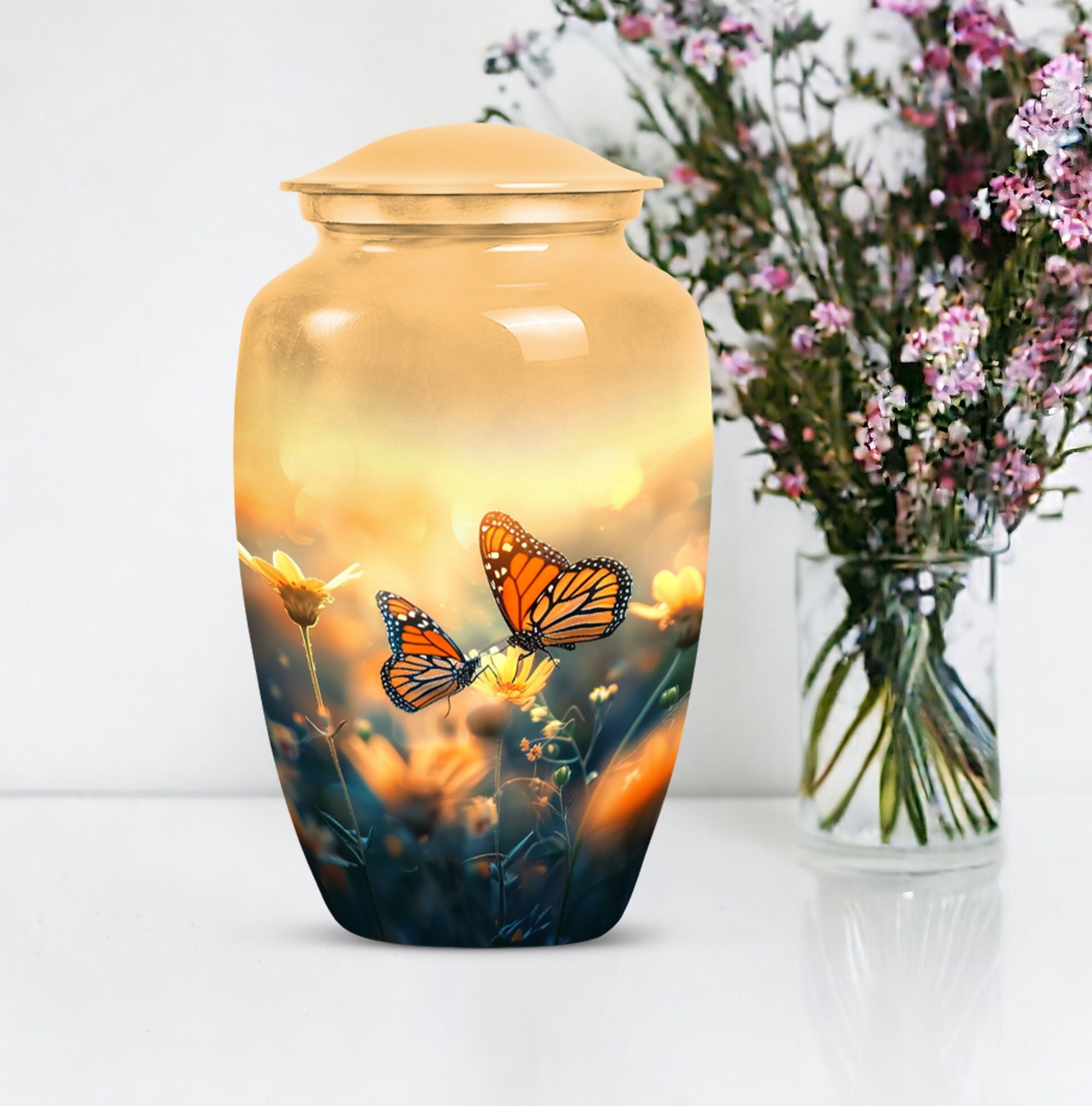 The Orange Monarch Butterfly Memorial Urn is a radiant tribute, blending vibrant orange and yellow hues with the timeless symbolism of butterflies. Crafted with care, this urn embodies renewal, peace, and remembrance, making it a cherished choice for families seeking a meaningful monarch butterfly urn or elegant butterfly urn.