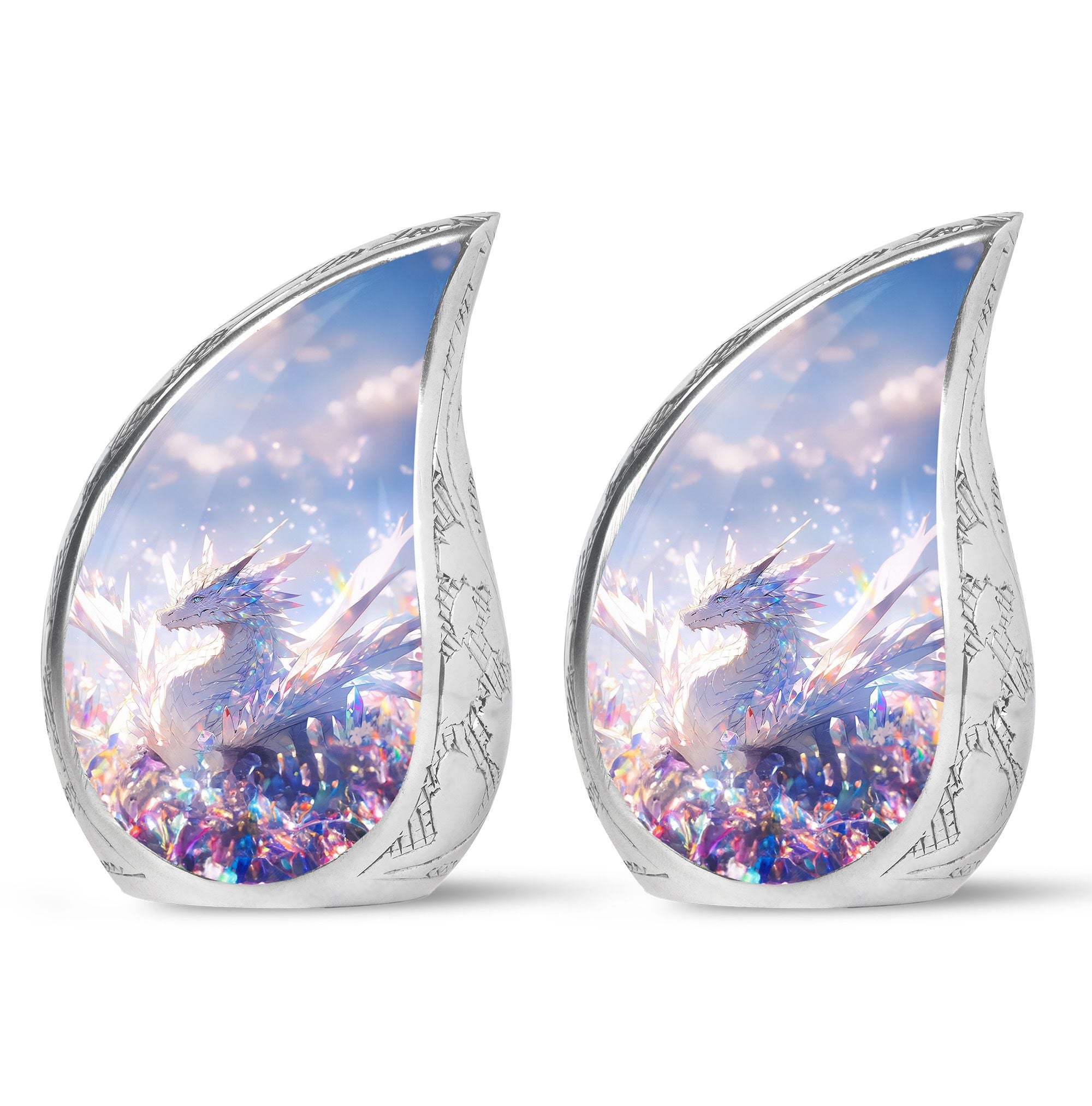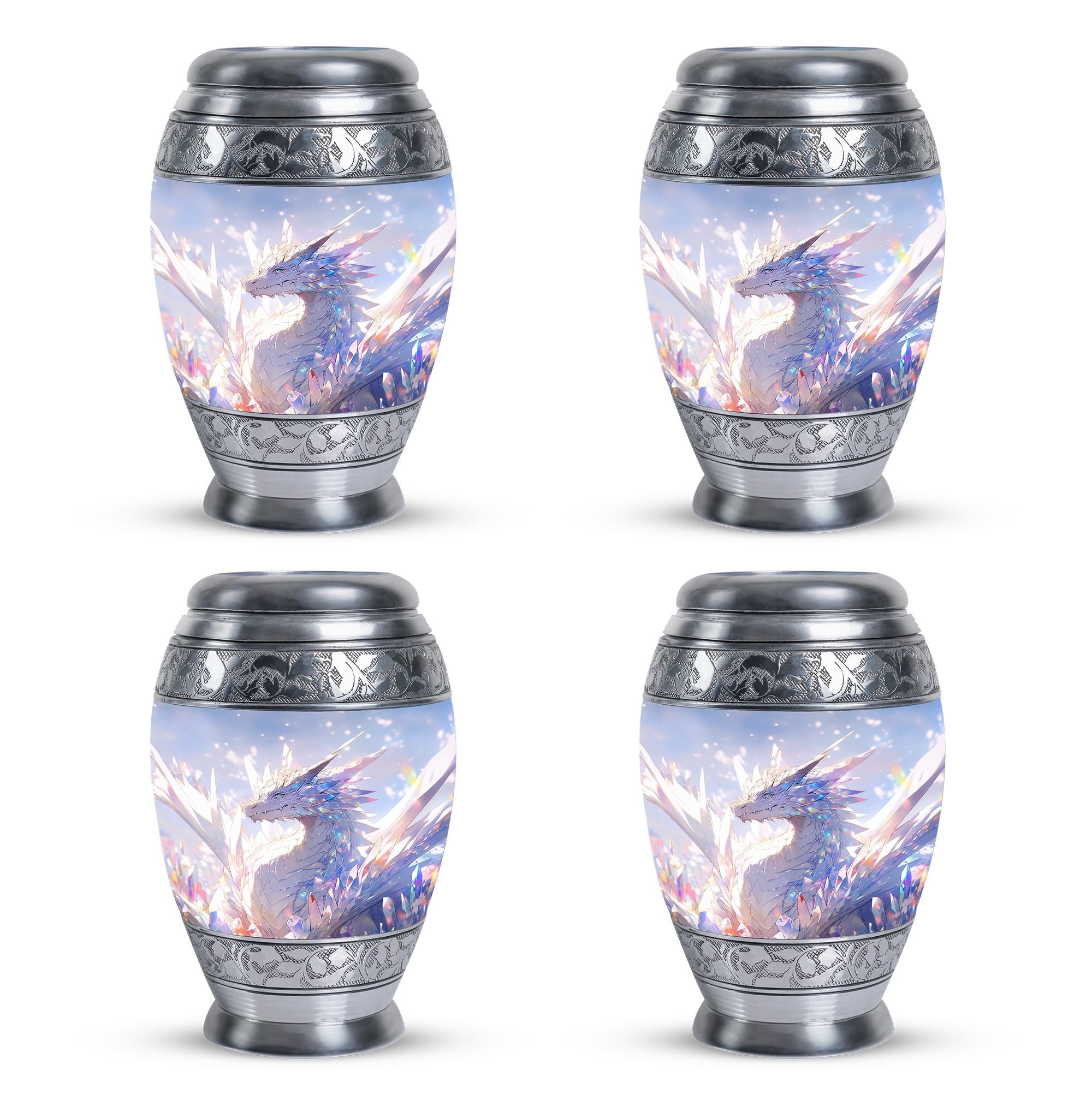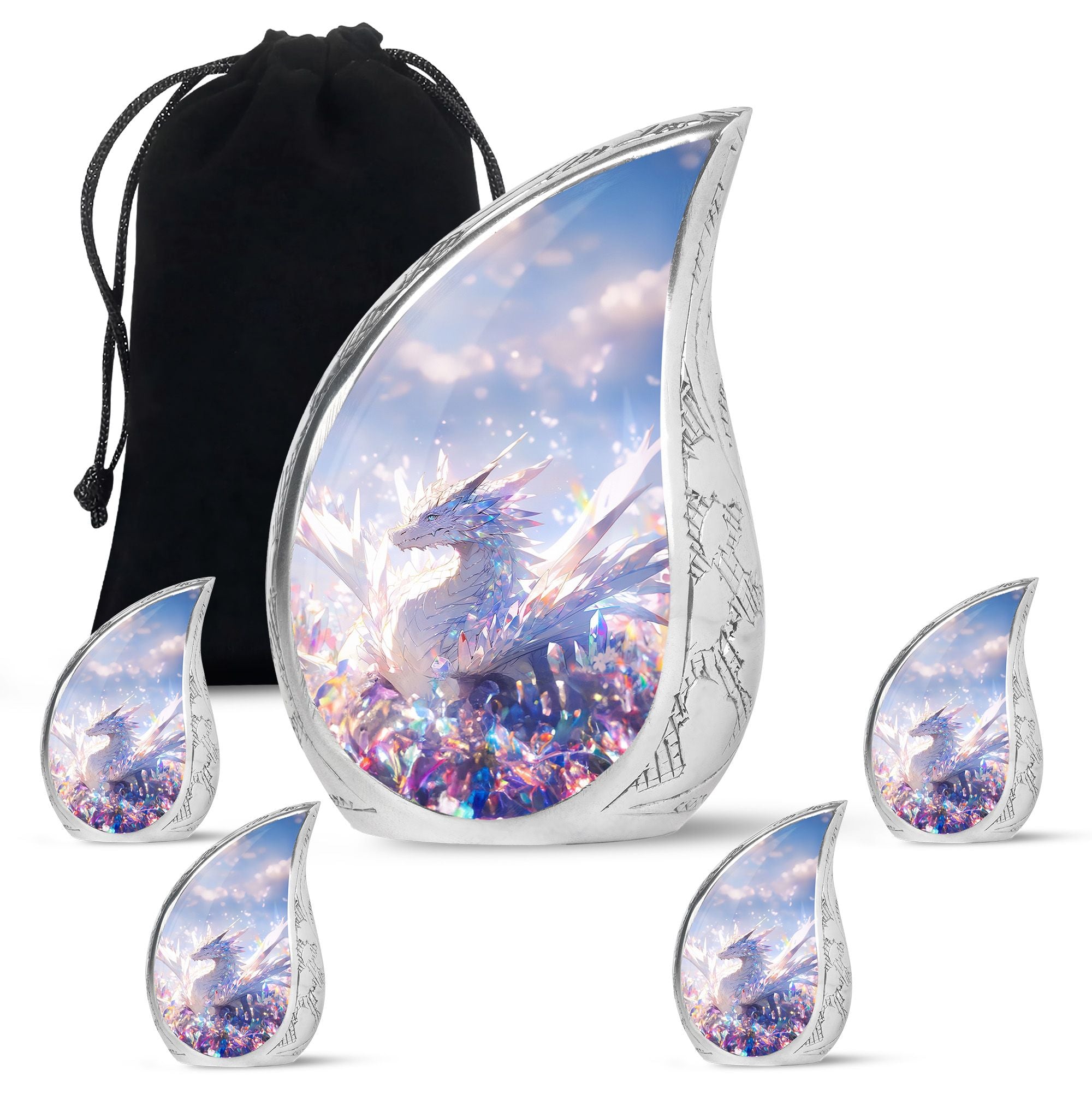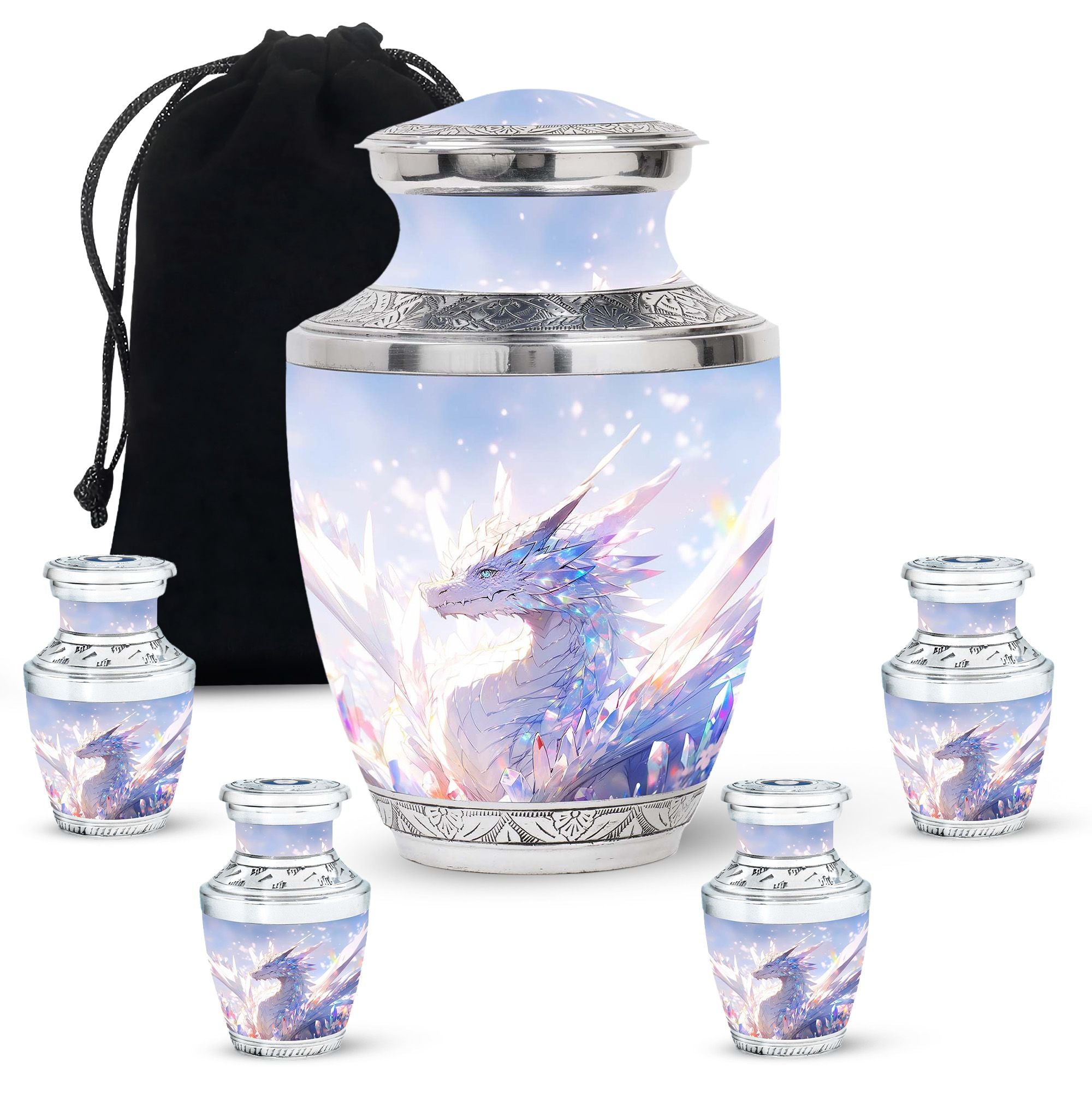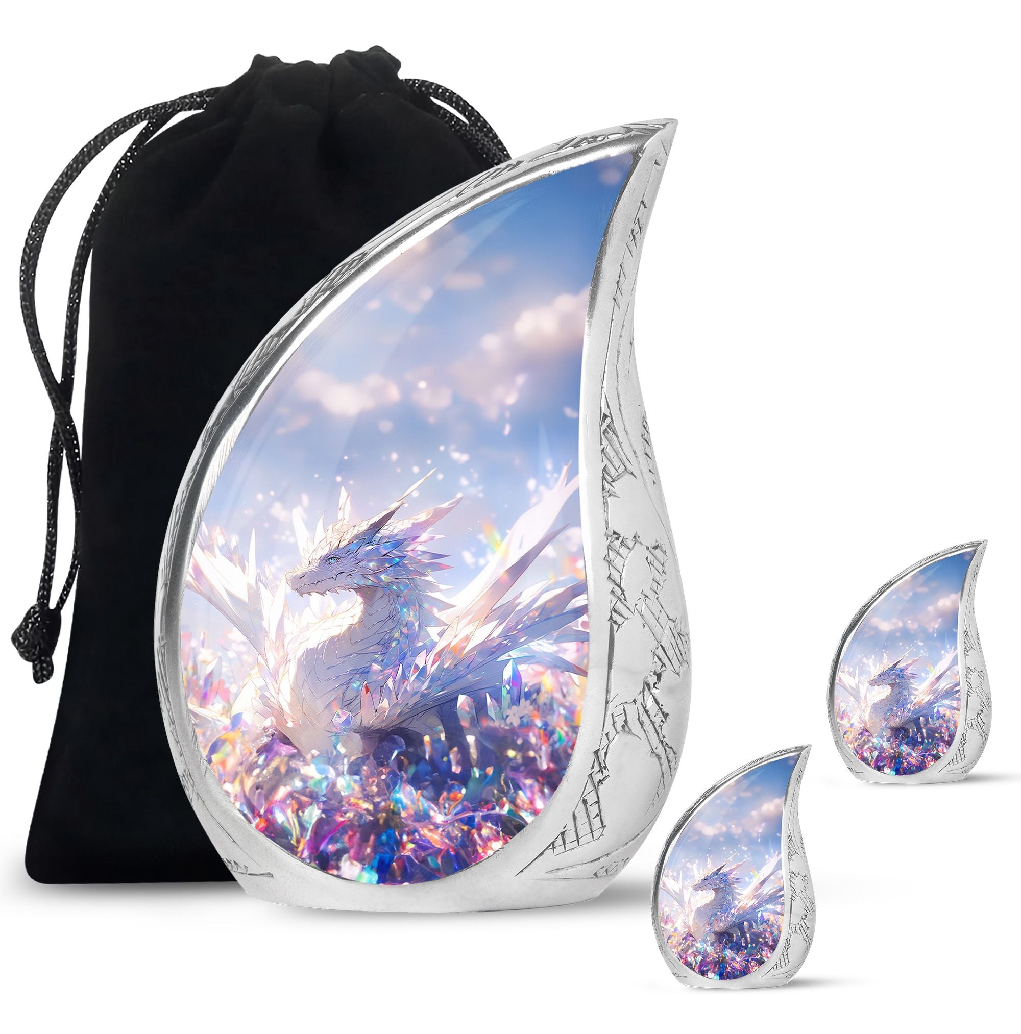 Expertly made from premium-grade aluminum, this urn features a polished crystal dragon motif that radiates light and reverence. The intricate craftsmanship ensures durability while exuding a timeless allure, perfect for home display or memorial placement. Designed to fit adult urns for human ashes large, it provides ample capacity and a secure resting place. Each urn is carefully handcrafted, symbolizing enduring love and eternal remembrance for those who hold a special place in your heart.