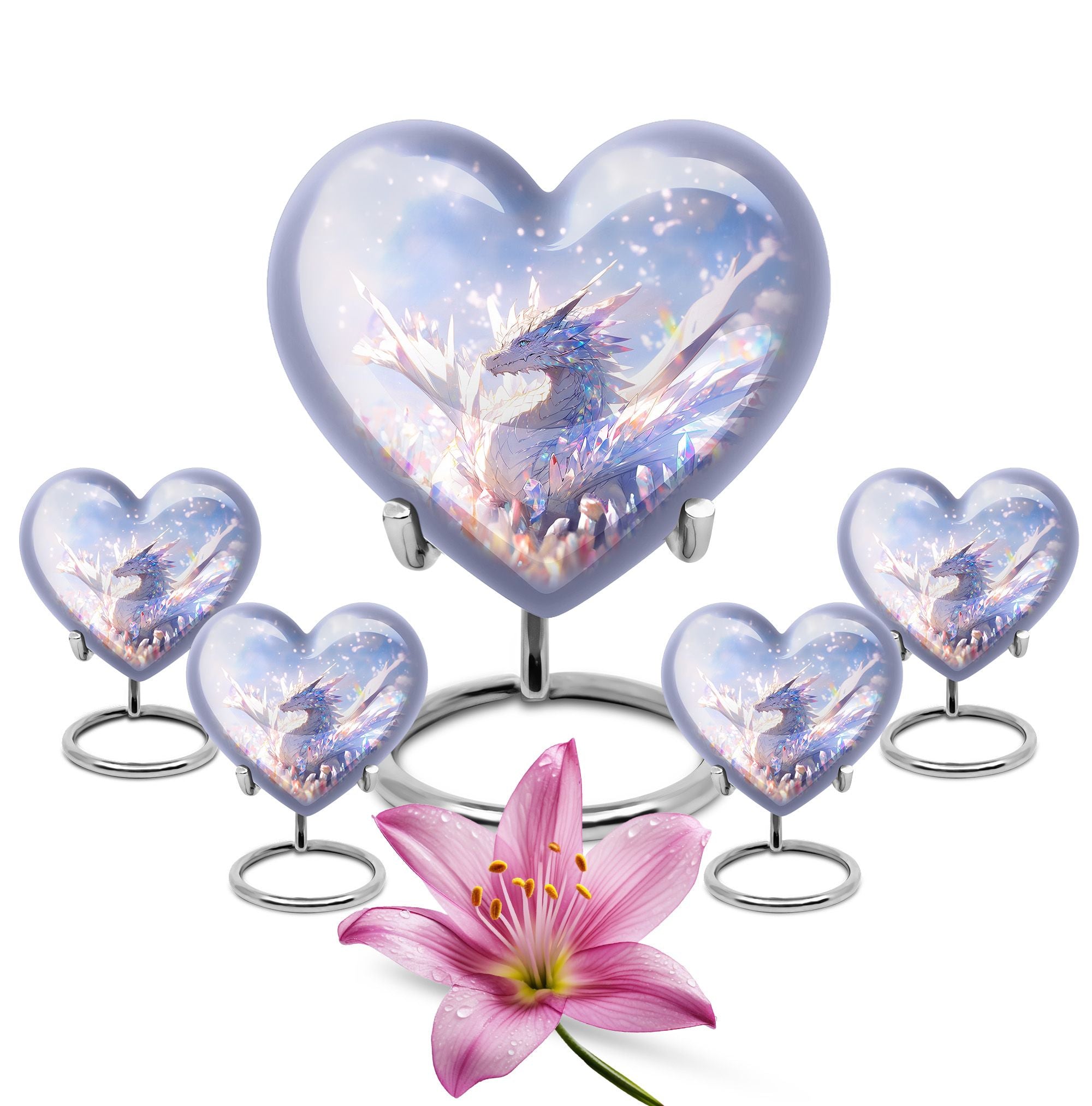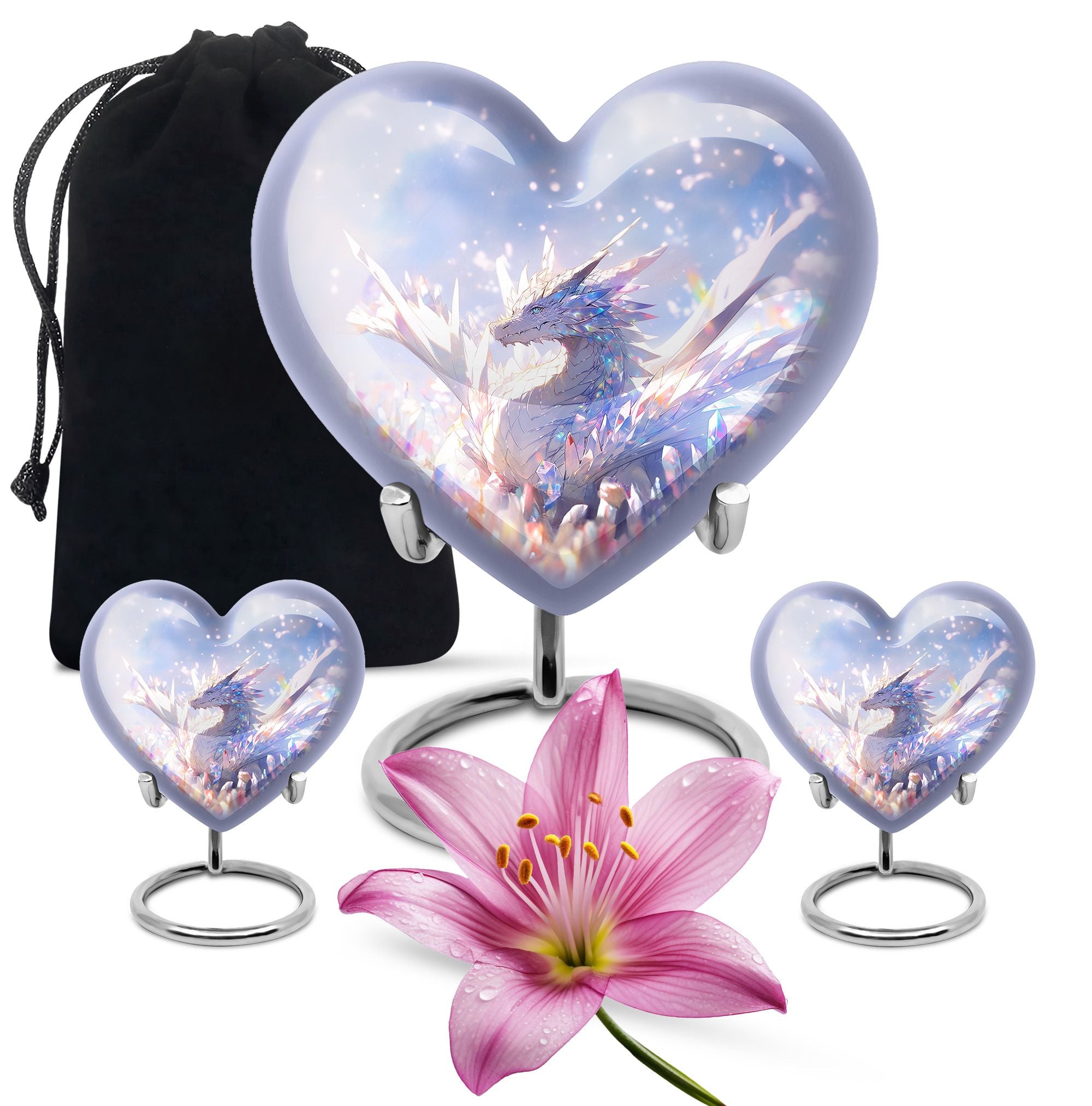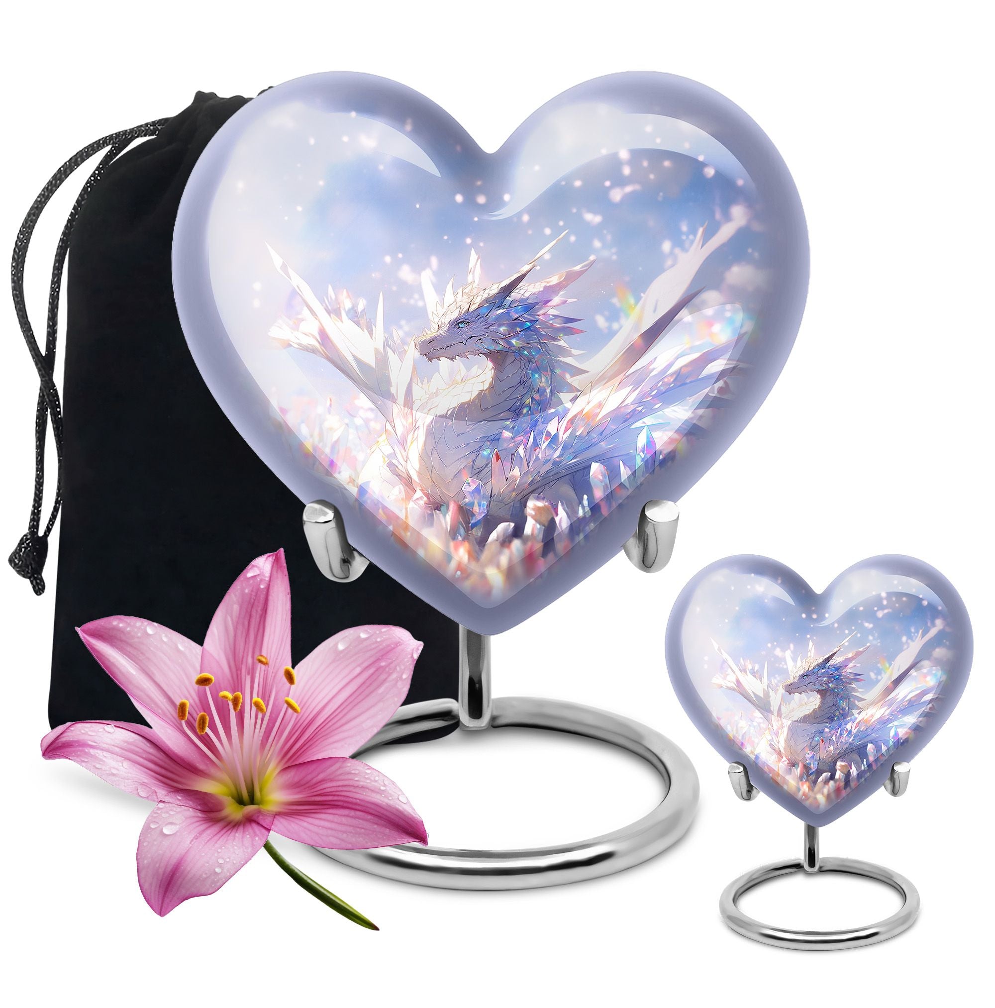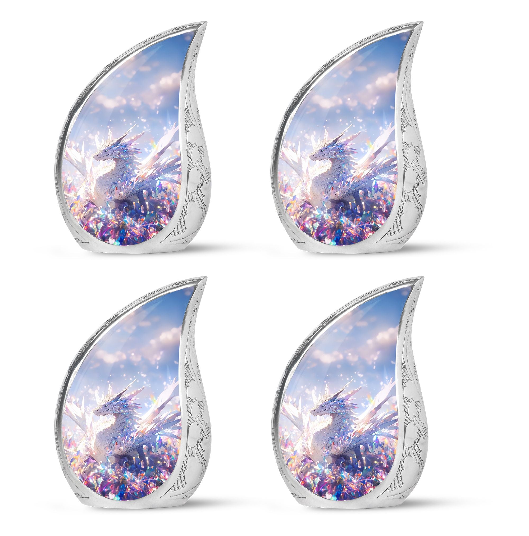 Expertly made from premium-grade aluminum, this urn features a polished crystal dragon motif that radiates light and reverence. The intricate craftsmanship ensures durability while exuding a timeless allure, perfect for home display or memorial placement. Designed to fit adult urns for human ashes large, it provides ample capacity and a secure resting place. Each urn is carefully handcrafted, symbolizing enduring love and eternal remembrance for those who hold a special place in your heart.