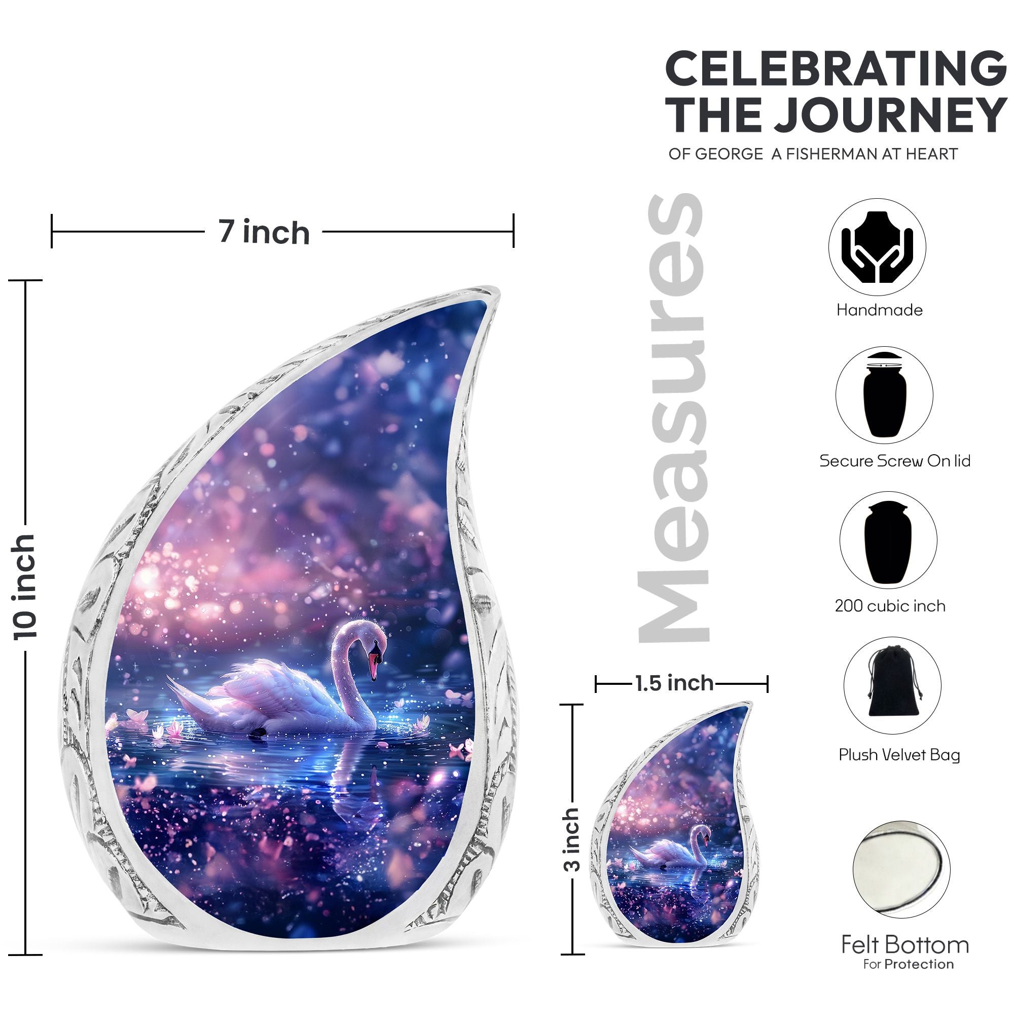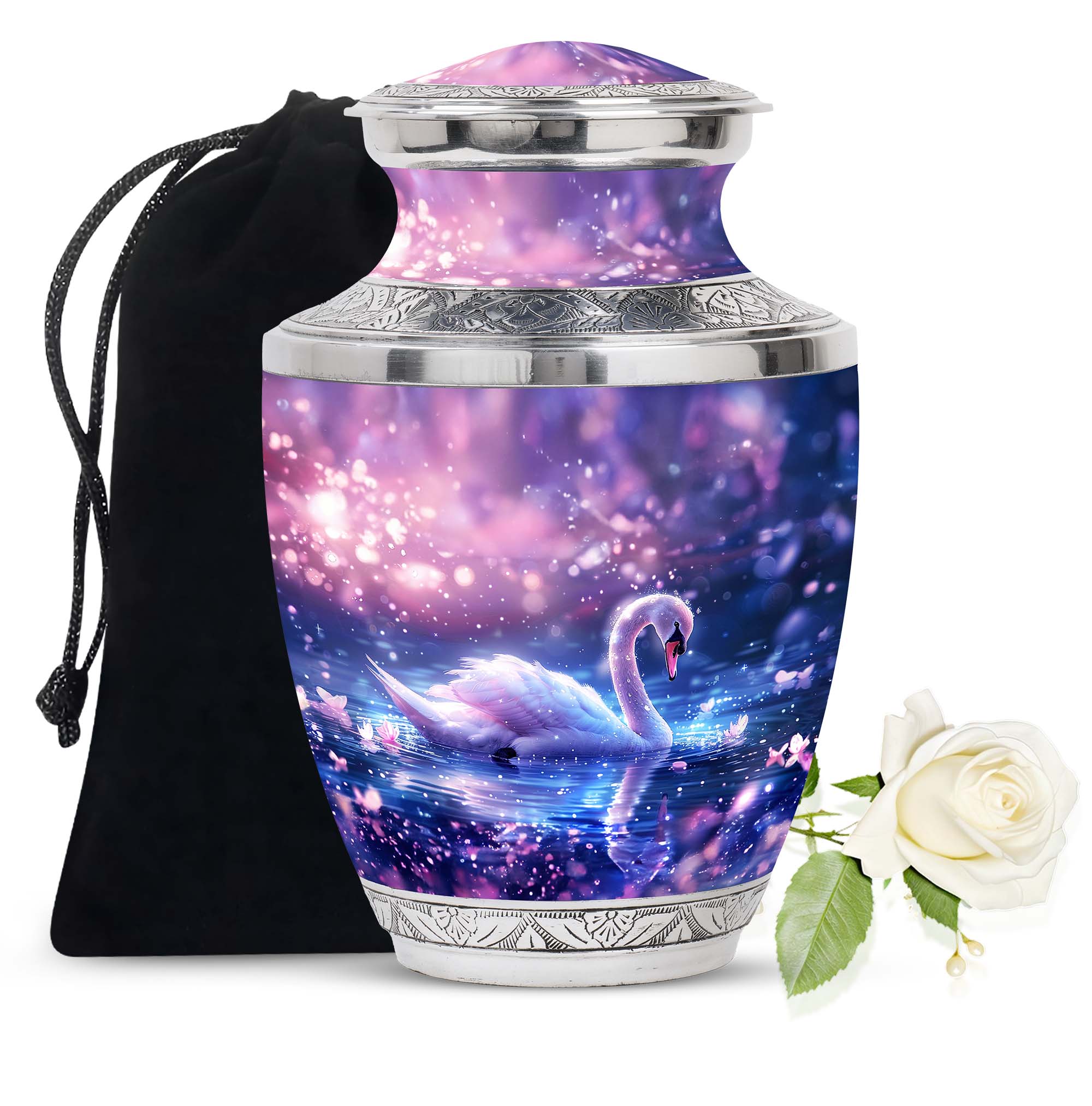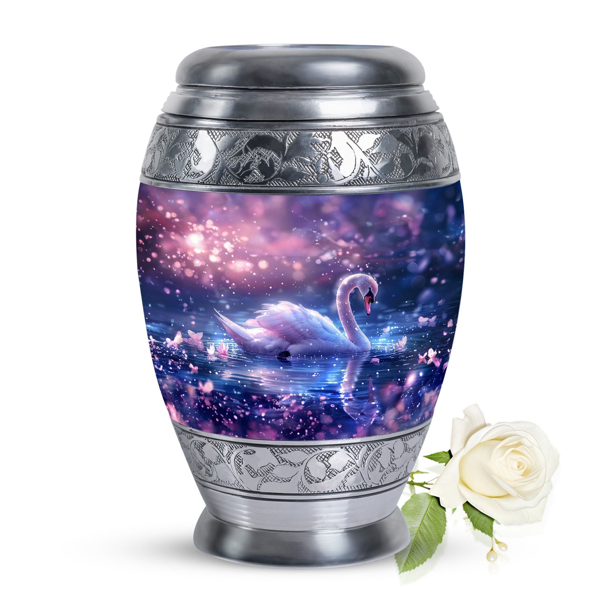 A tribute of everlasting grace, the Purple Swan Cremation Urn for Human Ashes provides a serene resting place to honor a cherished life. Designed to bring comfort and beauty, this urn helps families remember their loved ones with dignity and love. Whether chosen as a cremation urn adult male or a burial urn adult female, it stands as a timeless symbol of remembrance.