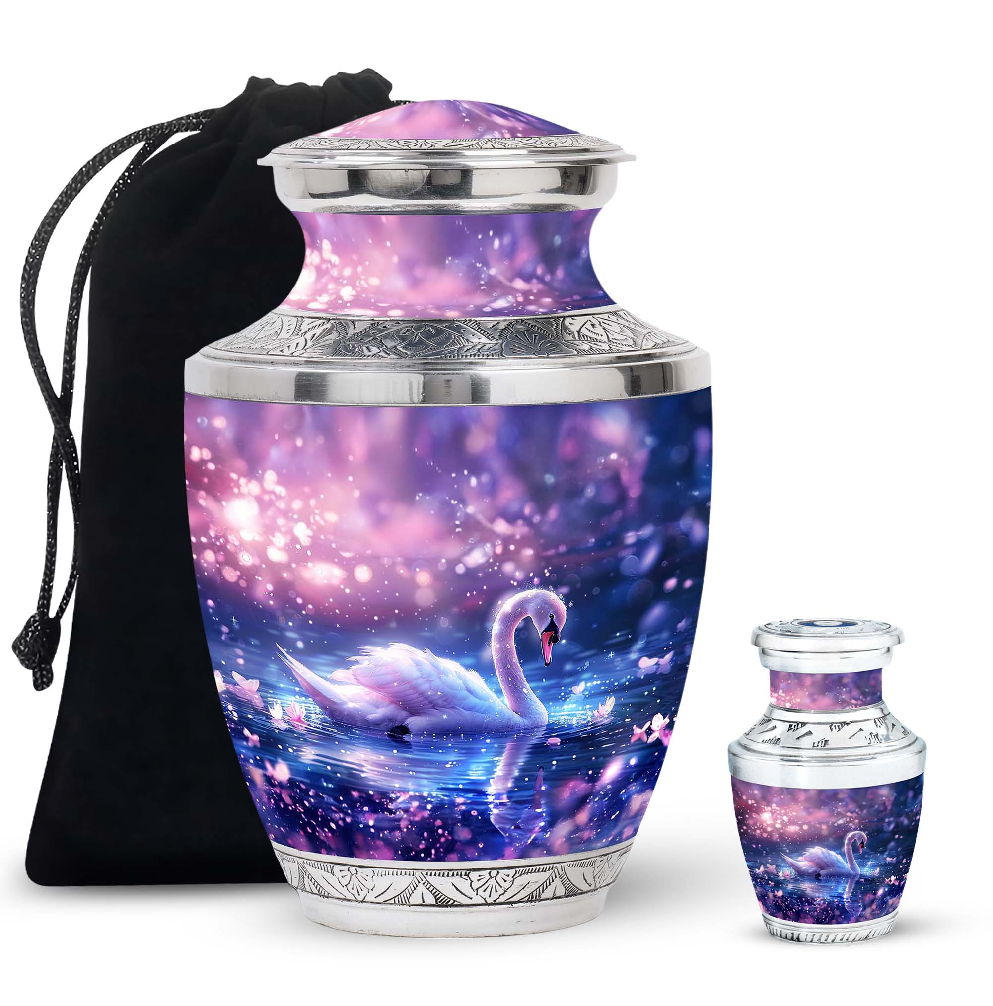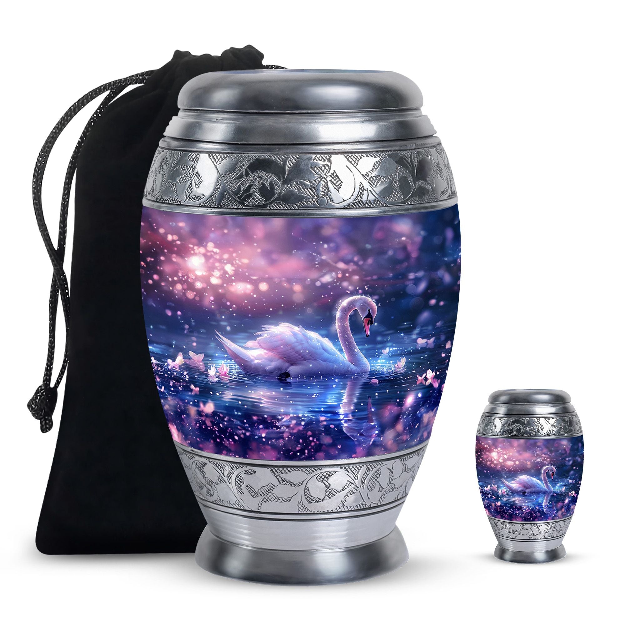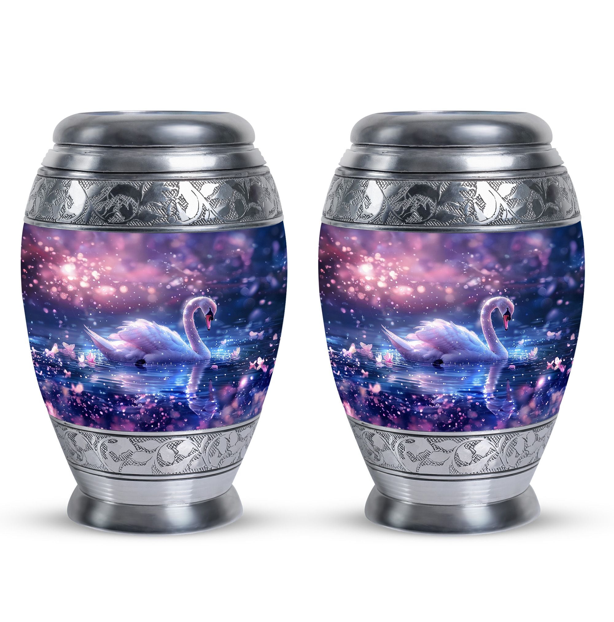 Crafted from high-quality aluminum, this urn showcases a stunning purple finish accented with delicate swan motifs — a symbol of peace and eternal love. Its smooth surface and durable design ensure long-lasting strength and elegance. Ideal for displaying at home or in a memorial niche, this urn’s craftsmanship honors both urns cremation ashes female and cremation urns adult males alike, representing unity beyond gender.