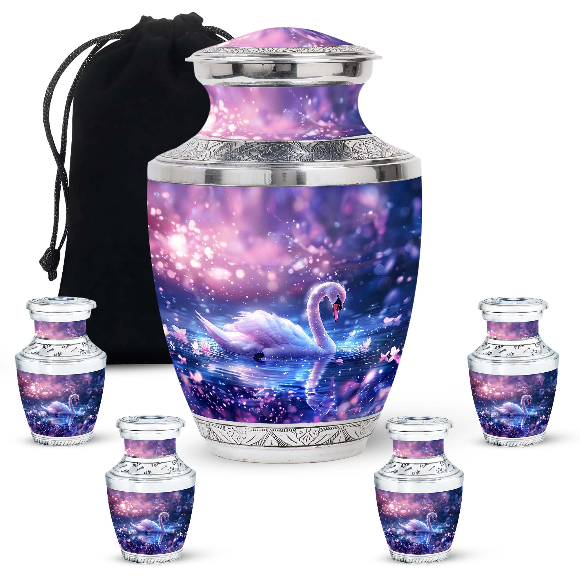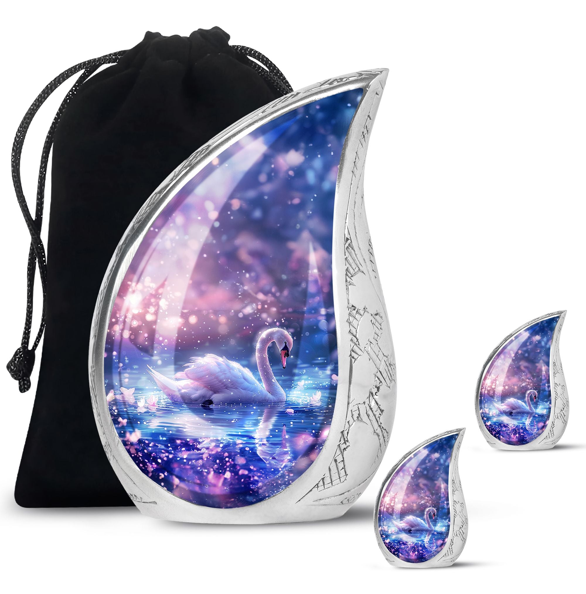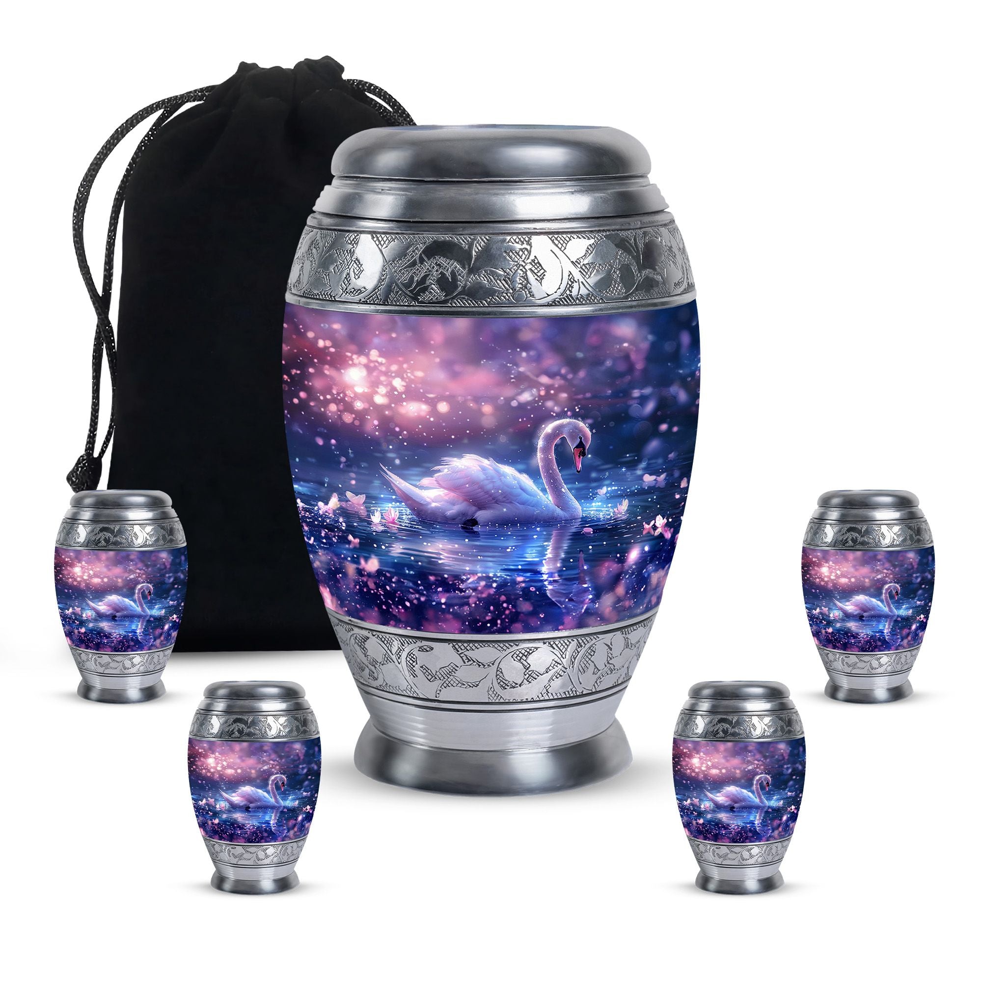 Crafted from high-quality aluminum, this urn showcases a stunning purple finish accented with delicate swan motifs — a symbol of peace and eternal love. Its smooth surface and durable design ensure long-lasting strength and elegance. Ideal for displaying at home or in a memorial niche, this urn’s craftsmanship honors both urns cremation ashes female and cremation urns adult males alike, representing unity beyond gender.