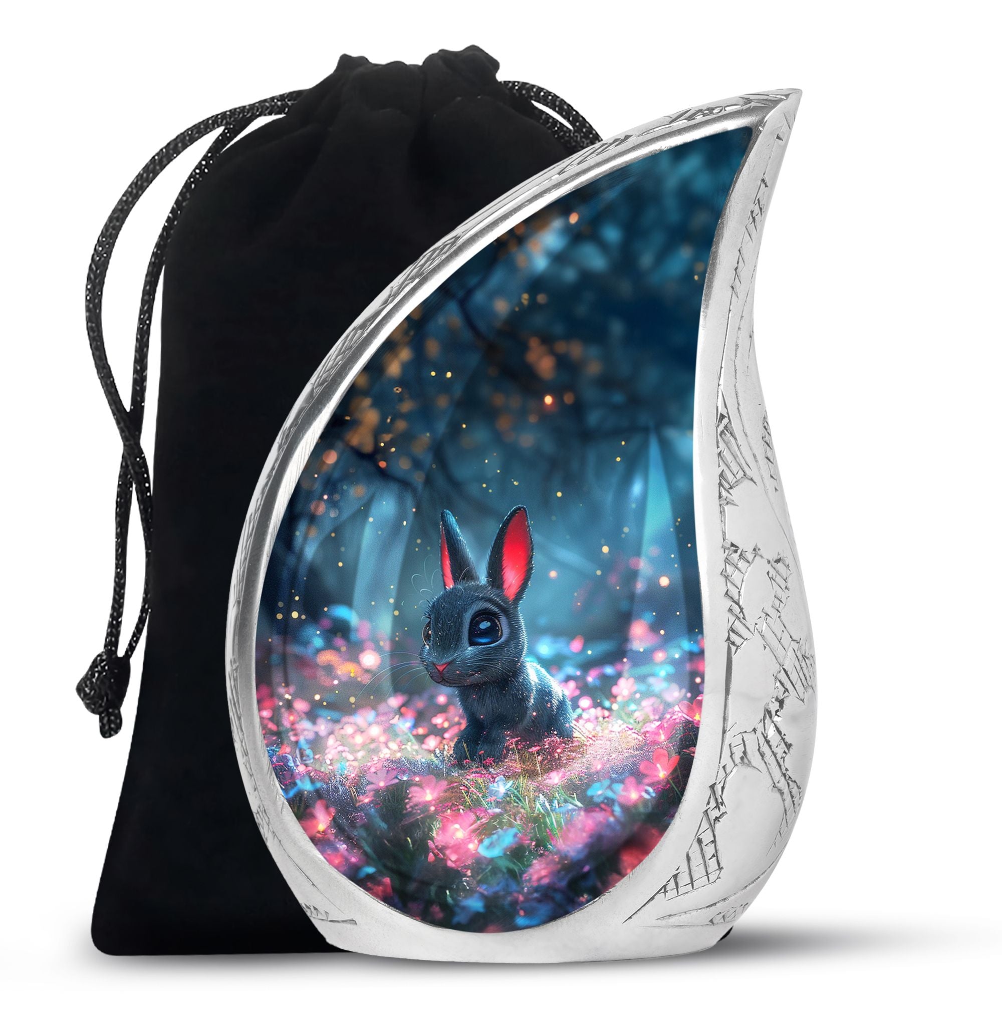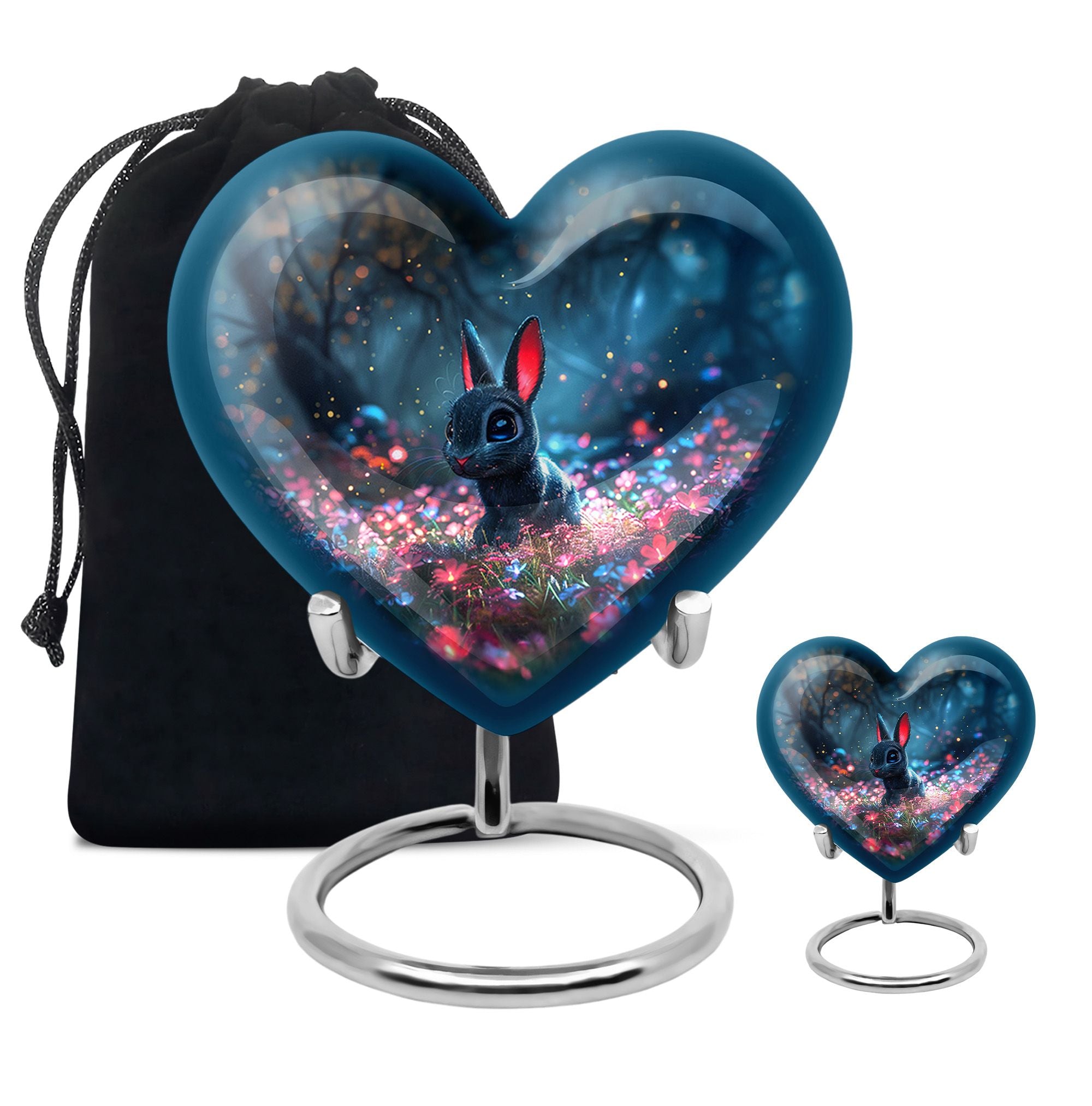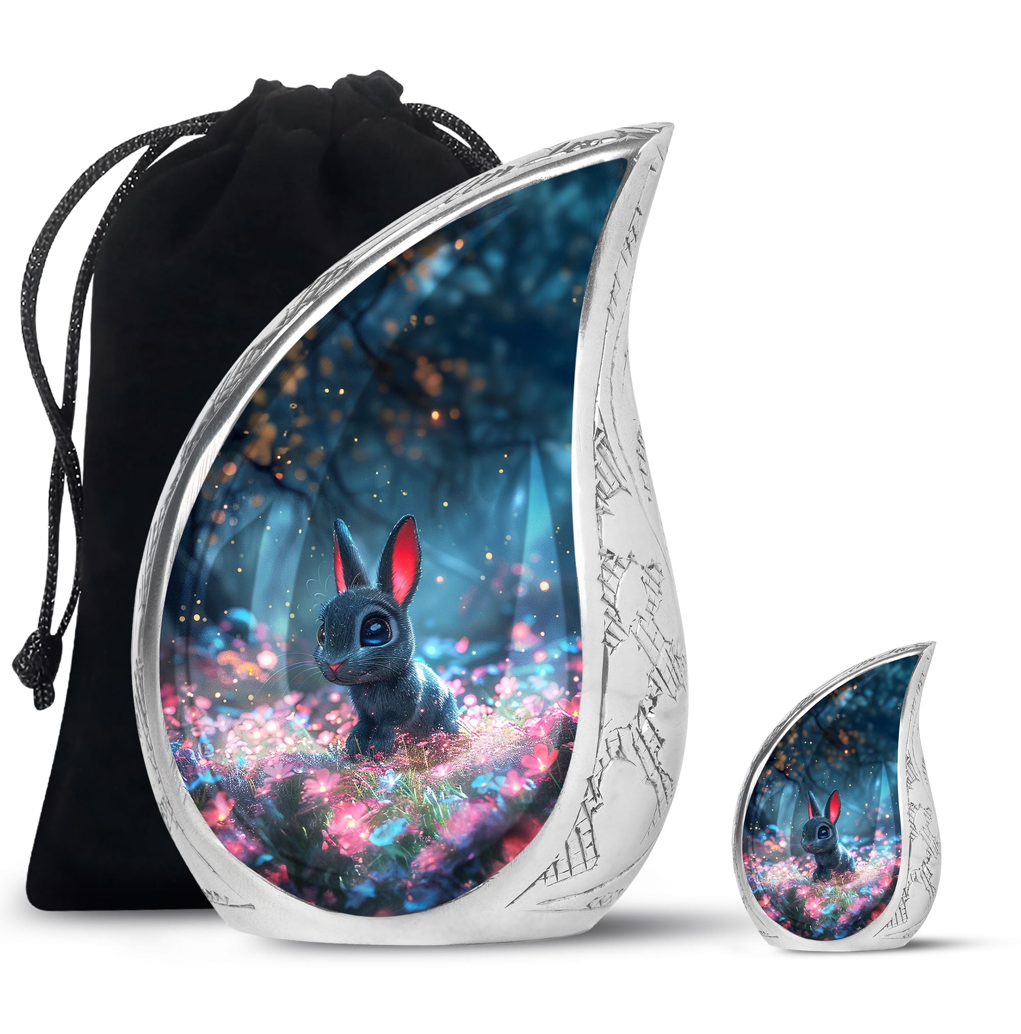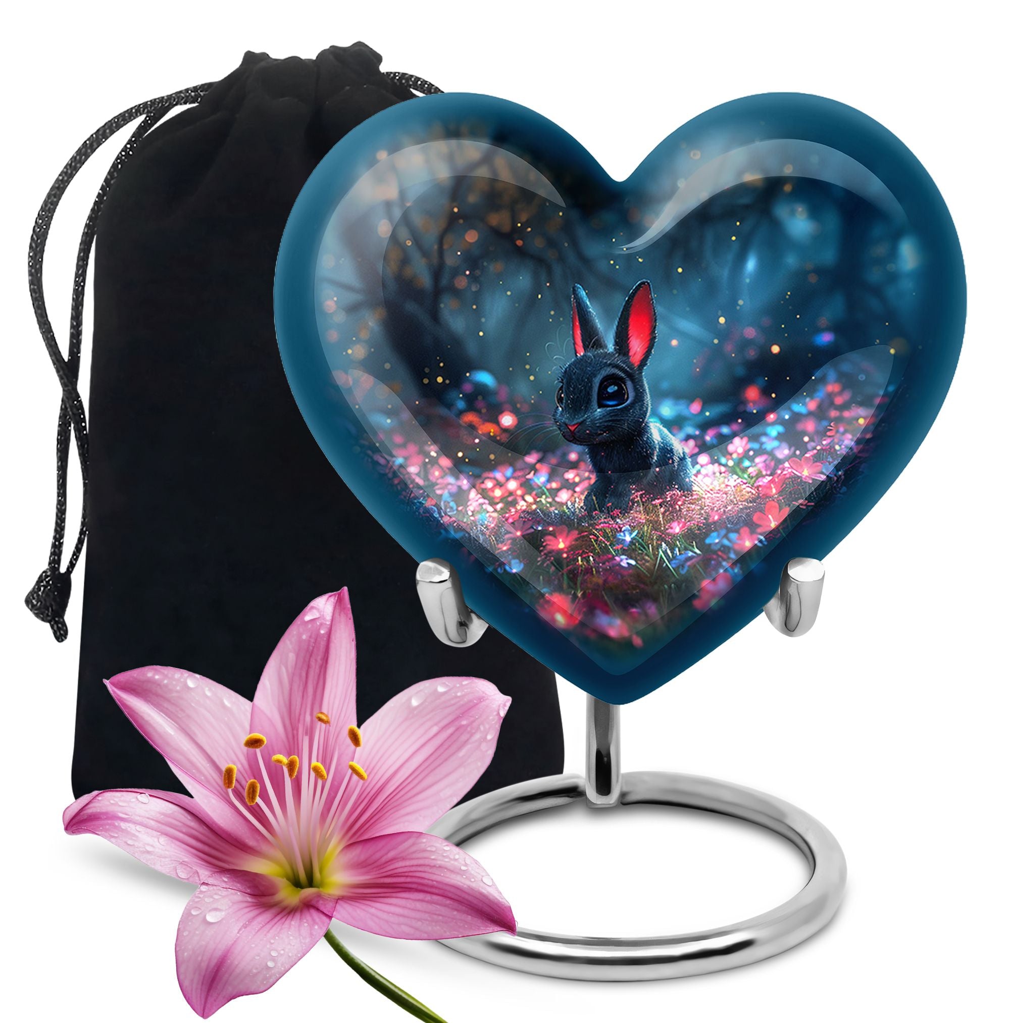Each Bunny Rabbit Cremation Urn is made with great care, featuring exquisite detailing that captures the gentle spirit of a pet bunny. Crafted from high-quality aluminum, this piece is both lightweight and durable, ensuring the ashes of your beloved companion are preserved safely. The hand-finished exterior makes it a charming heart shaped urn for pet ashes and an elegant home display. It’s suitable for anyone seeking large pet urns for ashes, mini urns for pet ashes, or personalized pet urns for ashes that reflect love and devotion.