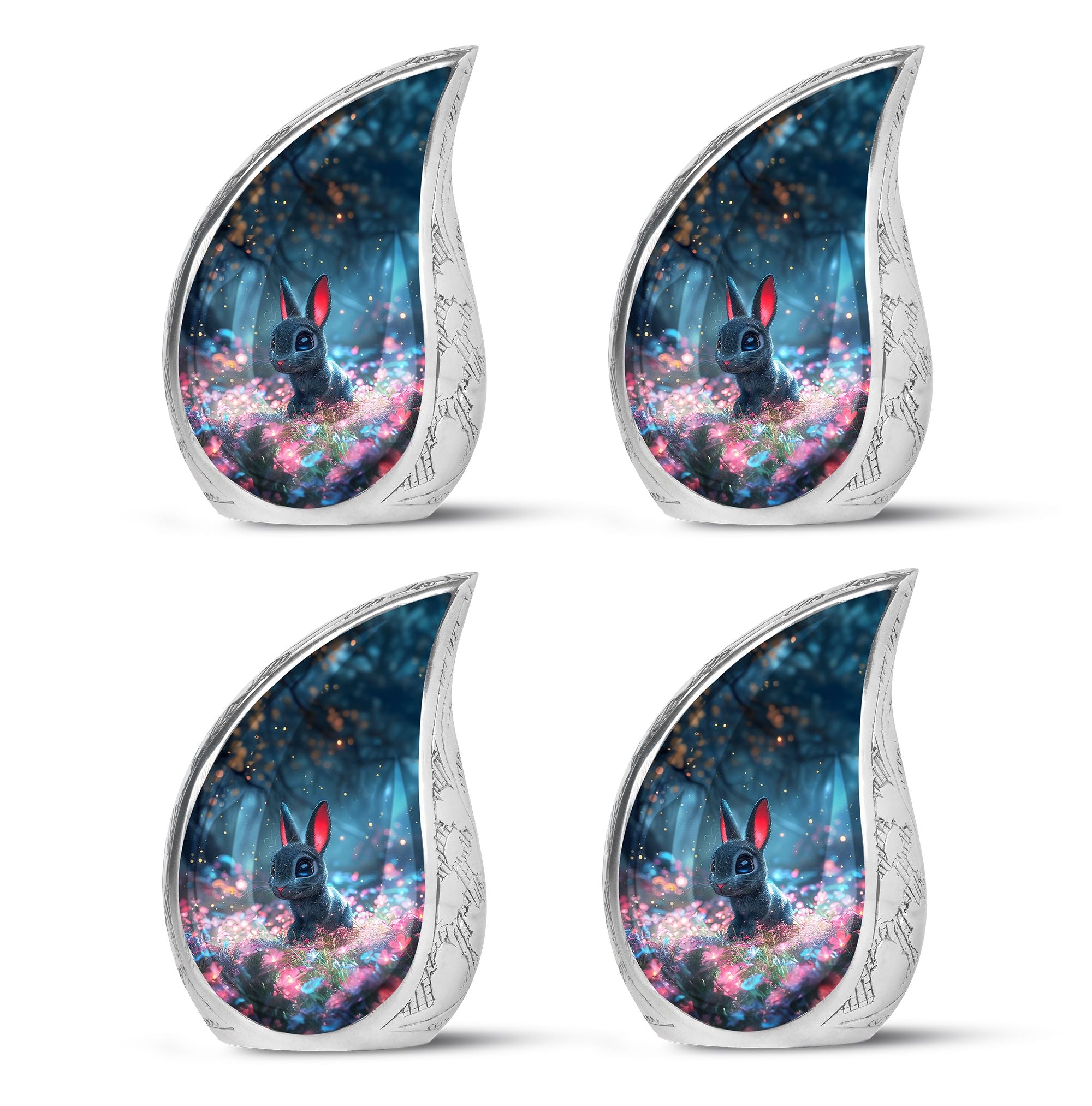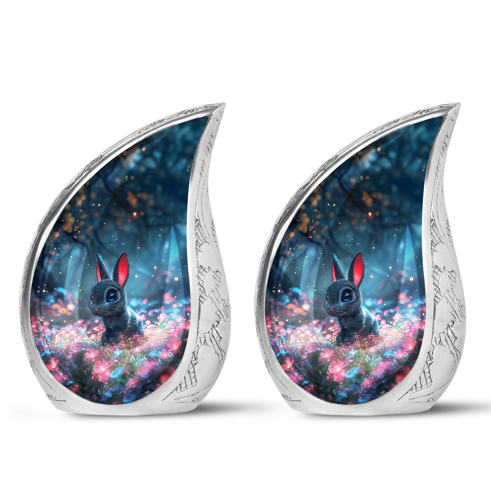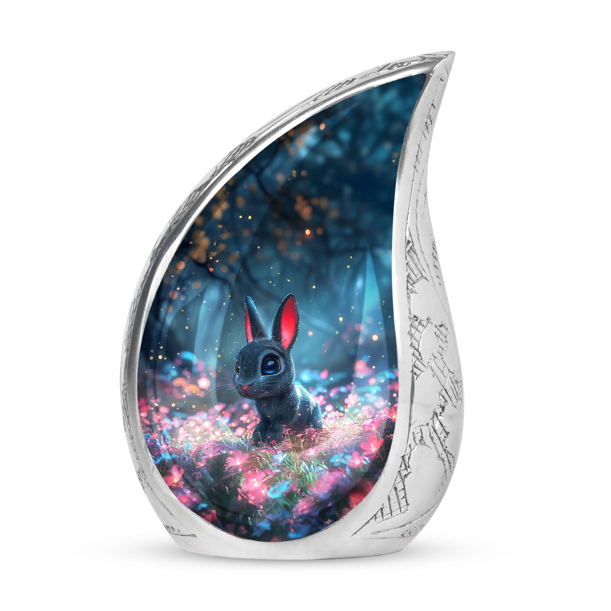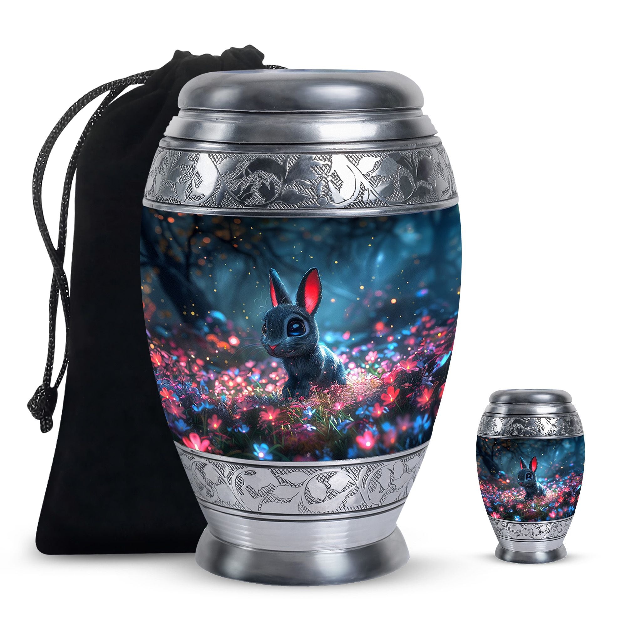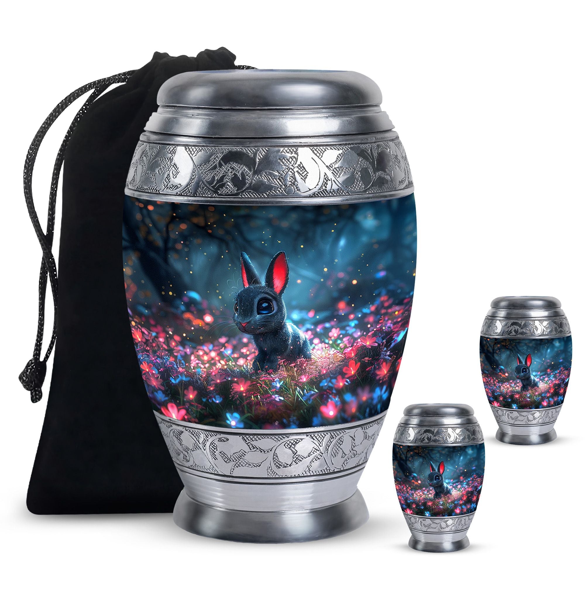 Each Bunny Rabbit Cremation Urn is made with great care, featuring exquisite detailing that captures the gentle spirit of a pet bunny. Crafted from high-quality aluminum, this piece is both lightweight and durable, ensuring the ashes of your beloved companion are preserved safely. The hand-finished exterior makes it a charming heart shaped urn for pet ashes and an elegant home display. It’s suitable for anyone seeking large pet urns for ashes, mini urns for pet ashes, or personalized pet urns for ashes that reflect love and devotion.