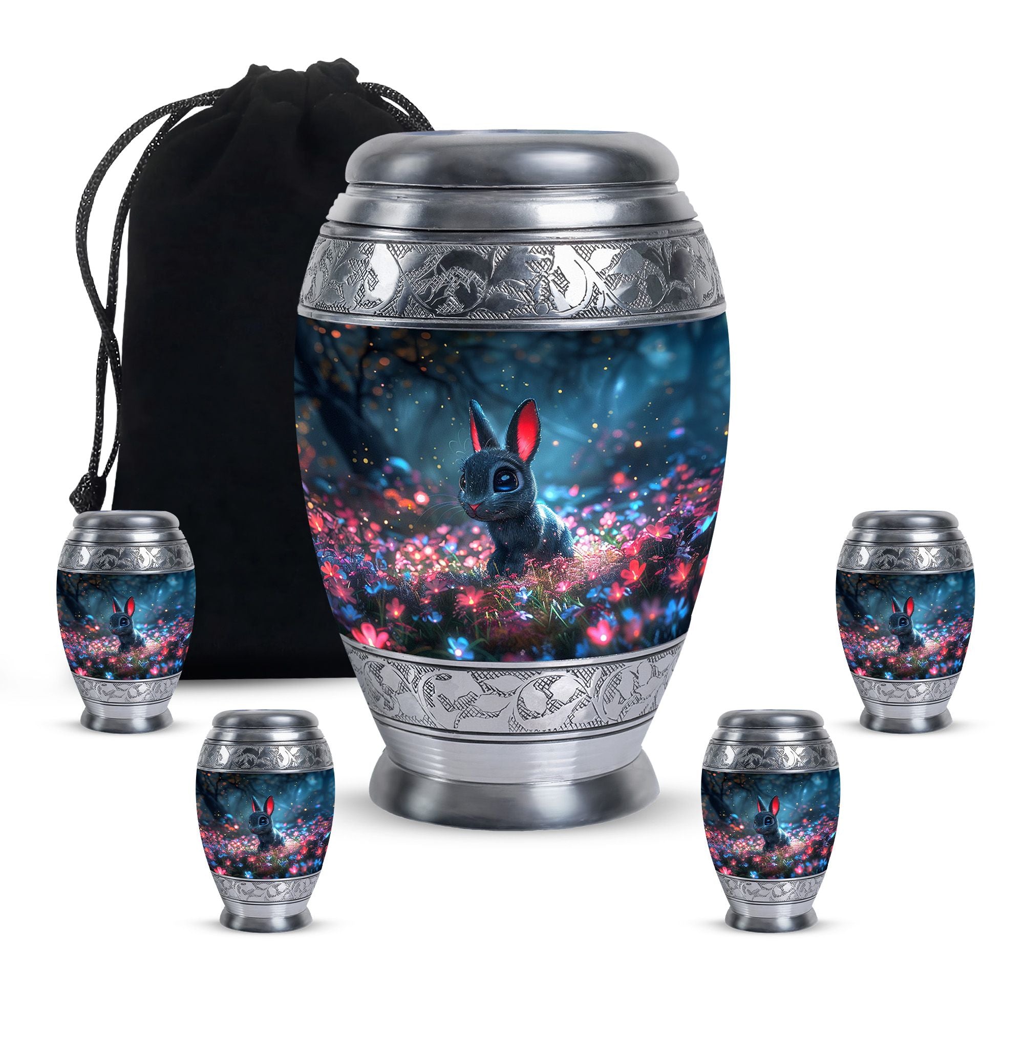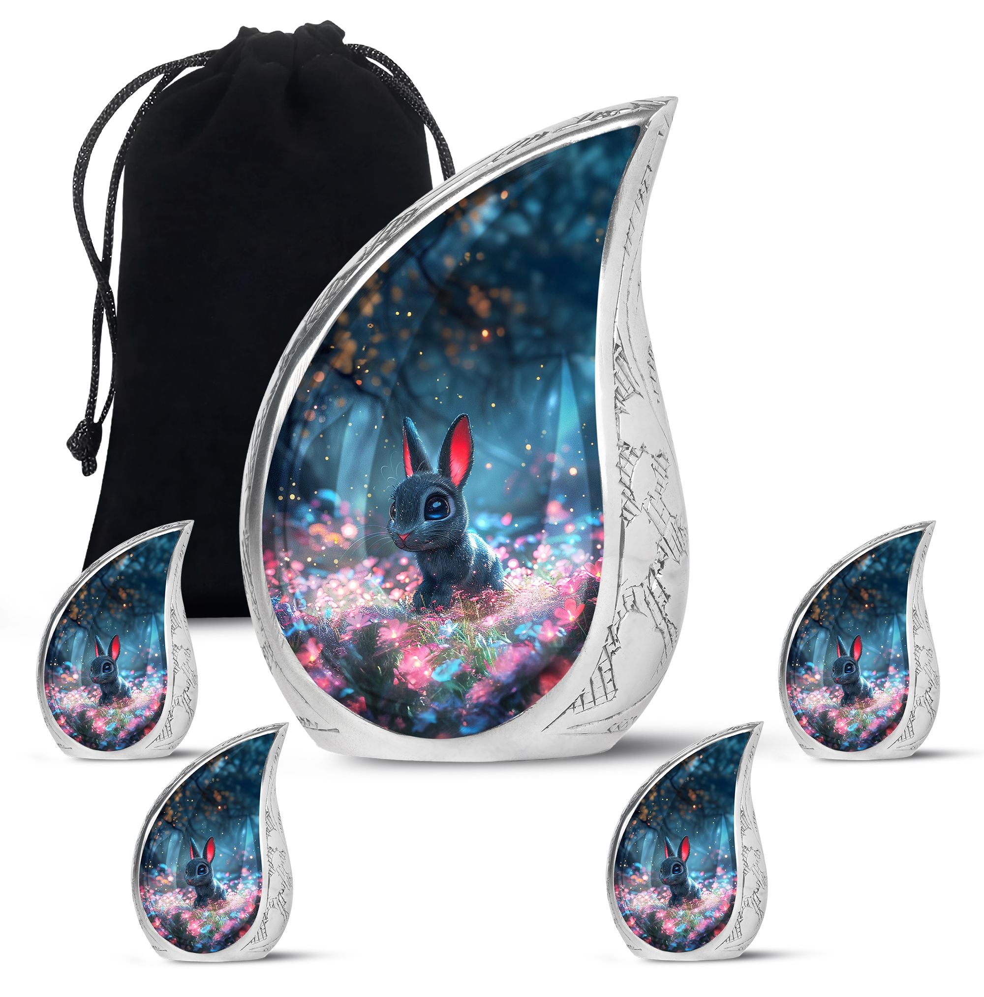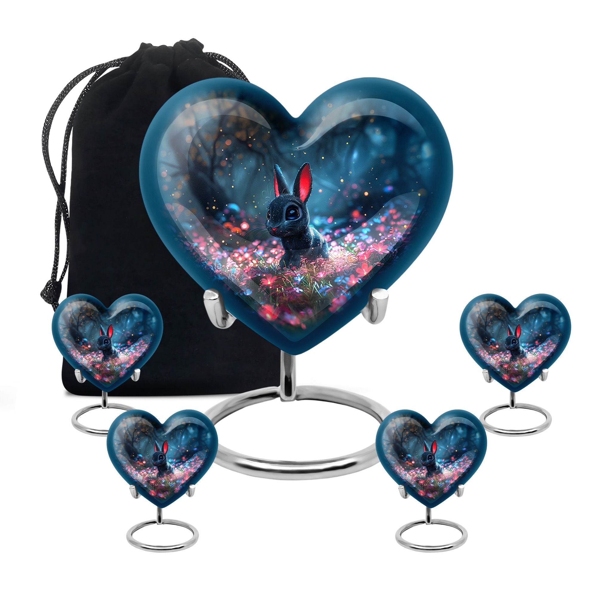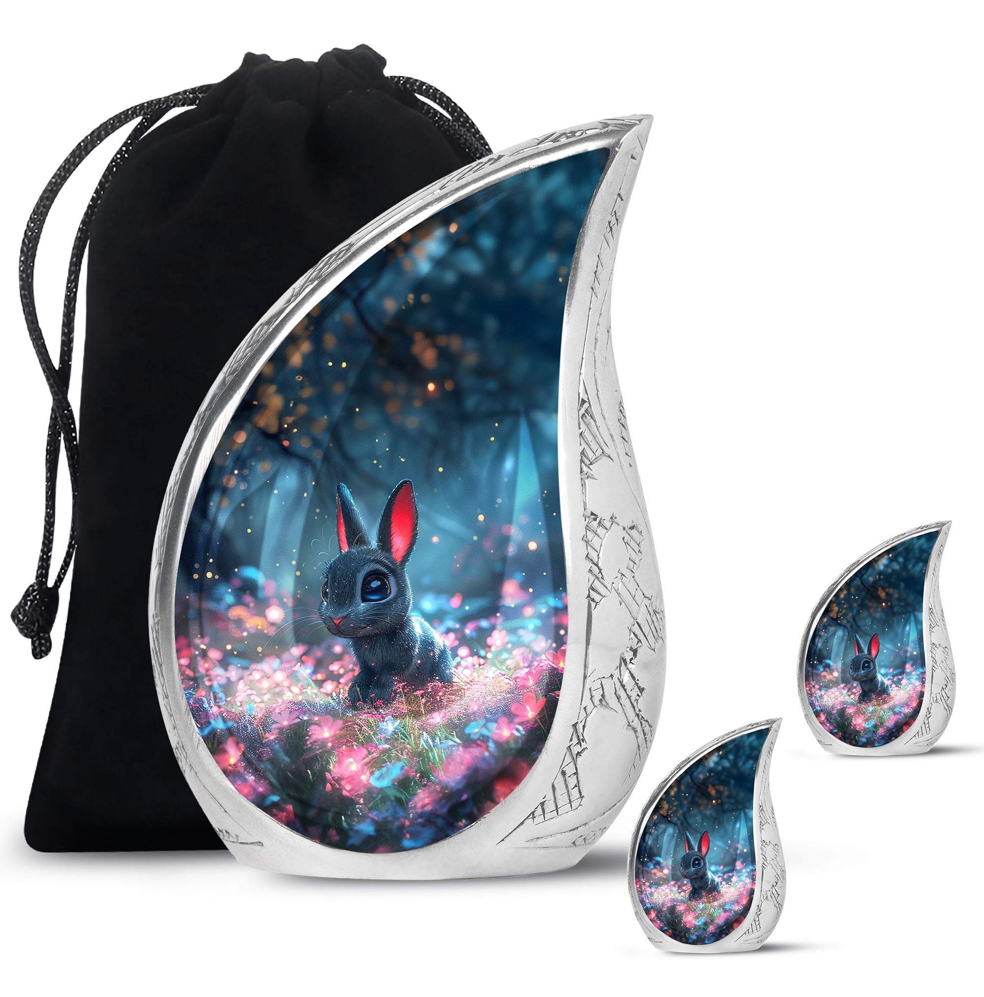 Each Bunny Rabbit Cremation Urn is made with great care, featuring exquisite detailing that captures the gentle spirit of a pet bunny. Crafted from high-quality aluminum, this piece is both lightweight and durable, ensuring the ashes of your beloved companion are preserved safely. The hand-finished exterior makes it a charming heart shaped urn for pet ashes and an elegant home display. It’s suitable for anyone seeking large pet urns for ashes, mini urns for pet ashes, or personalized pet urns for ashes that reflect love and devotion.