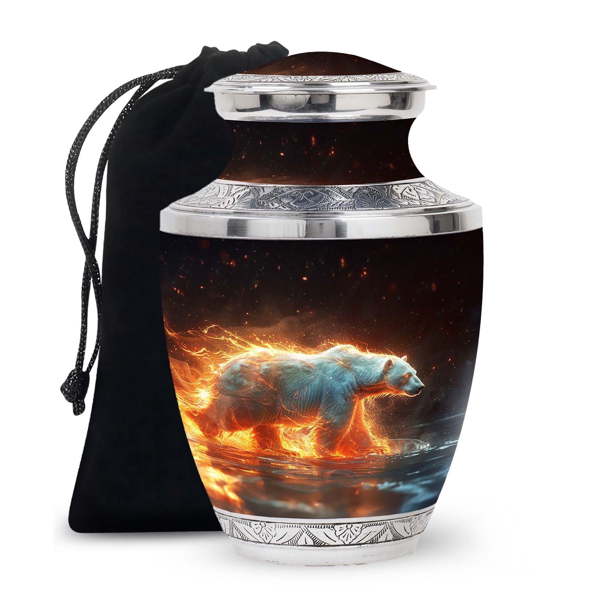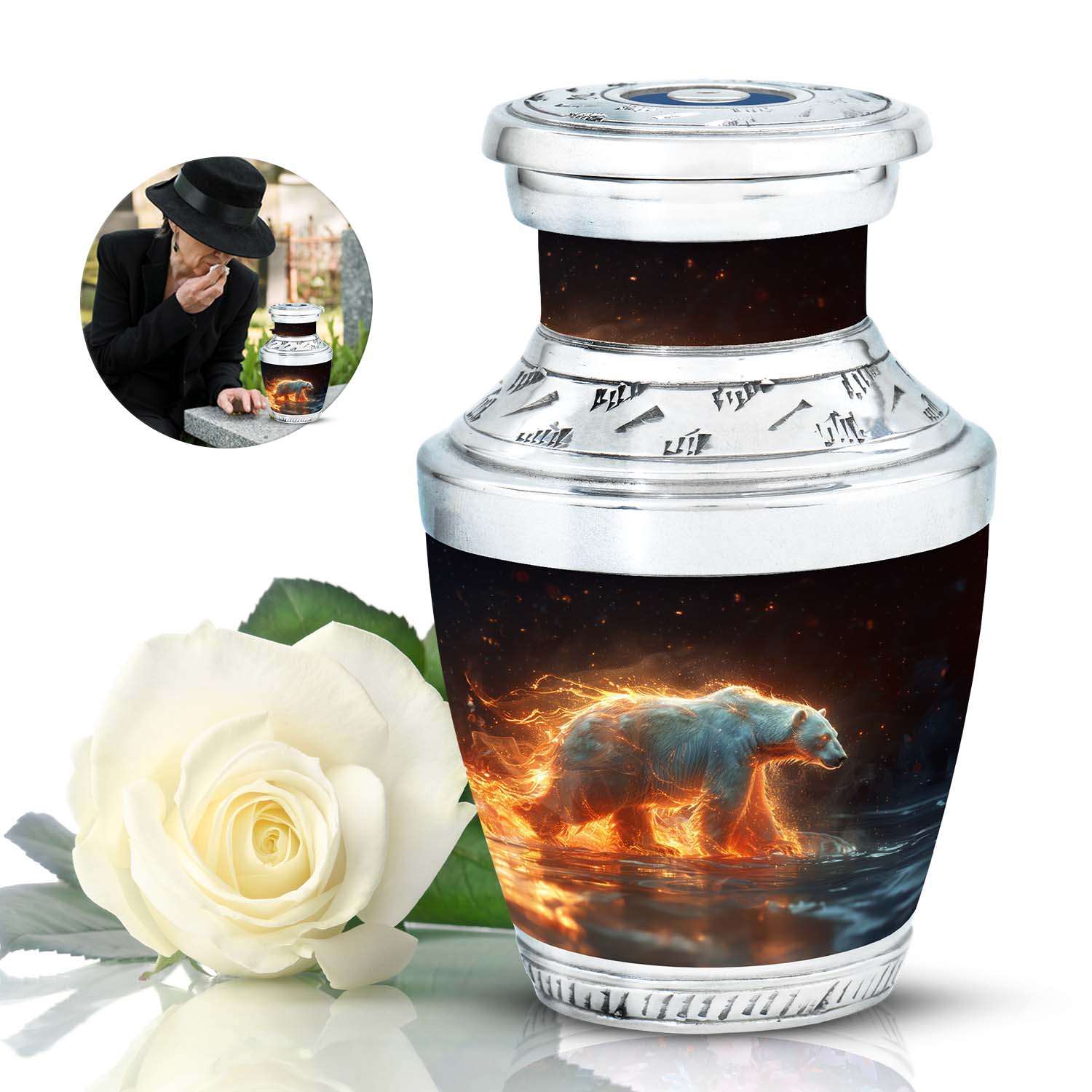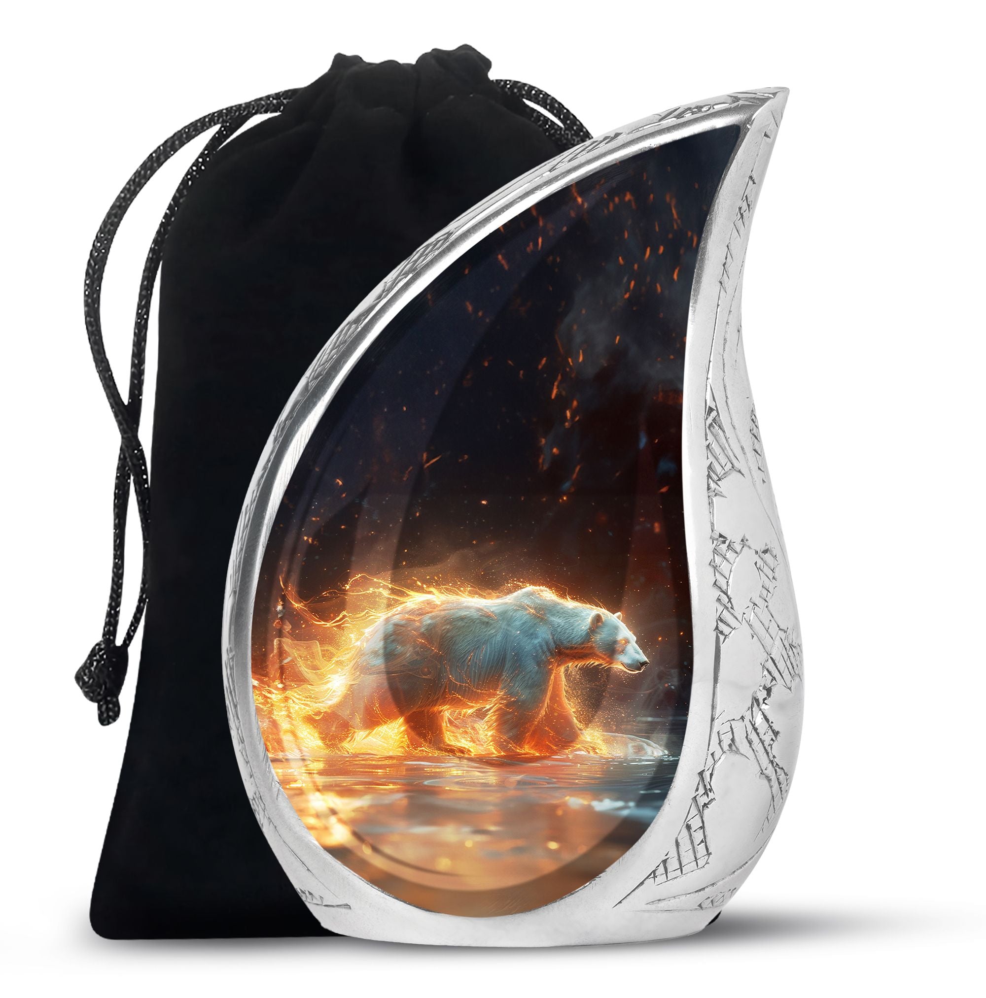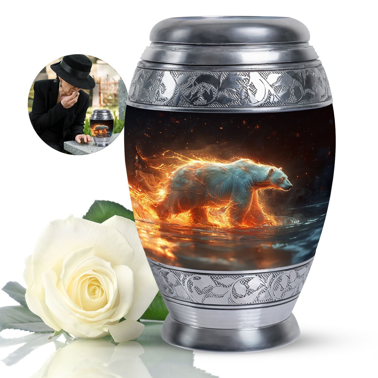 The Fierce Polar Bear Urn offers a powerful and heartfelt tribute to honor the memory of your loved one. Crafted with care, this urn serves as a meaningful cremation remains container and commemorative urn, providing families a way to preserve precious memories and create lasting keepsakes for ashes of loved ones.