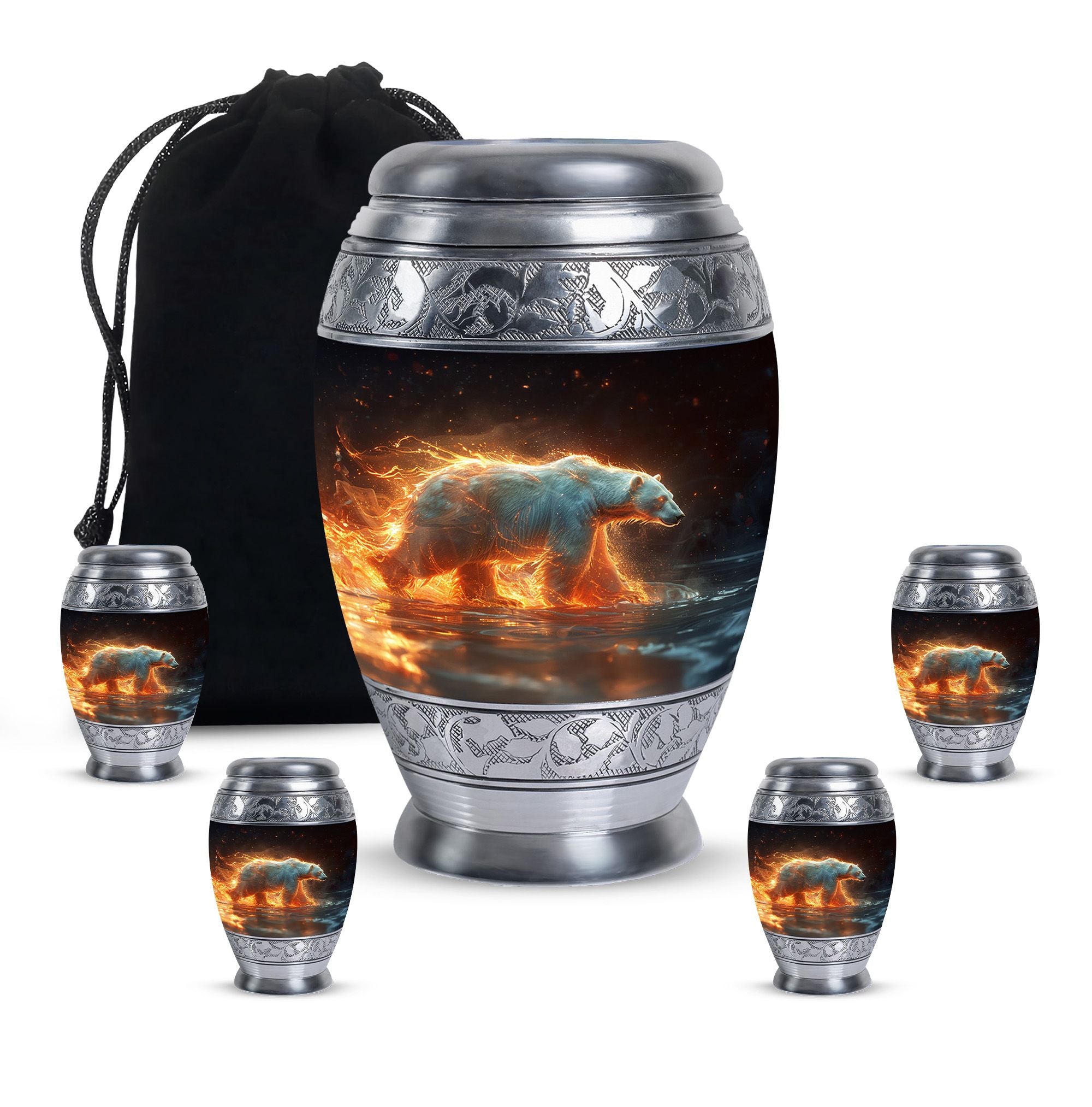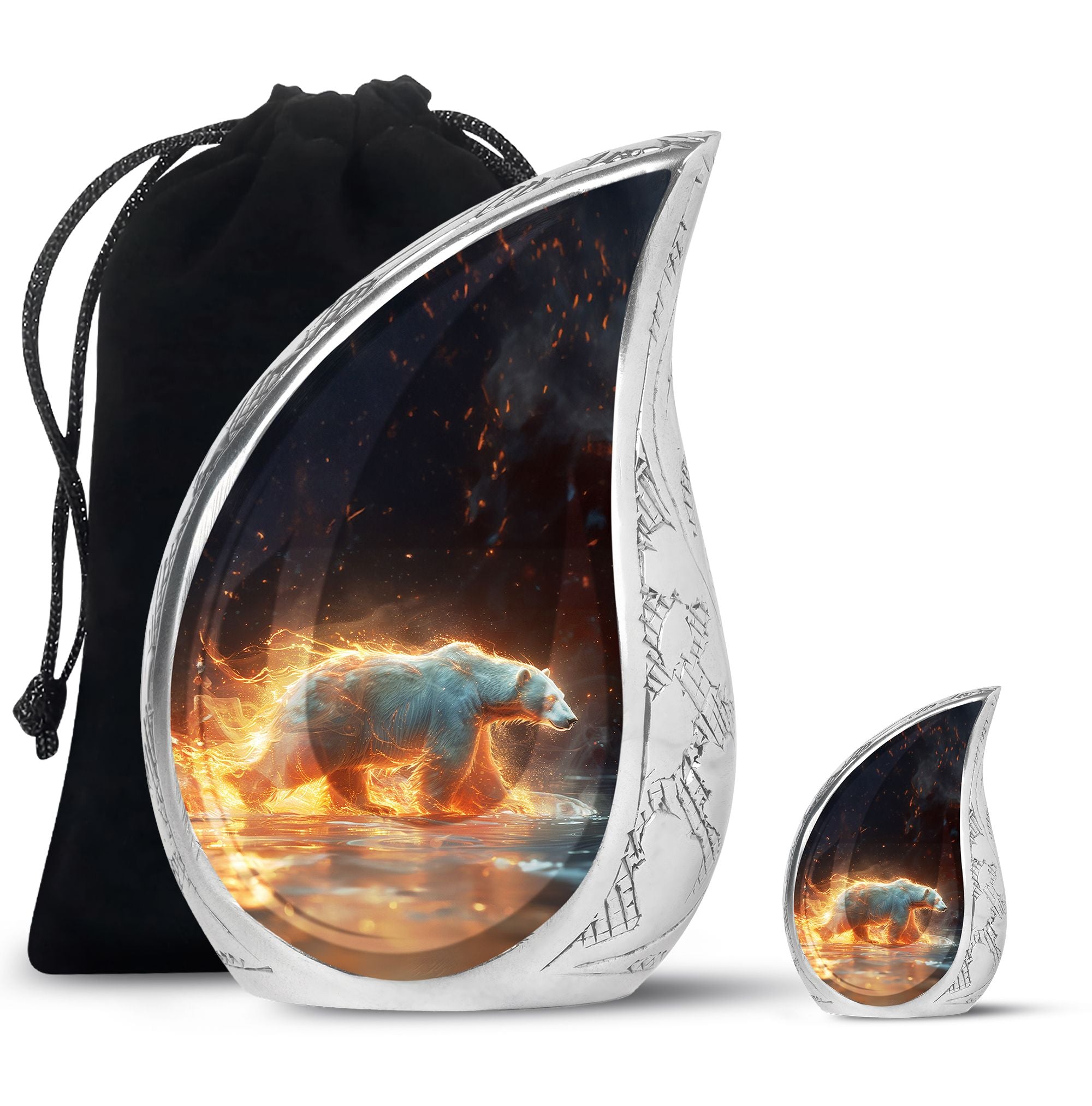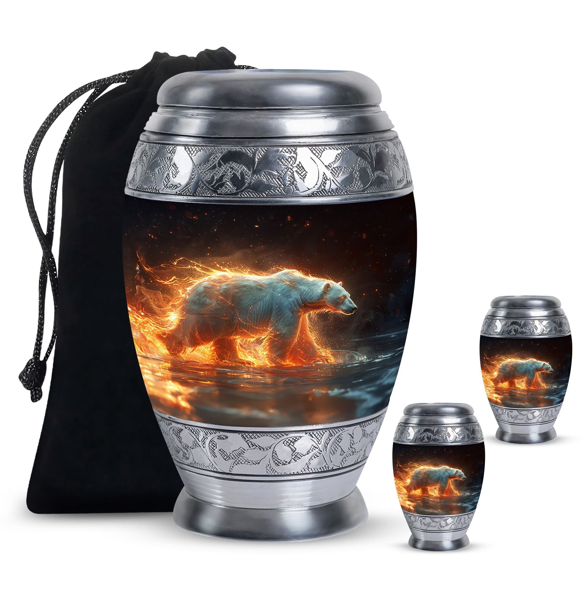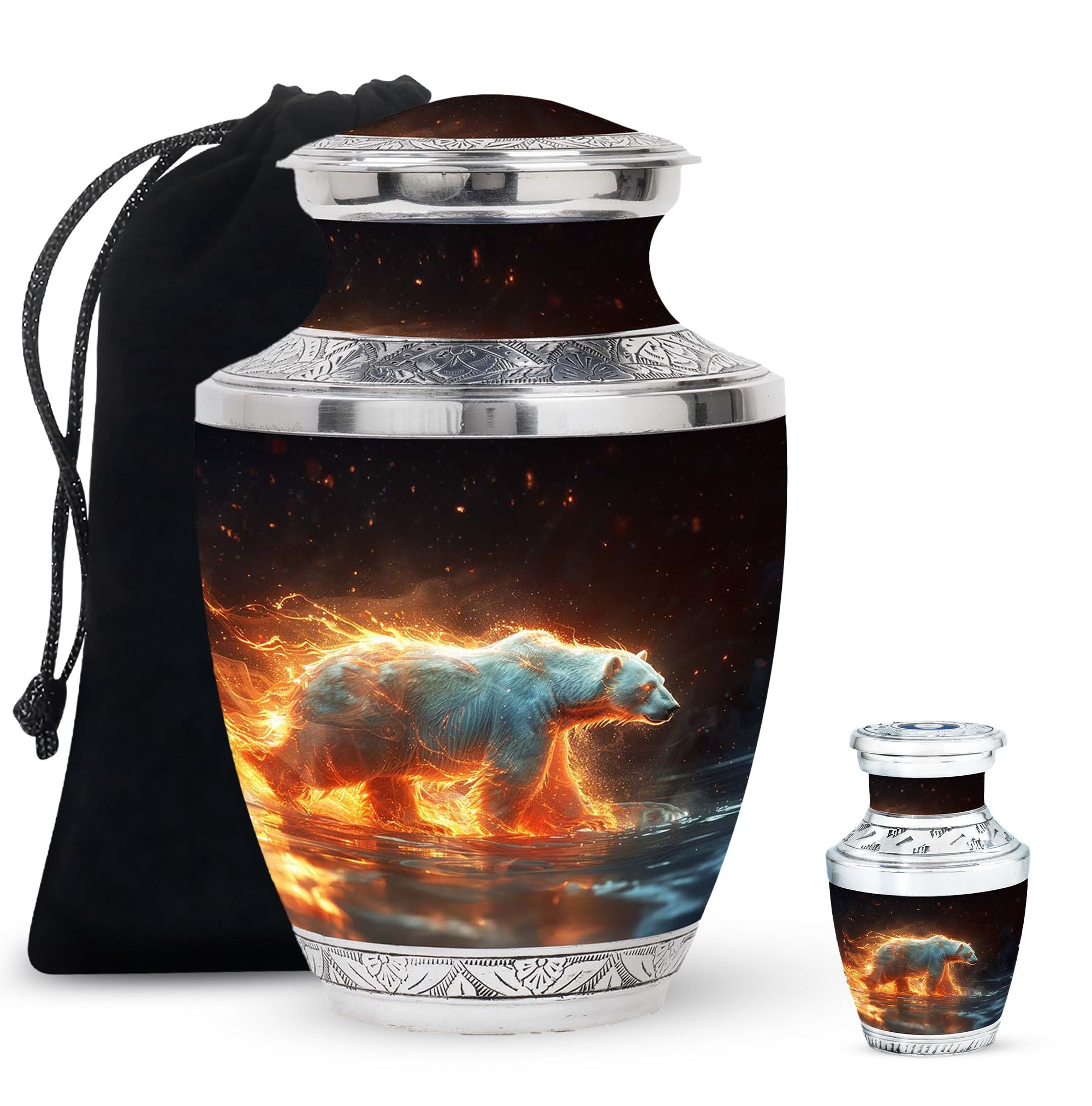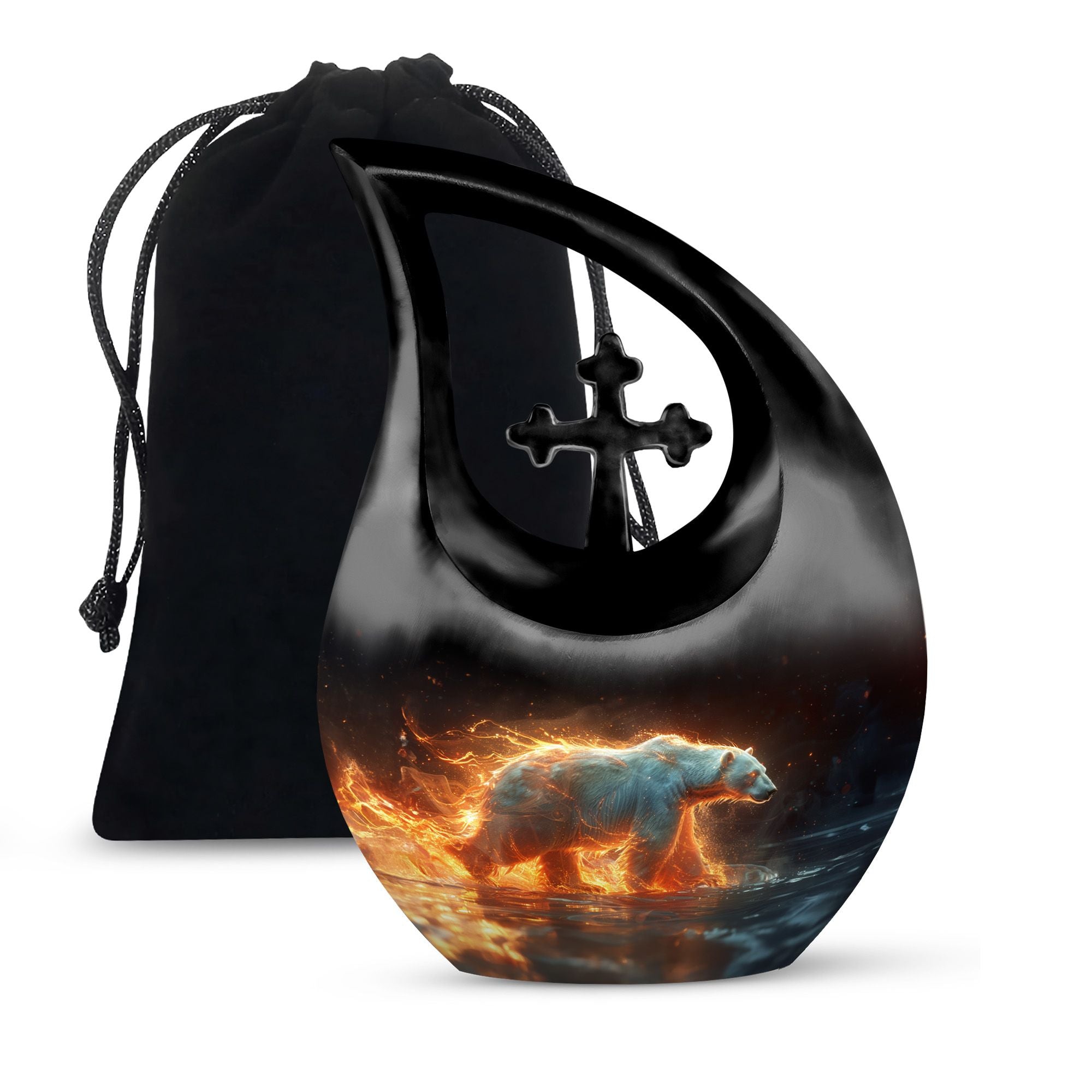 The Fierce Polar Bear Urn offers a powerful and heartfelt tribute to honor the memory of your loved one. Crafted with care, this urn serves as a meaningful cremation remains container and commemorative urn, providing families a way to preserve precious memories and create lasting keepsakes for ashes of loved ones.