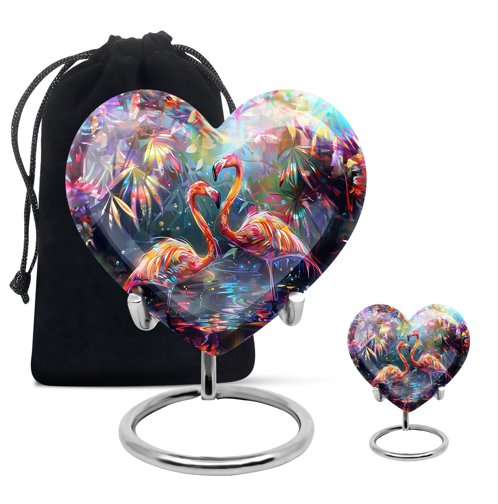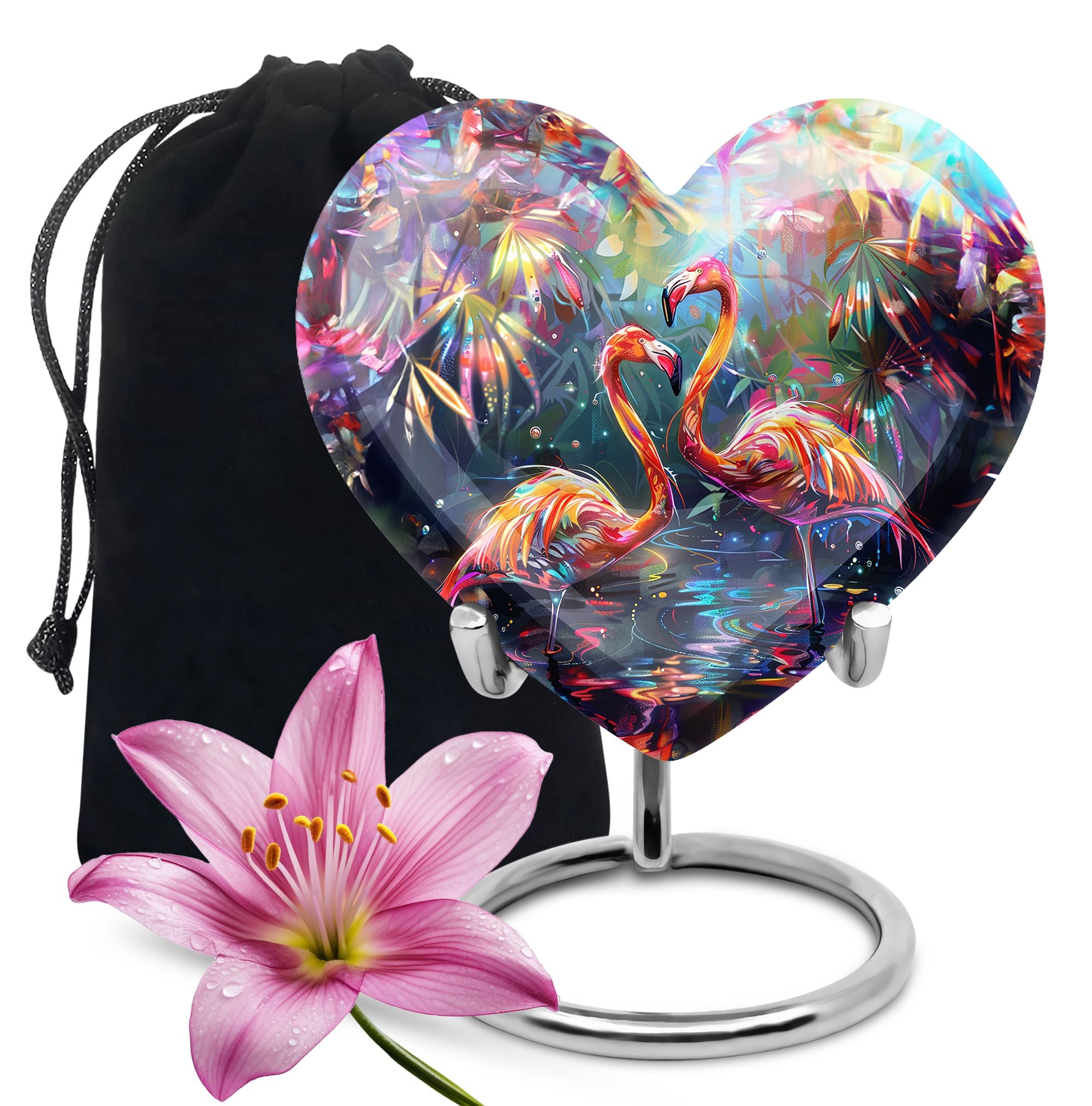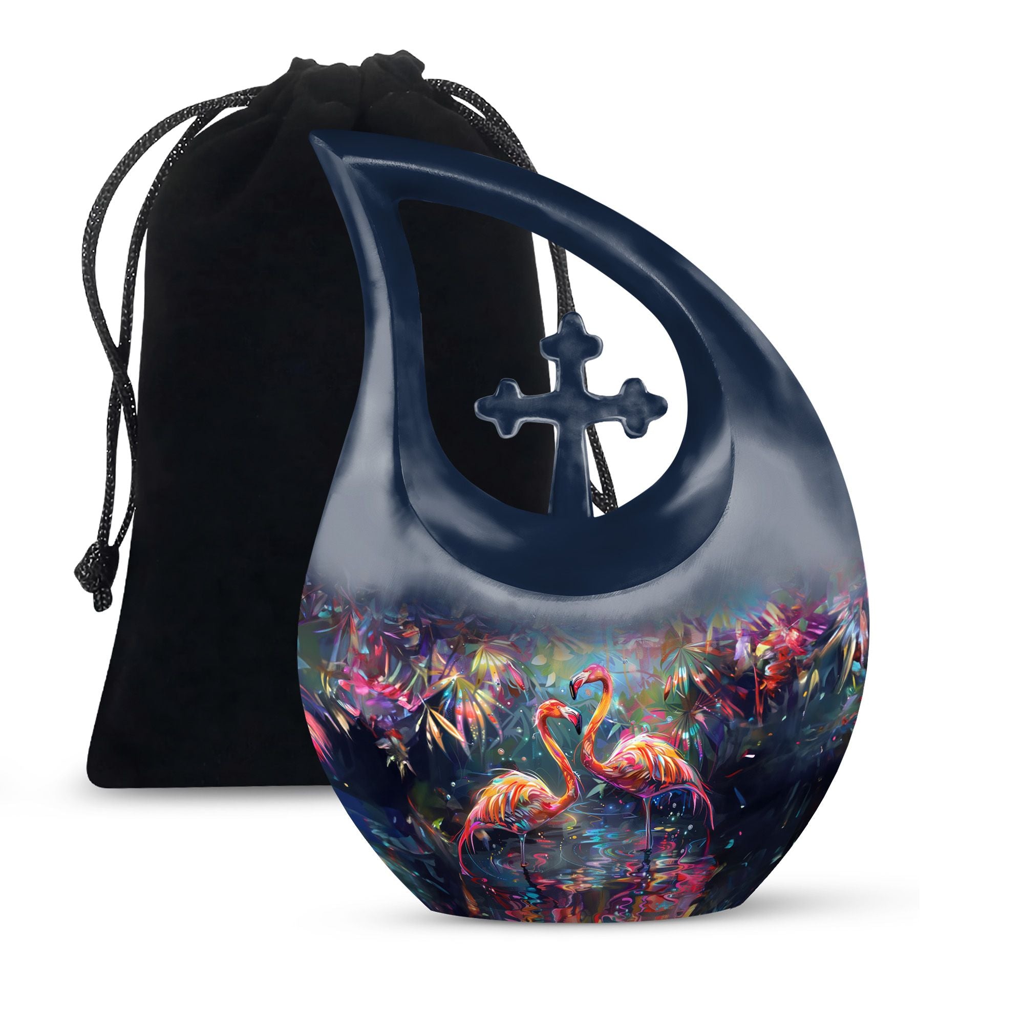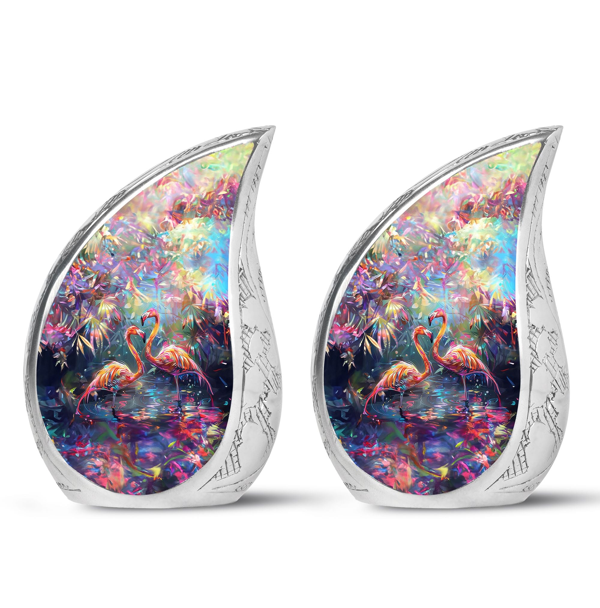 The Vibrant Flamingo Pair cremation urn for human ashes captures the beauty of togetherness and the joy of a colorful life. Featuring two elegant flamingos standing side by side, this urn represents love, loyalty, and peace — a touching tribute to the bond shared with a loved one. Its vivid design offers a meaningful way to honor memories with both warmth and dignity.