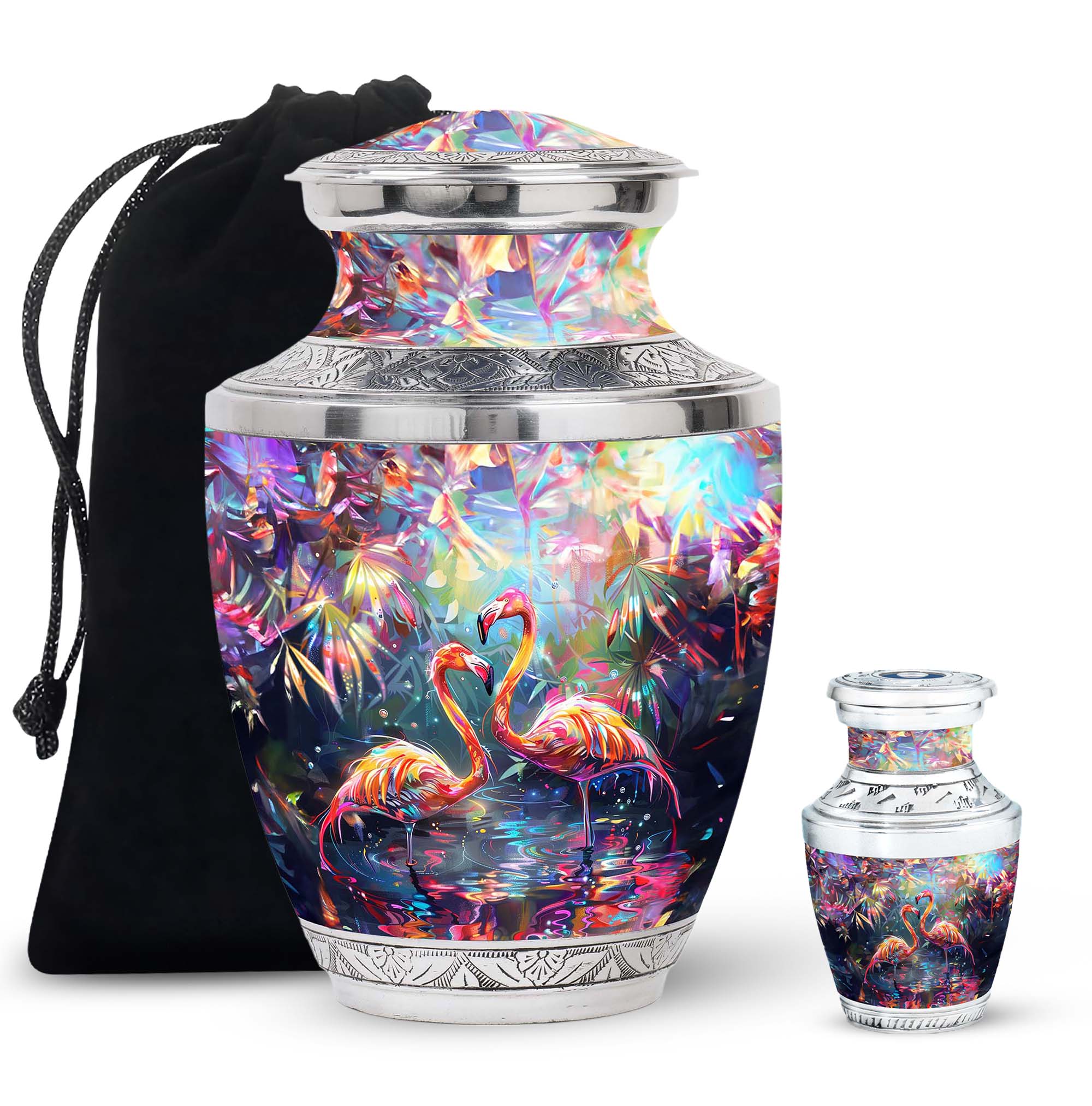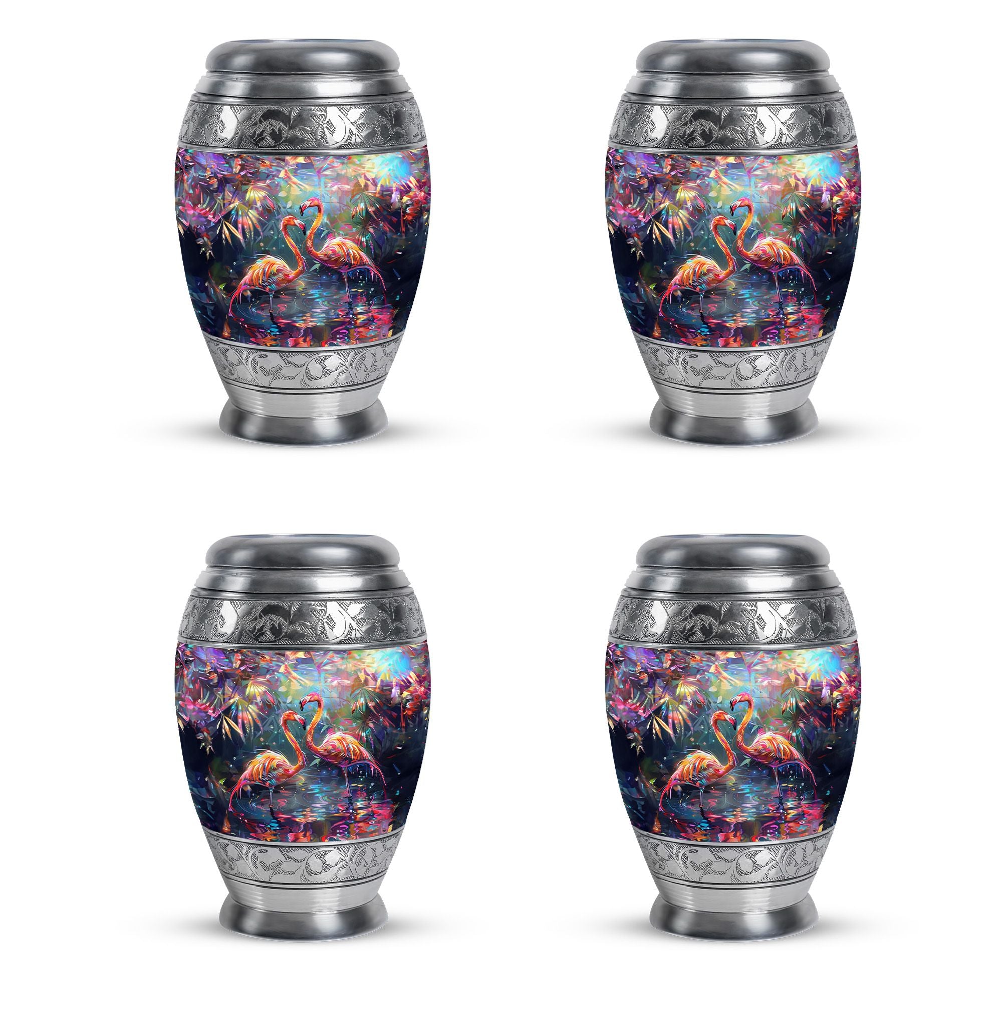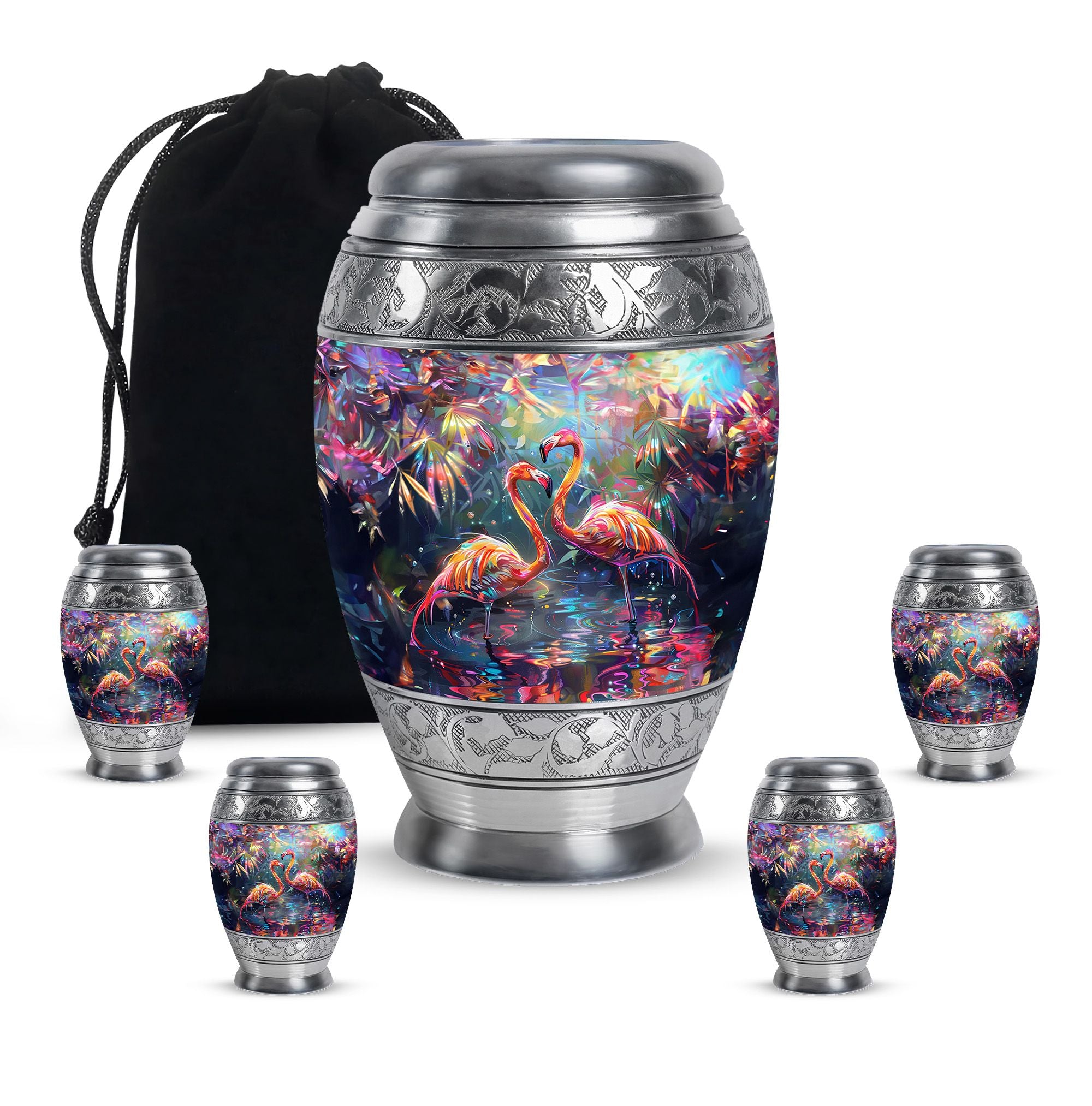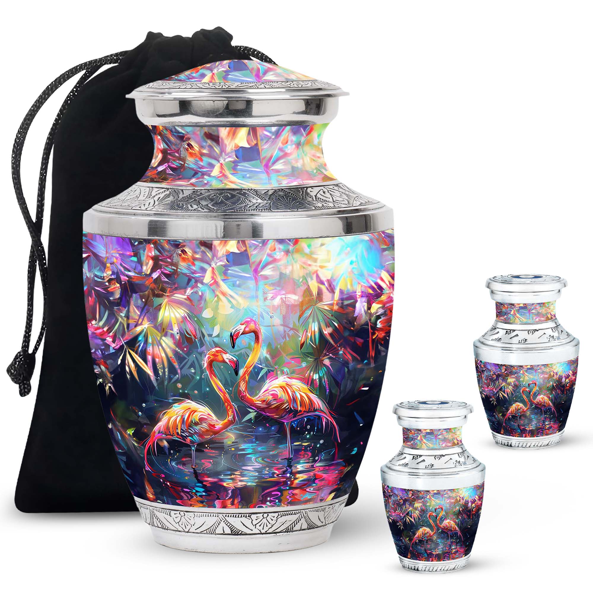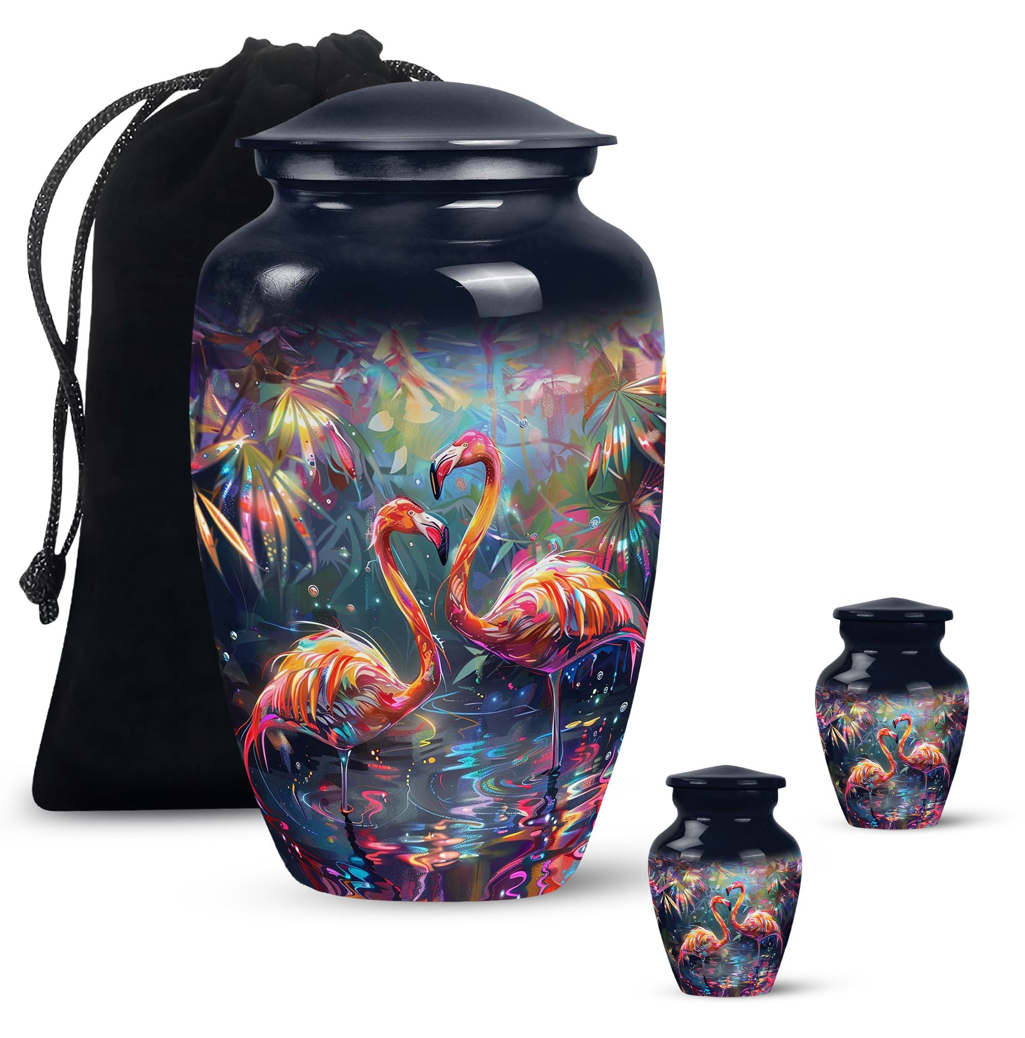 Expertly crafted from premium aluminum, this funeral cremation urn combines durability with artistry. The brilliant flamingo motif and polished finish make it ideal for display or burial. Its secure screw-top lid ensures ashes are safely preserved, offering peace of mind to families. Perfect for those seeking funeral cremation urns for ashes or a funeral adult urn, this piece can also be paired with matching small funeral urns for shared remembrance. A symbol of unity and serenity, it beautifully suits any memorial setting.