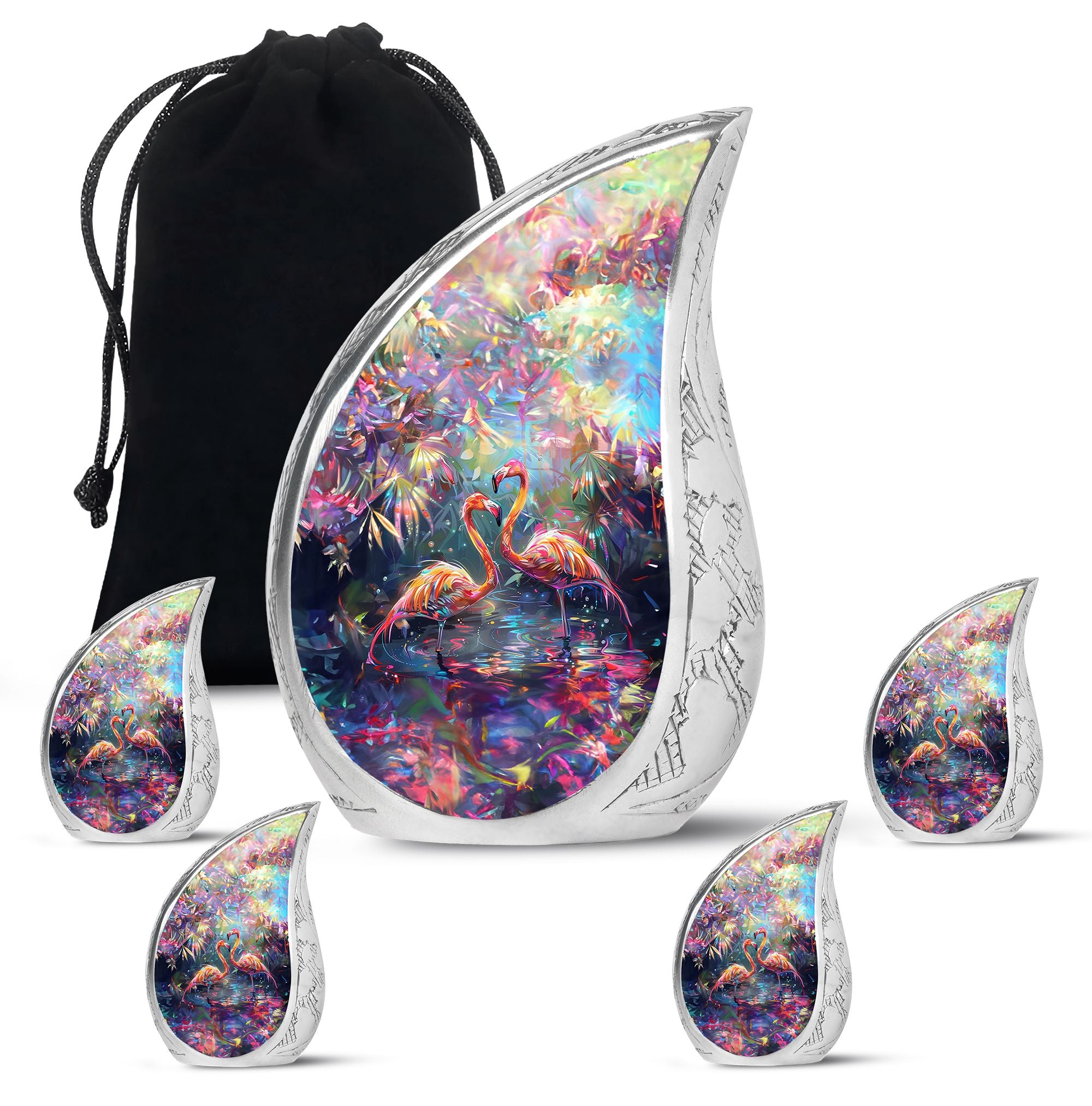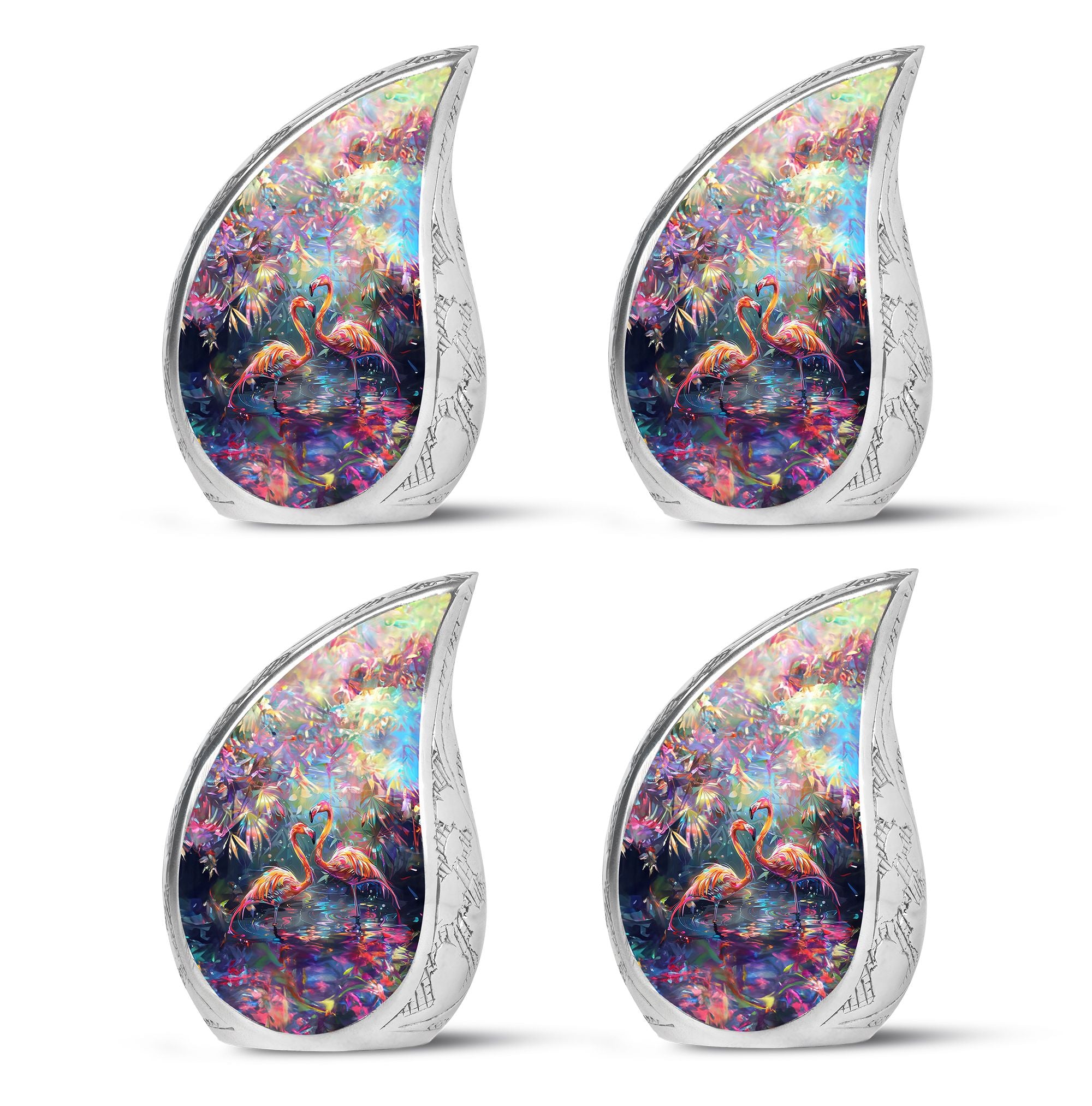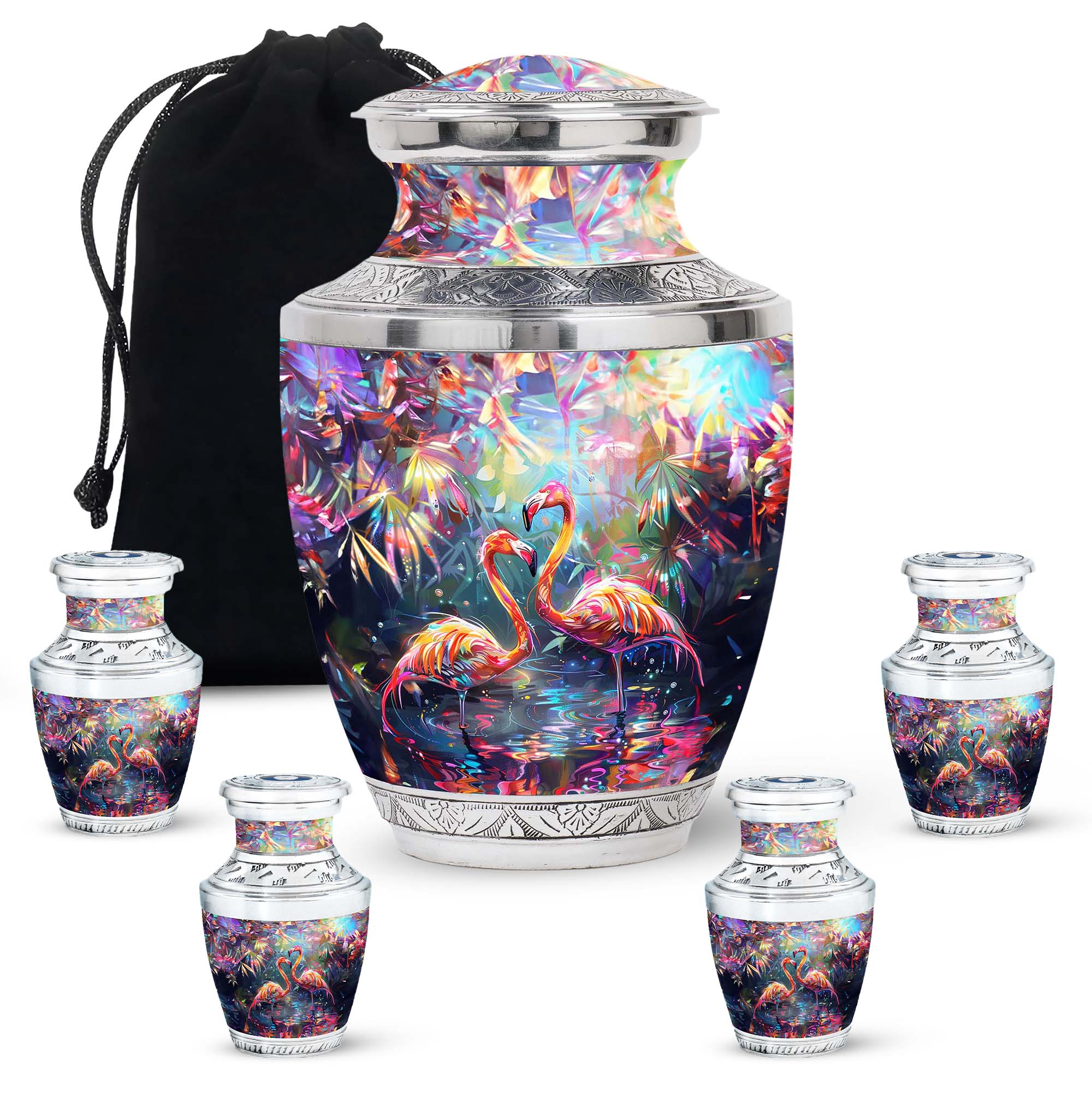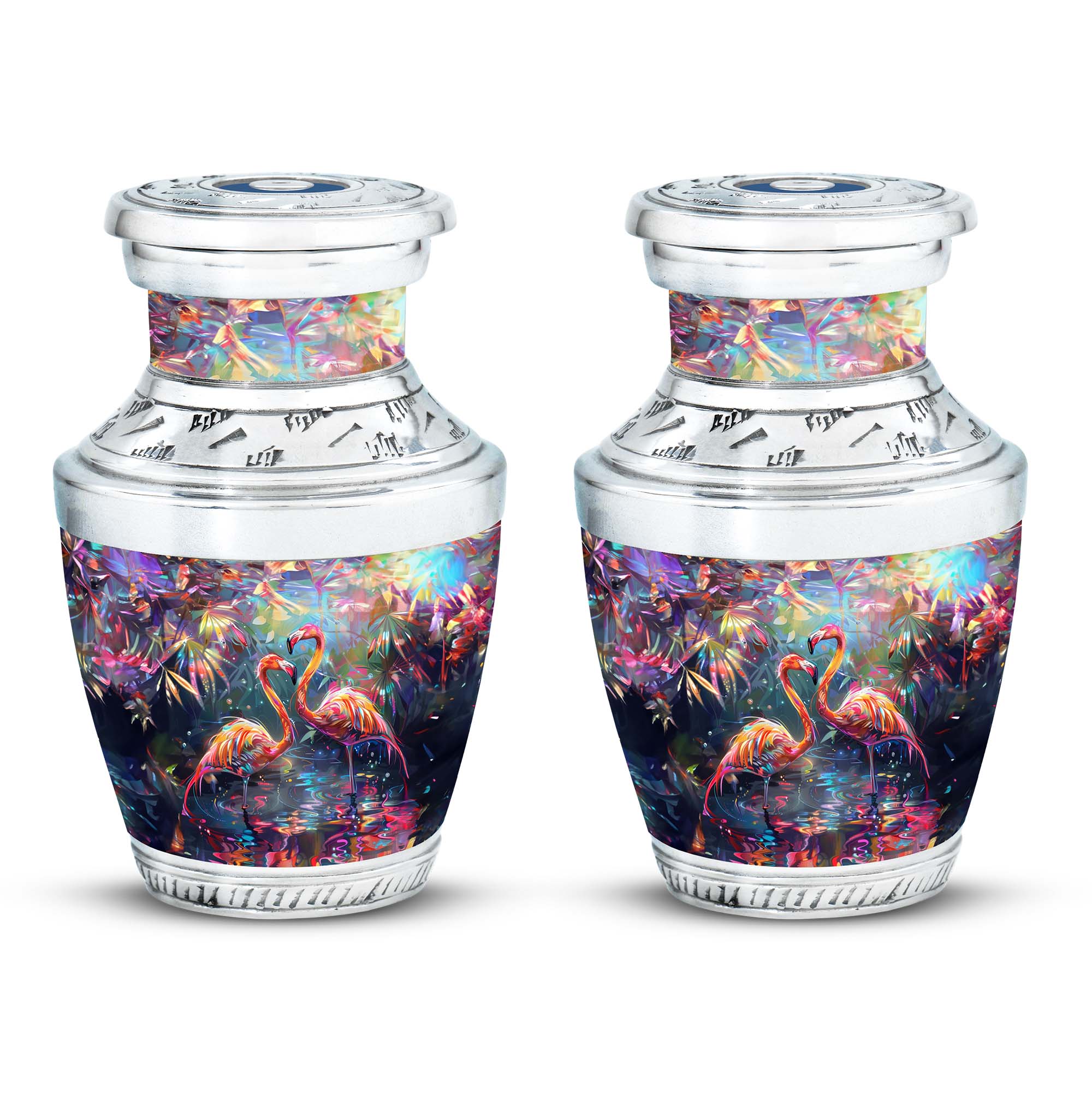 Expertly crafted from premium aluminum, this funeral cremation urn combines durability with artistry. The brilliant flamingo motif and polished finish make it ideal for display or burial. Its secure screw-top lid ensures ashes are safely preserved, offering peace of mind to families. Perfect for those seeking funeral cremation urns for ashes or a funeral adult urn, this piece can also be paired with matching small funeral urns for shared remembrance. A symbol of unity and serenity, it beautifully suits any memorial setting.