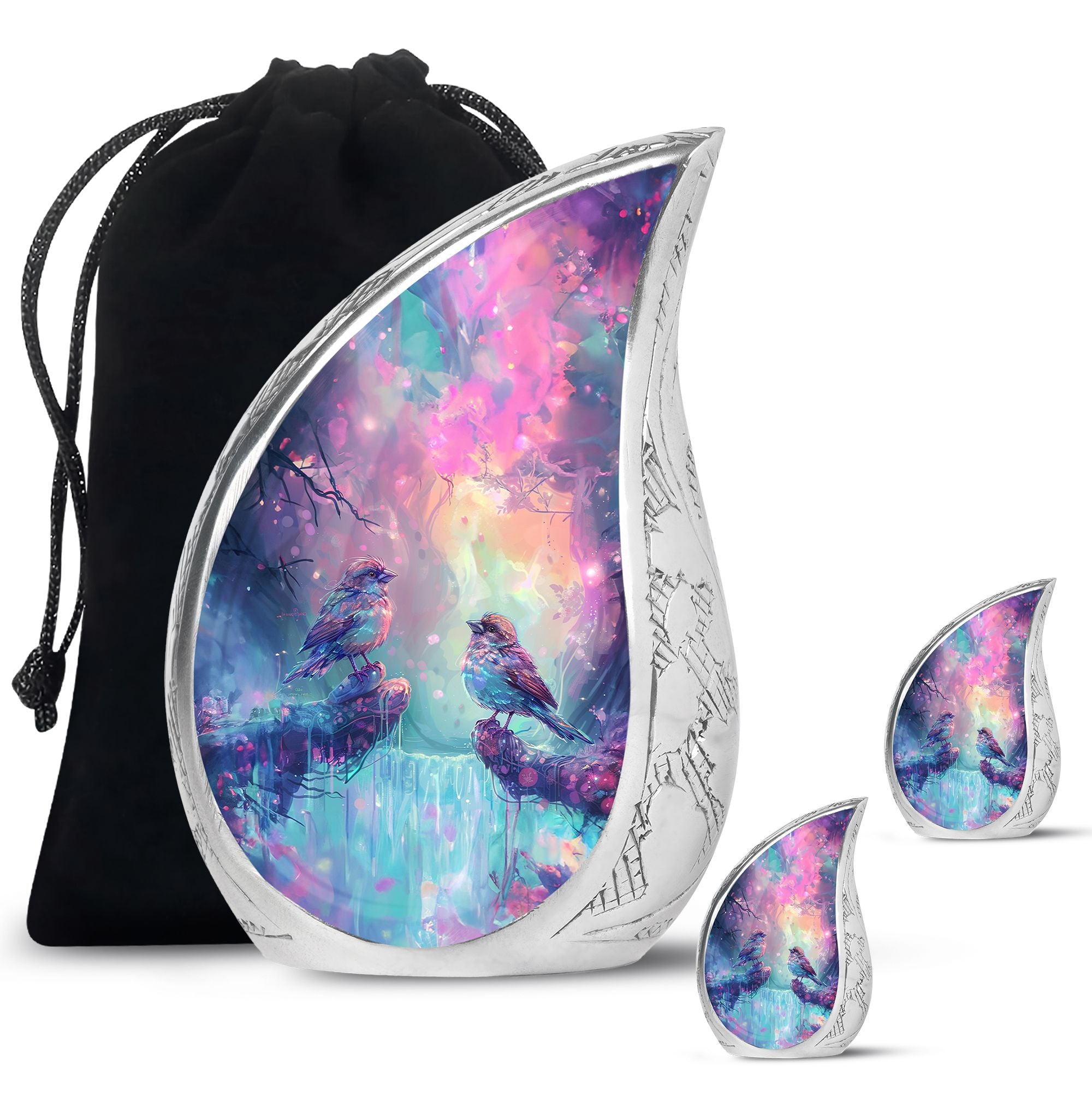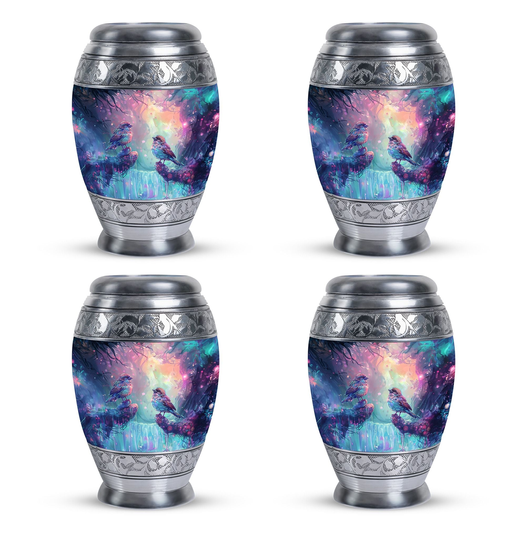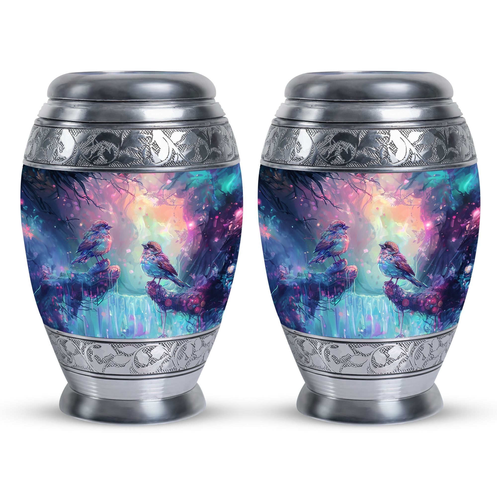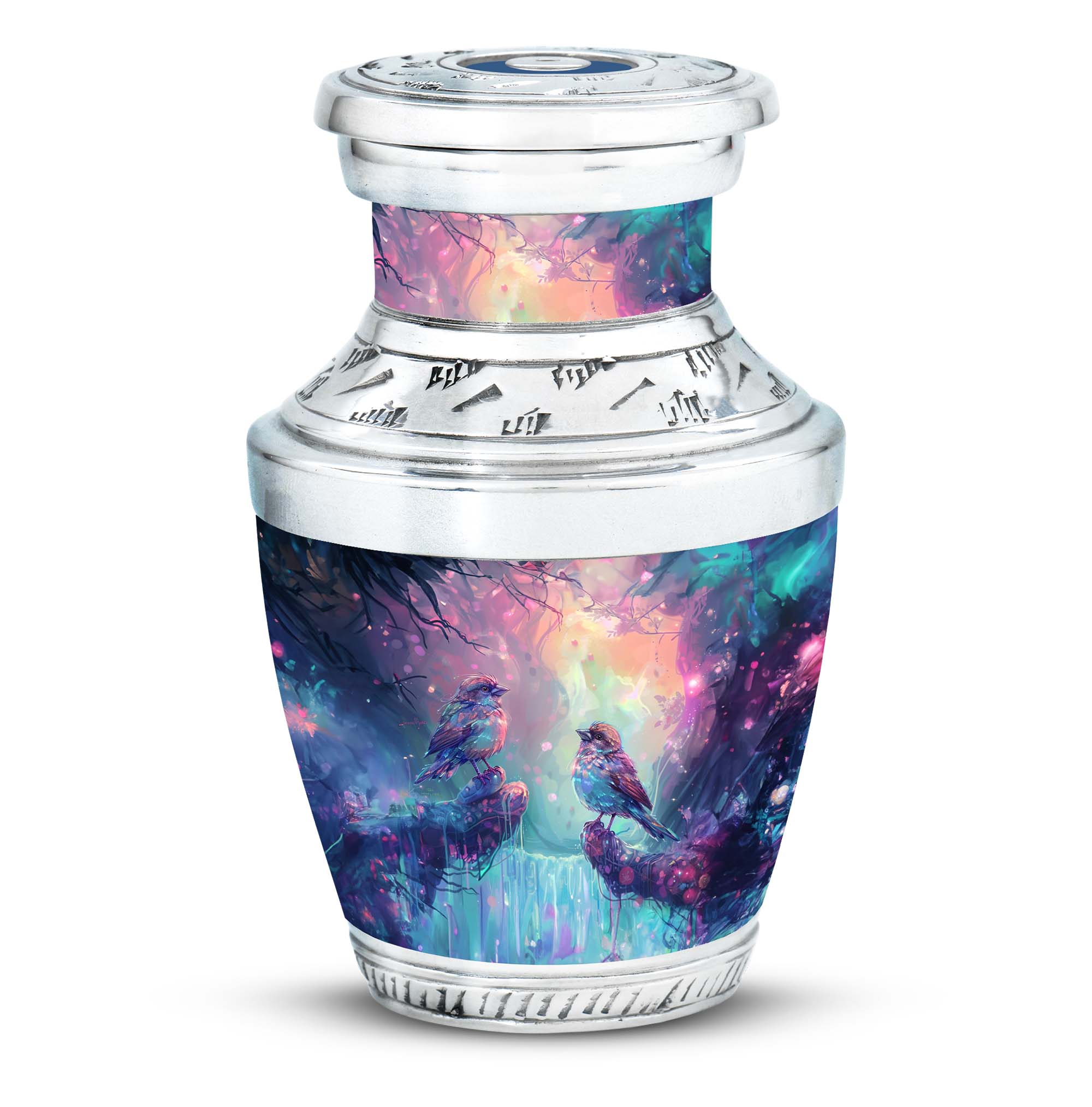 Honor the memory of your beloved mom, dad, or any cherished soul with this beautifully detailed Colorful Birds cremation urn for human ashes. The design’s vivid hues and peaceful birds in flight represent harmony, freedom, and a love that never fades. This urn brings comfort to families seeking a meaningful way to remember those who filled their lives with warmth and joy.