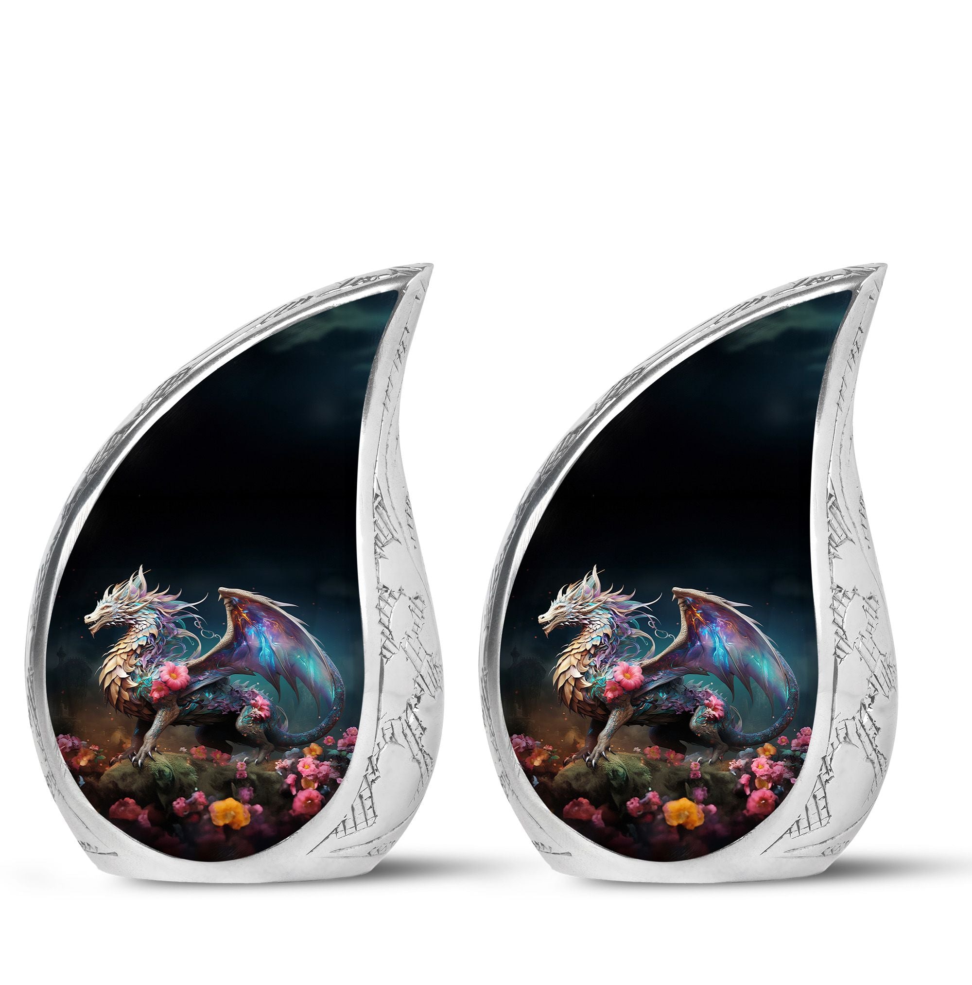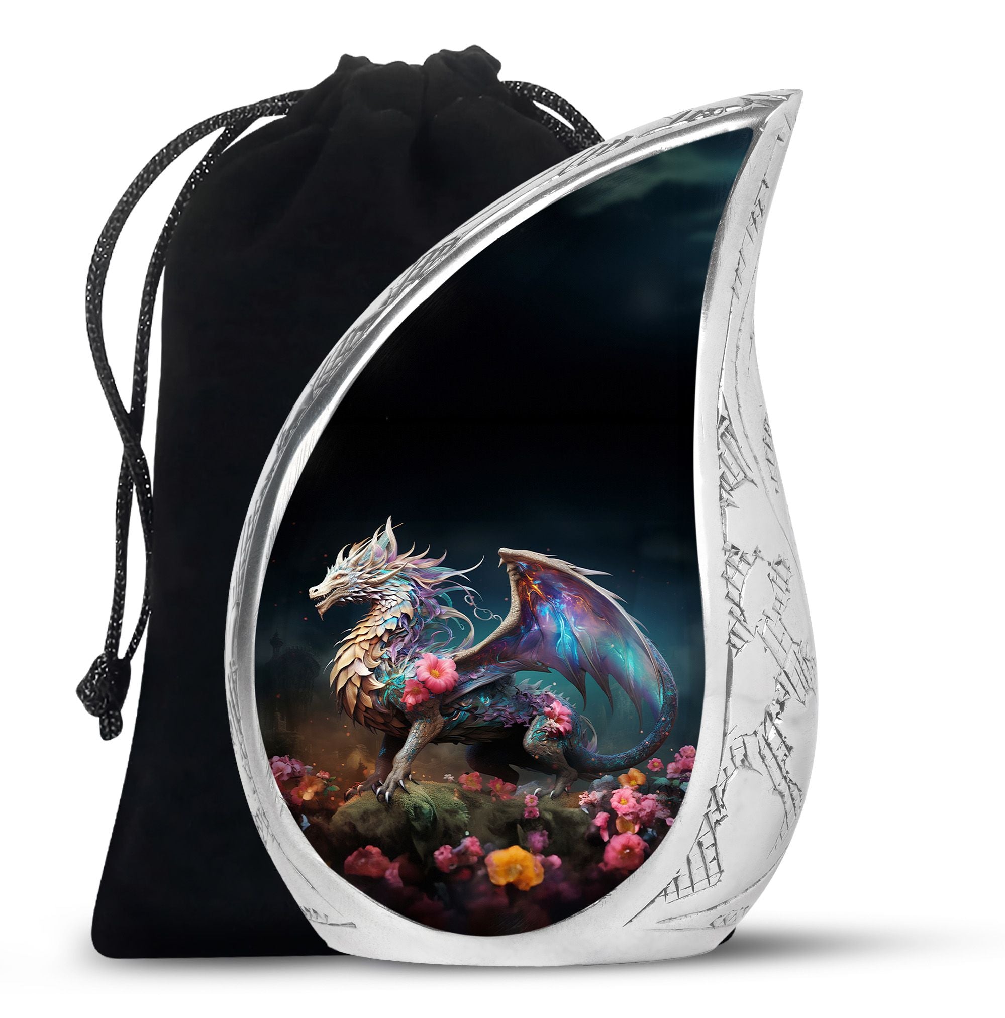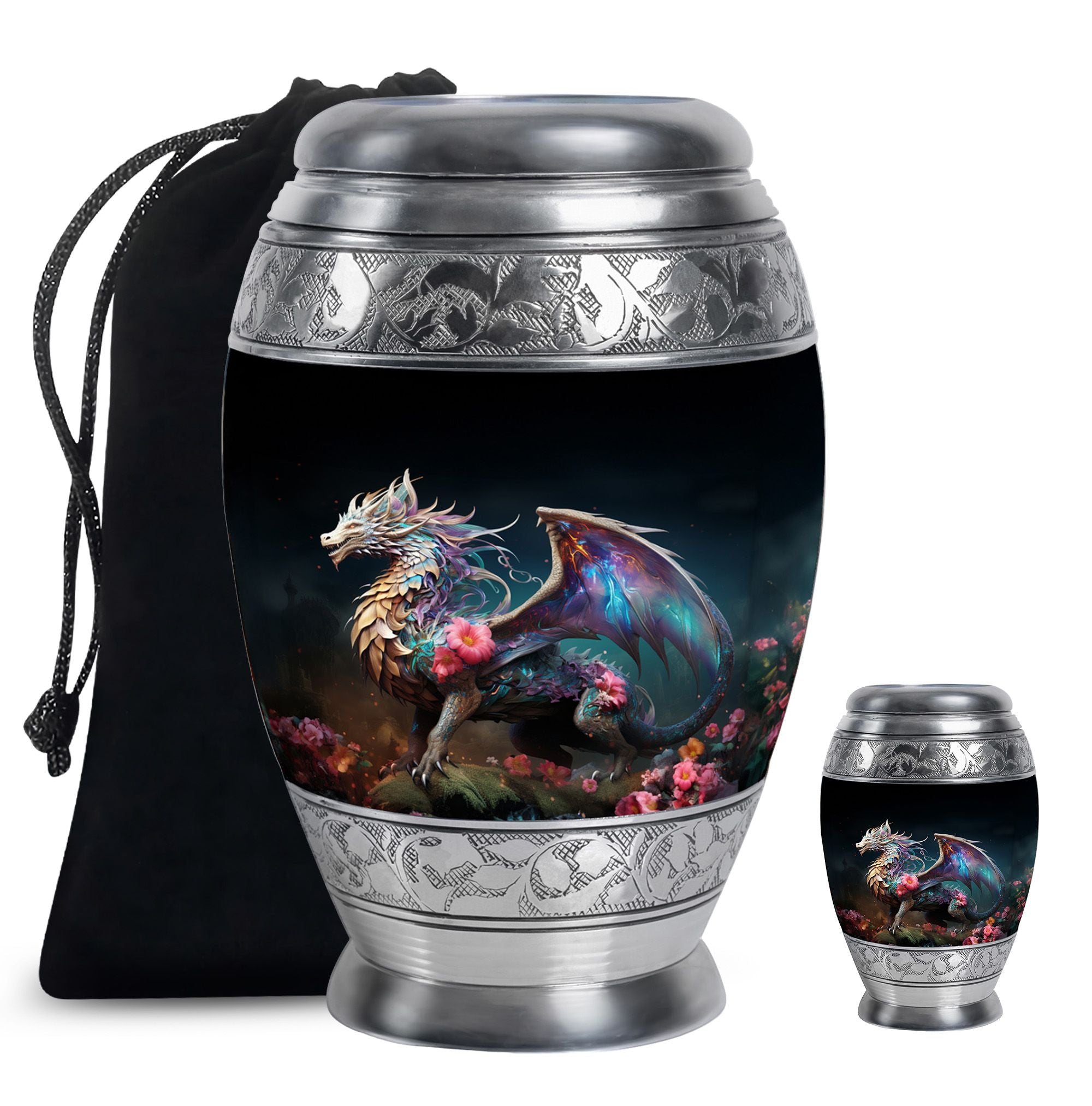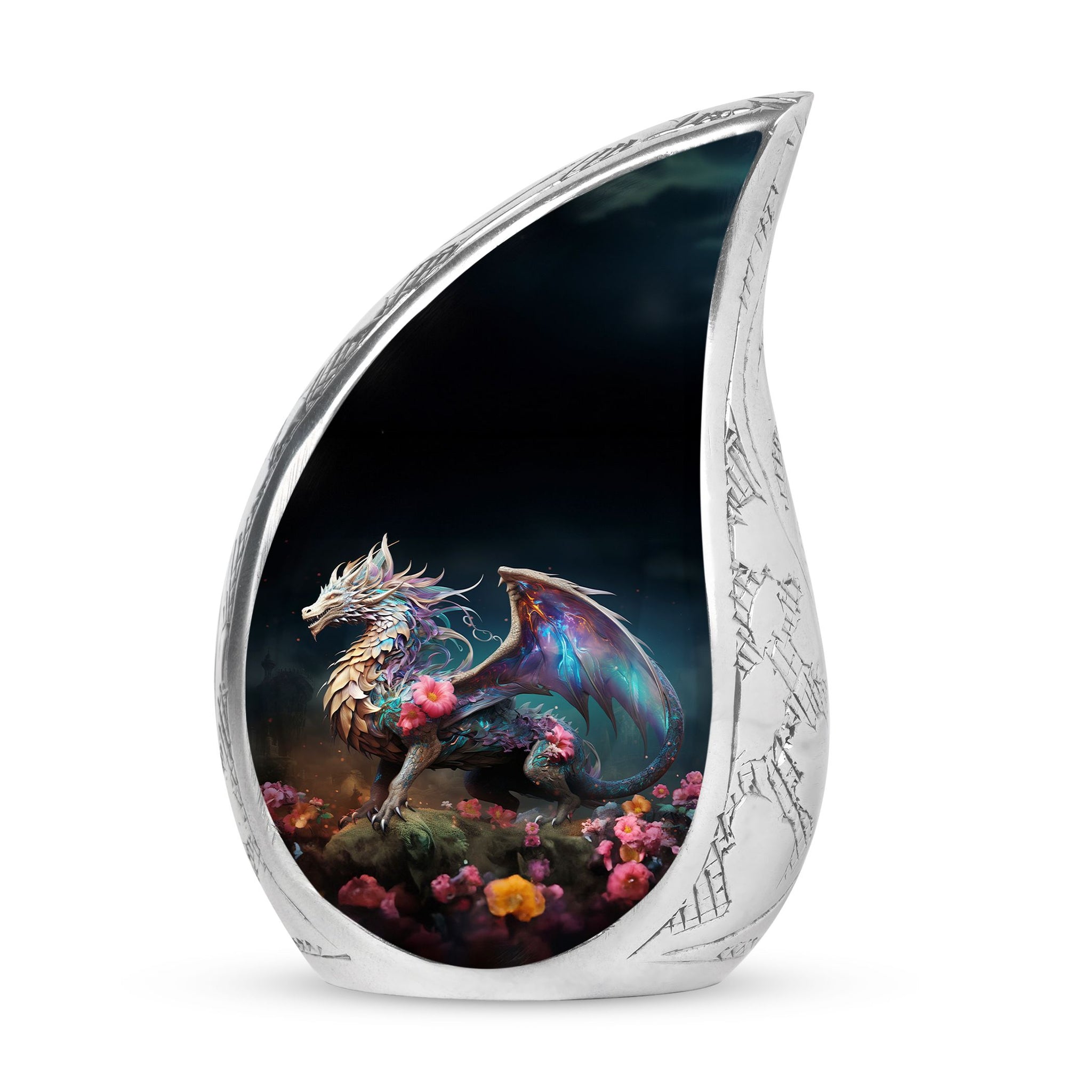 The Garden Dragon’s Enchantment cremation urn beautifully merges the power of the dragon with the serenity of nature. Surrounded by delicate floral engravings, this urn represents harmony, protection, and everlasting peace. Ideal for those who lived boldly yet gracefully, it serves as a striking and heartfelt tribute to a cherished life.