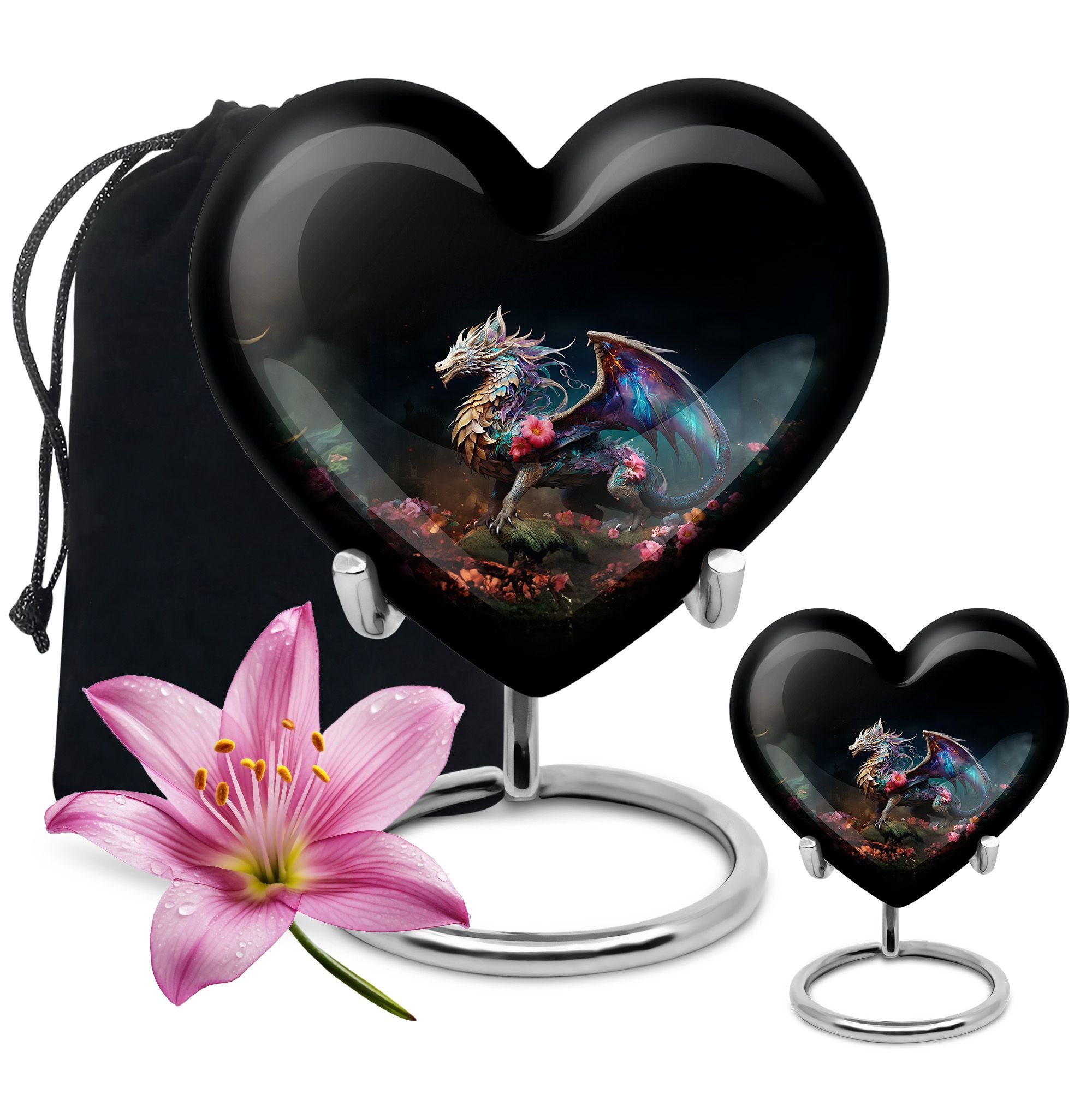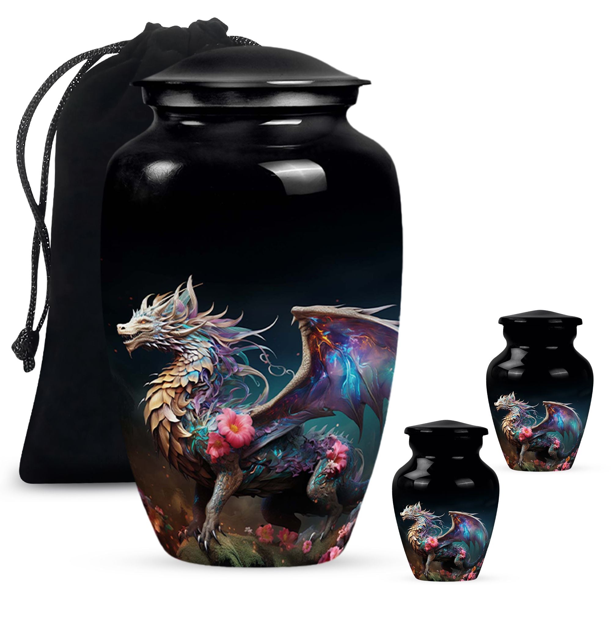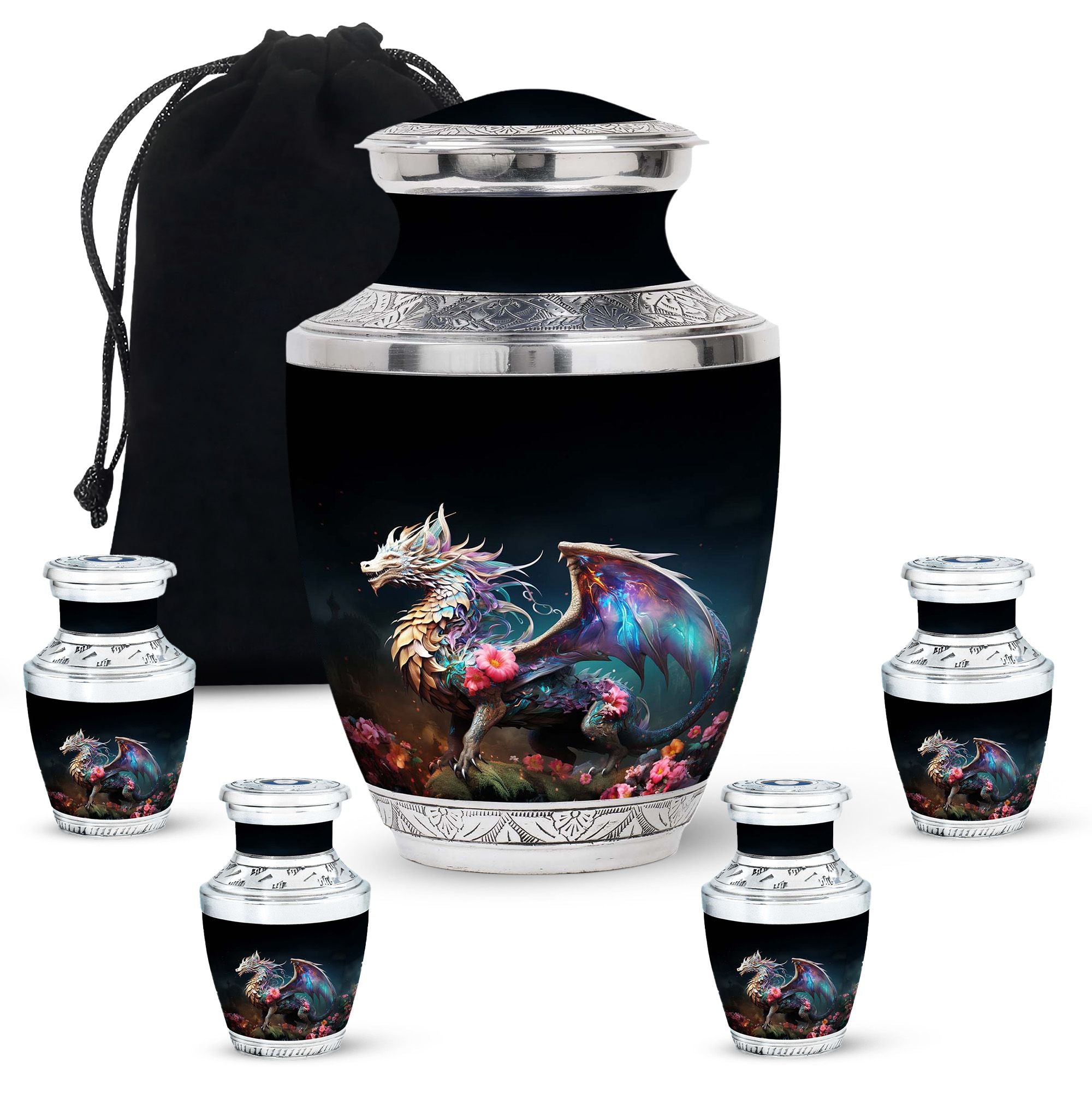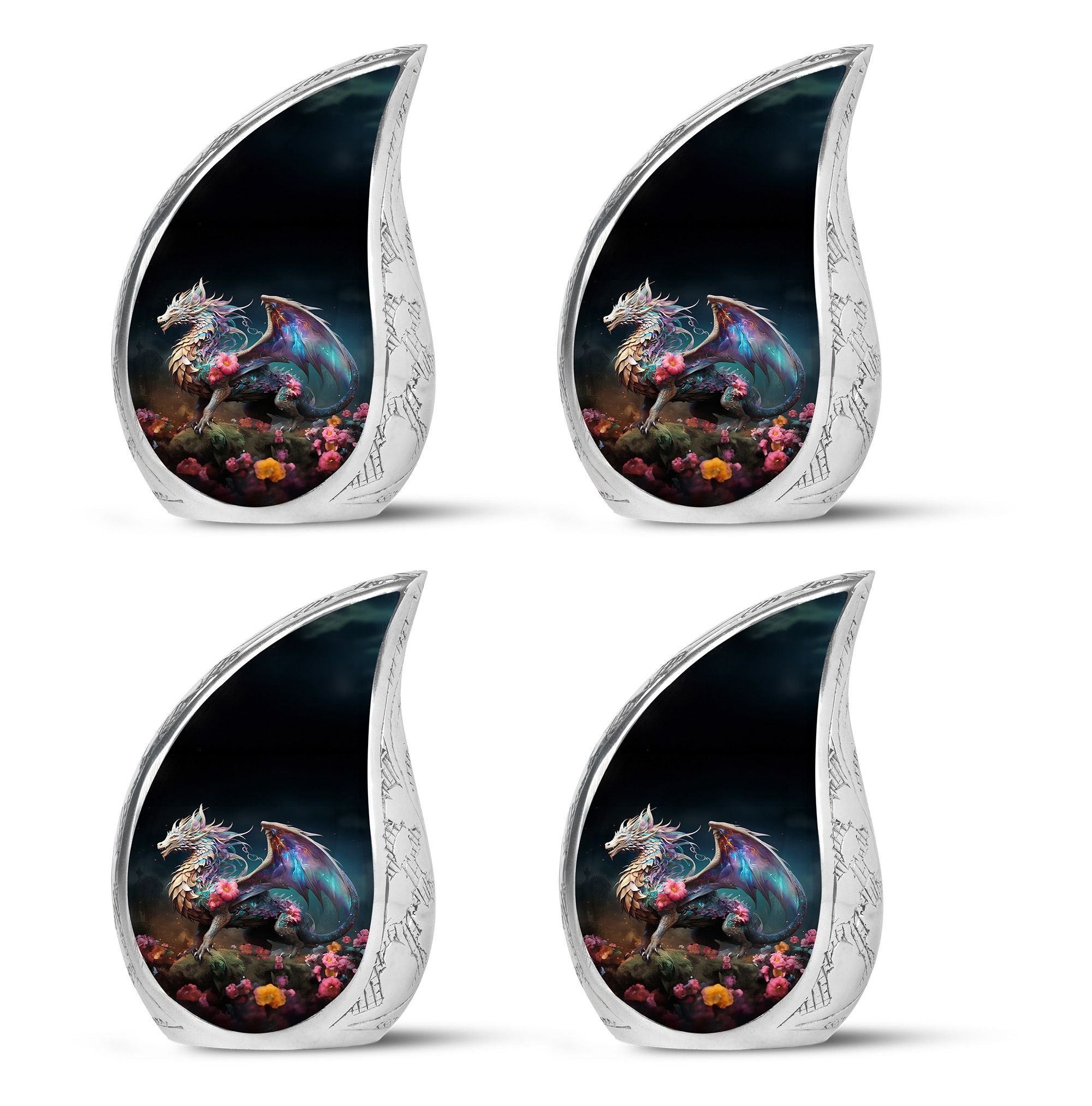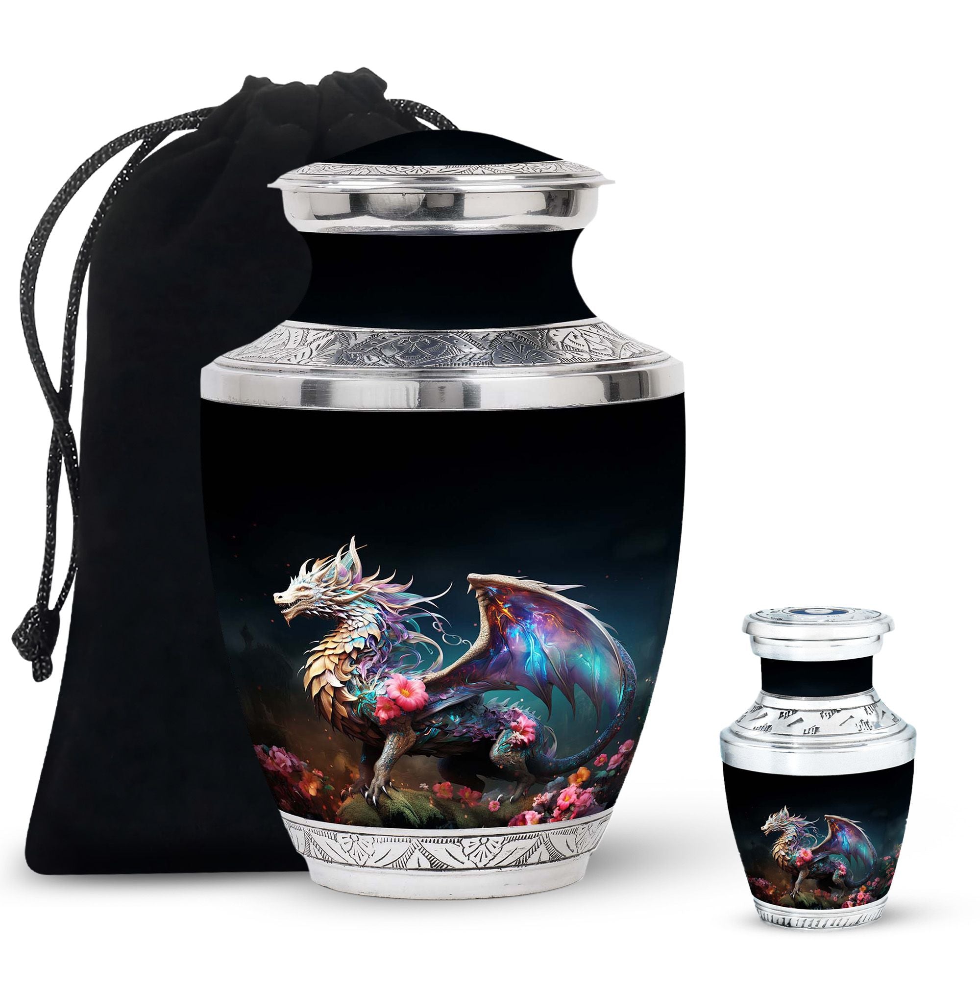 The Garden Dragon’s Enchantment cremation urn beautifully merges the power of the dragon with the serenity of nature. Surrounded by delicate floral engravings, this urn represents harmony, protection, and everlasting peace. Ideal for those who lived boldly yet gracefully, it serves as a striking and heartfelt tribute to a cherished life.