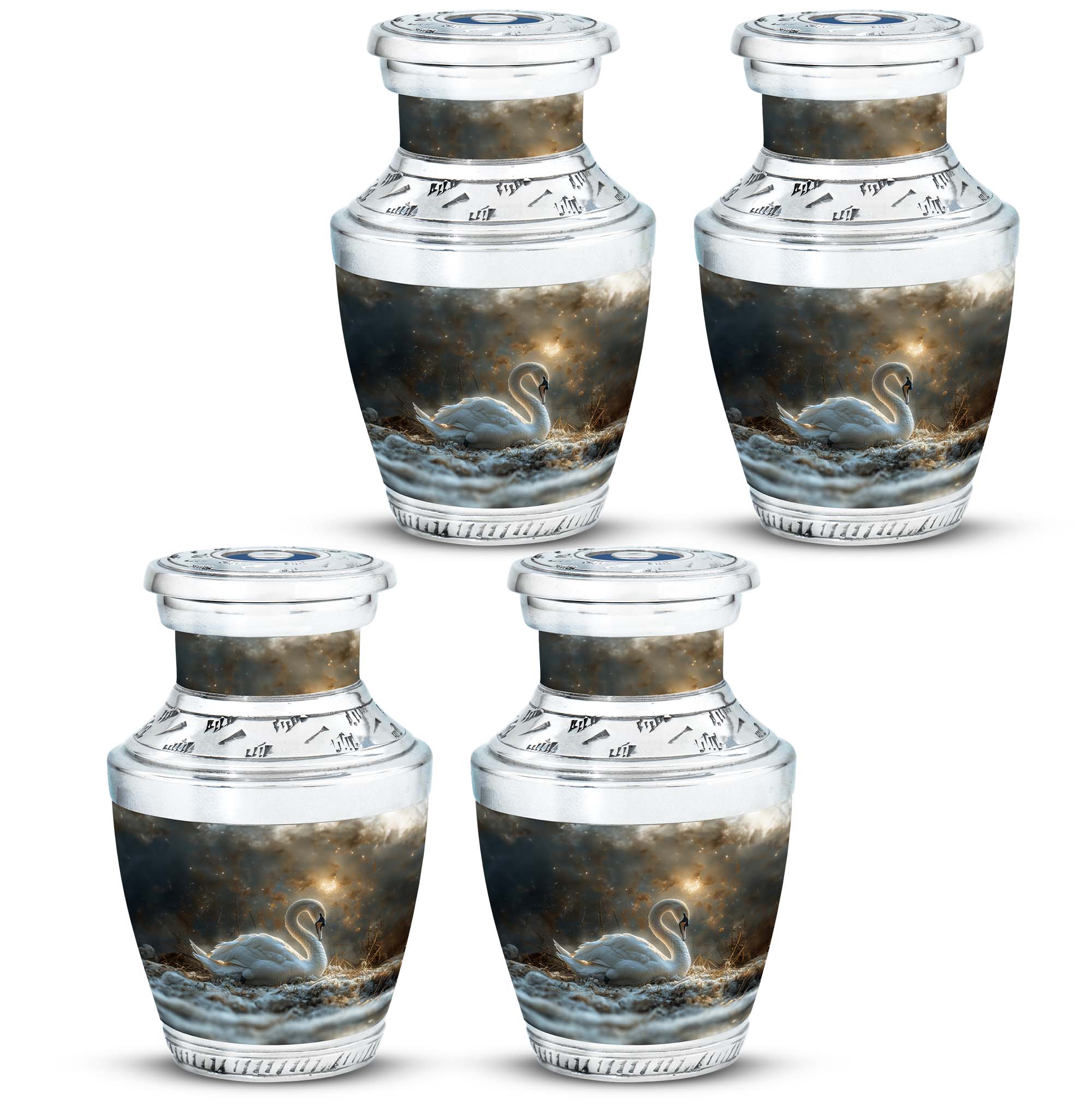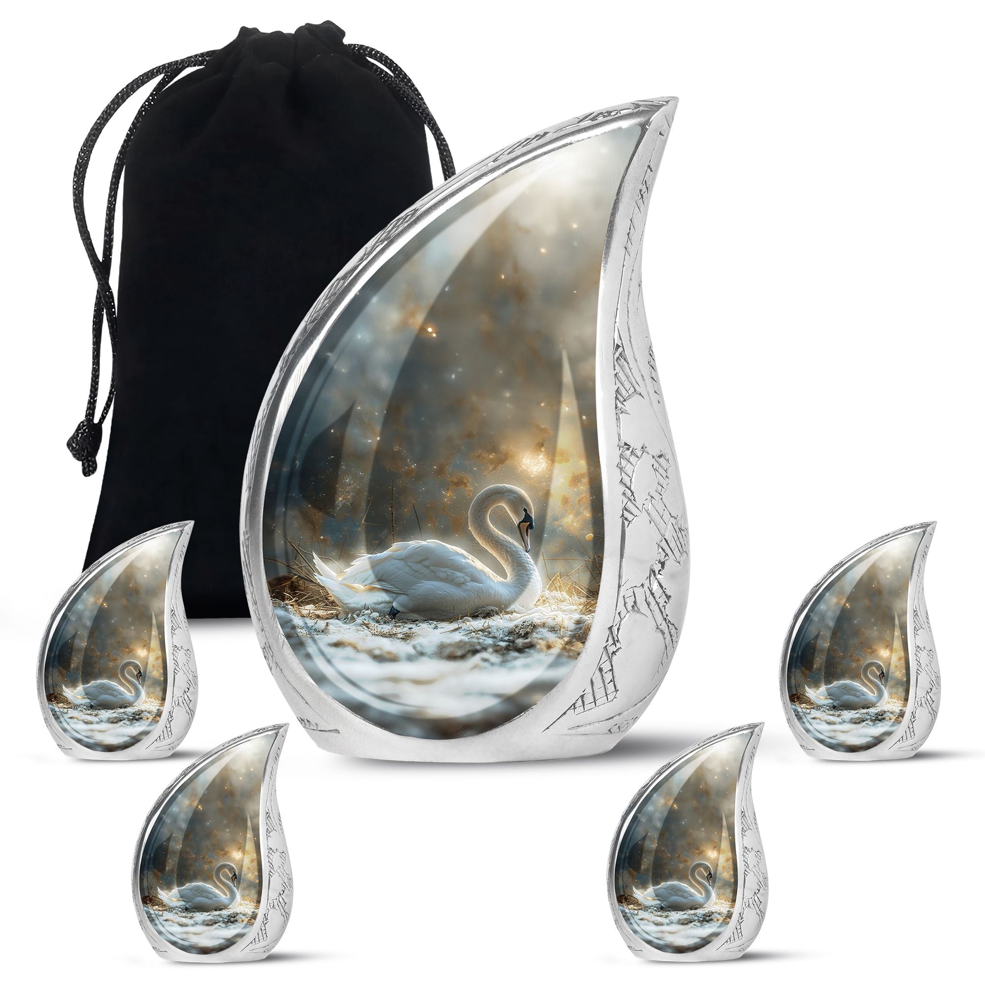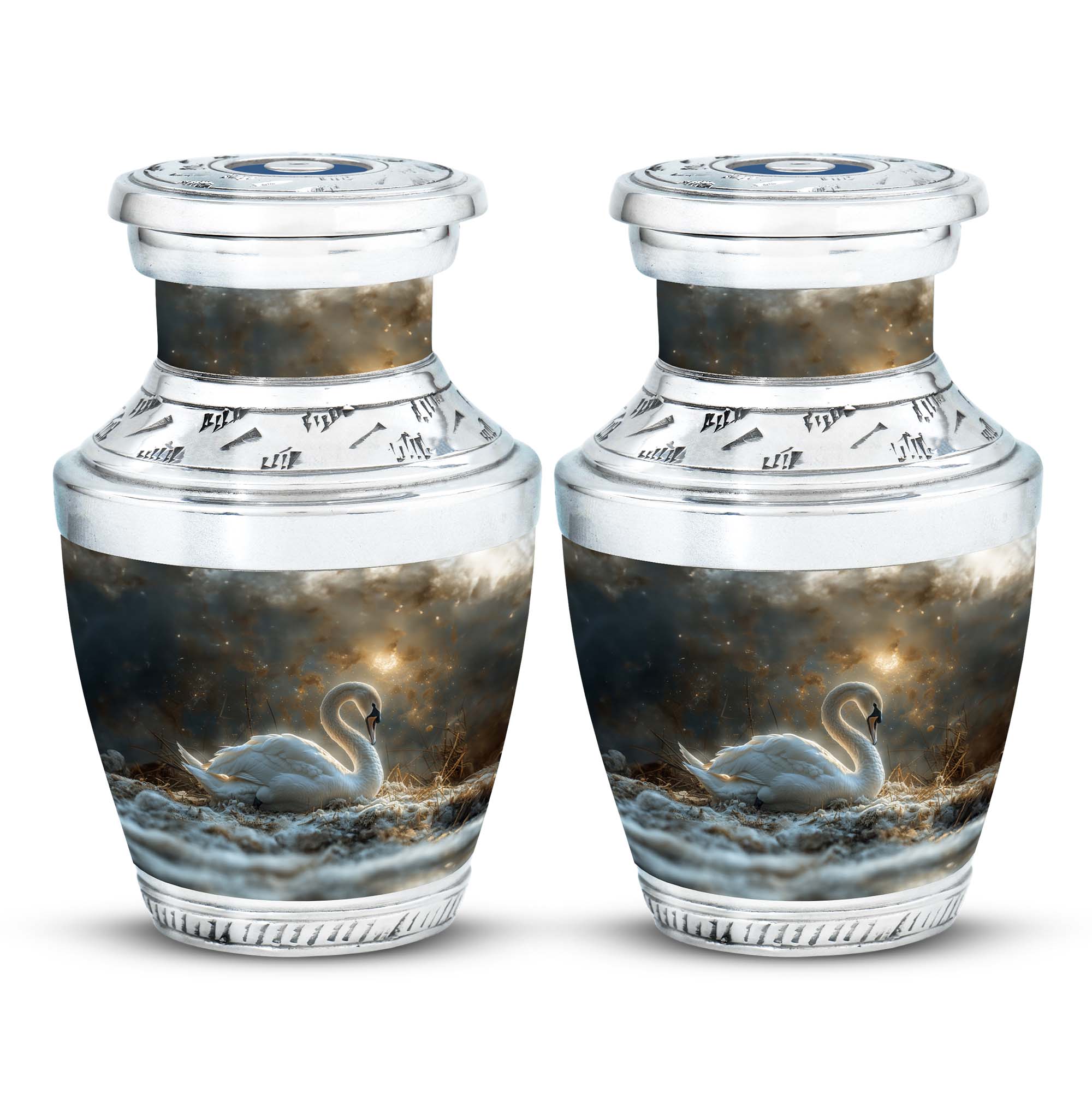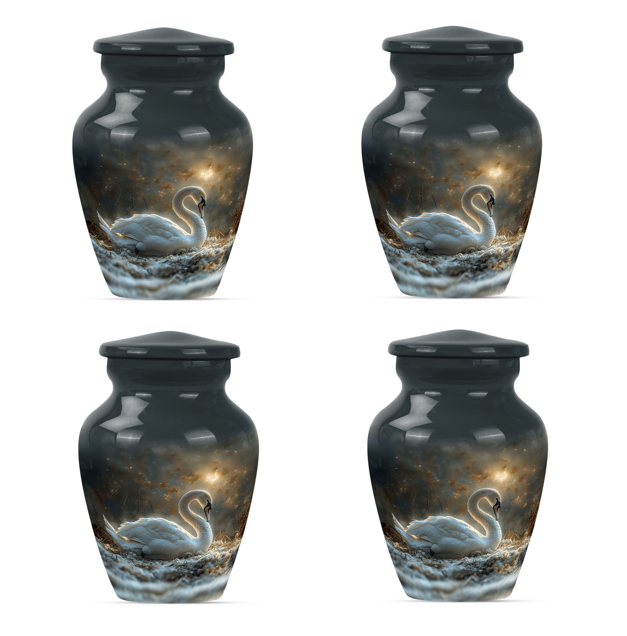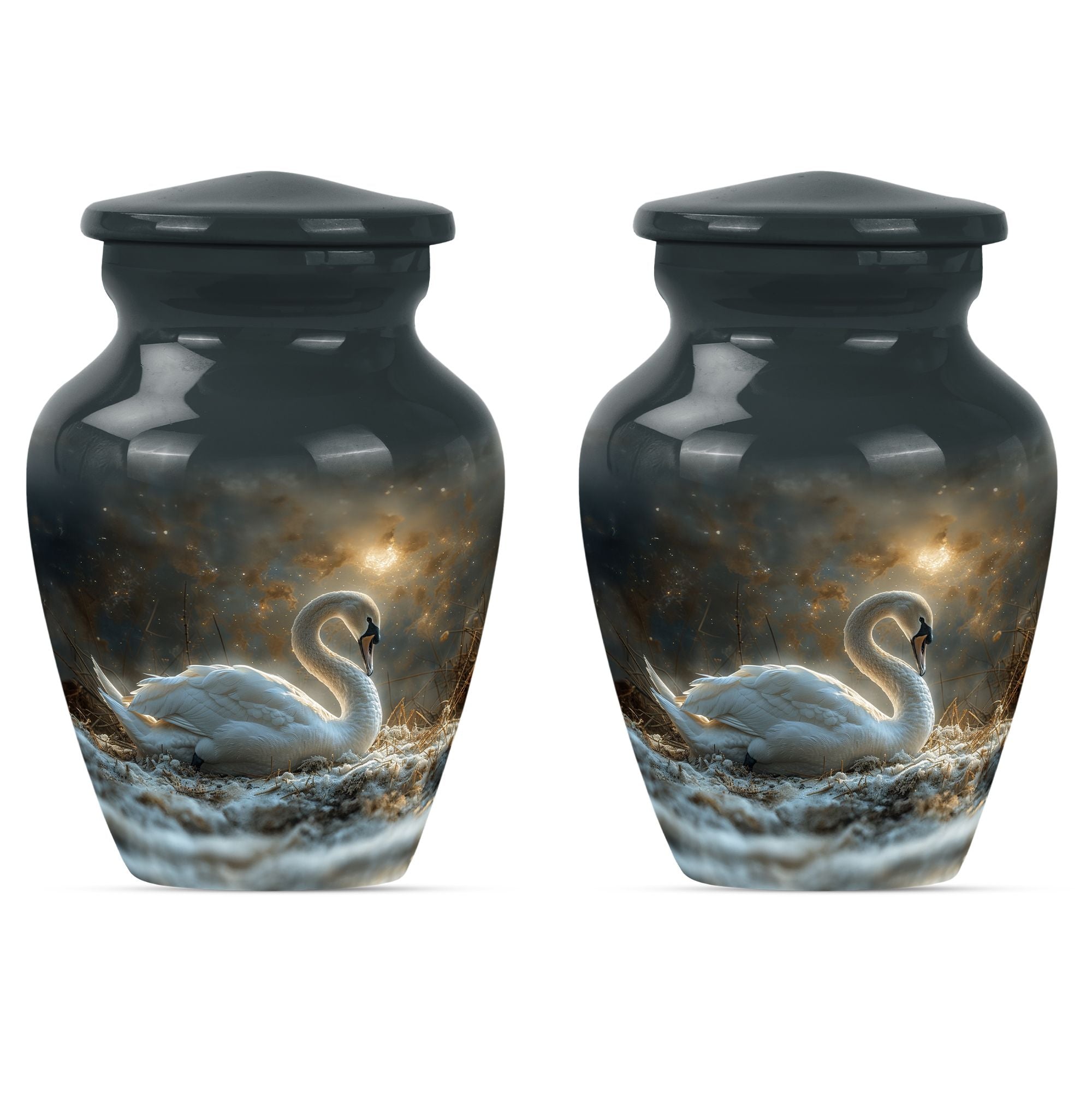Meticulously handcrafted, this urn features a radiant gold finish adorned with graceful swan motifs — representing purity, peace, and eternal rest. Made from durable aluminum, it ensures strength and longevity while maintaining a refined appearance. Perfect for home display or a memorial niche, this adult cremation urn balances sophistication with emotional comfort. Ideal for families seeking cremation urns for human ashes adult set or individual cremation urns for adults, this design unites traditional elegance with modern craftsmanship.