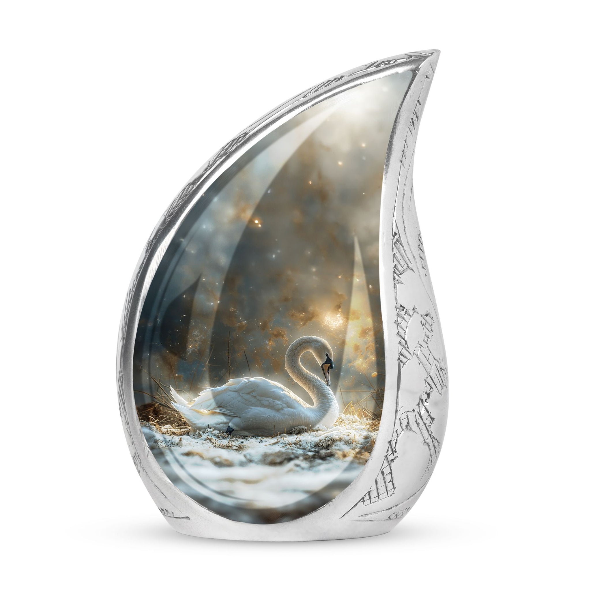 A true cremation memorial, the Golden Swan urn serves as a beautiful final resting place that radiates tranquility, reminding us that love continues to shine beyond this life.