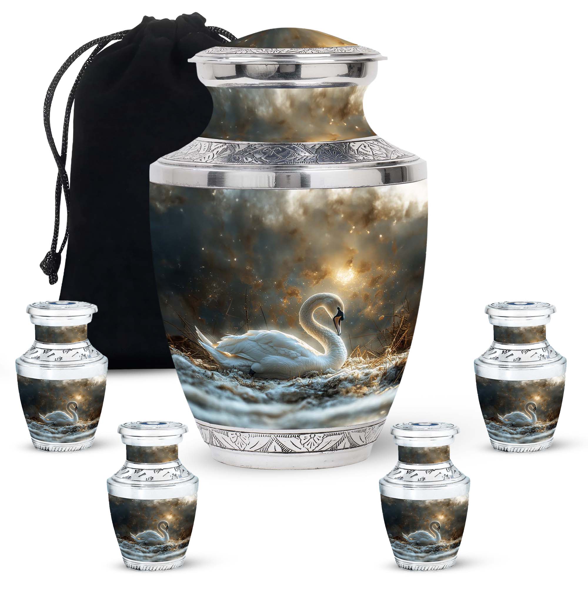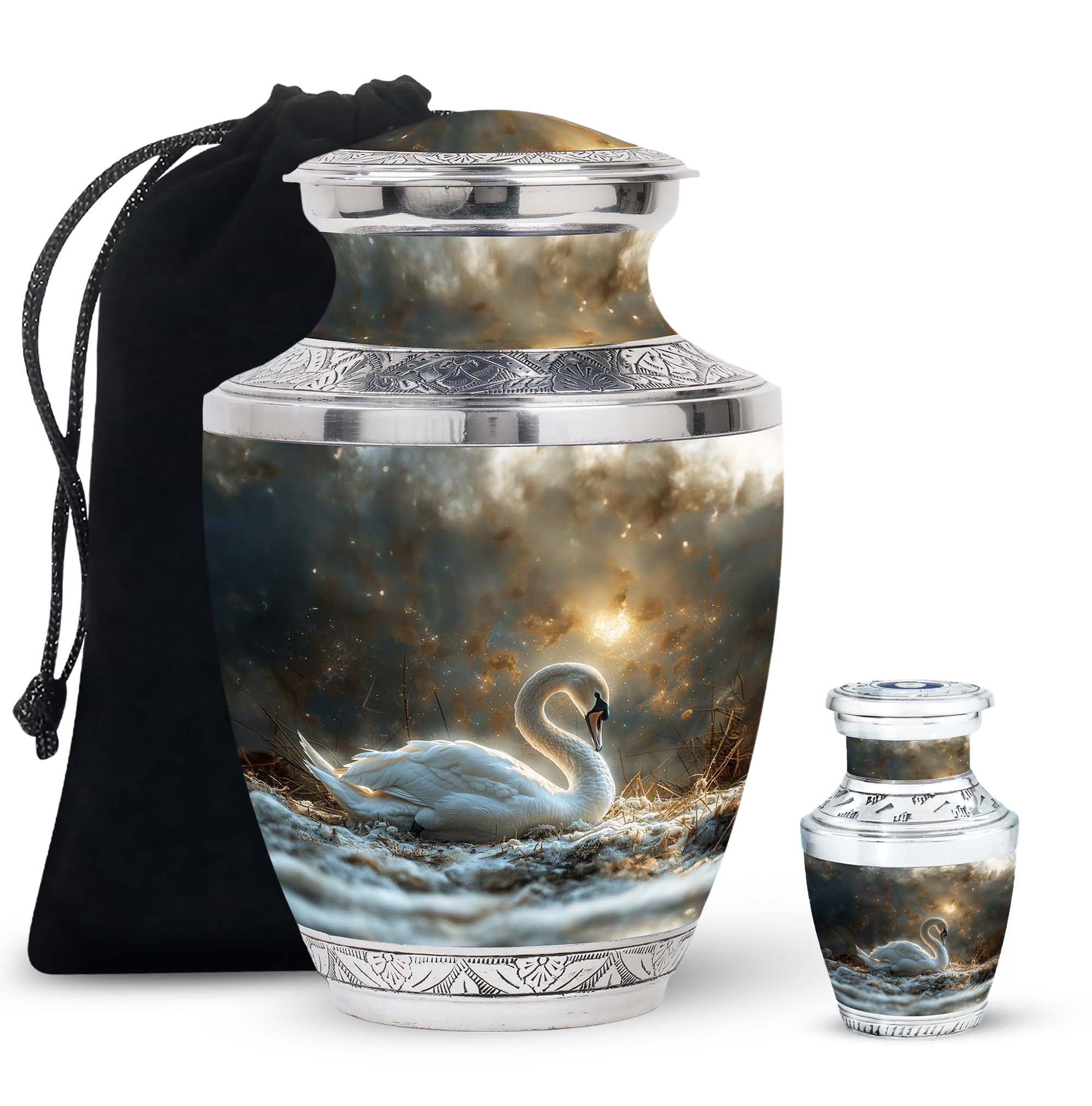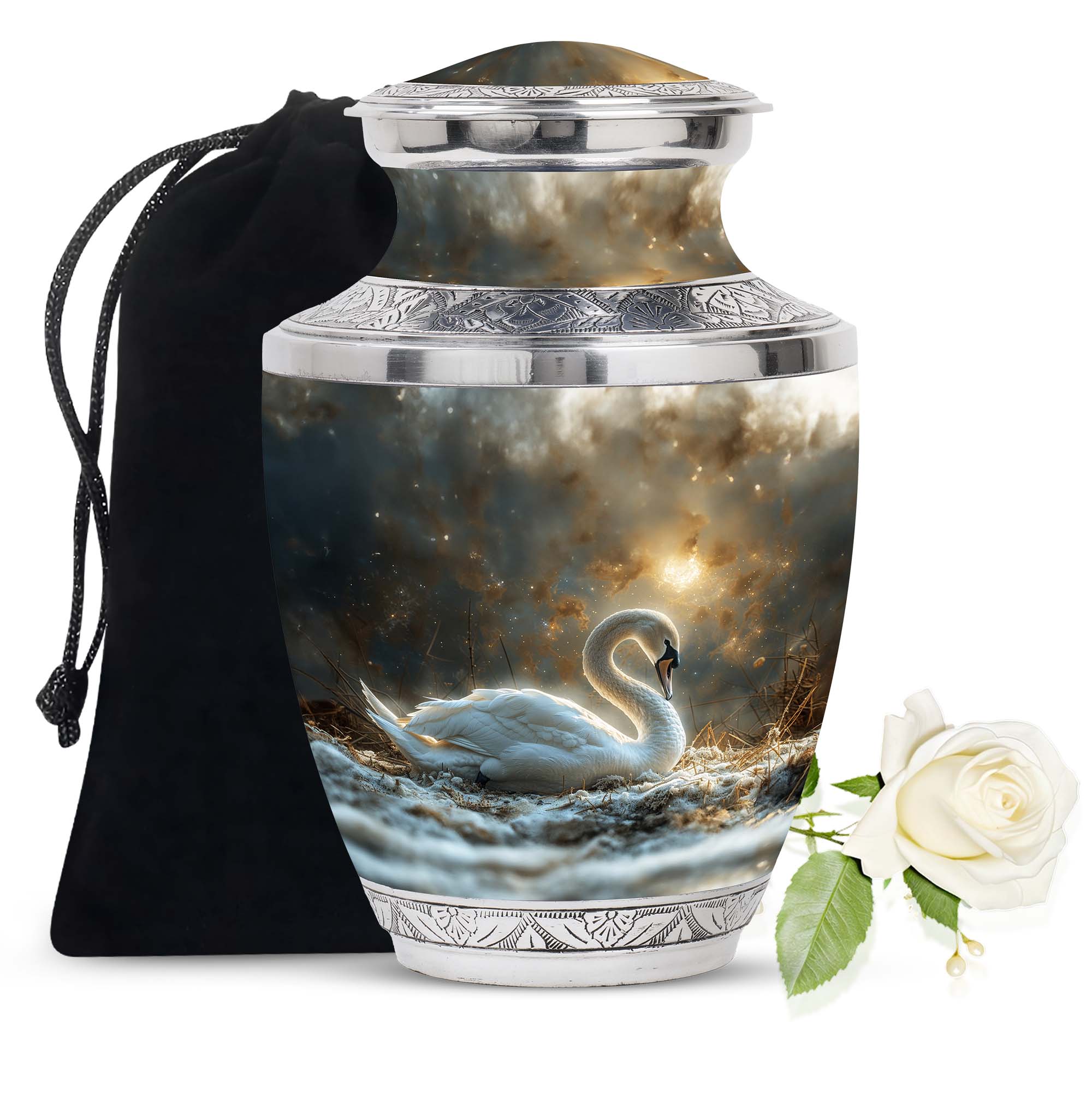 The Golden Swan Funeral Urn for Human Ashes offers a dignified and heartfelt way to cherish the memory of someone special. This human cremation urn embodies grace and serenity, allowing families to honor life’s most meaningful moments through a symbol of eternal love. Designed as a cremation urn for adult remembrance, it brings warmth and beauty to any setting.