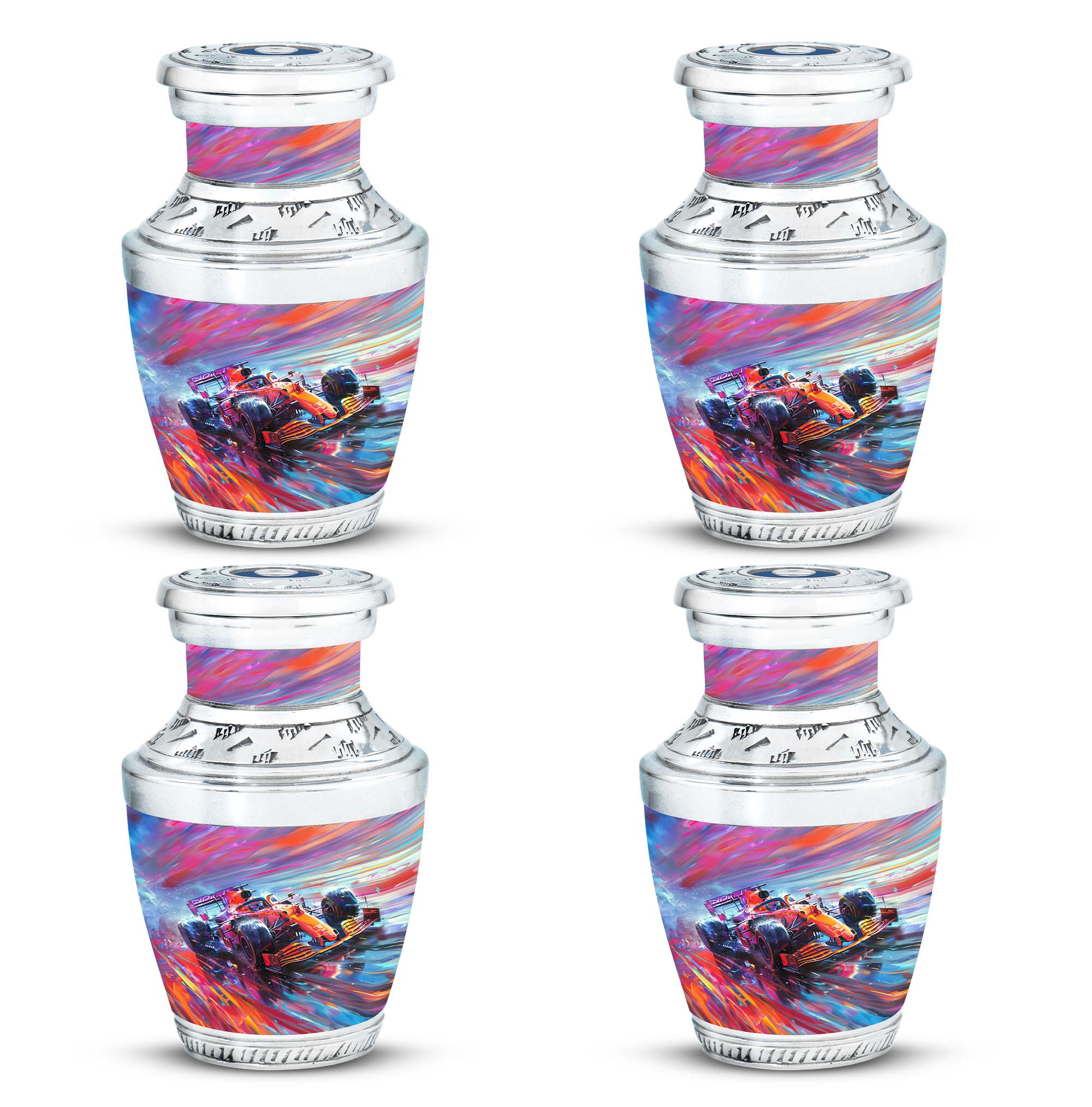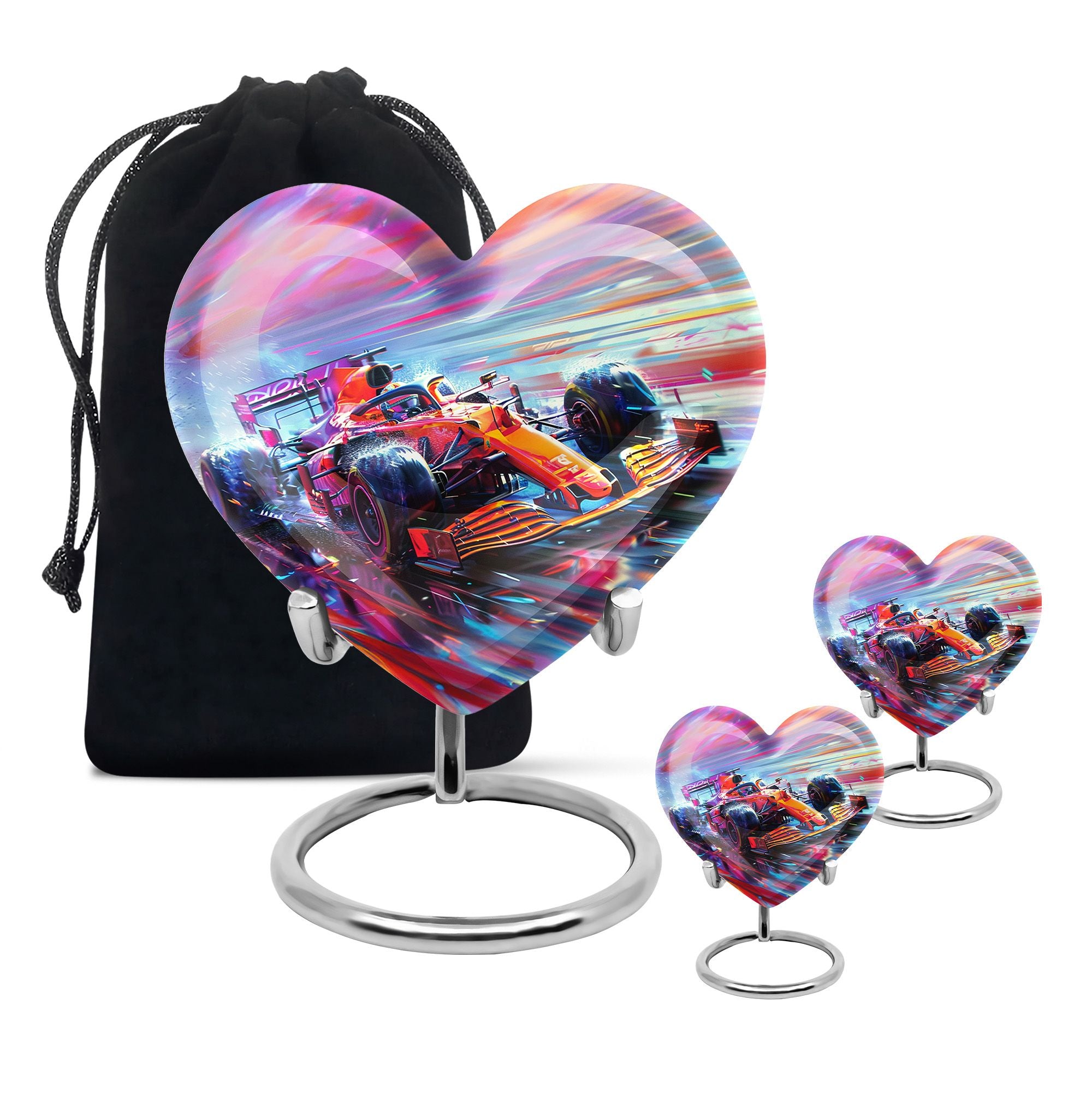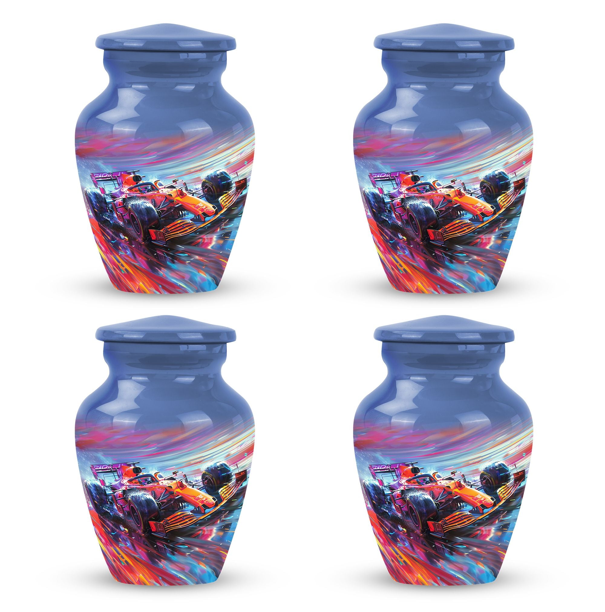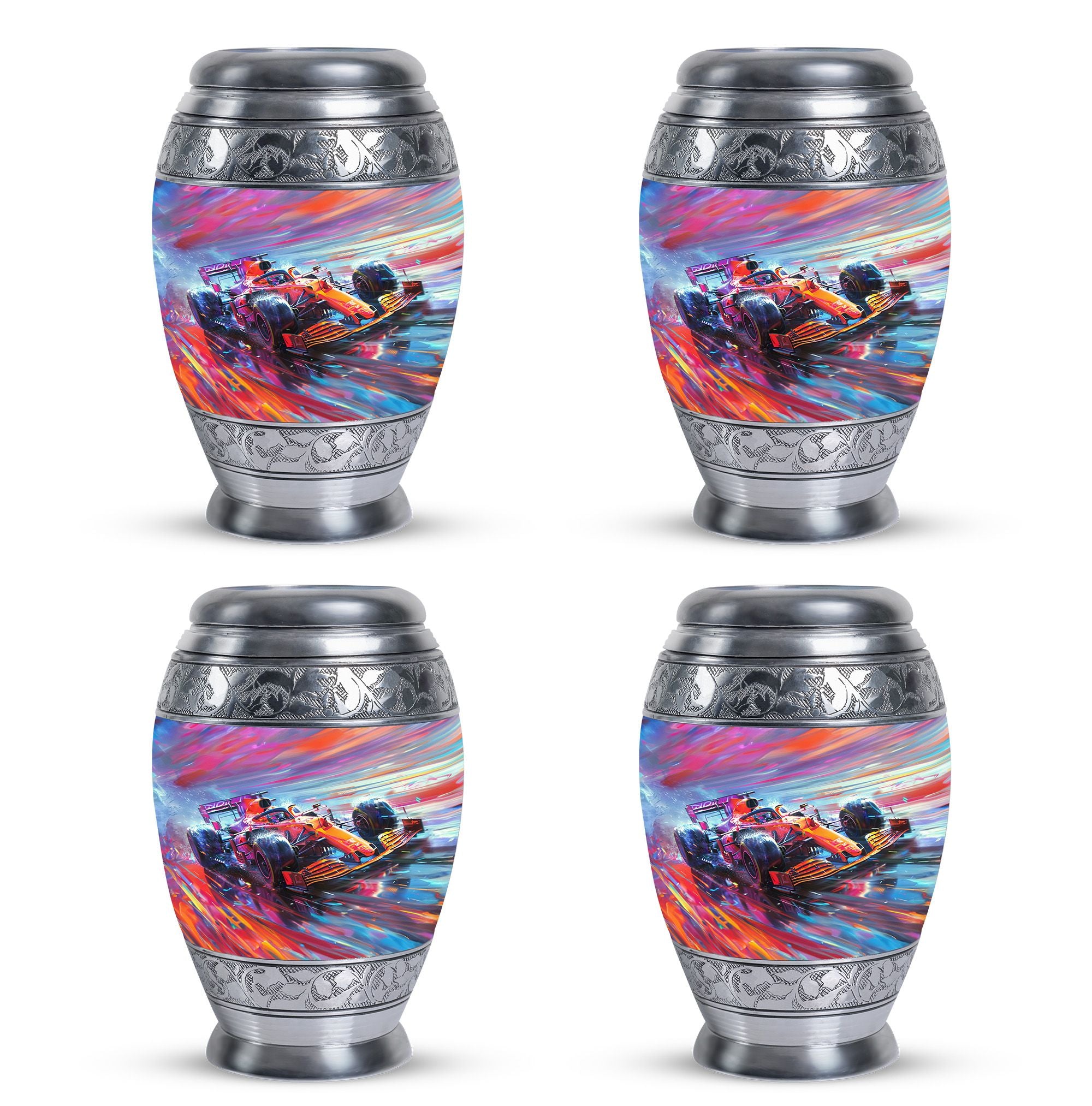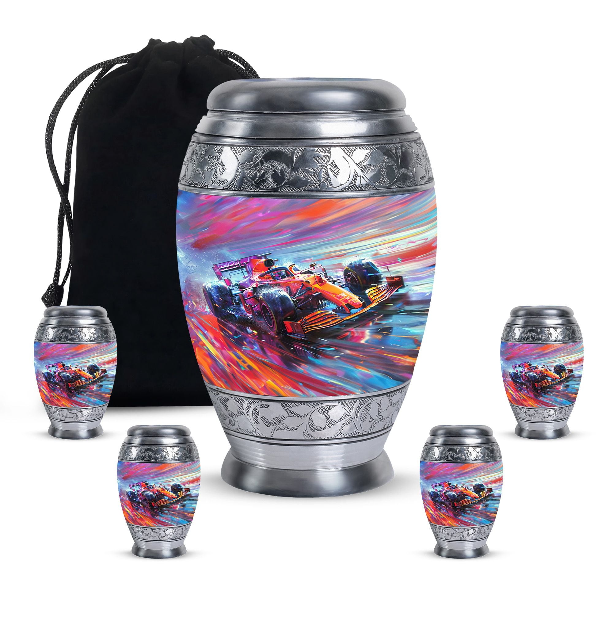 The **Hyperdrive Racing Chaos Urn** embodies the **pulse-pounding intensity of street racing, neon-lit highways, and the rush of acceleration, symbolizing adventure and an unbreakable will**.