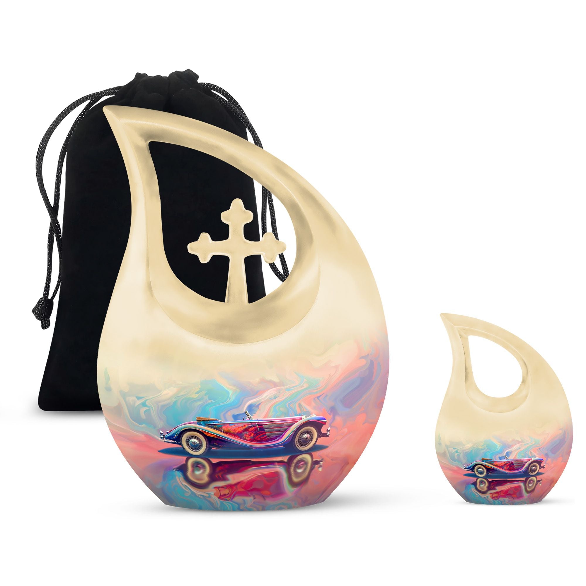 Honor the life of your loved one with this Vibrant Car Design Cremation Urn, crafted to provide a meaningful resting place. Perfect for cremation keepsakes for ashes or urns for cremation ashes mother, it offers a heartfelt way to remember and celebrate memories. This urn is both a beautiful tribute and a comforting keepsake for families.