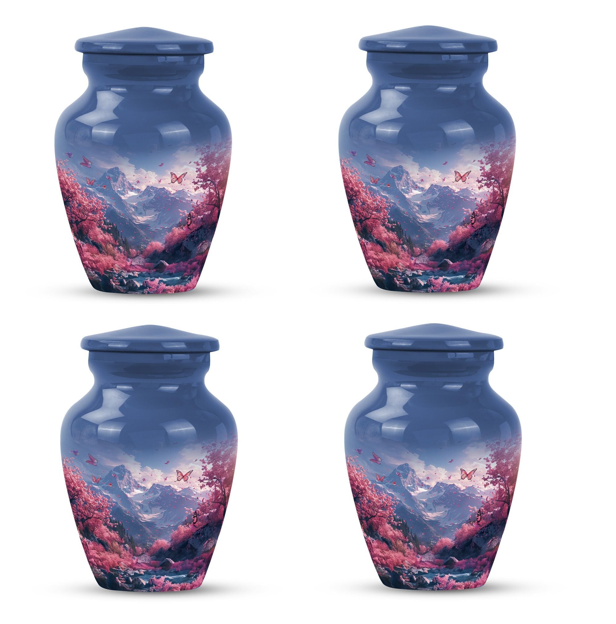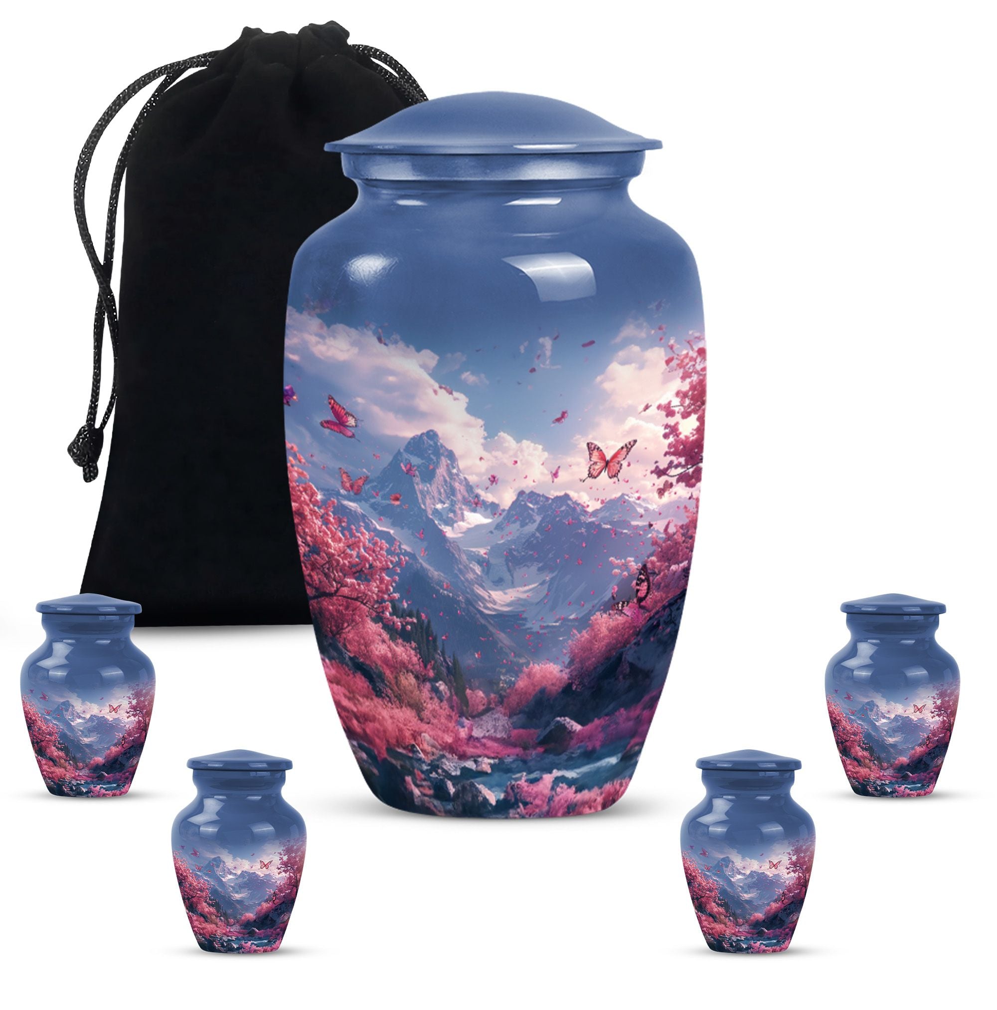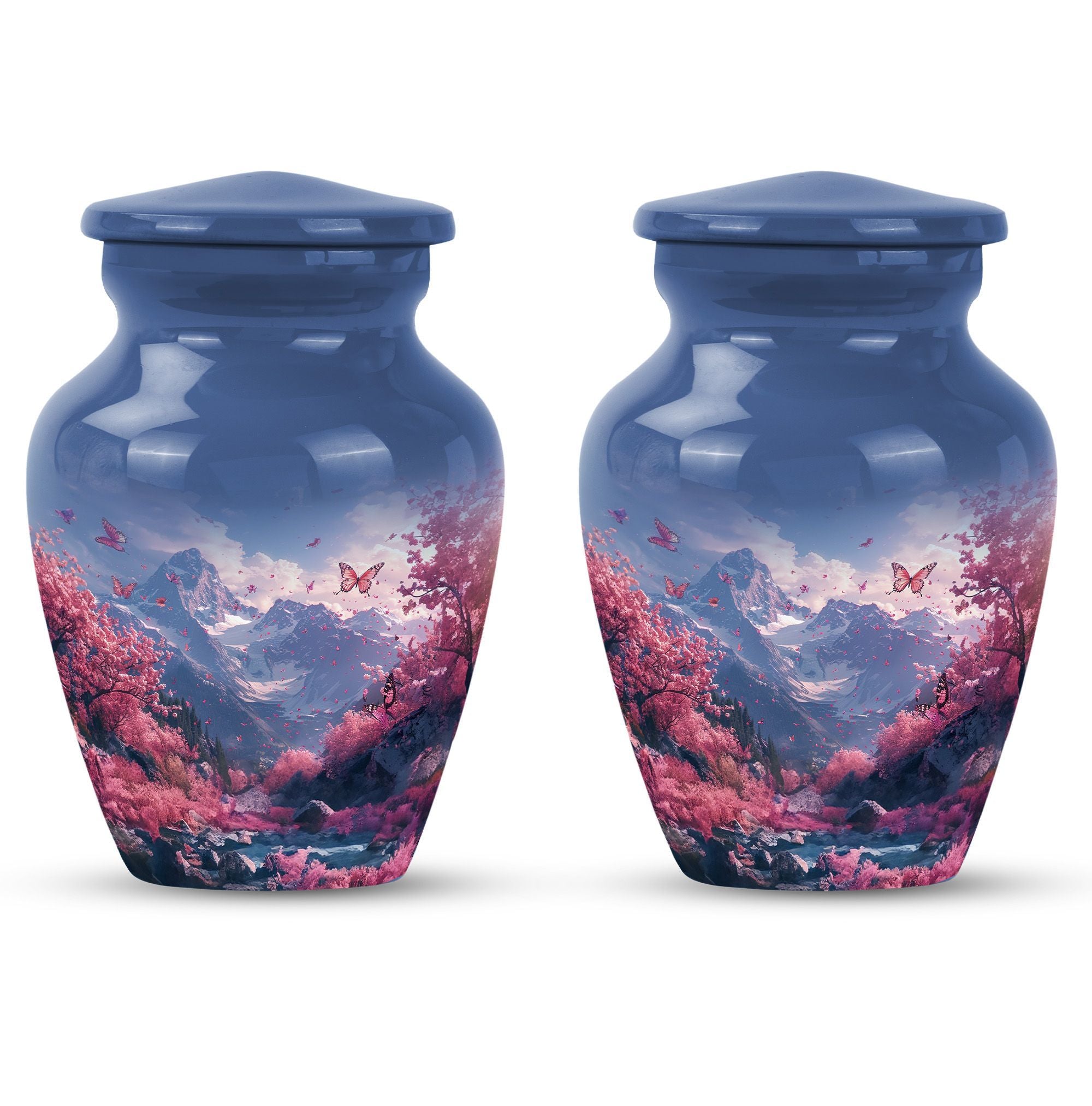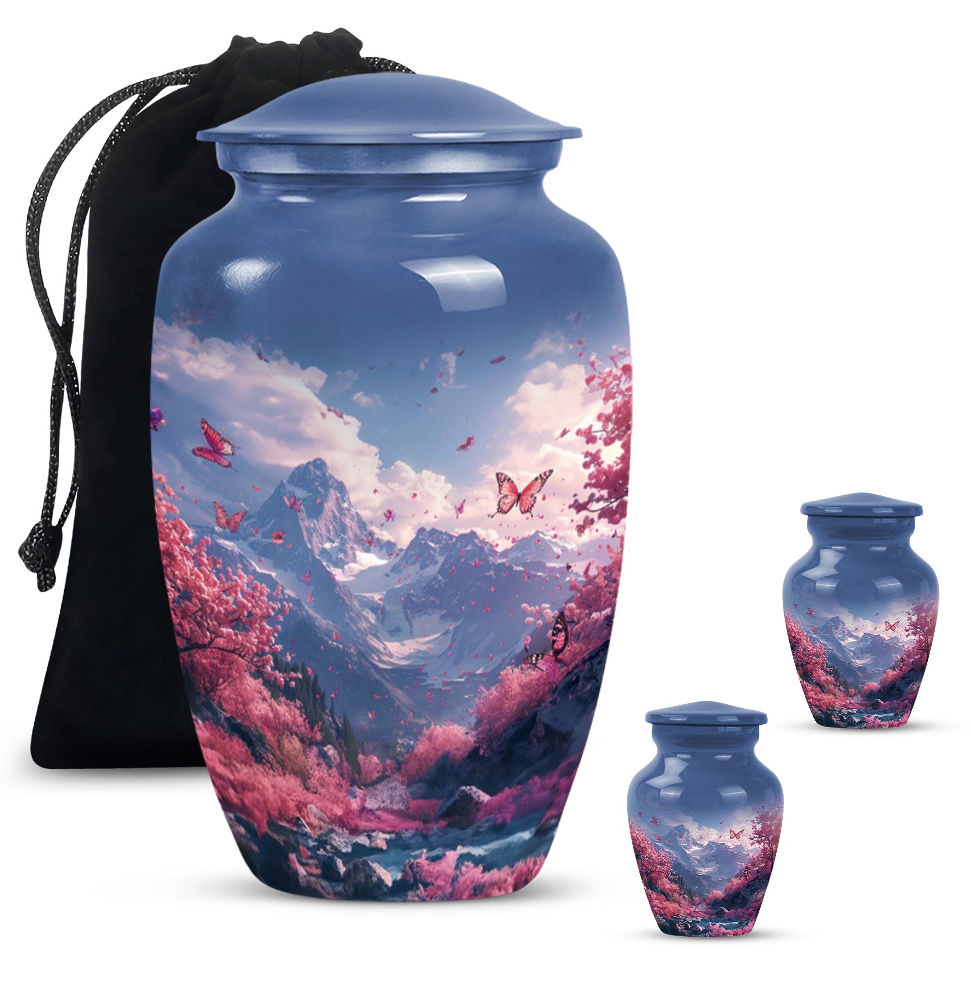 Delicately crafted to ensure reverential respect, this 10 Inch pink butterfly urn is an elegant tribute for your departed loved one. Intricate butterfly imagery adorns its aluminium framework, evoking a serene aura. Tipping the scales at a solid 3.3 pounds, this large urn is robust yet intimate, holding up to 200 cubic inches of ashes. As a cremation urn for ashes of adult males, it is designed for the solemnity of memorial ceremony needs. Easily transportable for travels, it accompanies you with a special velvet pouch, ensuring containment and preservation of the ashes. For a unique touch, personalization through engraved names is optional, allowing you to curate a genuine testament of love. Bypass common metal mandirs for home use and choose this portable urn to honour the memory of your cherished one. N.B. This description is optimized for SEO, considering keywords such as 'cremation urn', 'pink butterfly urn', 'urns for male' and 'human urn for ashes female'.