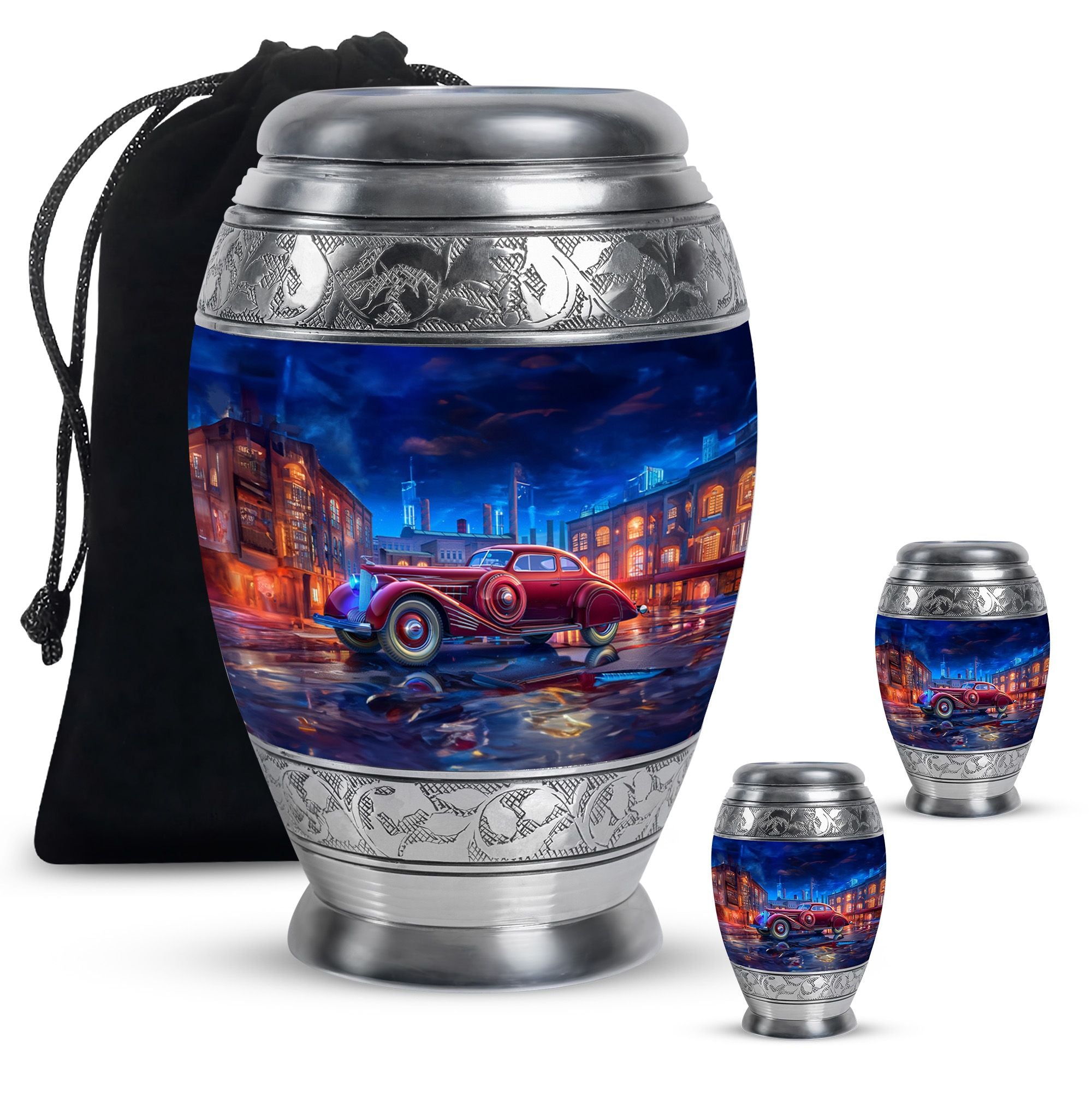 Expertly crafted from high-quality aluminum, this urn for human ashes adult male features a retro car design symbolizing journey, freedom, and timeless character. The durable finish ensures longevity, making it a meaningful piece for generations to come. Whether you choose it as a small urn for ashes adult male or for a complete burial, every detail reflects exceptional craftsmanship and purpose. It’s an ideal choice for families seeking unique urns for human ashes adult male with personality and strength.