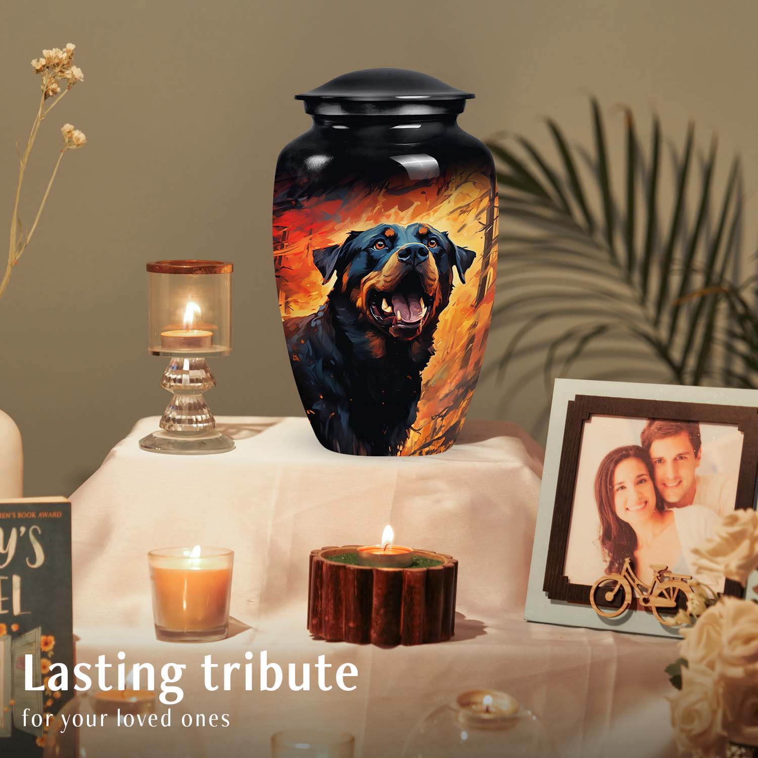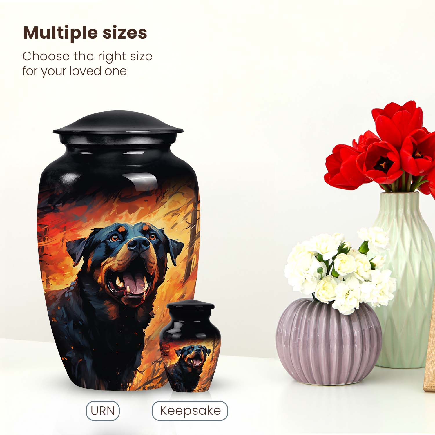 A Rottweiler’s love is unwavering — a bond that deserves to be honored forever. This Rottweiler Dog Cremation Urn for Ashes serves as a timeless pet ashes keepsake, offering comfort and beauty as you remember your loyal friend. Crafted with compassion, this memorial urn for pet is designed to help you celebrate your Rottweiler’s life with dignity and love.
