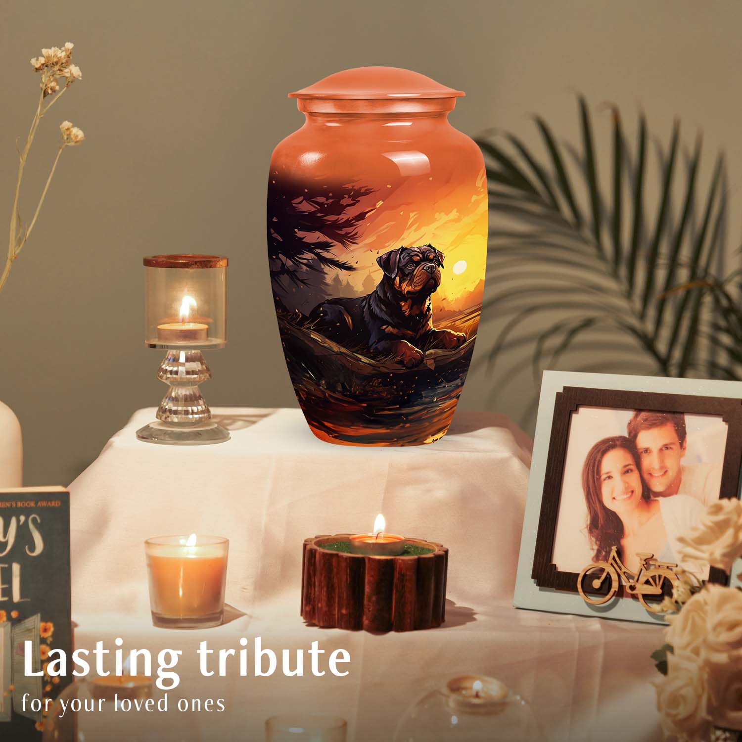 A Rottweiler’s loyalty is eternal, and this Rottweiler Dog Memorial Urn for Ashes captures that unbreakable bond with beauty and grace. Thoughtfully designed as one of the most beautiful pet urns, it provides comfort and remembrance for those seeking to celebrate a life of devotion and love. Whether placed indoors or outdoors, this modern pet urn keeps your beloved companion’s memory close to your heart.