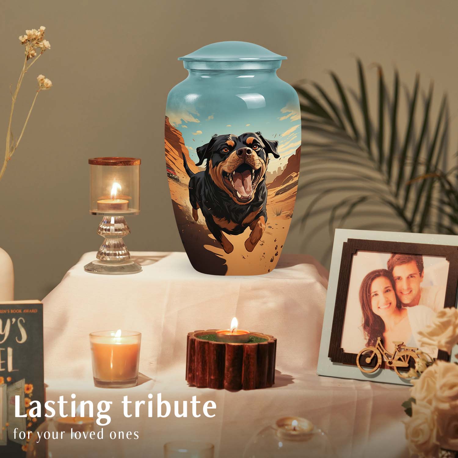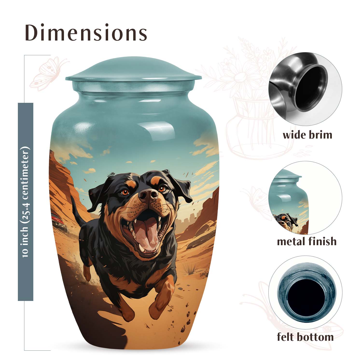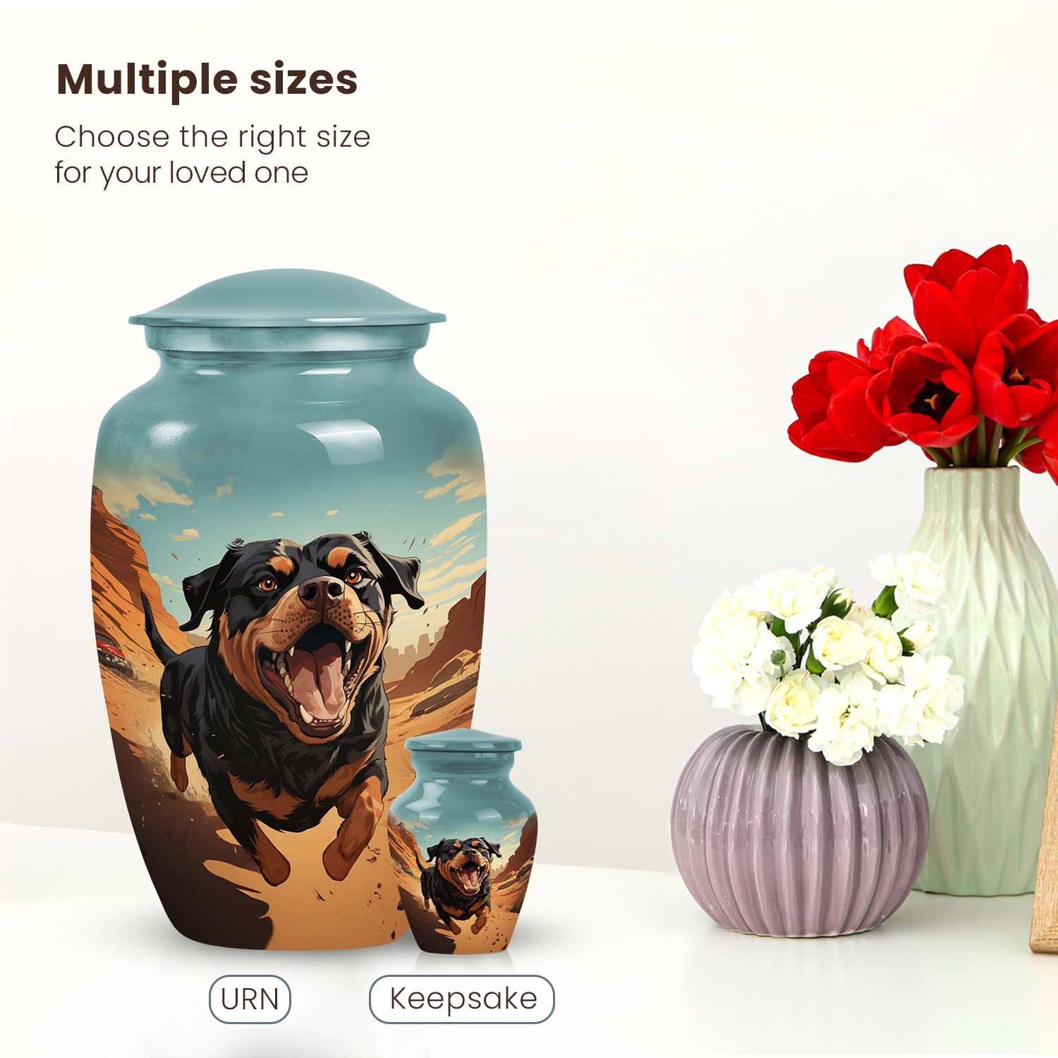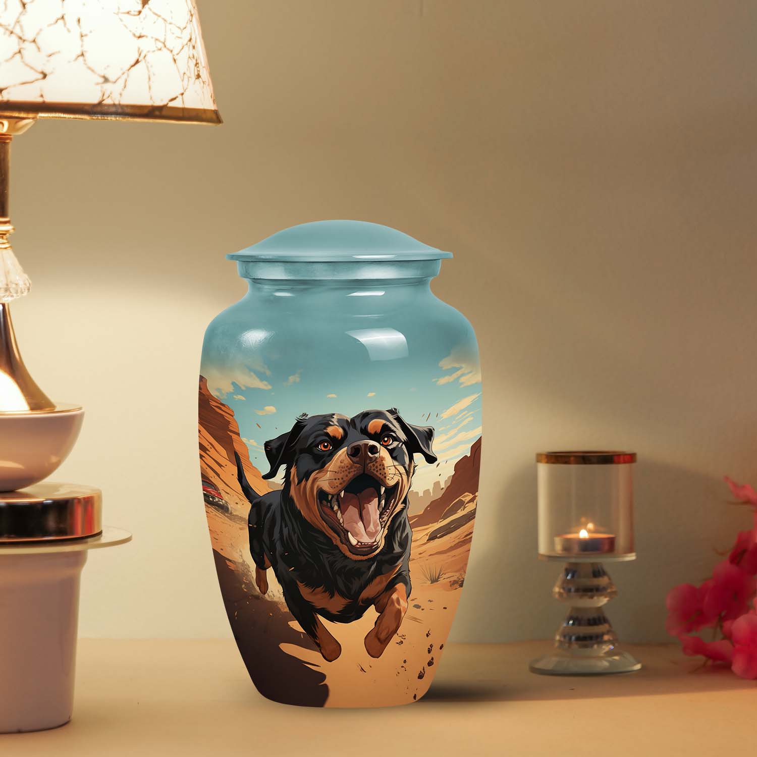A Rottweiler’s loyalty and love leave an everlasting mark on your heart. This Rottweiler Dog Pet Cremation Urn for Ashes offers a comforting way to honor that bond. Thoughtfully designed as a small pet urn, it serves as a touching pet ash memorial, keeping your beloved companion’s memory alive with warmth and grace.