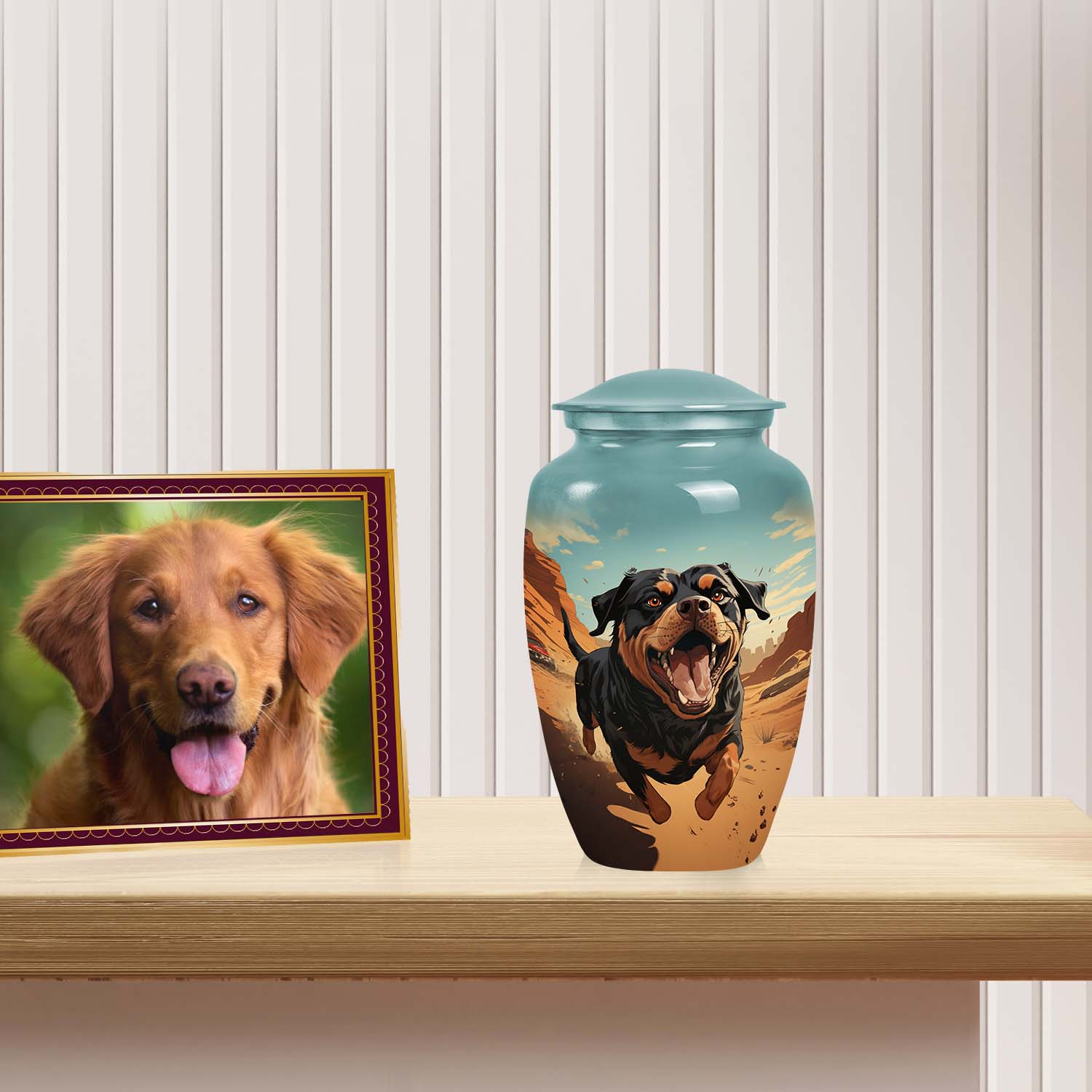 Crafted with care and compassion, this urn stands among the best pet urns for those seeking both quality and sentiment. Its design captures the loyal essence of the Rottweiler while providing a safe and dignified resting place for your pet’s ashes. The elegant finish and smooth contours make it a perfect pet keepsake box for display in your home, offering peace and remembrance every time you see it. Whether you’re looking for chewy pet urns or something uniquely handcrafted, this urn brings timeless beauty and meaning to your memorial.