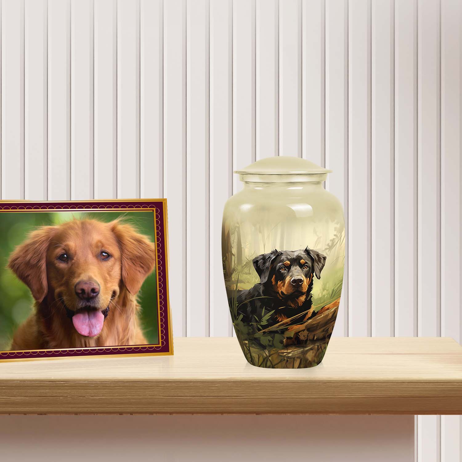 This forest-themed urn serves as both a pet memorial box for ashes and a touching reminder of the bond shared with your Rottweiler. Its natural design evokes peace and reflection, making it perfect for display in any home or memorial setting.