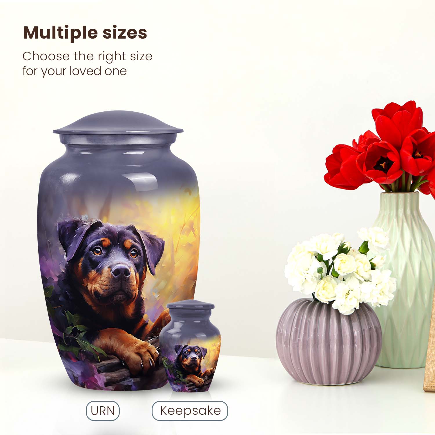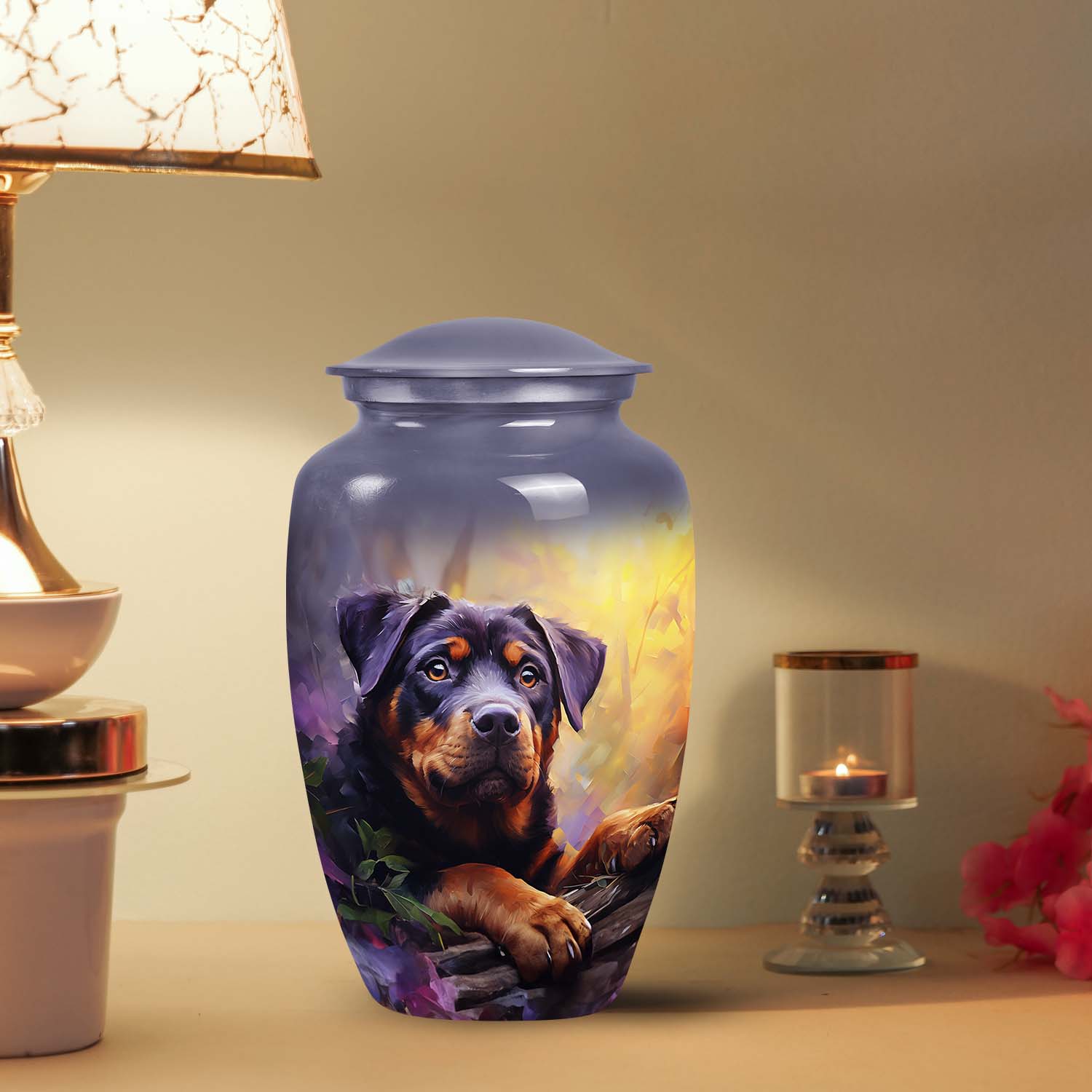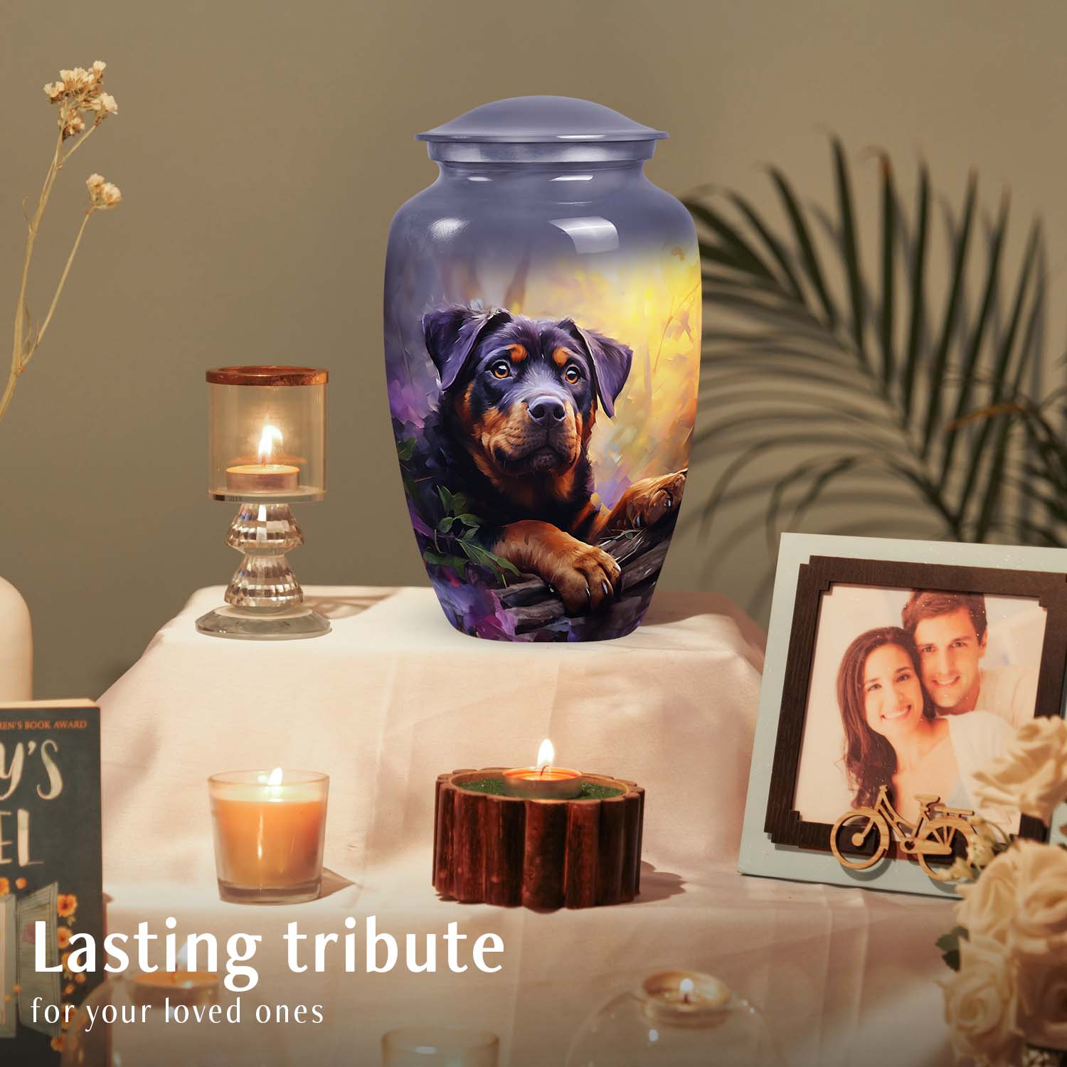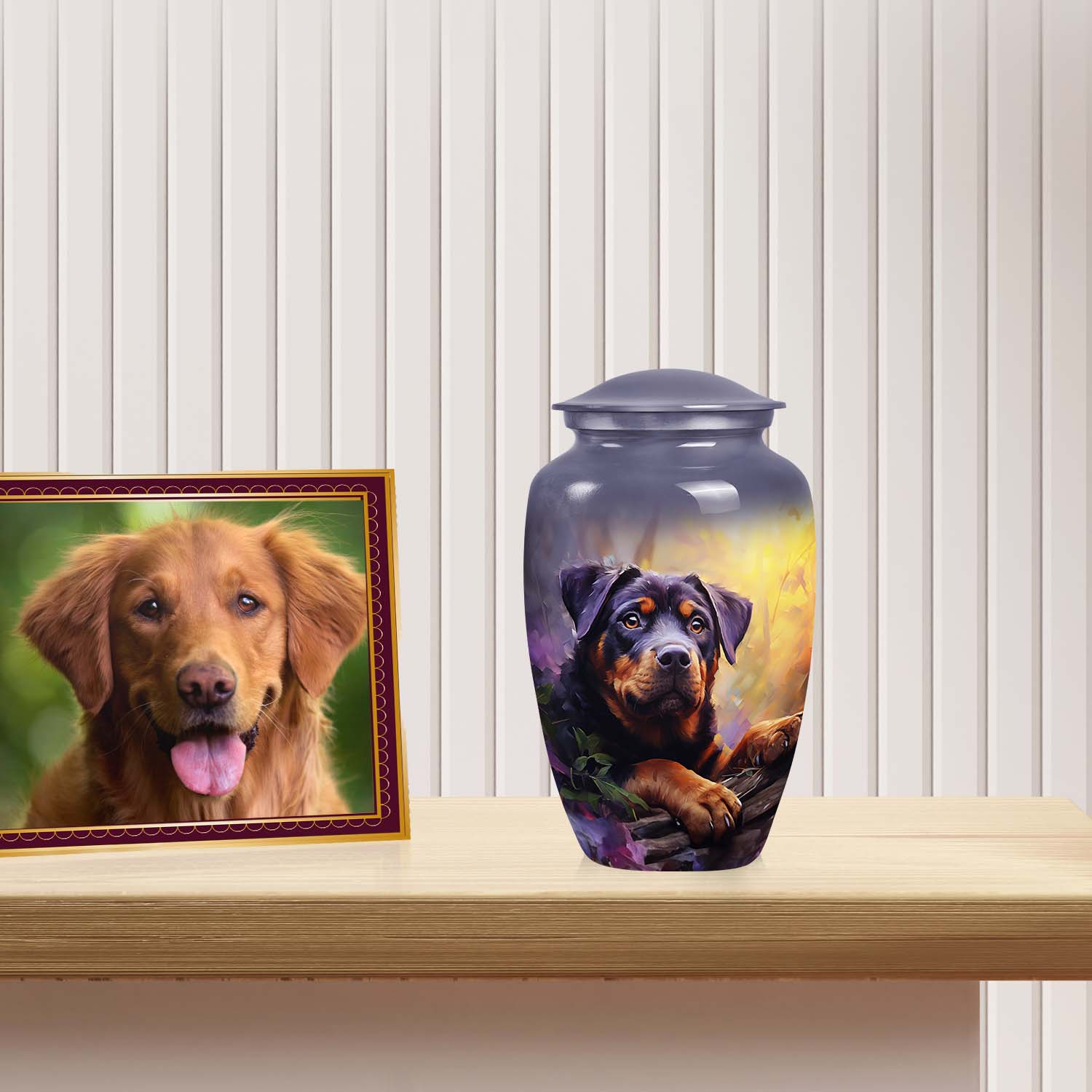 Losing a beloved pet is never easy, but their love lives on in the memories we hold dear. This Rottweiler Puppy Pet Cremation Urn for Ashes offers a beautiful way to celebrate your faithful friend’s life. Thoughtfully designed, this urn serves as a touching pet ashes keepsake and a comforting reminder of the bond you’ll always share.