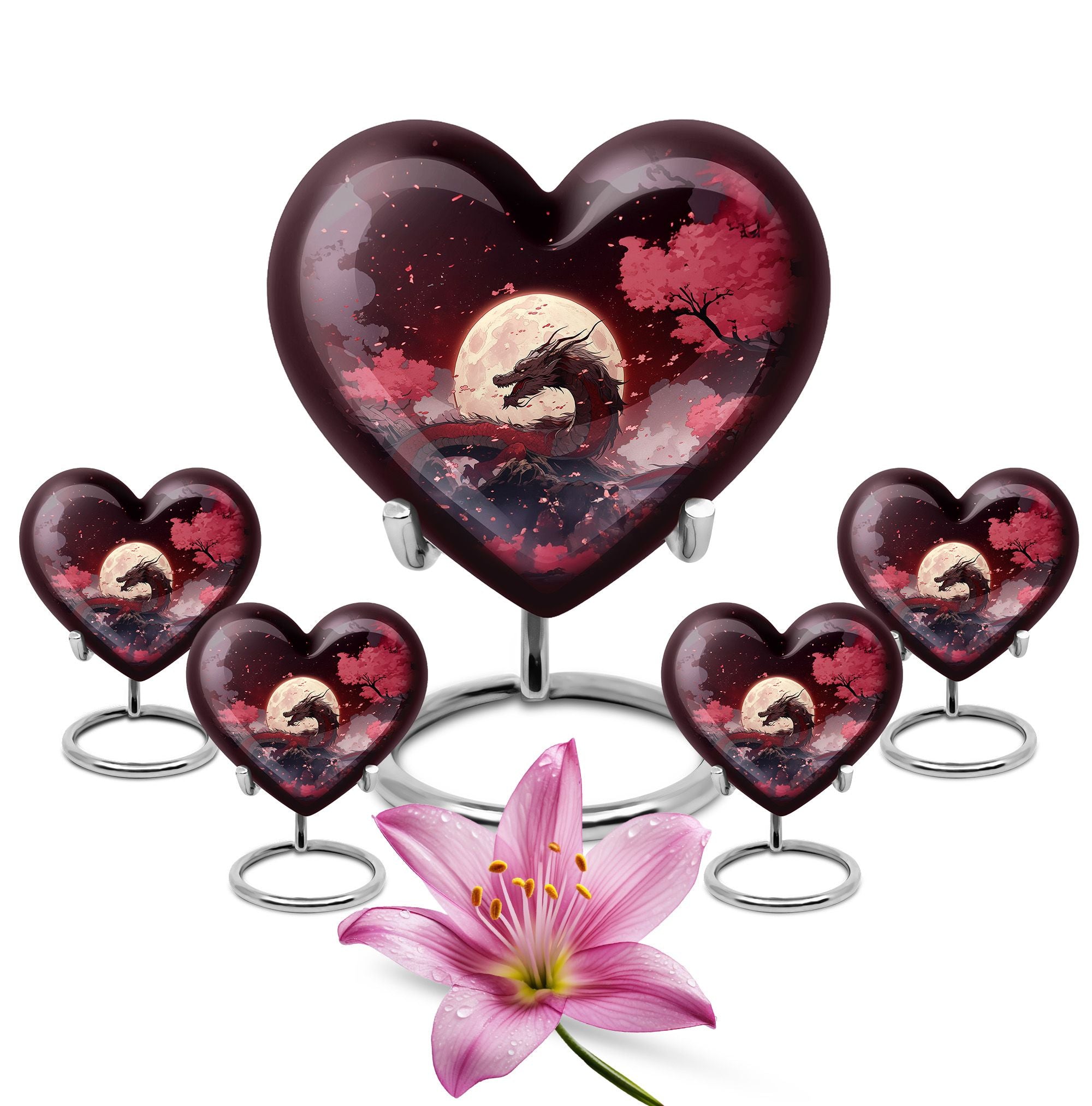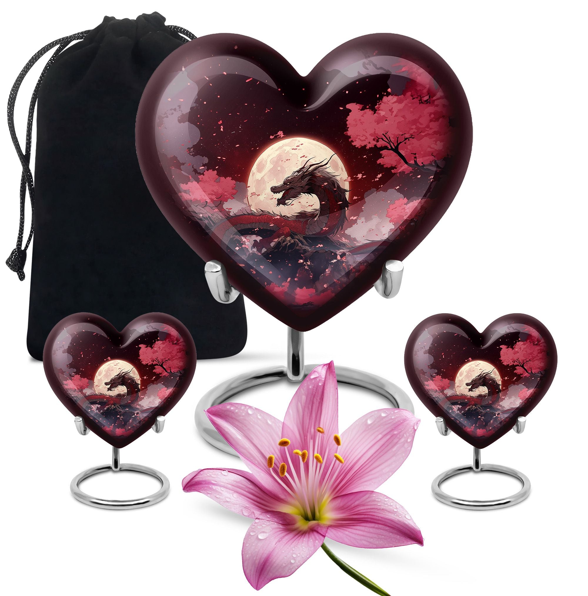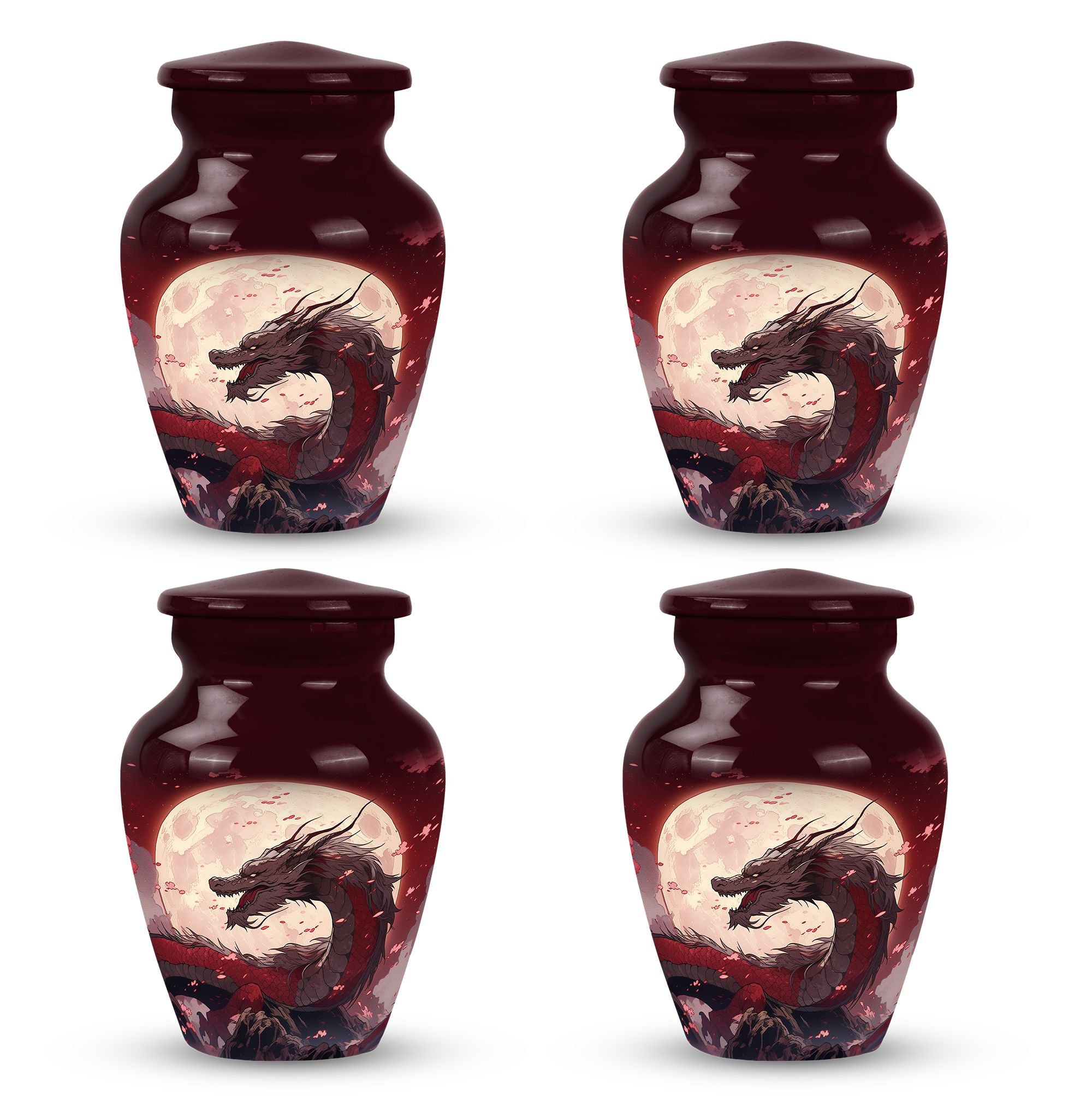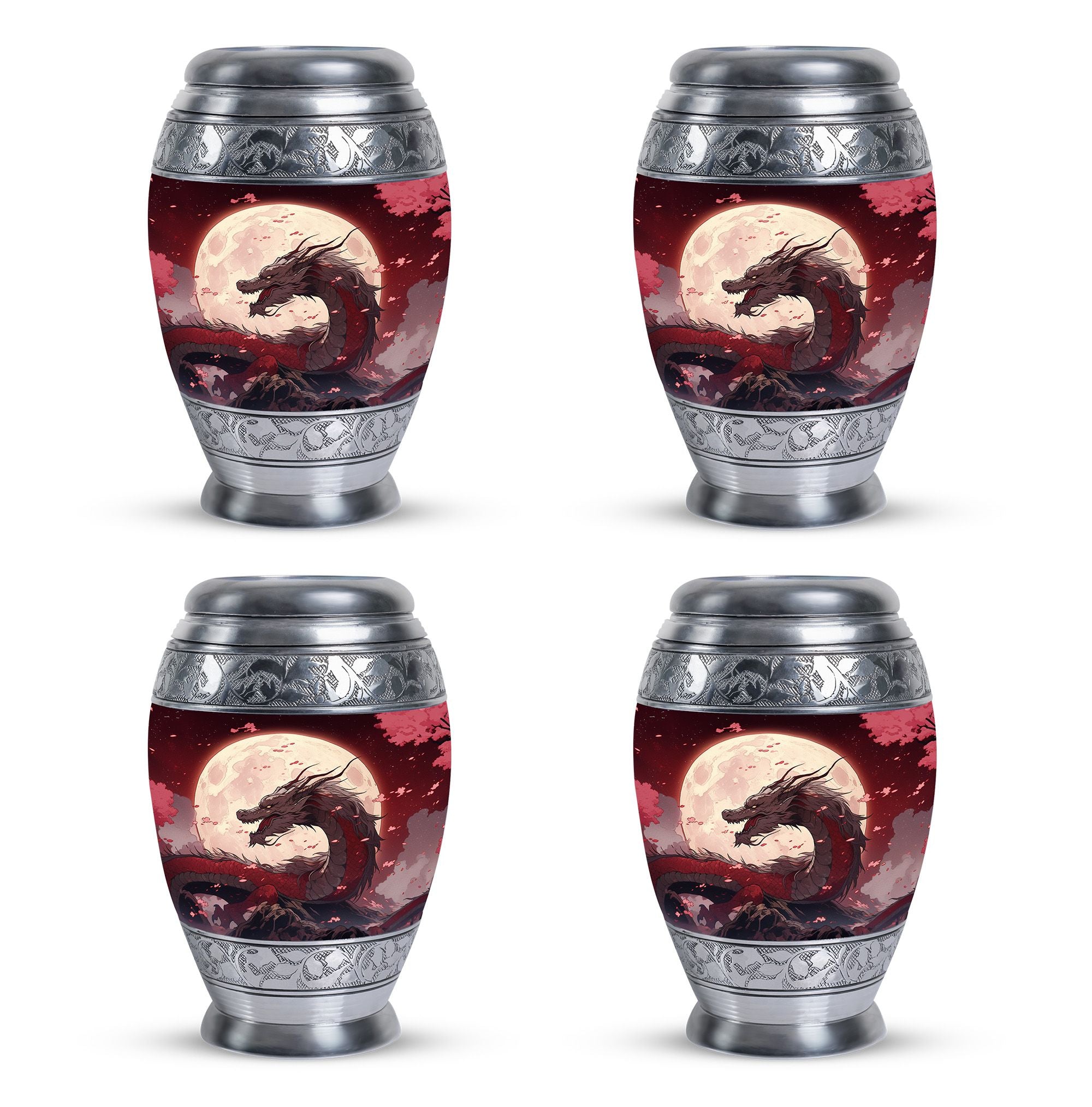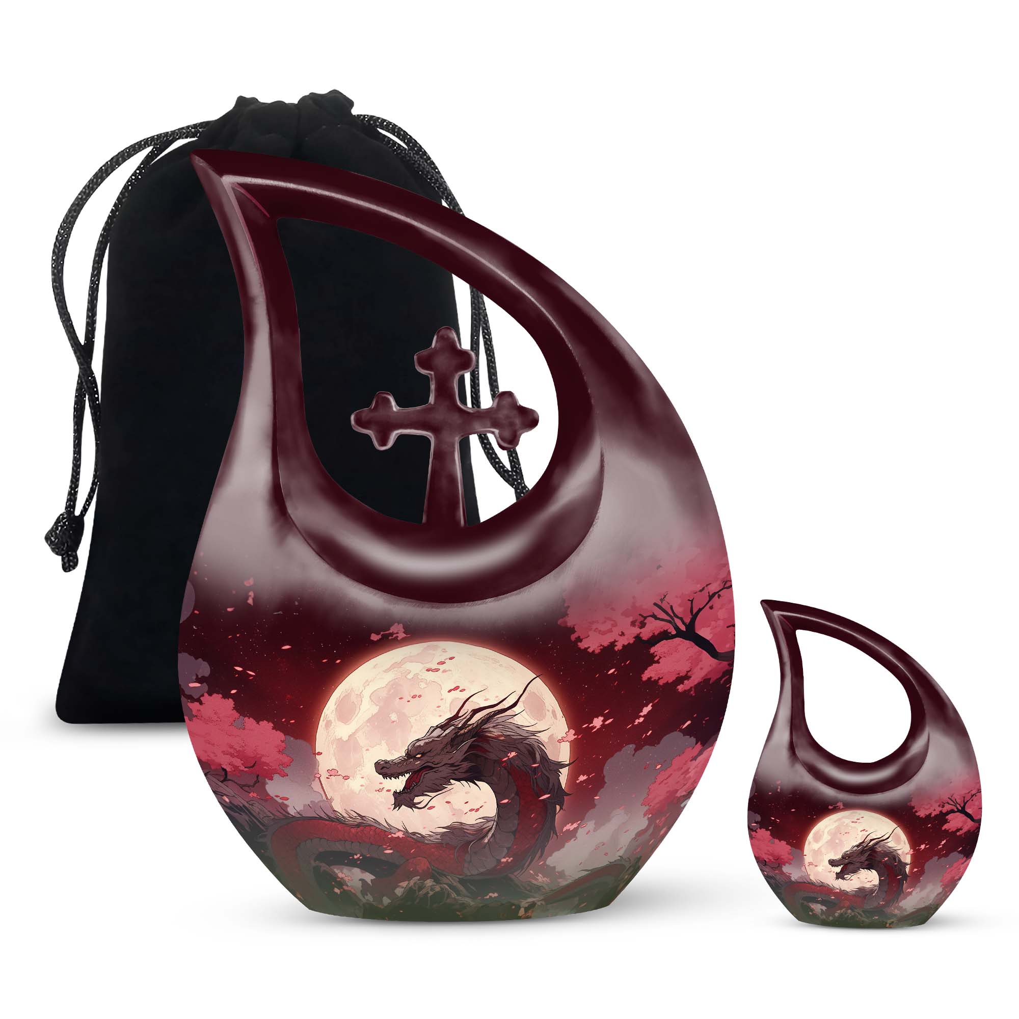 Designed with exquisite craftsmanship, this large decorative urn showcases a majestic dragon circling a glowing moon — a representation of strength guarding serenity. Made from durable aluminium, it ensures long-lasting protection for your loved one’s remains. This cremation urn large adult piece serves as both a memorial and a striking piece of art, suitable for home display or burial.