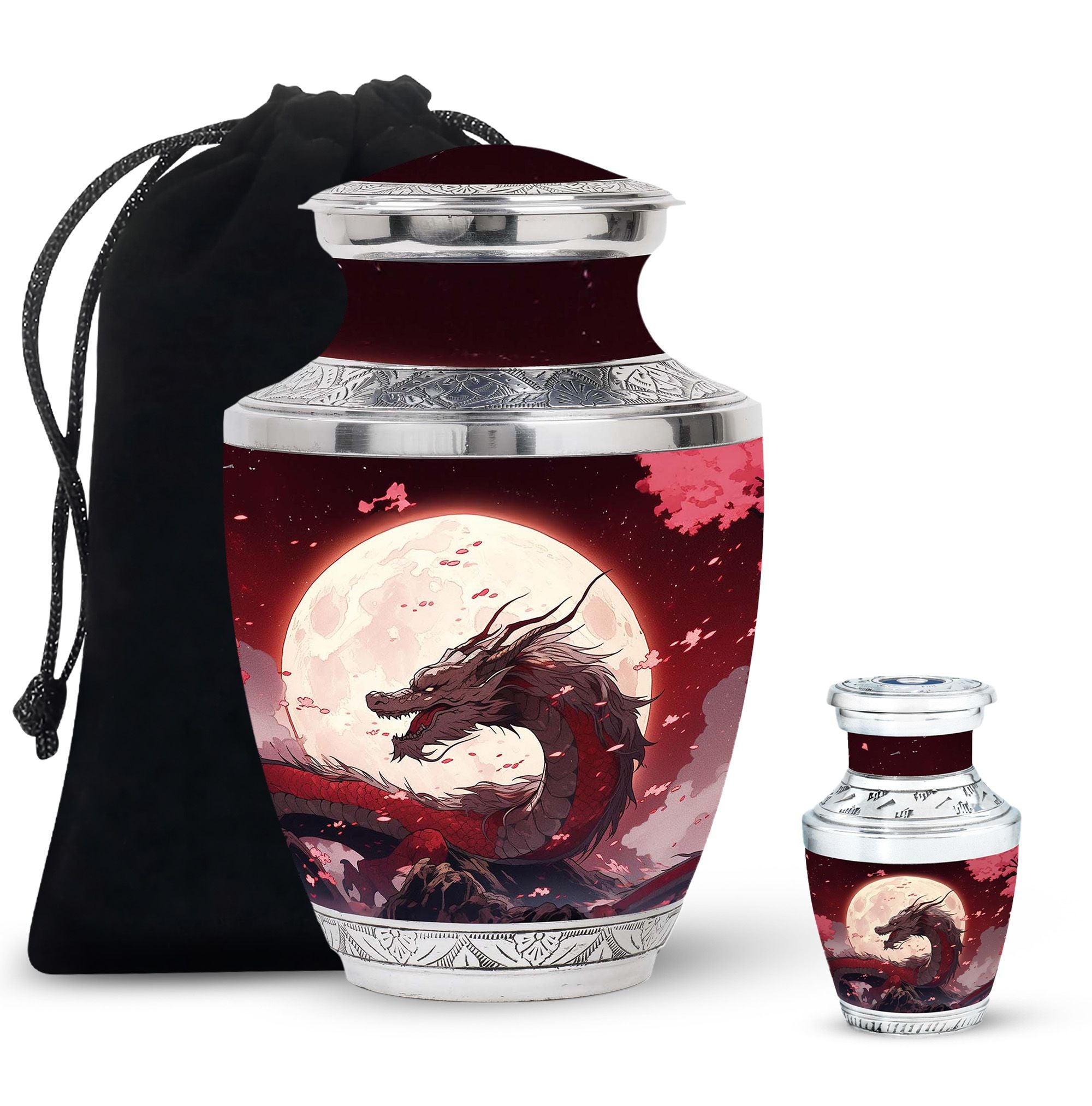 Celebrate the eternal strength and grace of your loved one with this Dragon Themed Burial Urn with Moon Design, a powerful symbol of protection and peace. Crafted to provide a meaningful resting place, this urn beautifully represents rebirth and eternity. Ideal for those seeking large urns for human ashes or adult large urns that blend symbolism with elegance.
