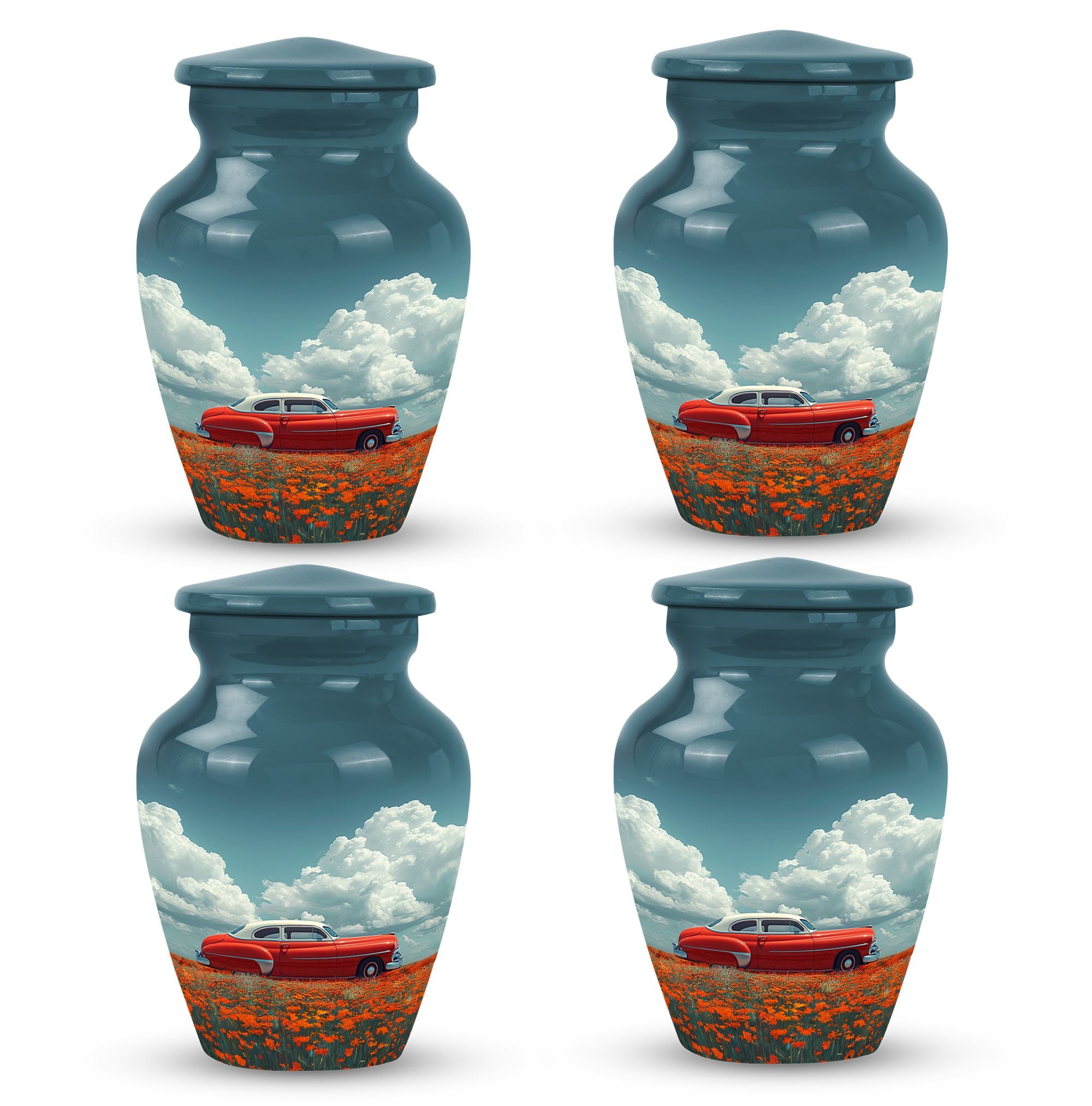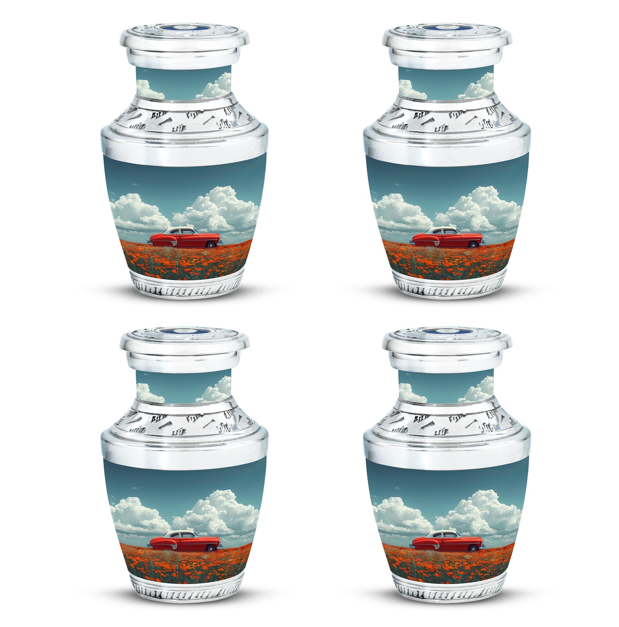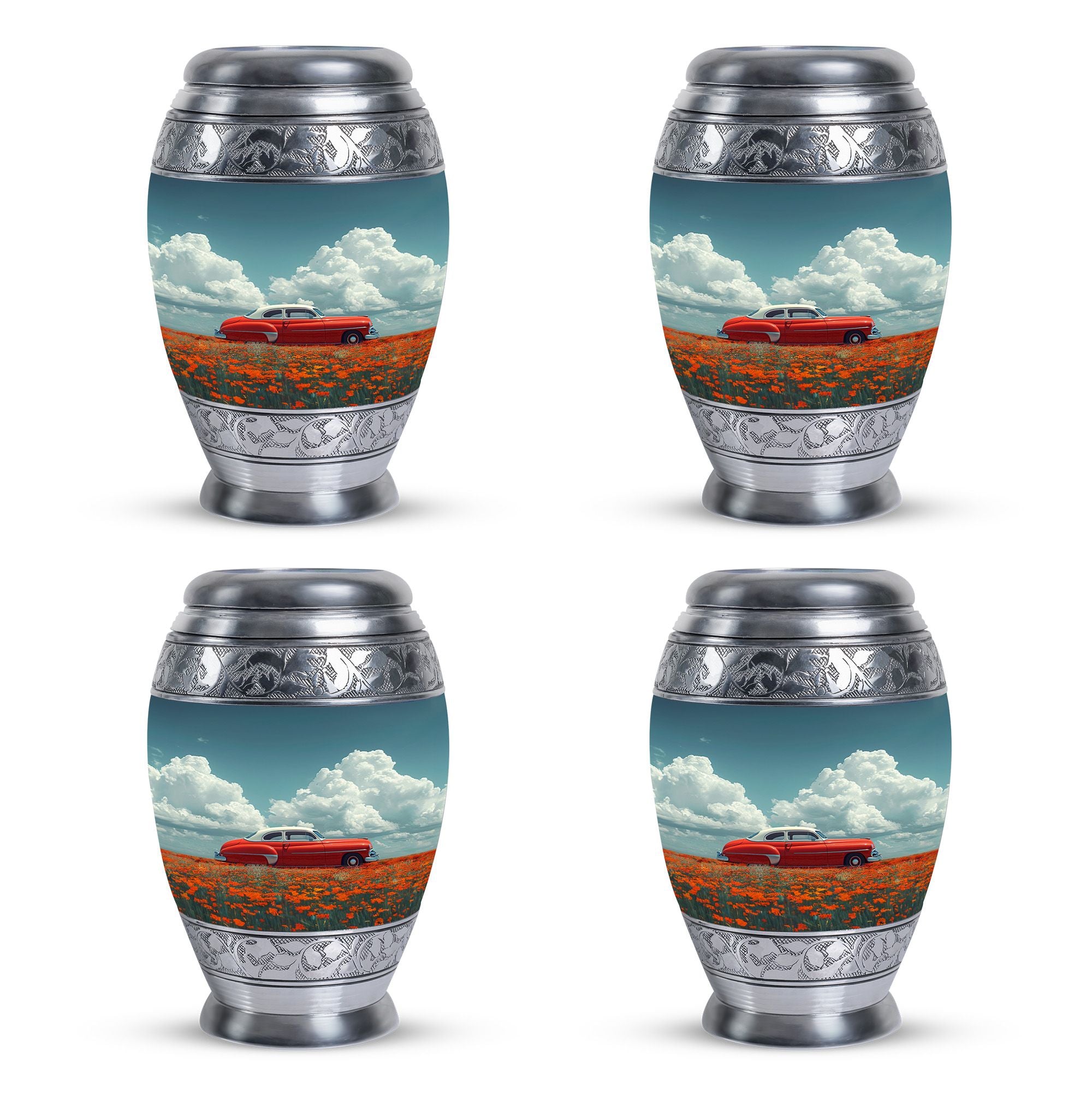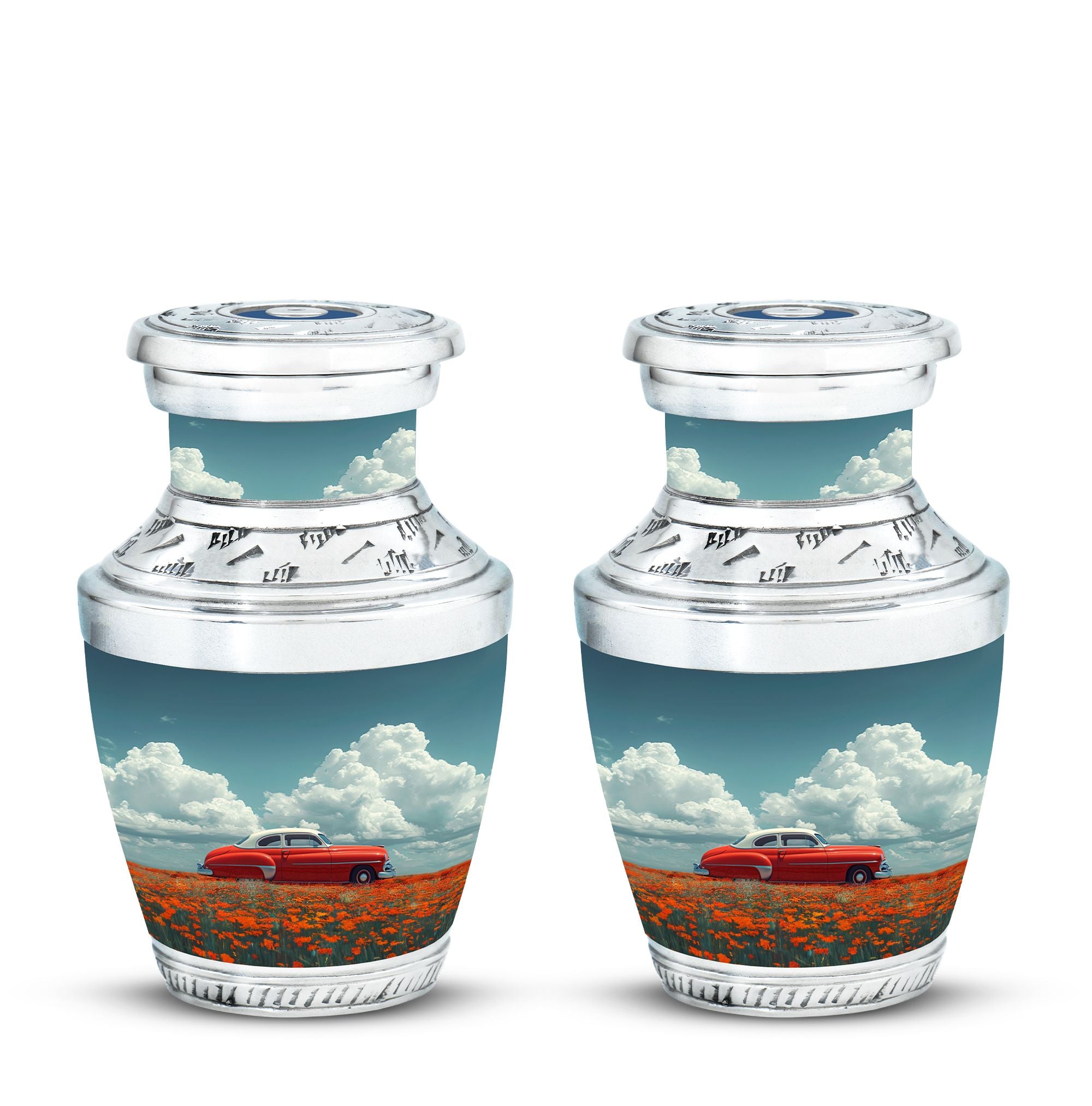 Expertly handcrafted, this large decorative urn for human ashes features a radiant red vintage car design, symbolizing vitality and timeless elegance. Made from durable aluminum, it ensures long-lasting protection and beauty. The secure screw-top lid offers peace of mind, keeping your loved one’s ashes safe. This large adult urn is perfect for home display or burial, blending artistry with heartfelt significance. Each large urn human ashes is finished with care, making it a meaningful keepsake for generations to come.