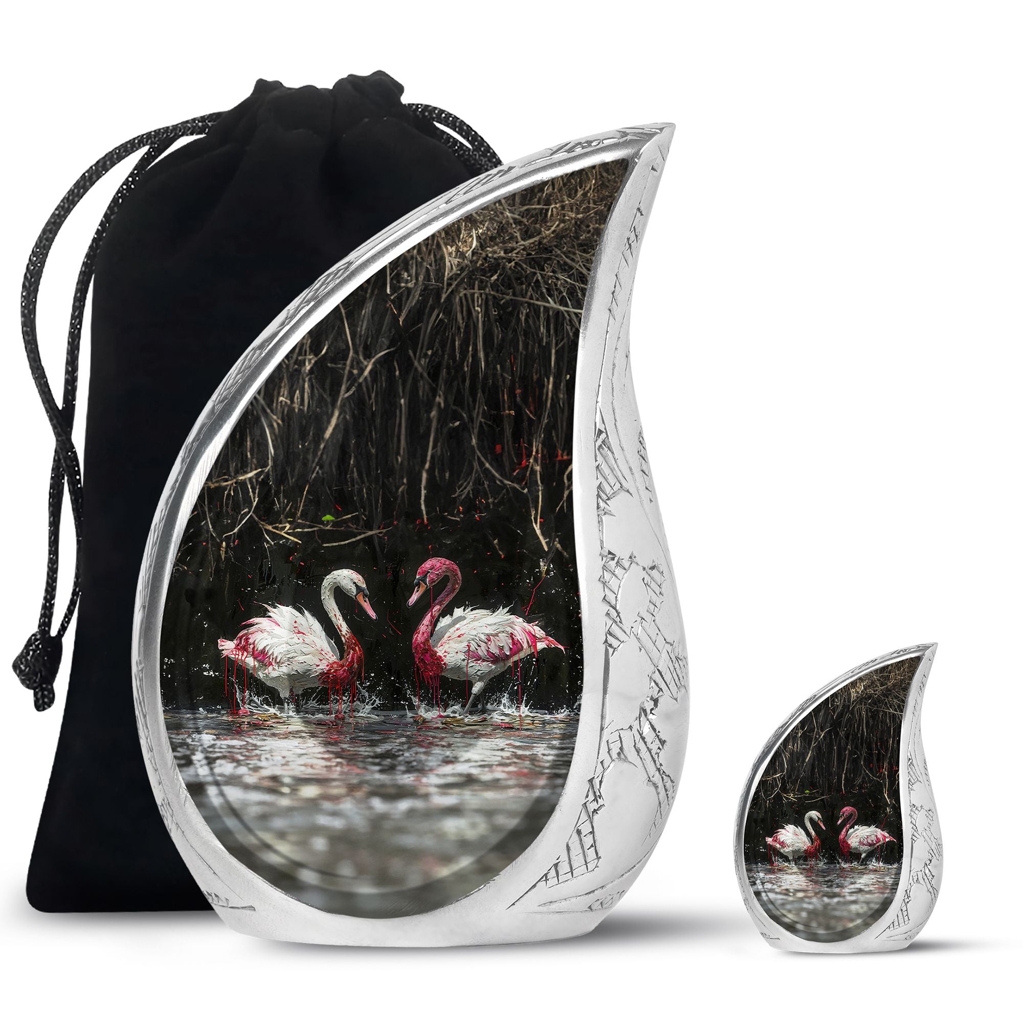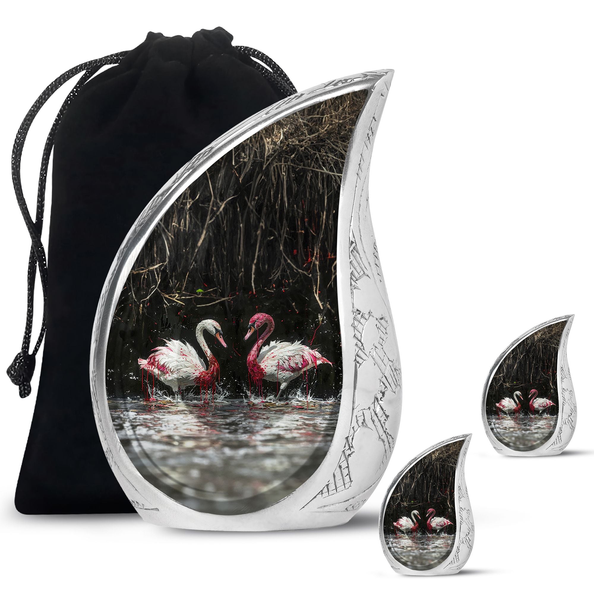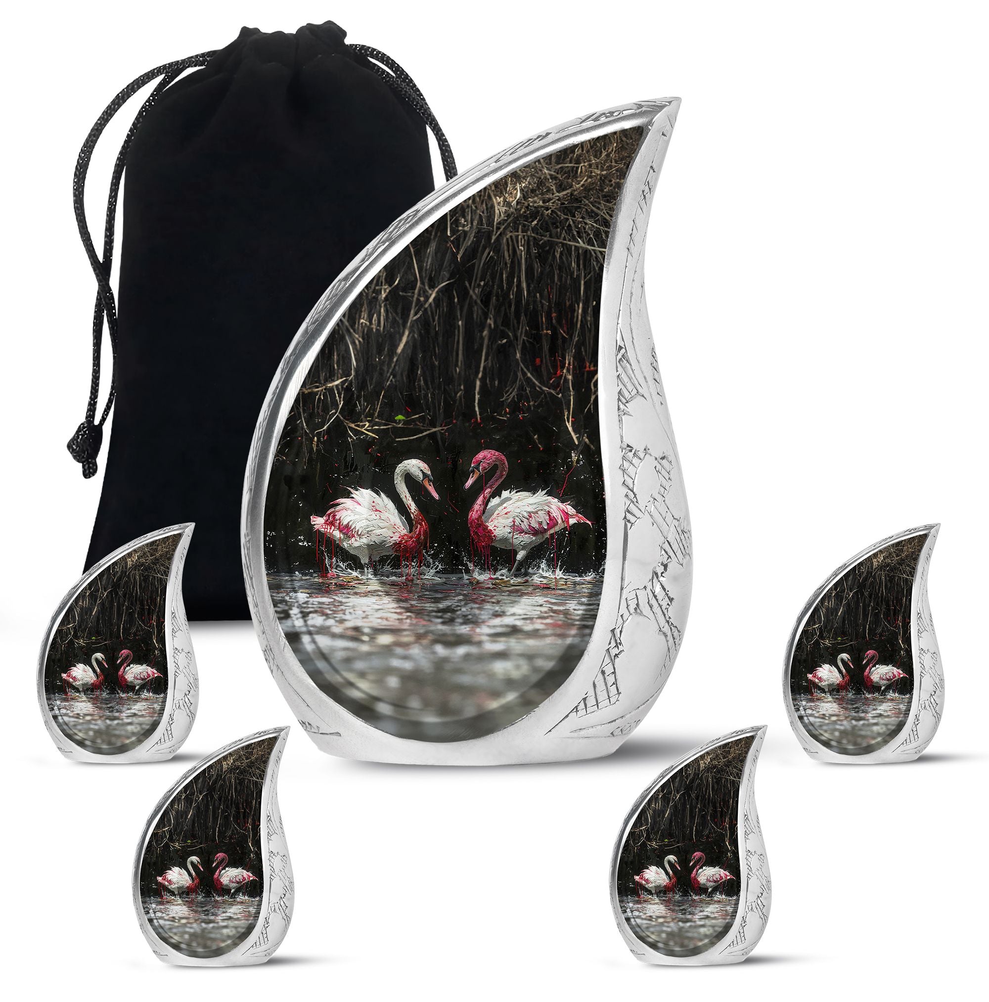 Let these urns for human ashes large adult reflect the grace and purity of everlasting love — a reminder that memories, like swans, stay together forever.