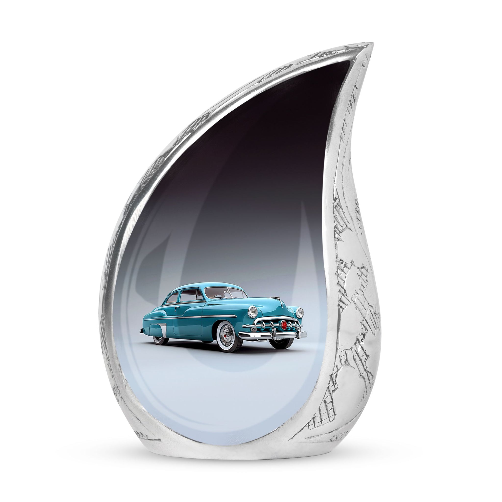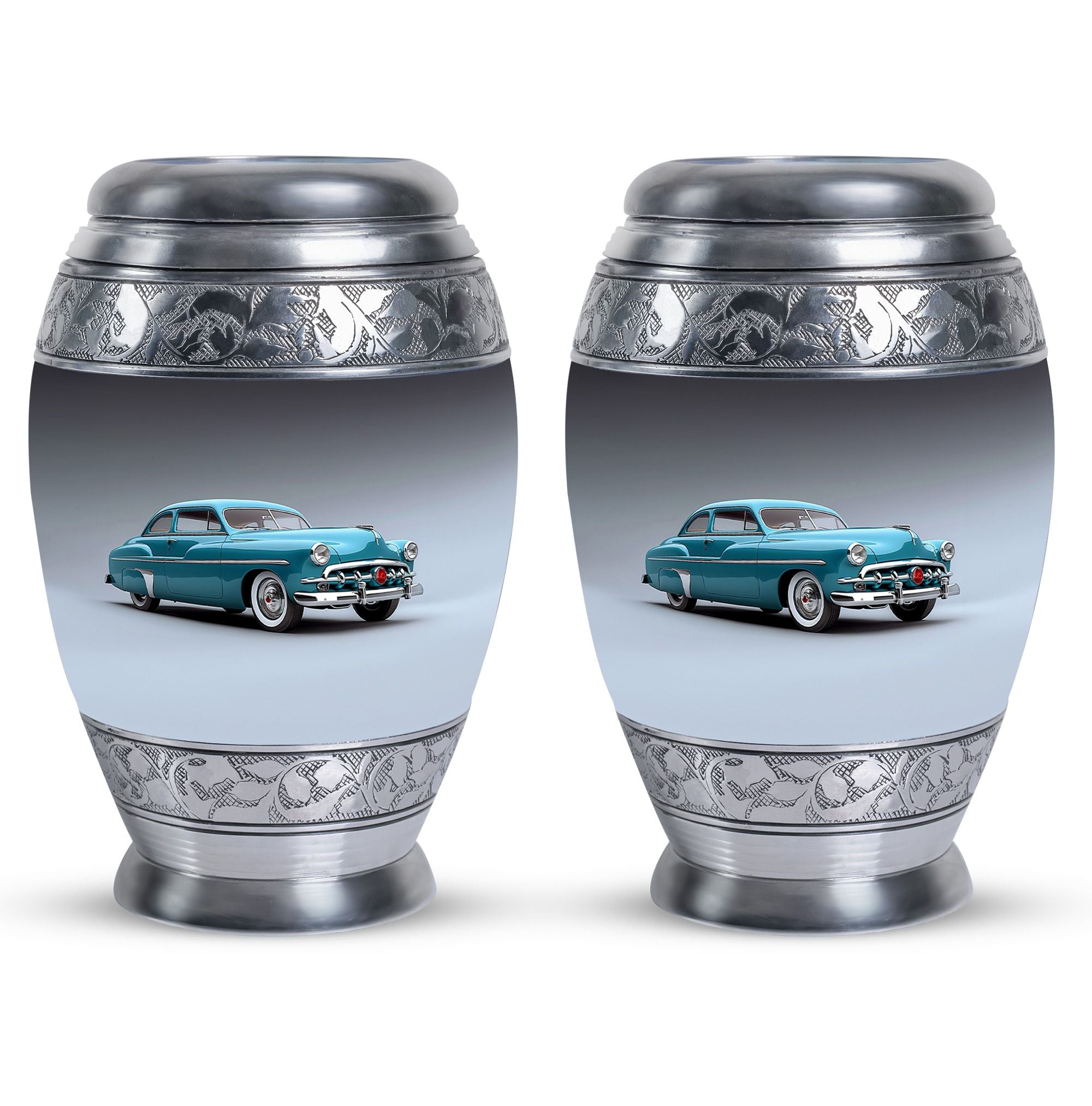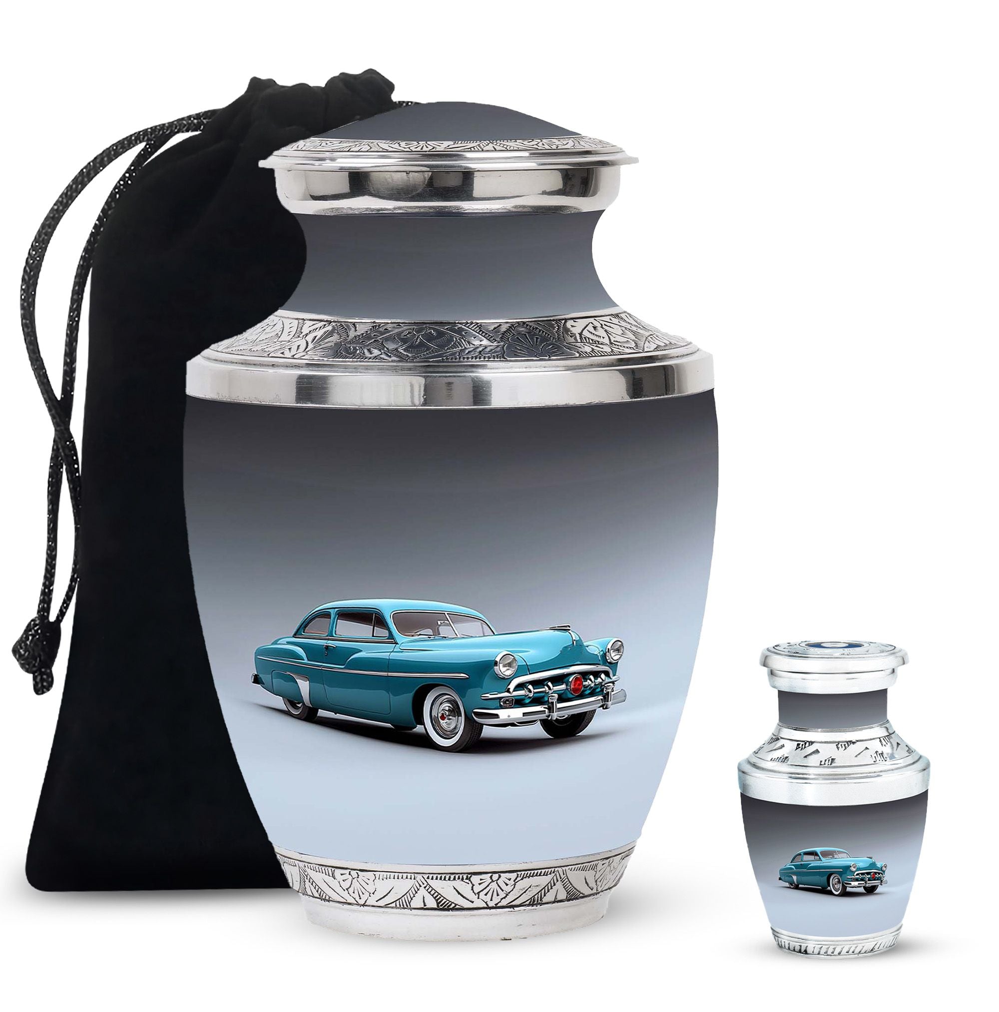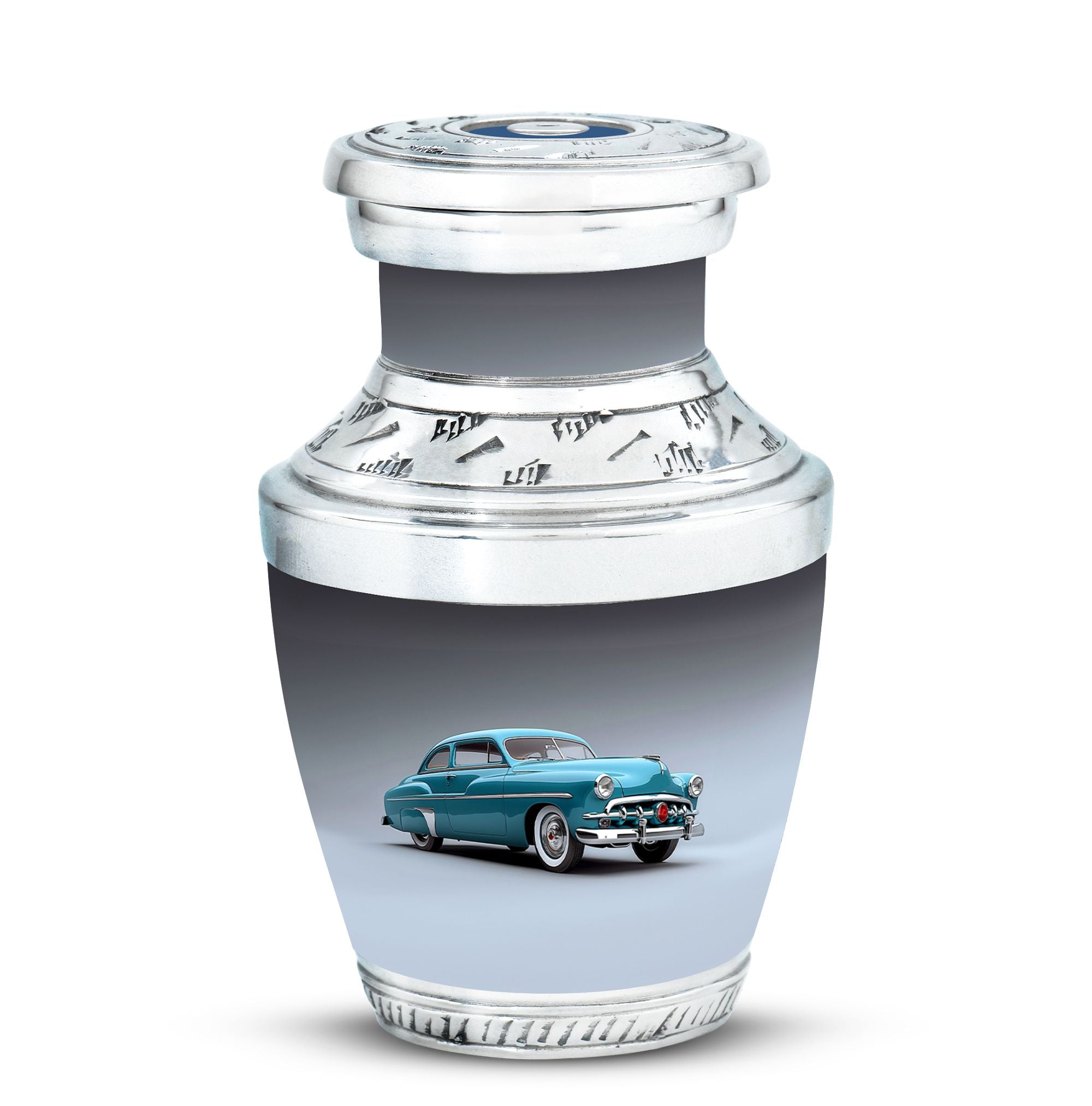Beautifully handcrafted, this urn for human ashes adult male features a deep vintage red car motif with silver detailing, evoking classic elegance and enduring craftsmanship. Constructed from durable aluminum, it ensures lasting protection and peace of mind. The secure screw-top lid keeps ashes safely enclosed, while its polished surface adds a touch of sophistication — making it a timeless urn for ashes adult male small keepsake or a stunning display piece for memorial settings. Whether chosen as urns for human ashes adult female mom or urns for human ashes adult male dad, each design honors life’s treasured memories.