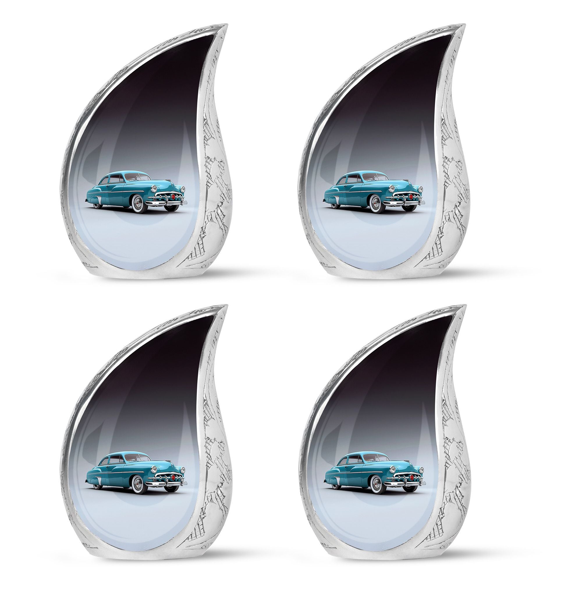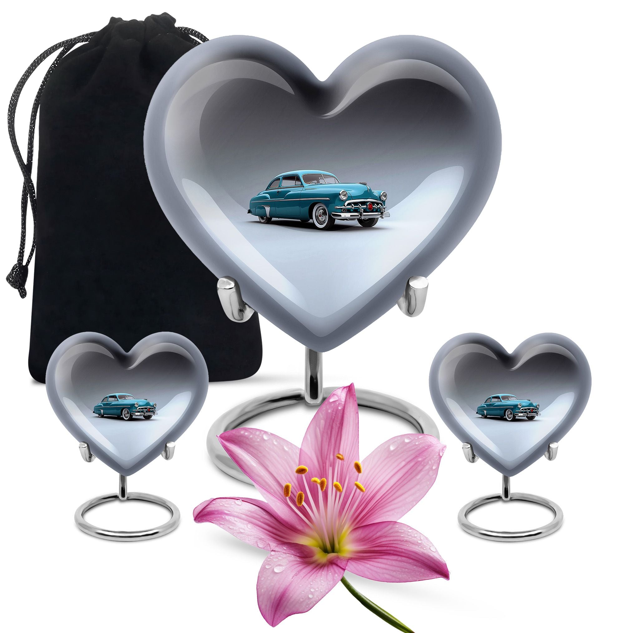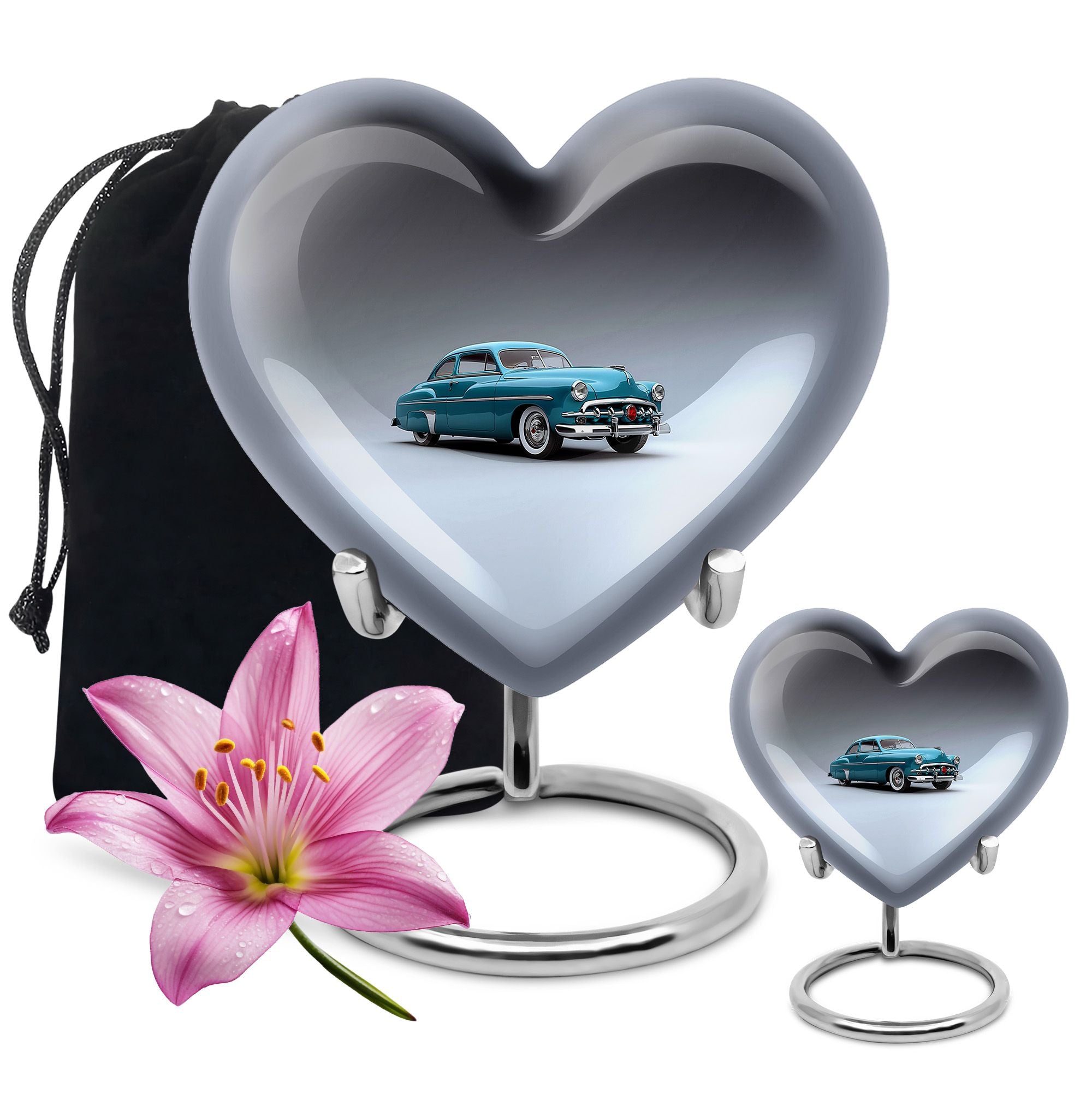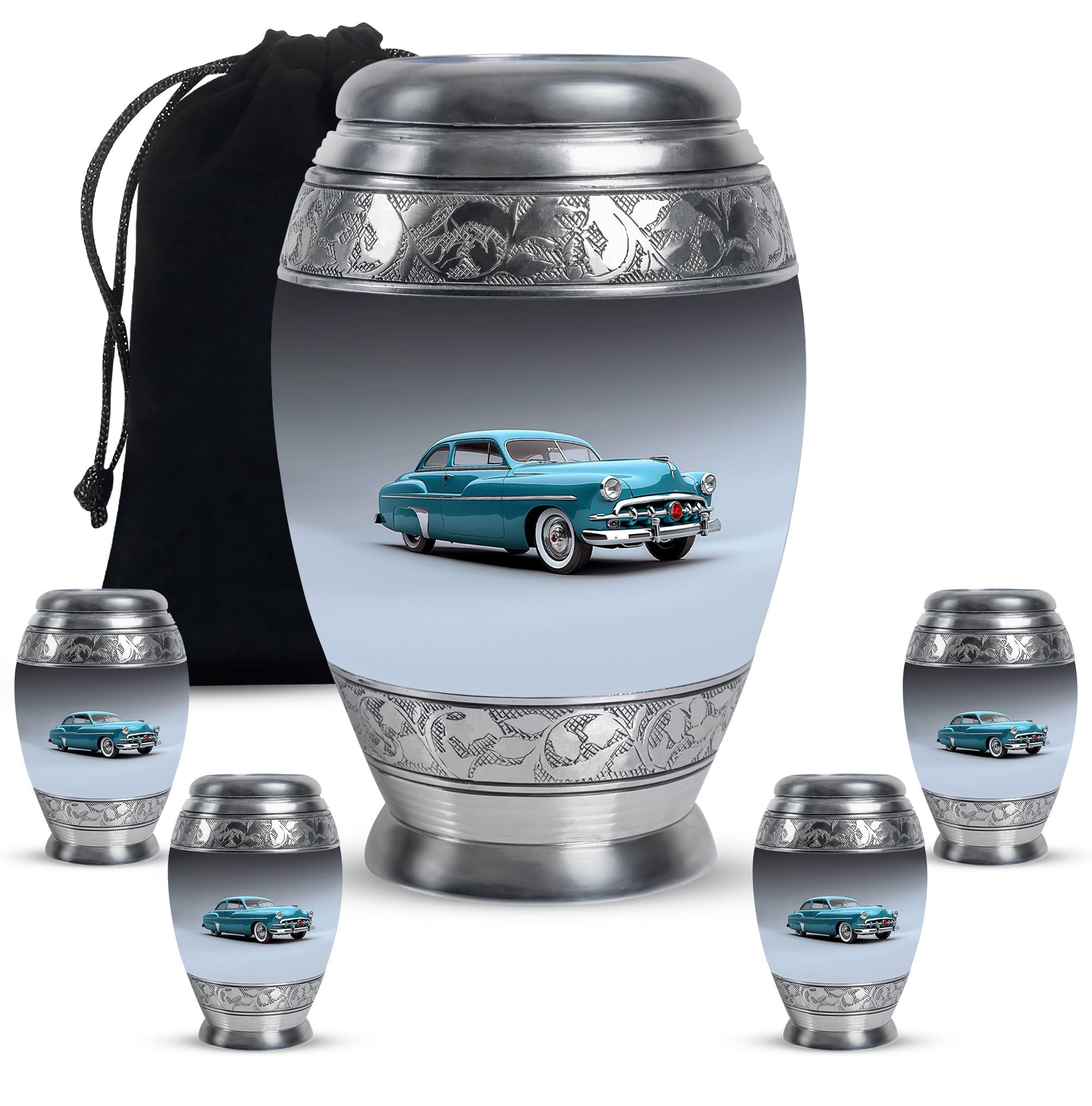 Beautifully handcrafted, this urn for human ashes adult male features a deep vintage red car motif with silver detailing, evoking classic elegance and enduring craftsmanship. Constructed from durable aluminum, it ensures lasting protection and peace of mind. The secure screw-top lid keeps ashes safely enclosed, while its polished surface adds a touch of sophistication — making it a timeless urn for ashes adult male small keepsake or a stunning display piece for memorial settings. Whether chosen as urns for human ashes adult female mom or urns for human ashes adult male dad, each design honors life’s treasured memories.