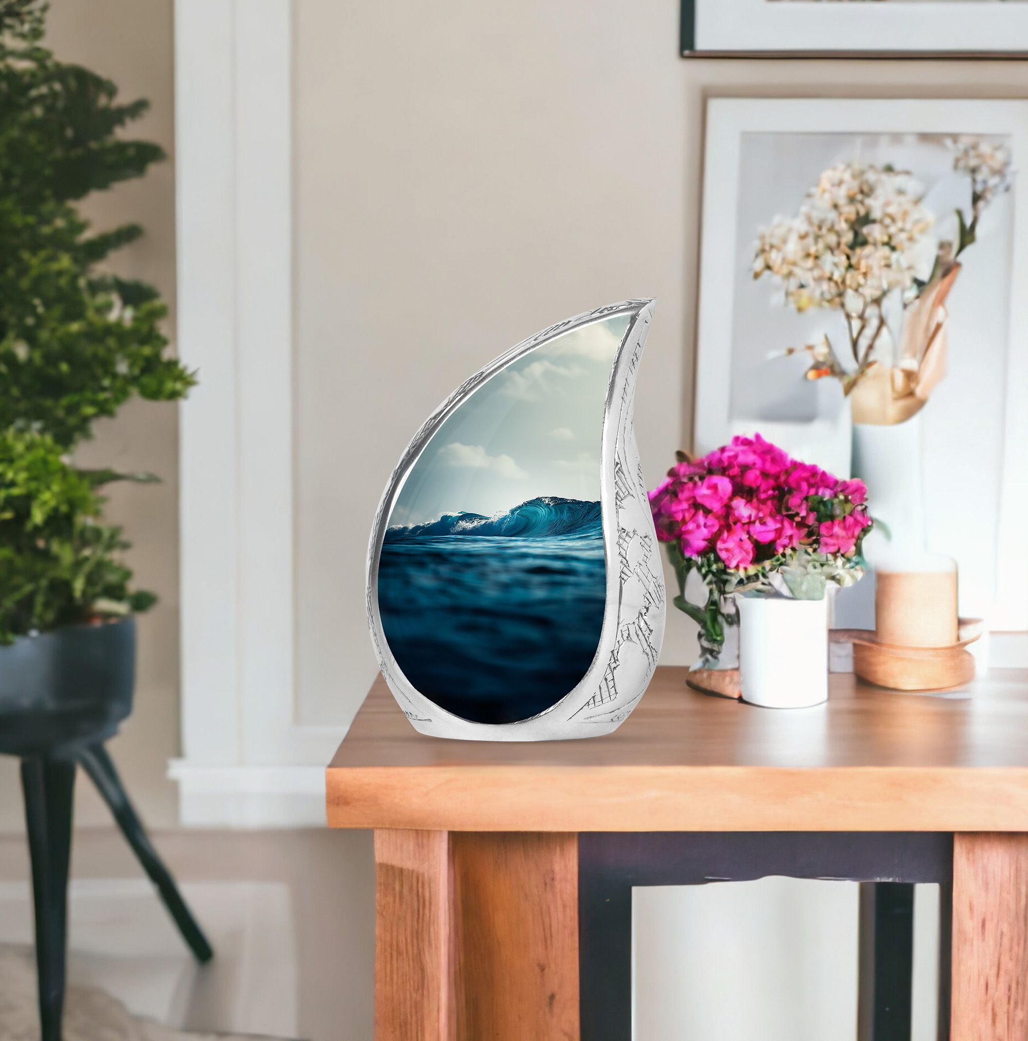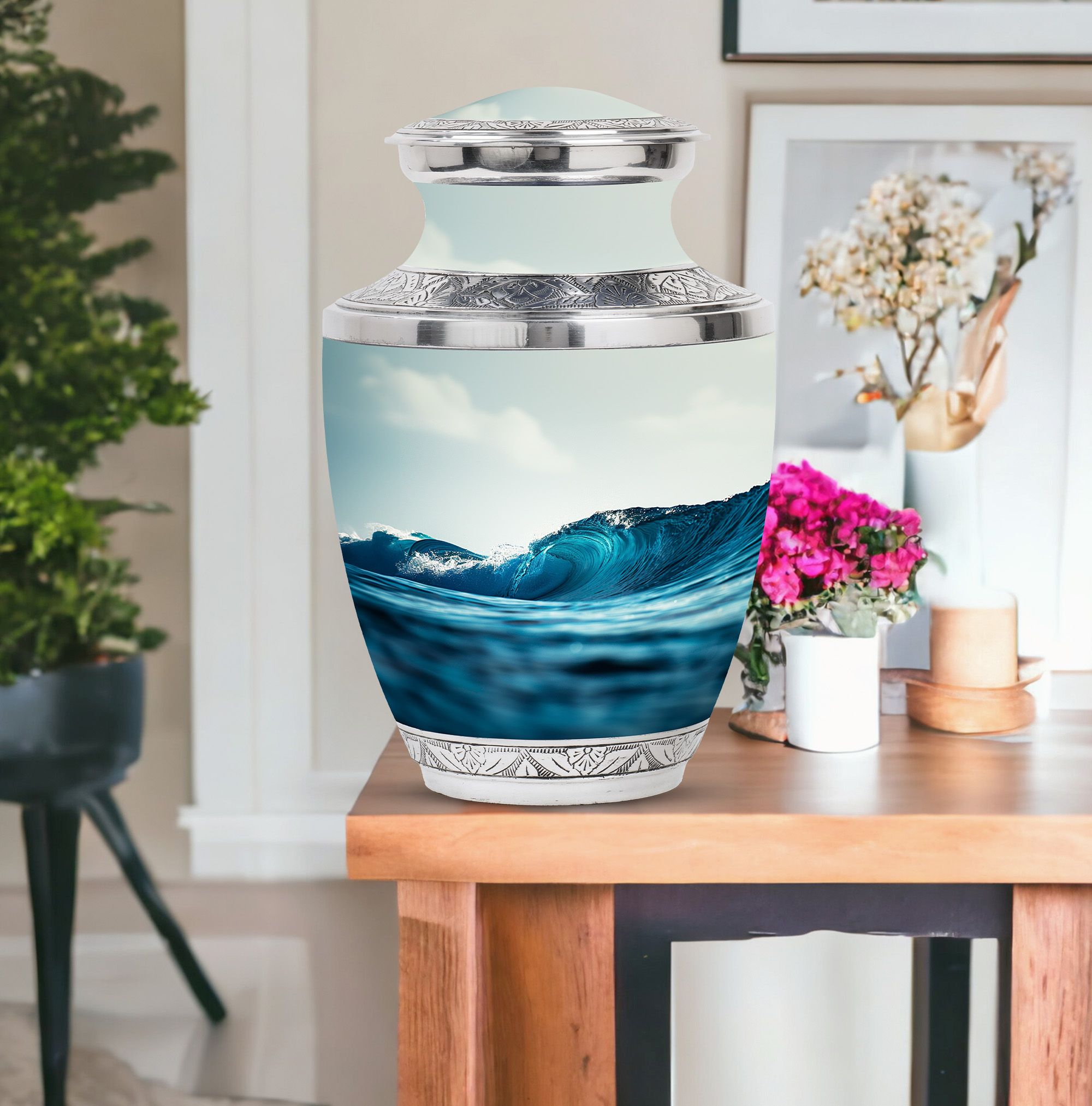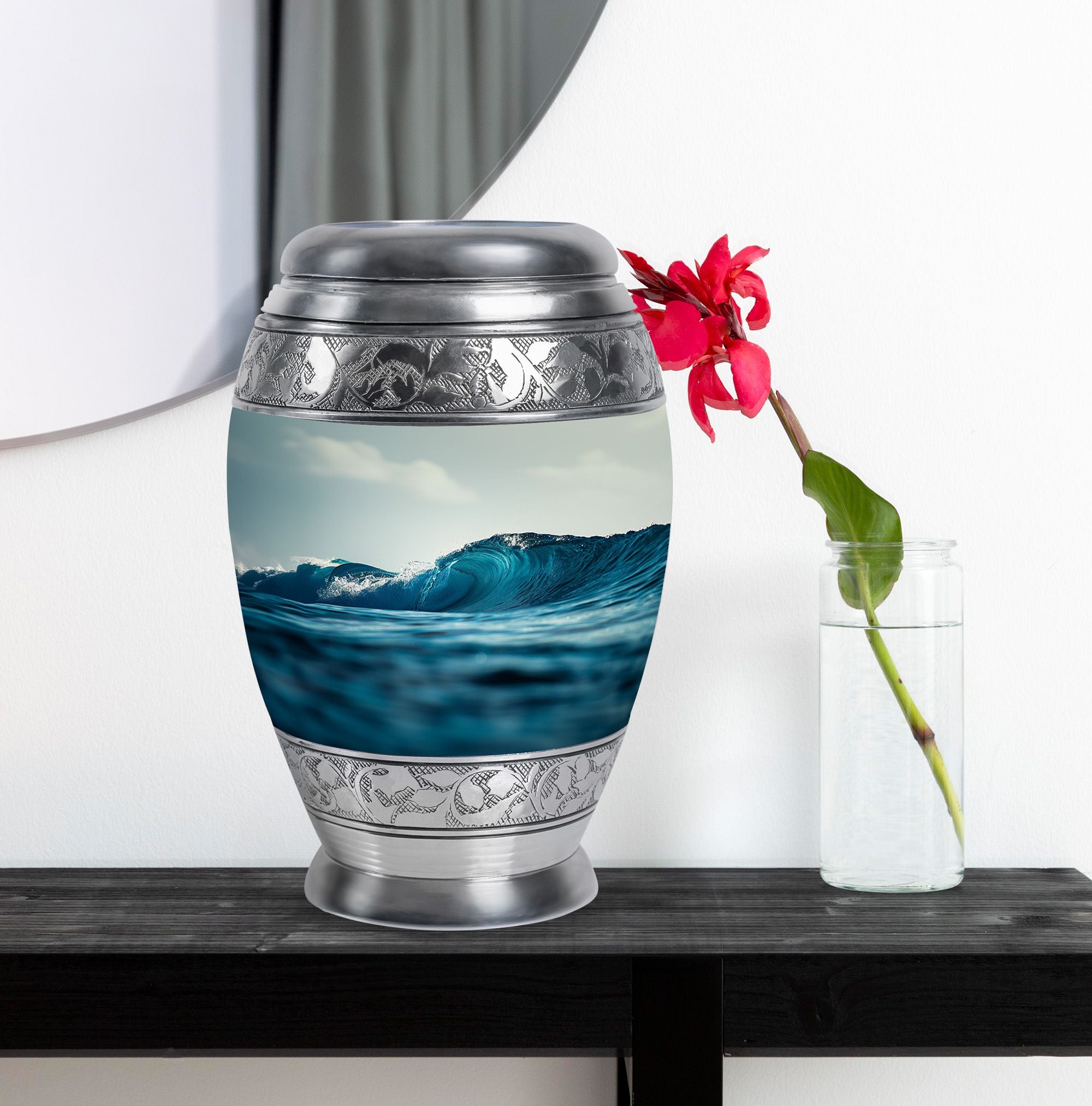 The Ocean Waves Cremation Customized Urn embodies the calm and strength of the sea, offering families a meaningful way to honor their loved one. Its serene blue waves design symbolizes peace, comfort, and eternal love, making it a heartfelt choice for remembrance. Whether chosen as an urn for ashes adult male dad or an urn for adult female, it reflects timeless respect.