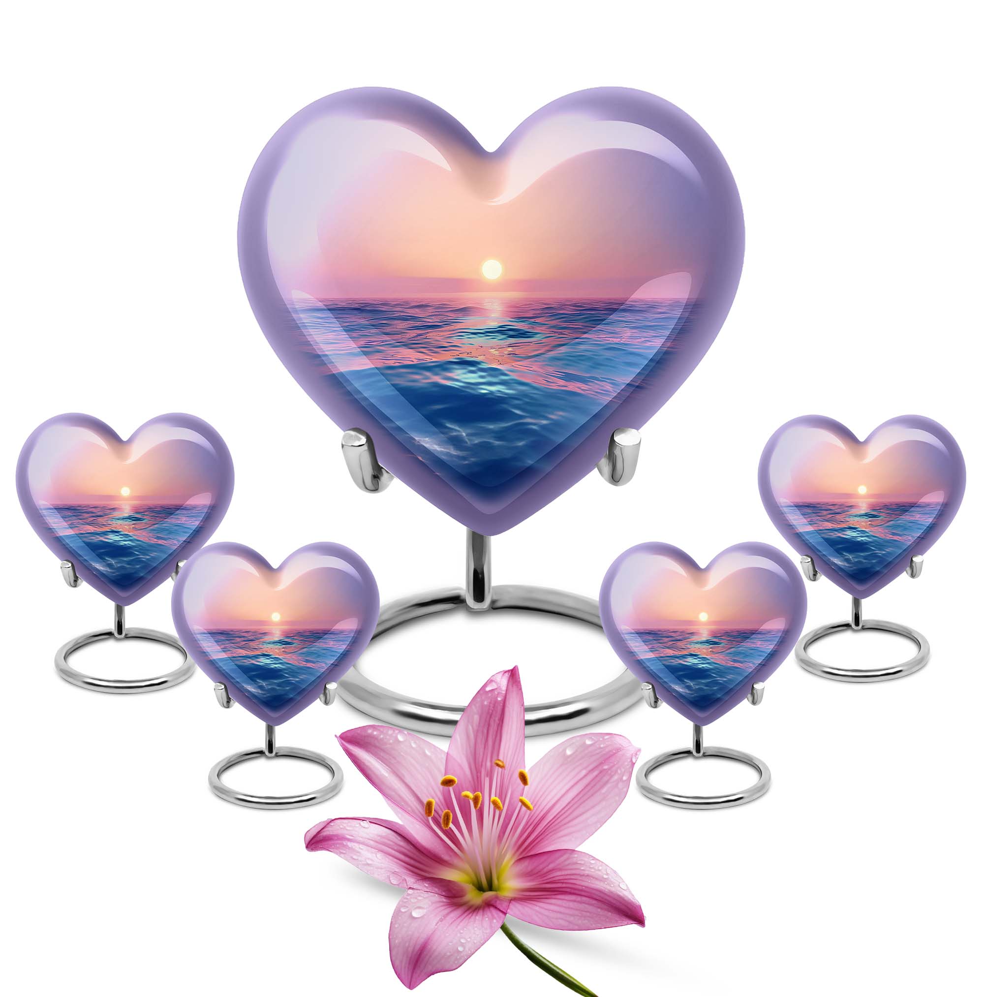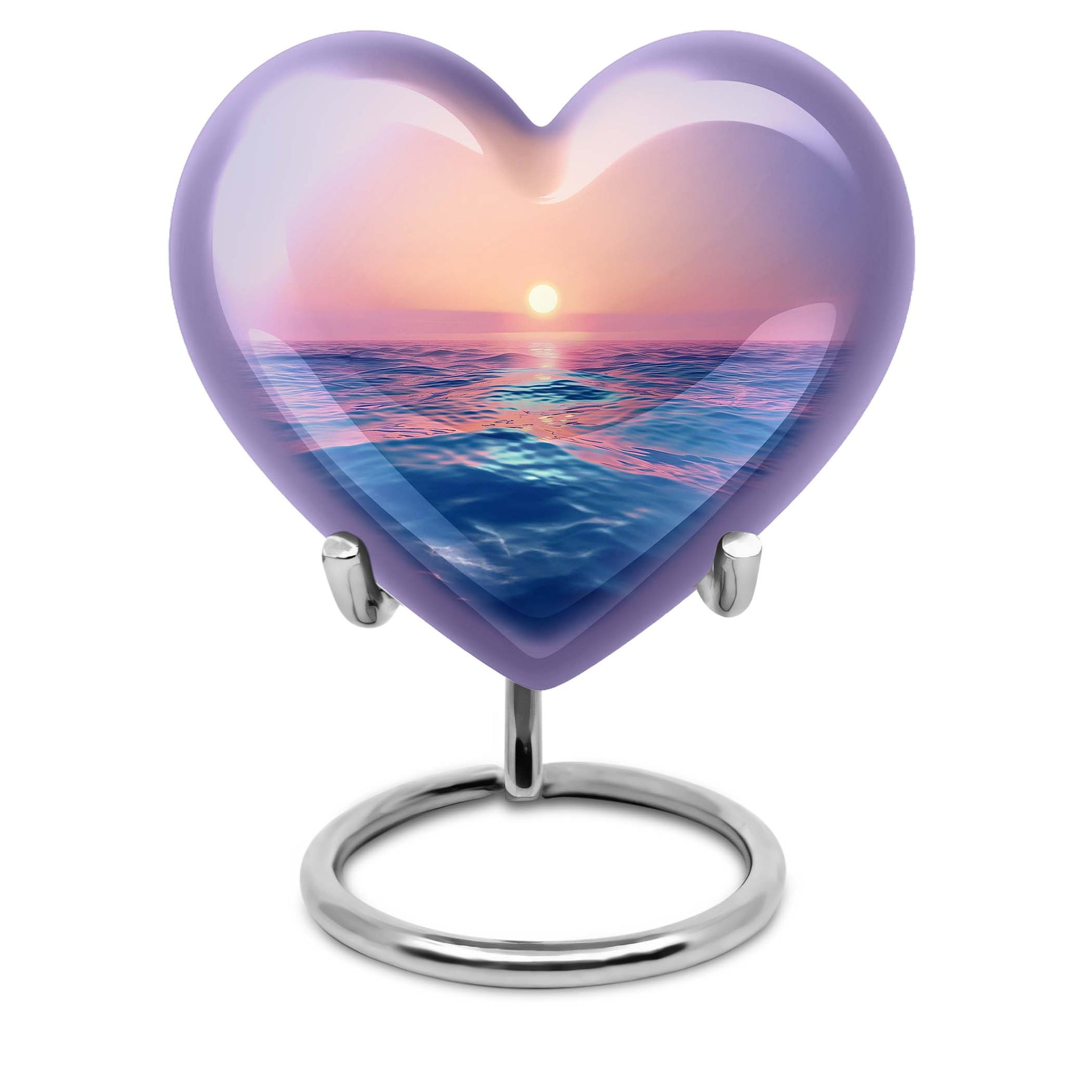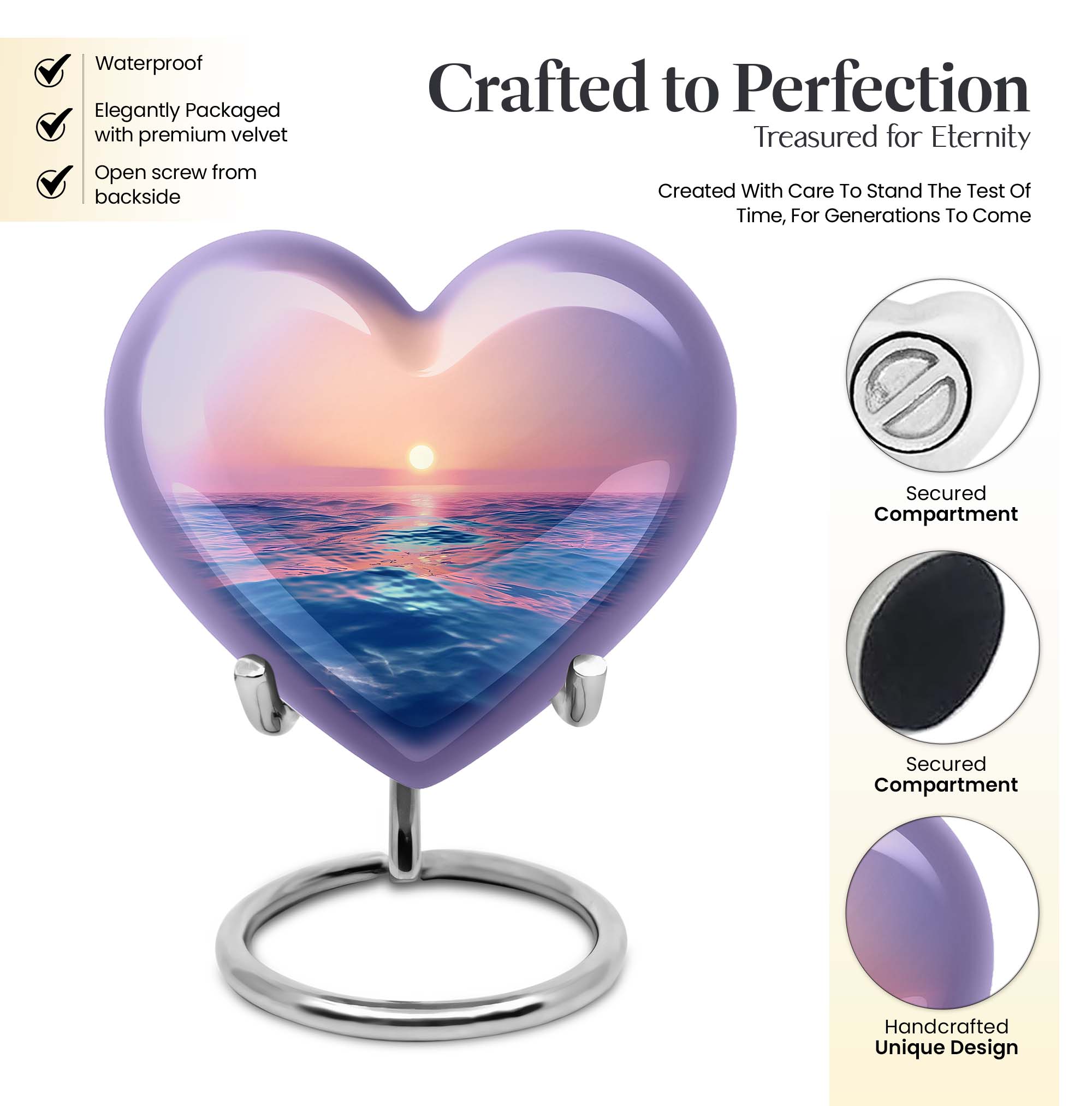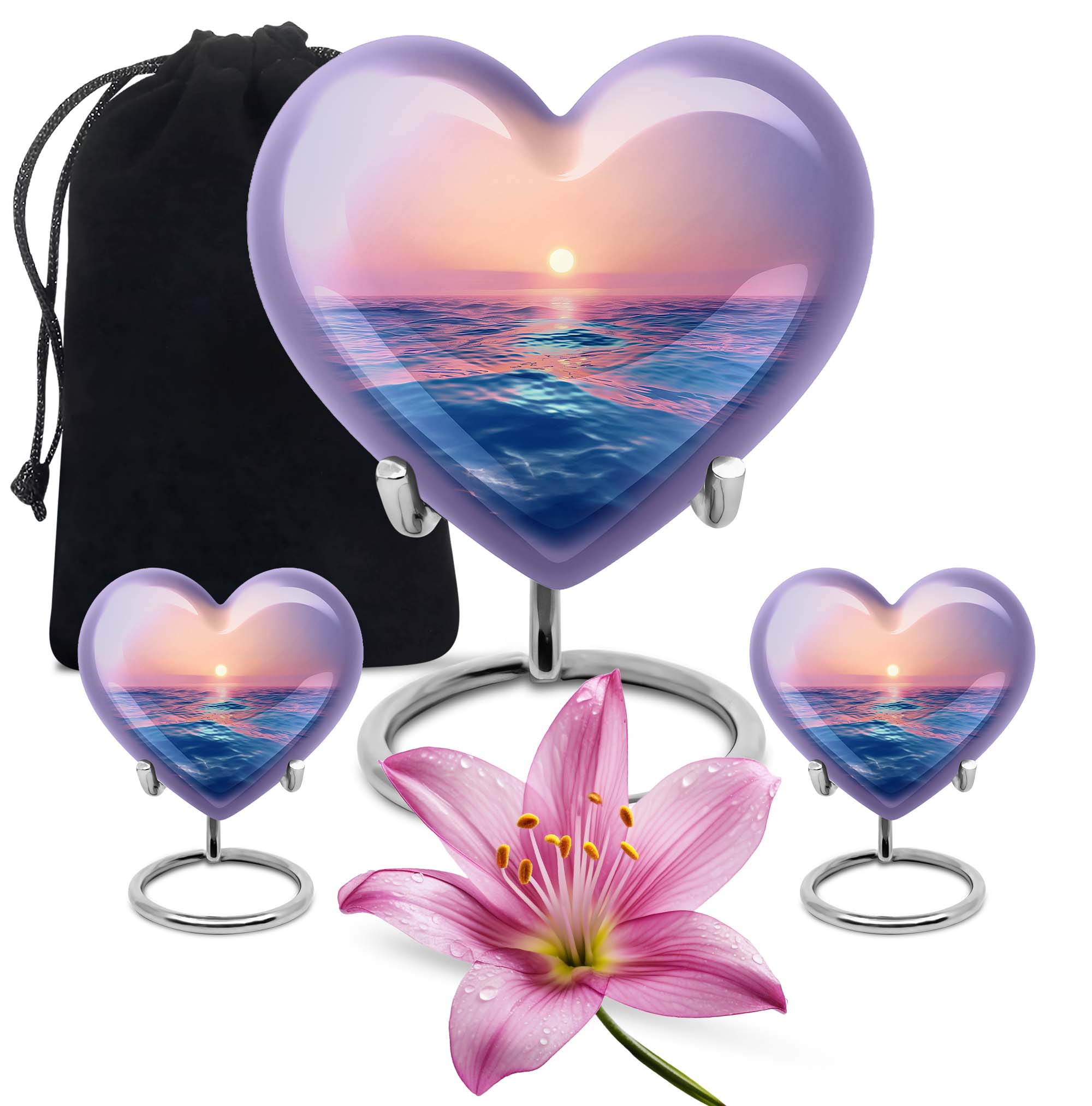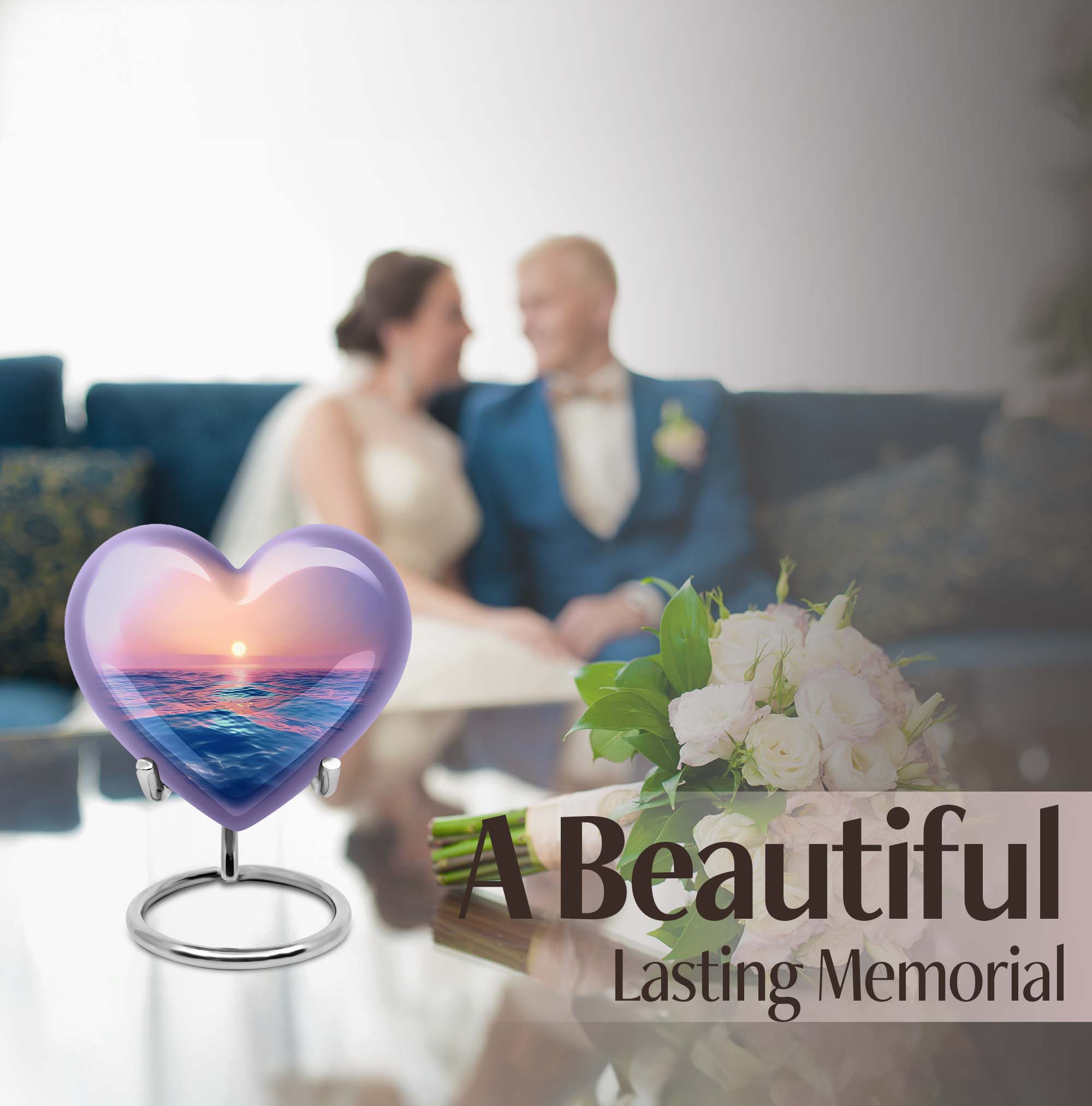 Presenting a heartfelt tribute to your dearly departed with our exquisitely designed Ocean Waves Urn. A perfect 10-inch 'Heart Urn' inspired by the serene rhythm of the ocean waves, symbolizing peace and tranquility. Beautifully engraved with names of the purchaser's choice, this custom urn adds a personal and unique touch to your memorial ceremony. Constituted from durable Aluminium that gives it a weight of 3.3 pounds, the urn is sure to withstand the test of time. Packaged with a velvet pouch perfectly sized for containment of ashes, this offers a respectful way to remember your loved ones. Accommodating up to 200 cubic inches of ashes, this large urn is an ideal option for adult burial. Adorned with a delightful butterfly theme, it blends the aspects of love, transformation, and freedom. Primarily recognized as 'ocean waves urn' or 'burial urns for human ashes adult', it also resonates with phrases like 'cremation urns for human ashes men', and 'funeral large'. Let your memories of your loved ones be as perpetual as our Ocean Waves Urn.