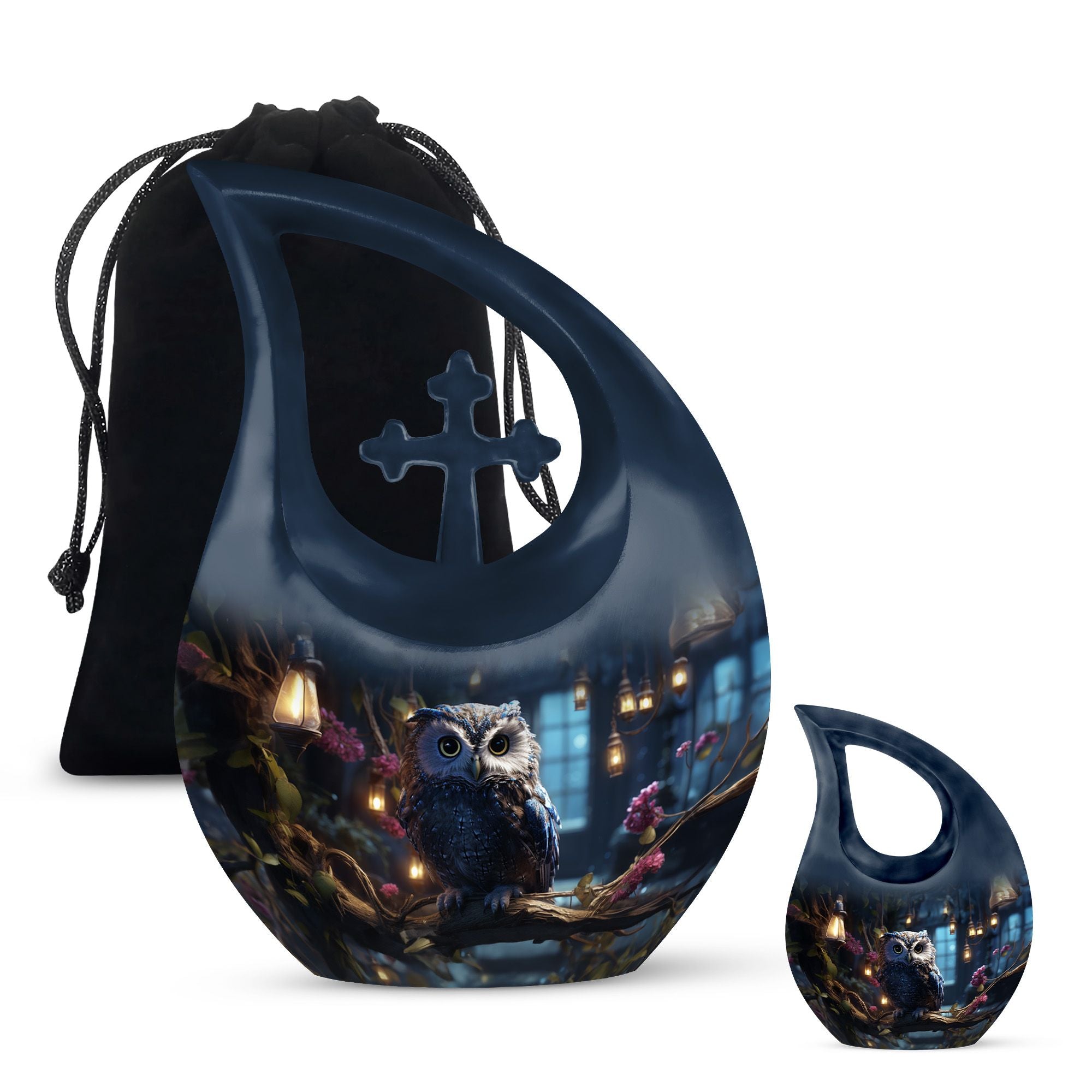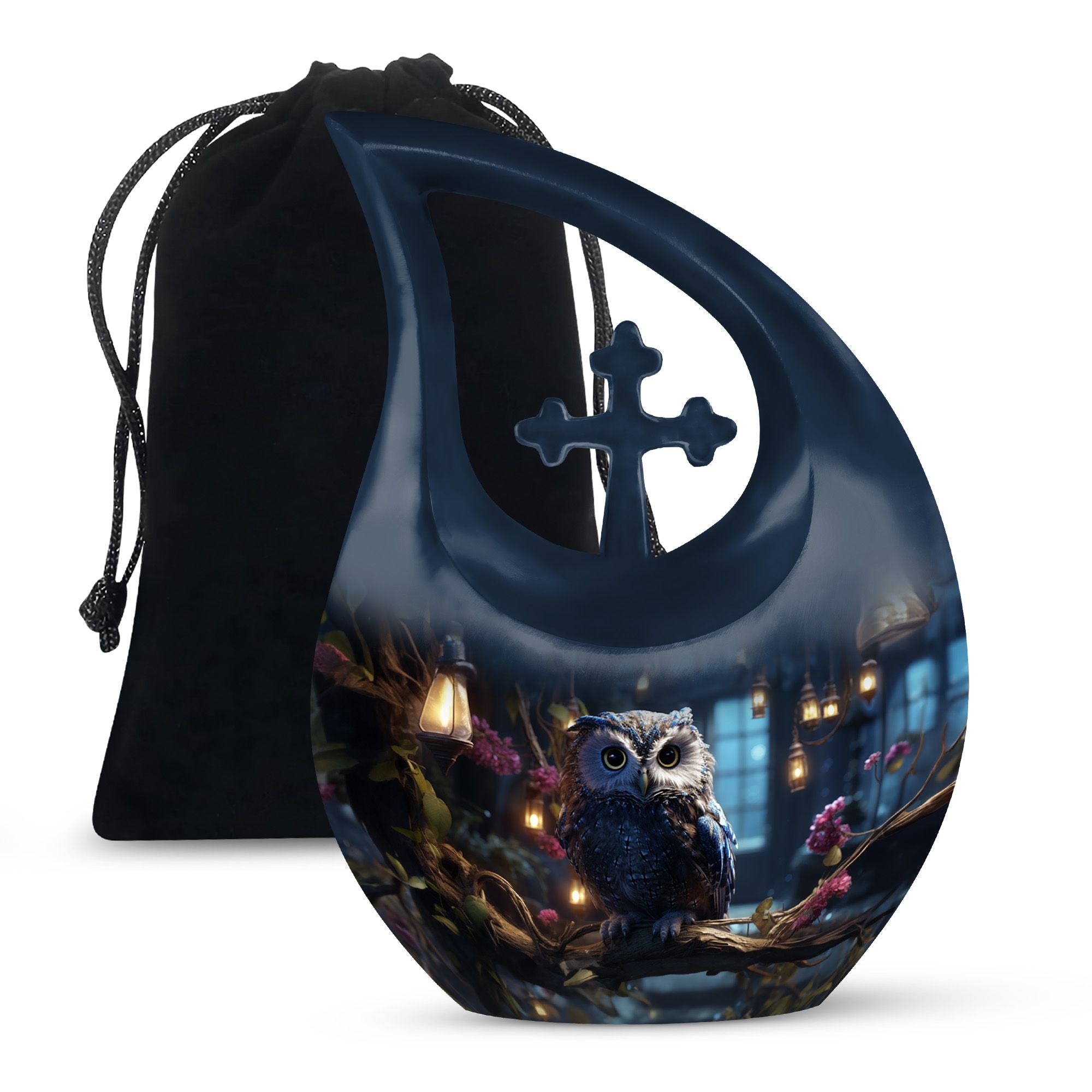 This women adult urn and men’s memorial piece captures the wisdom of the owl and the eternal peace of night, honoring the spirit of a life well-lived and forever remembered.
