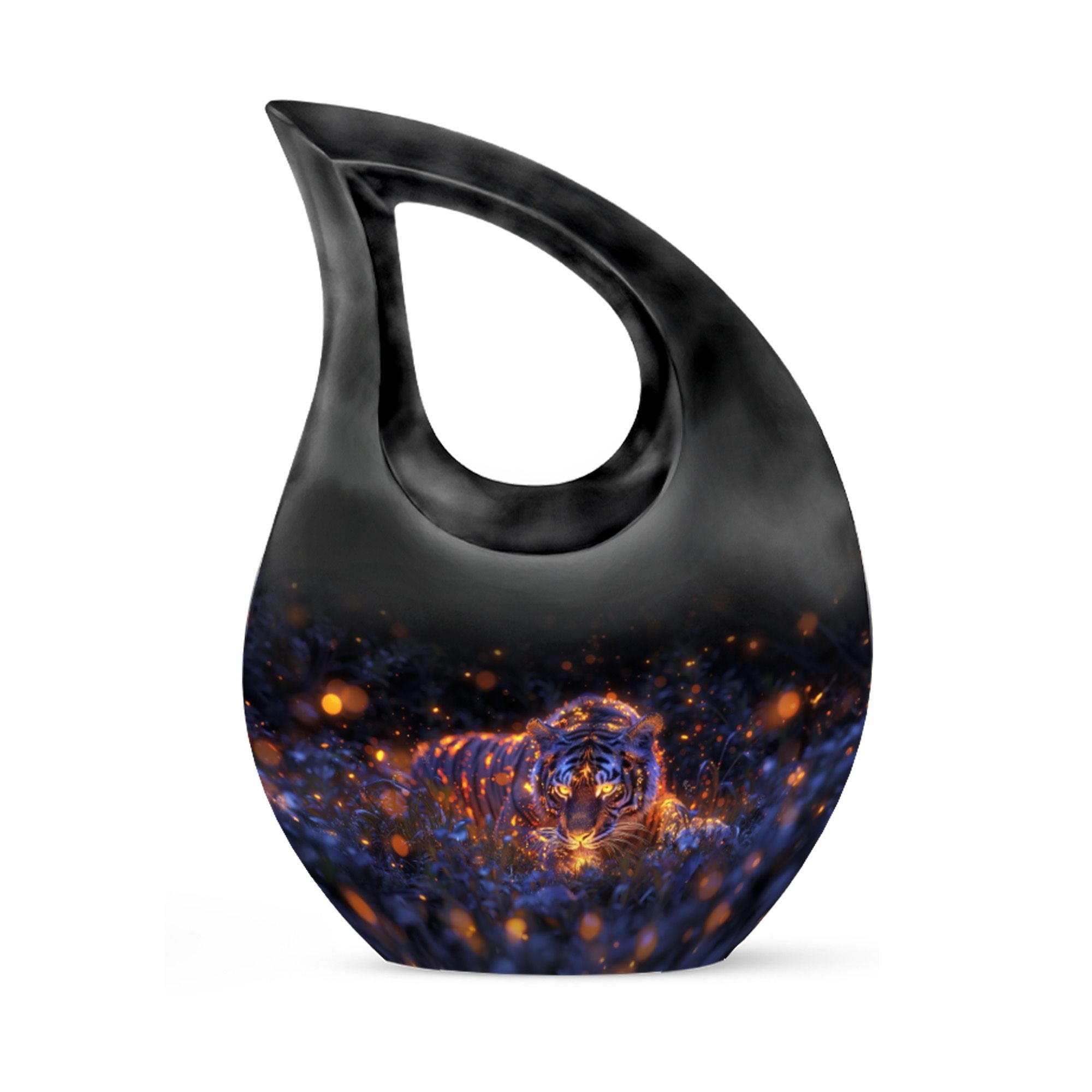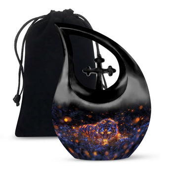 Introducing the 'Starry Night Prowl Urn', a remarkable tribute to your loved one, meticulously crafted to serve as a dignified resting place. This 10-inch biodegradable box for ashes, weighing 3.3 pounds, captivates with its 'Cross Drop' theme, reflecting a harmonious balance of elegance and spiritual reverence. The urn's dimensions are perfect for containing 200 cubic inches of cremains securely. The 'Starry Night Prowl Urn' is not just a large memorial urn, but it's a piece of art made from premium quality aluminium, designed to last. The package includes a tender velvet pouch, ensuring the delicacy in maintaining the ashes. Moreover, we offer an option to personalize this urn by engraving names, adding an intimate touch to commemorate your precious memories. Ideal choice for those searching for large cremation urns, custom urns, or cremation urns for human ashes with a touch of sophistication.